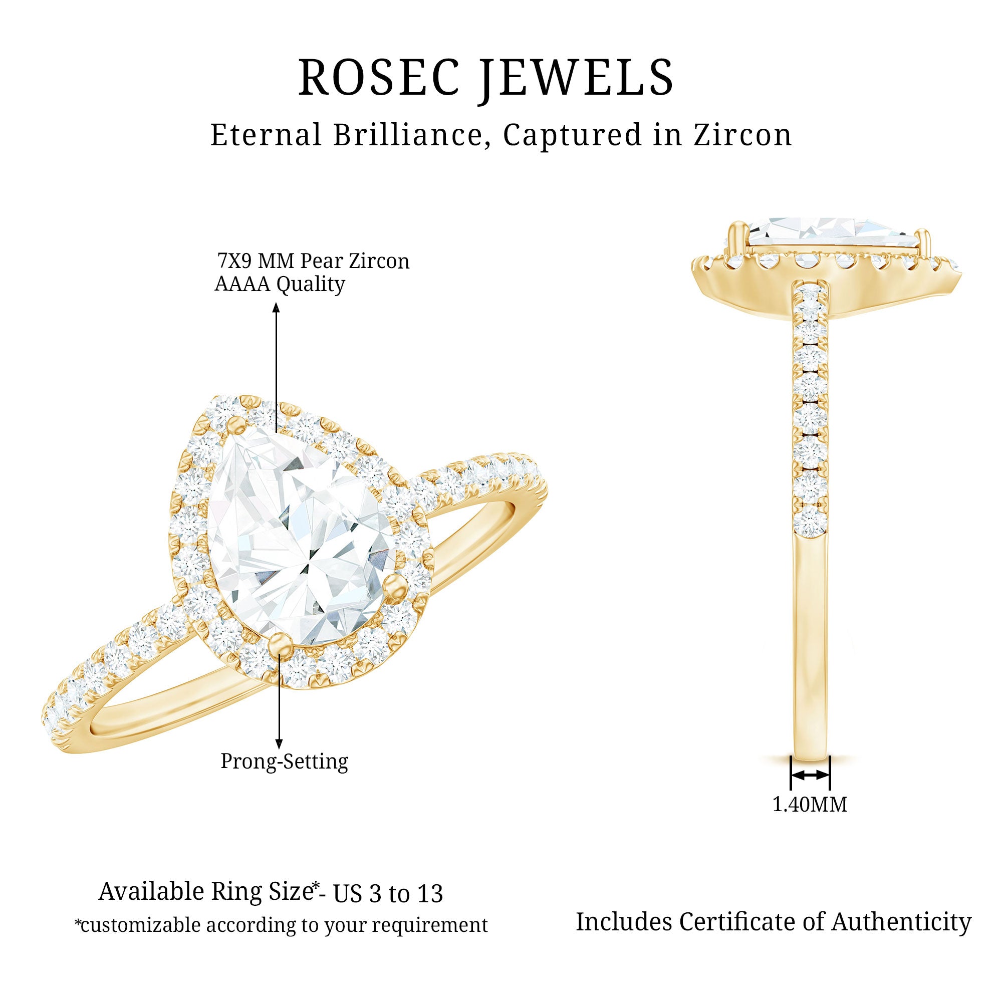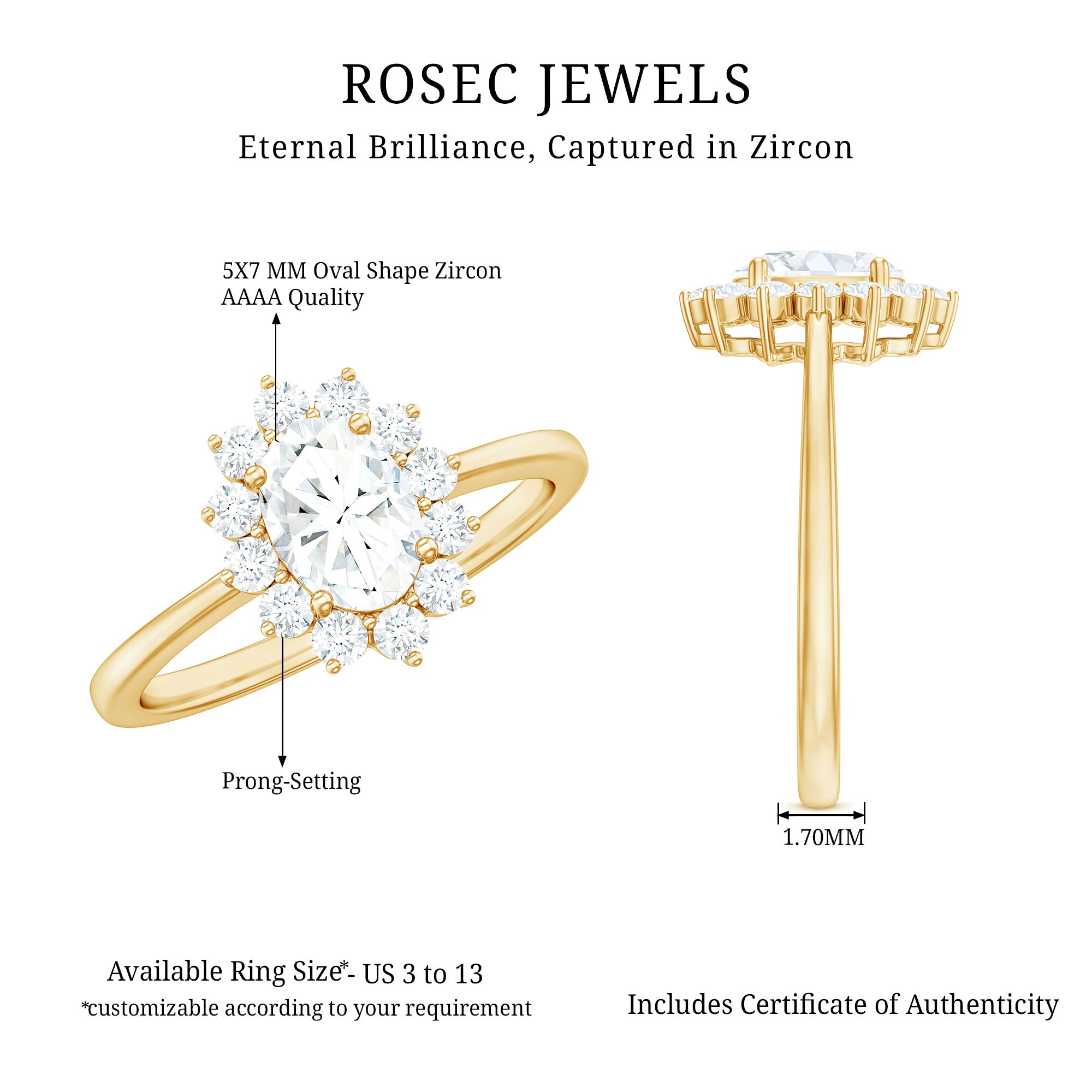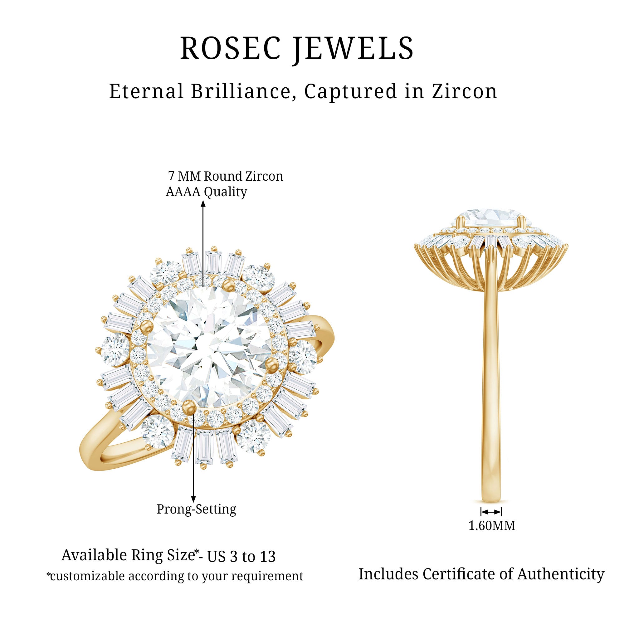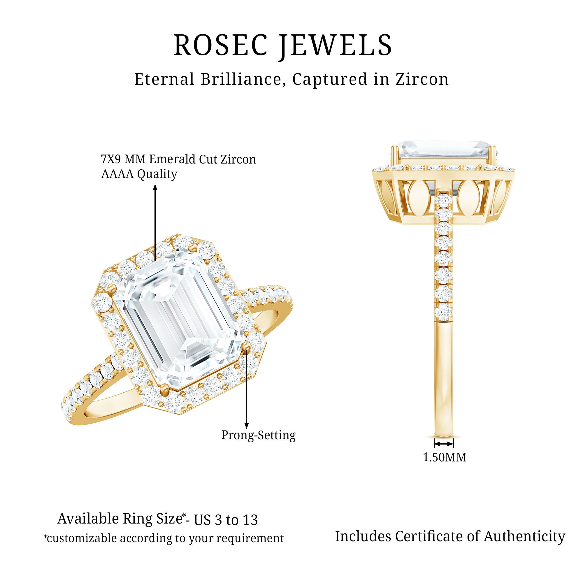Apart from its many ring styles, a Cubic Zirconia Engagement Ring is fashioned in three tones of Gold- white, yellow, and rose. While White Gold cz engagement rings speak to those with a classic and understated sense of style, the ones fashioned in yellow gold appeal owing to their color-contrasting aesthetic and traditional vibe. On the other hand, a Cz ring fashioned in rose gold looks incredibly feminine.