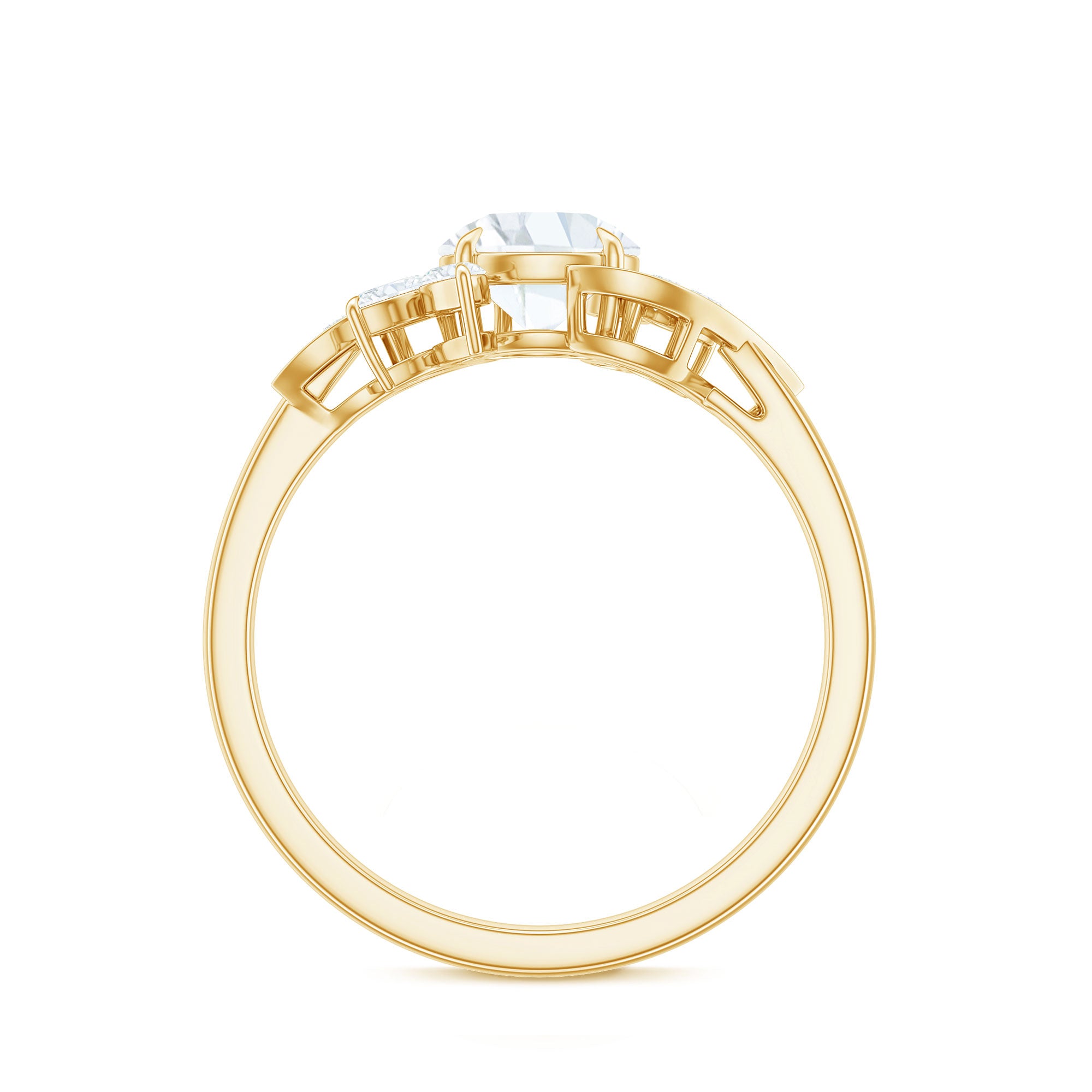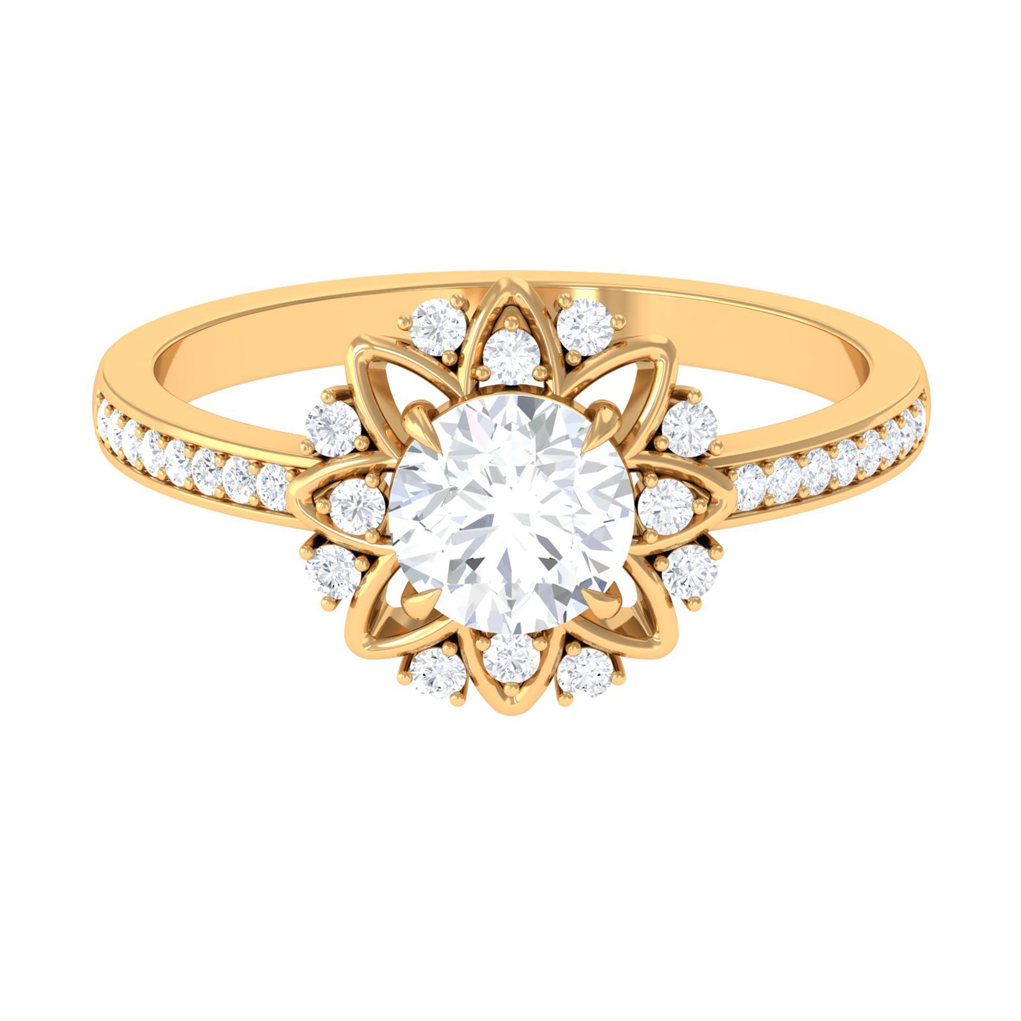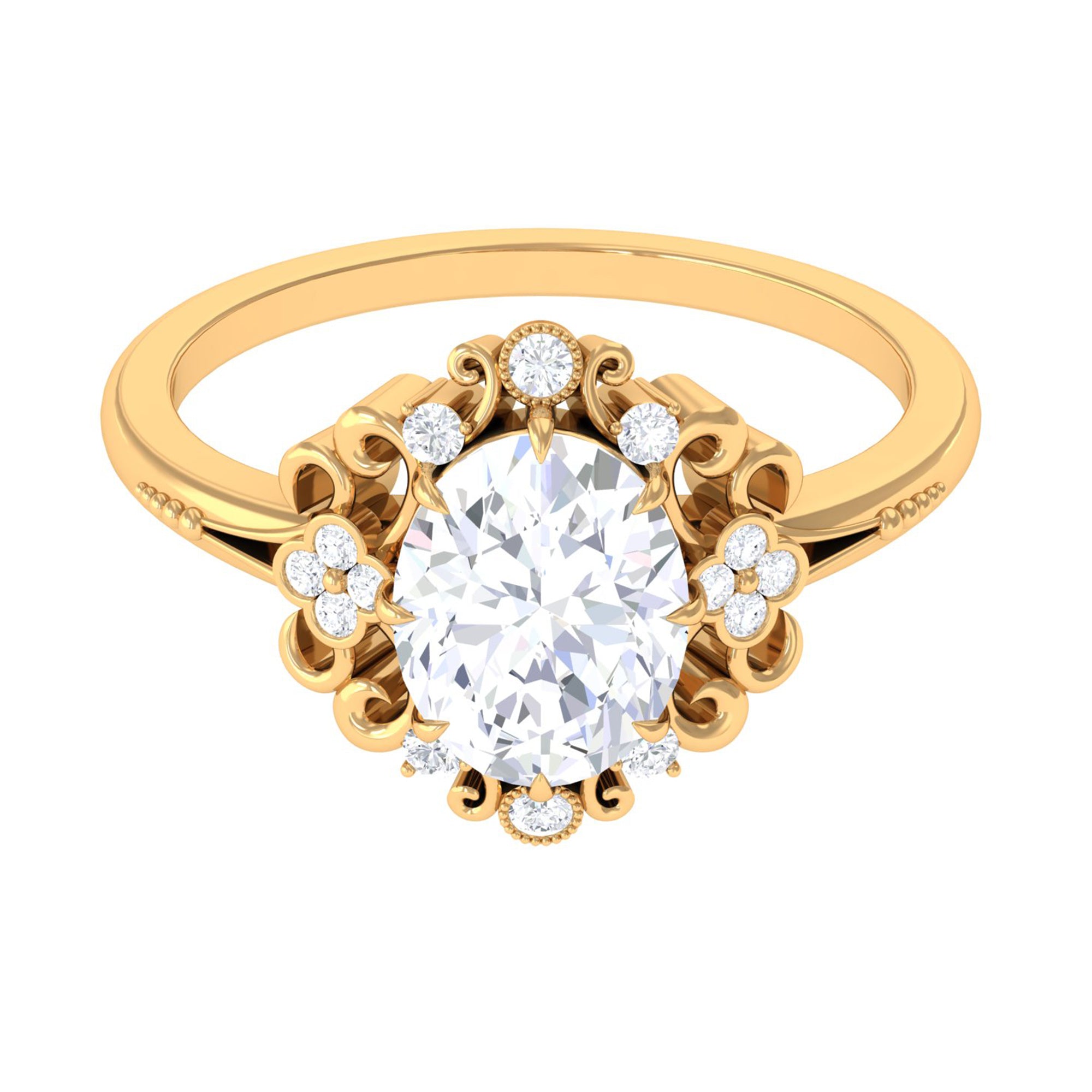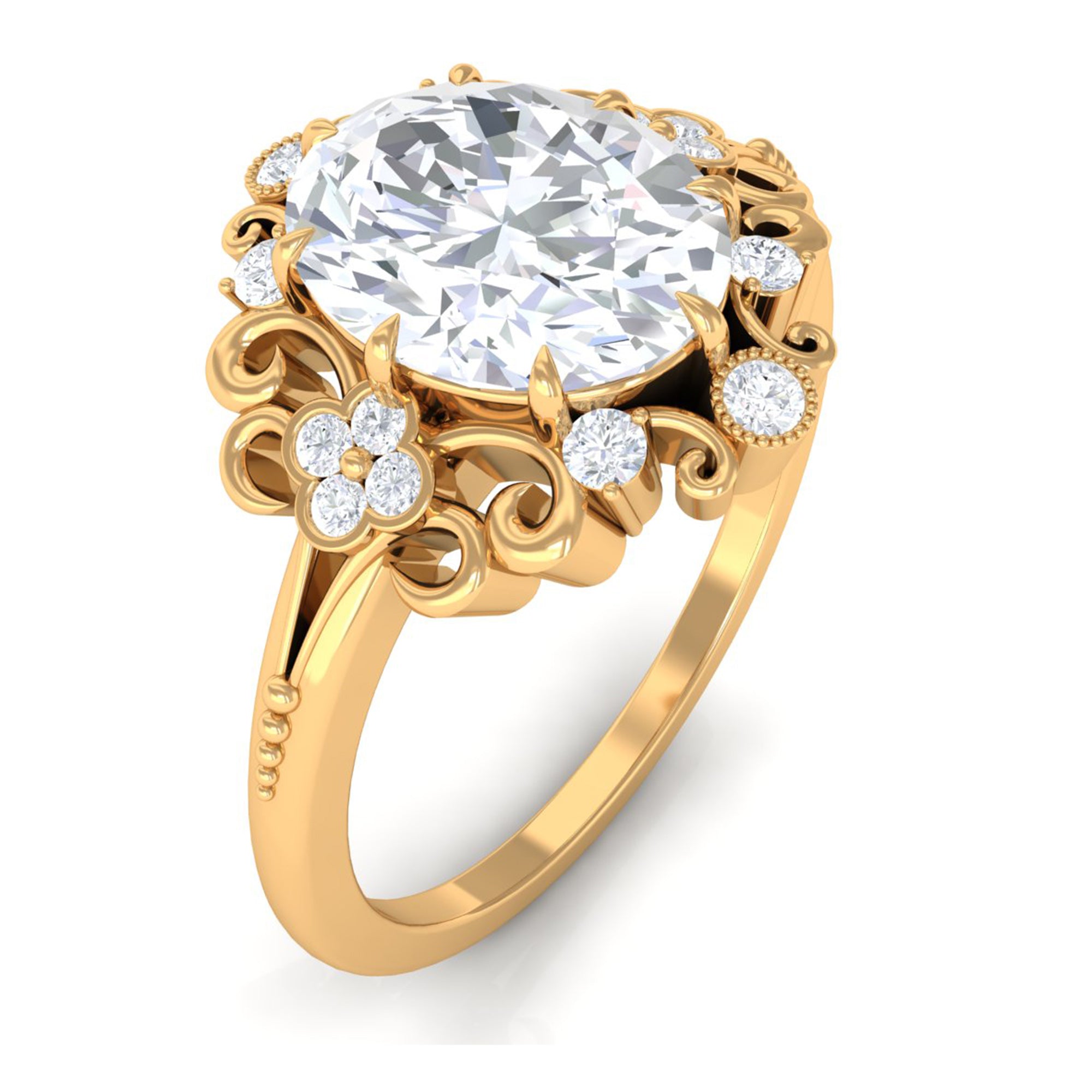 Just like the name suggests, this ring style draws inspiration from the old-world designs of Victorian, Edwardian, and Art Deco Eras that complement the sparkling center stone of CZ steal the limelight. You’re most likely to witness ornately crafted filigree and milgrain detailing, abstract geometrical patterns, retro floral motifs, and antique engravings. So, if you have been on the lookout for Gold Cubic Zirconia Engagement Rings that speak to your old school love, look no further!