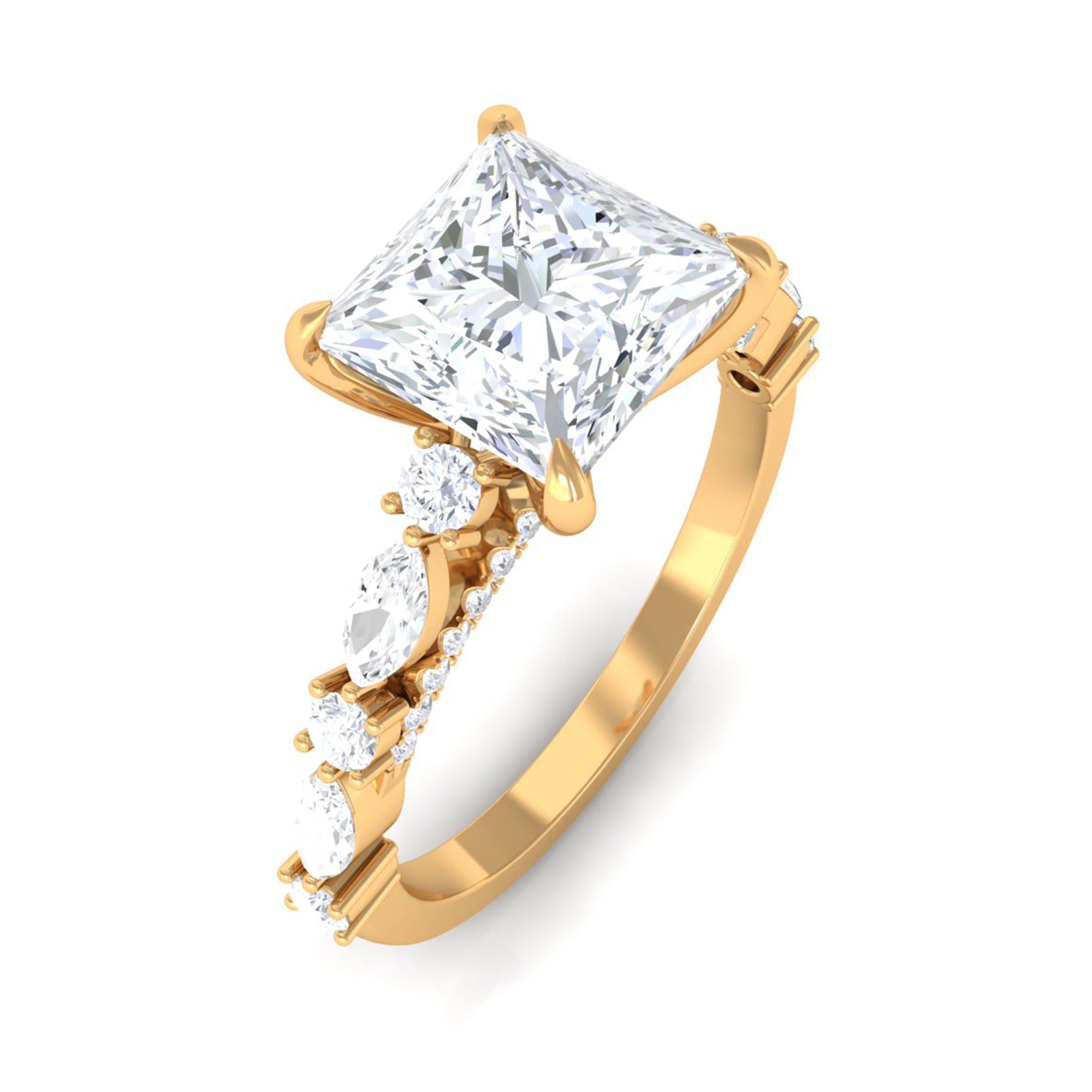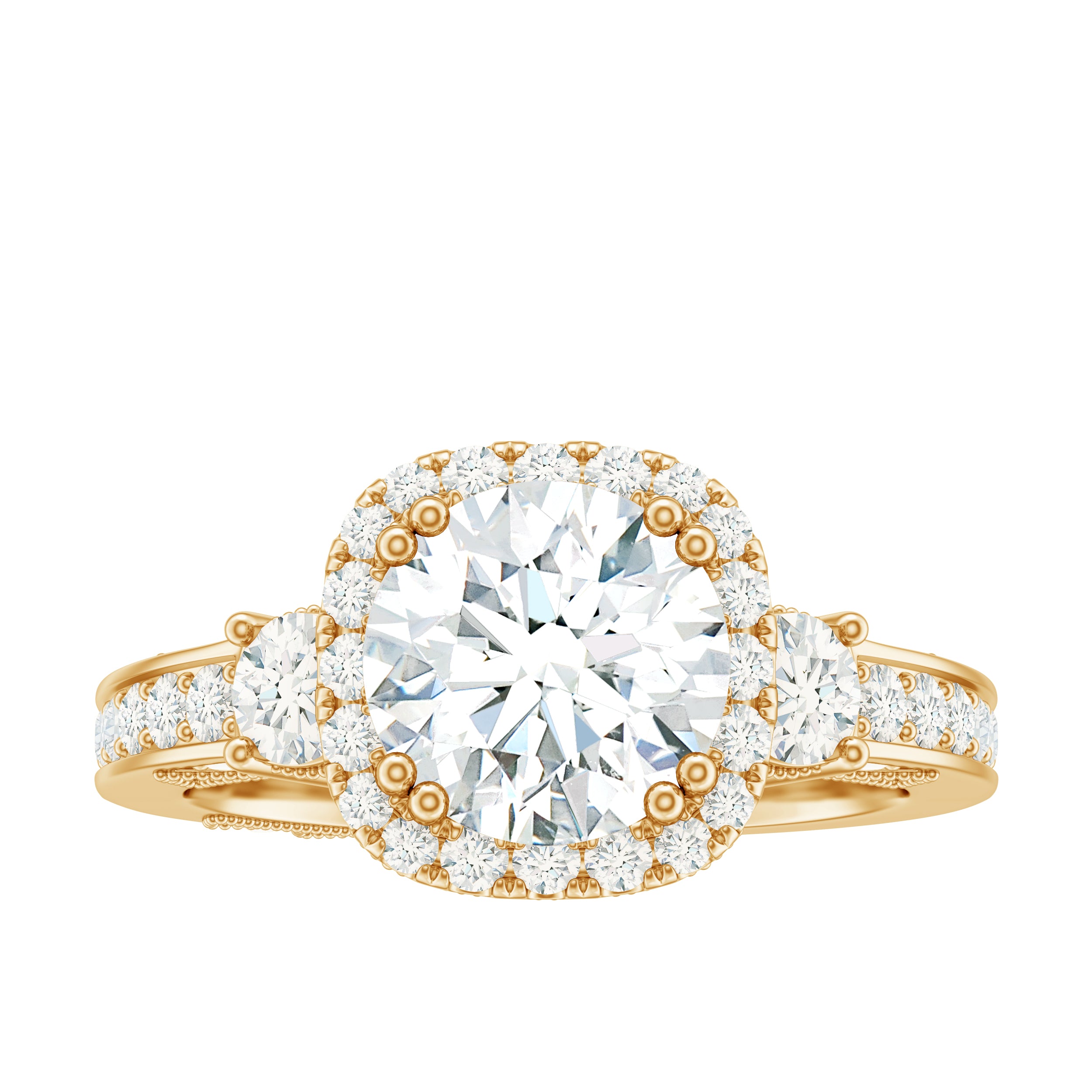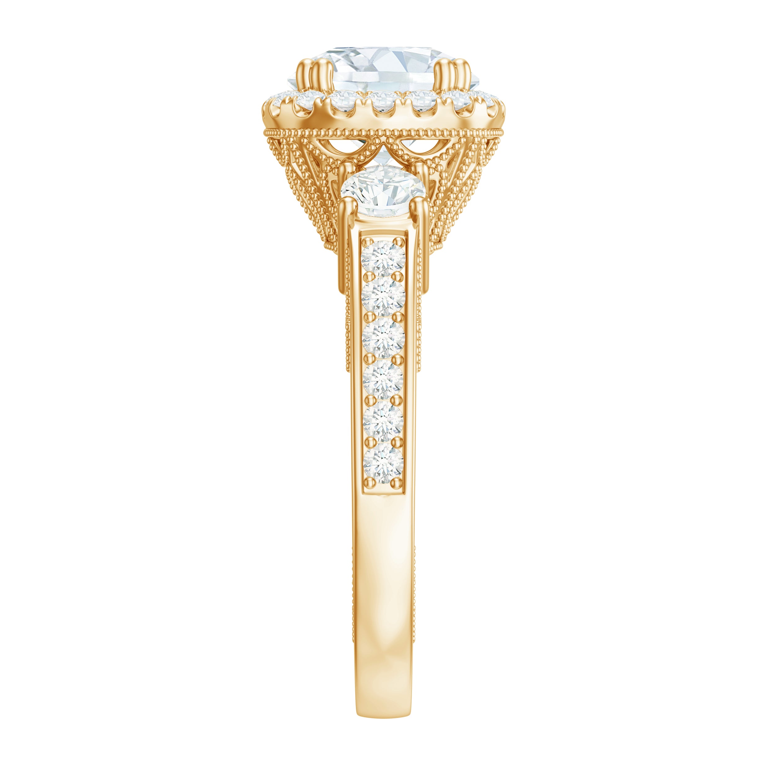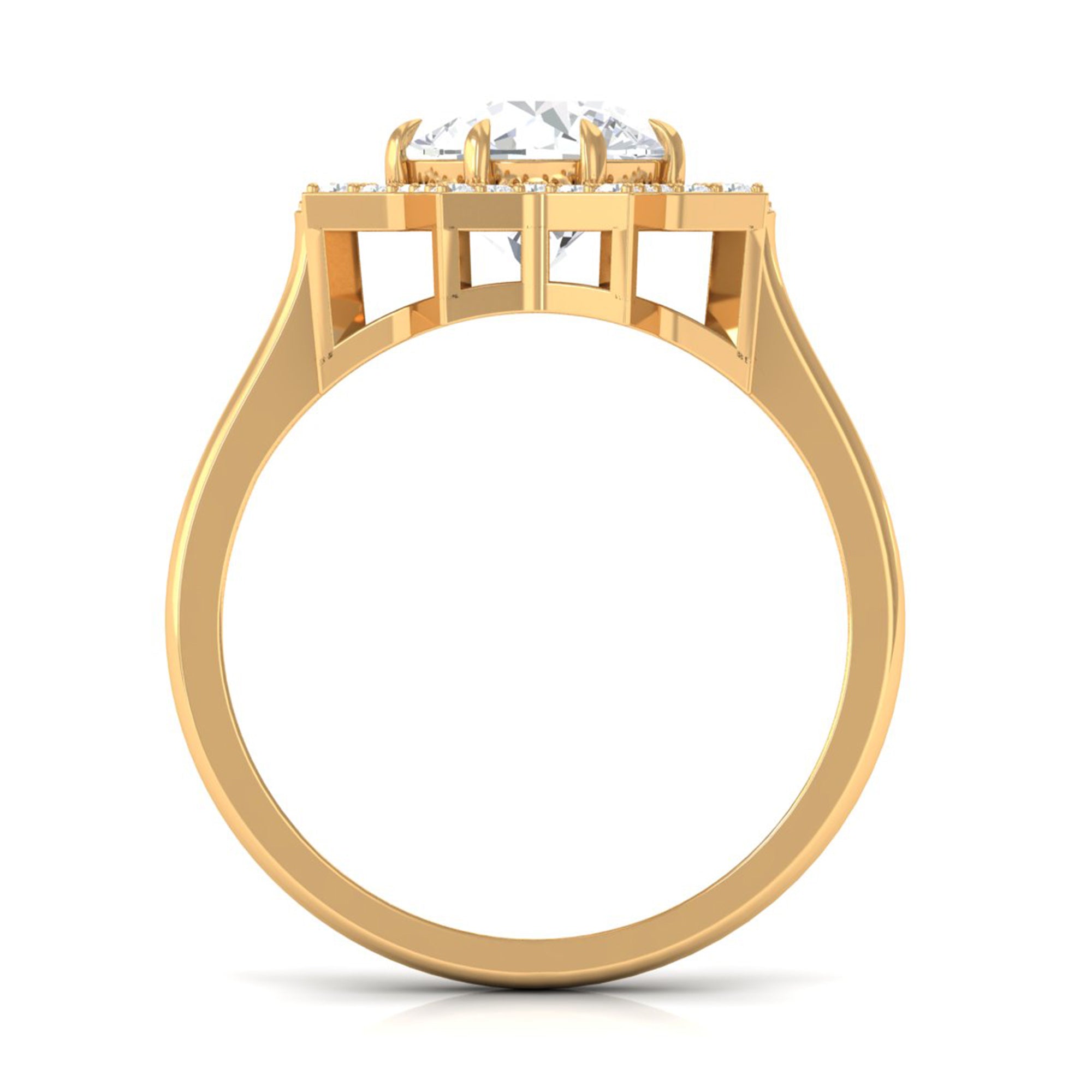 Just like the name suggests, this ring style draws inspiration from the old-world designs of Victorian, Edwardian, and Art Deco Eras that complement the sparkling center stone of CZ steal the limelight. You’re most likely to witness ornately crafted filigree and milgrain detailing, abstract geometrical patterns, retro floral motifs, and antique engravings. So, if you have been on the lookout for Gold Cubic Zirconia Engagement Rings that speak to your old school love, look no further!
