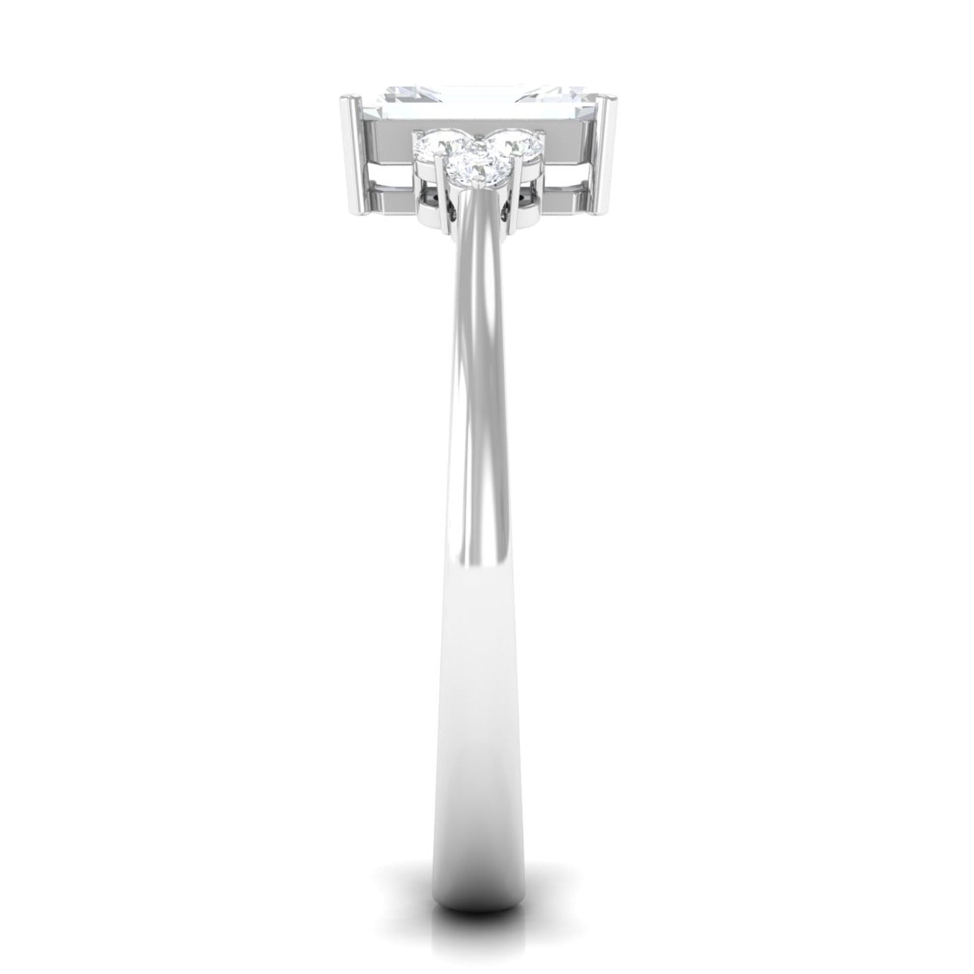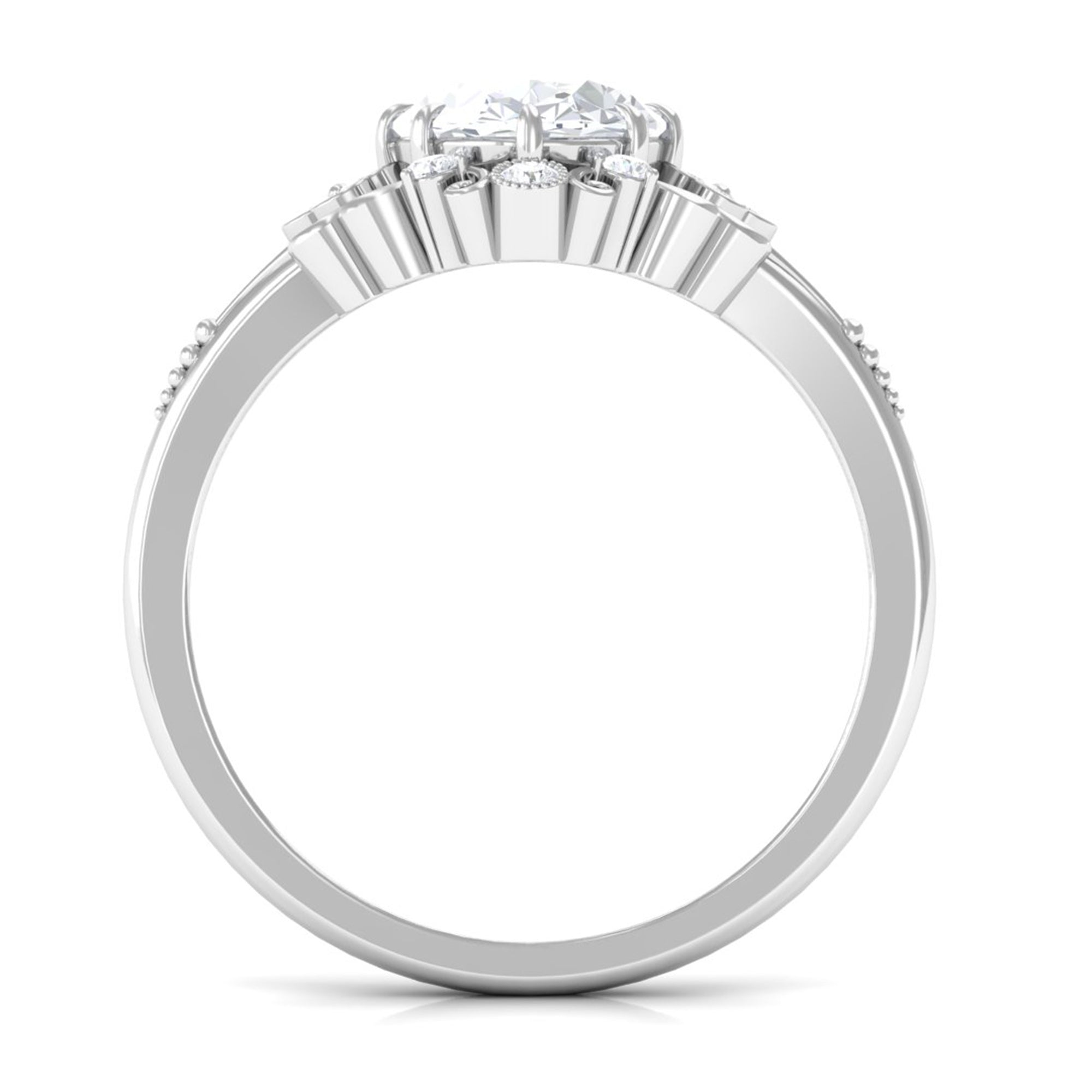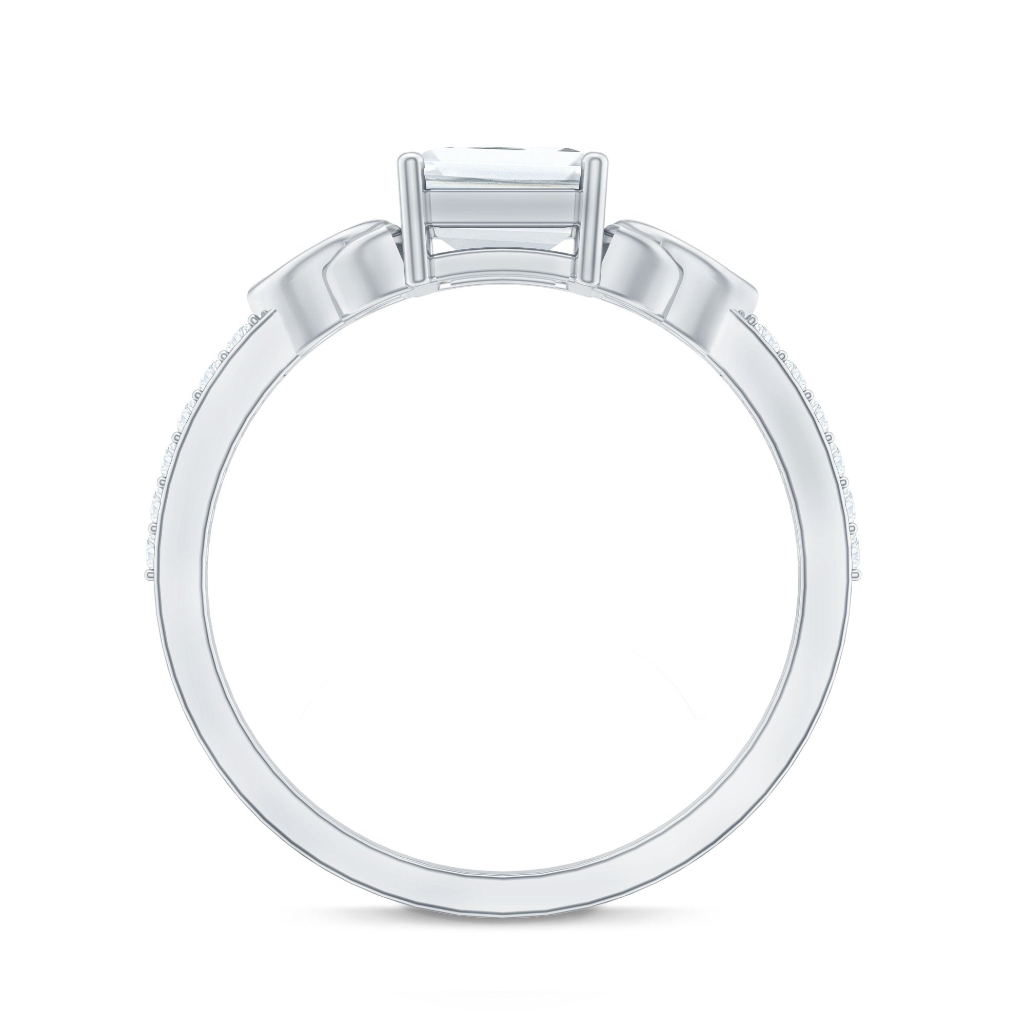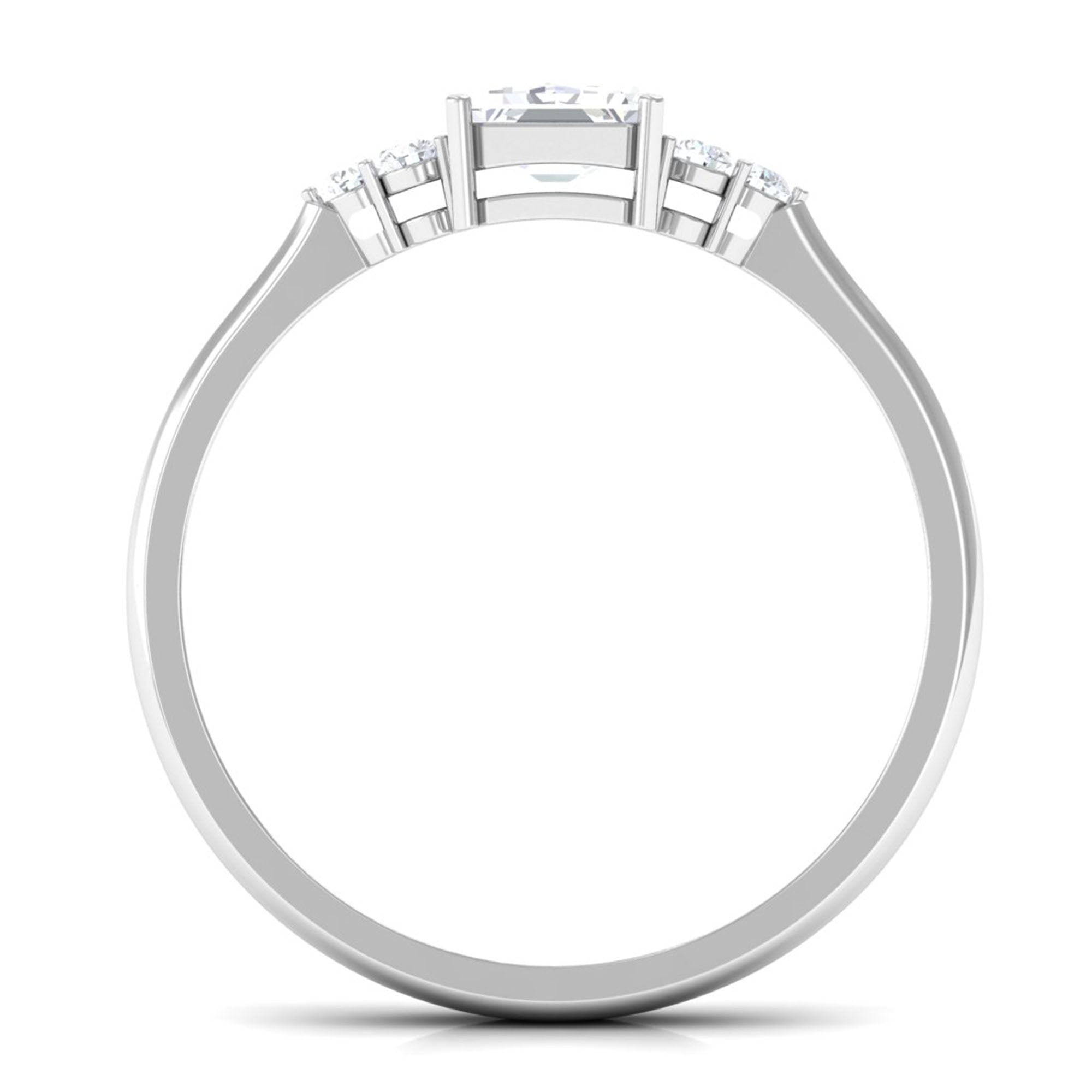 Unconventional and uniquely flashy, this ring style is encased with three stones of Cubic Zirconia arranged uniformly in a row. If you fancy more sparkles in your betrothal ring, a three stone ring is the way forward (since three stones means triple the sparkles). While a Round or Oval Cubic Zirconia Engagement Rings are the most classic options in this ring style, those adorned with Pear, Princess, Cushion, and Emerald Cut are also soaring in popularity. Behind its eye-striking aesthetics, it speaks to each couple uniquely since each of the three stones here sheds light on the couple’s past, present, and future respectively.
