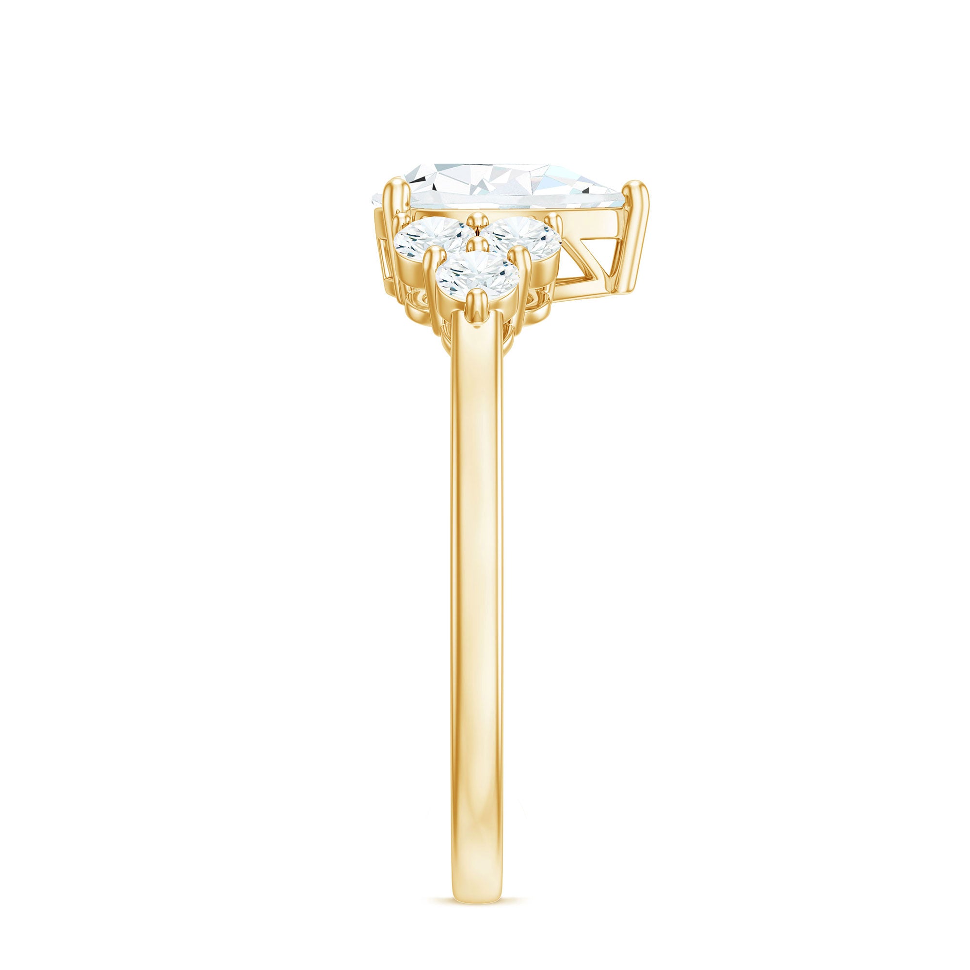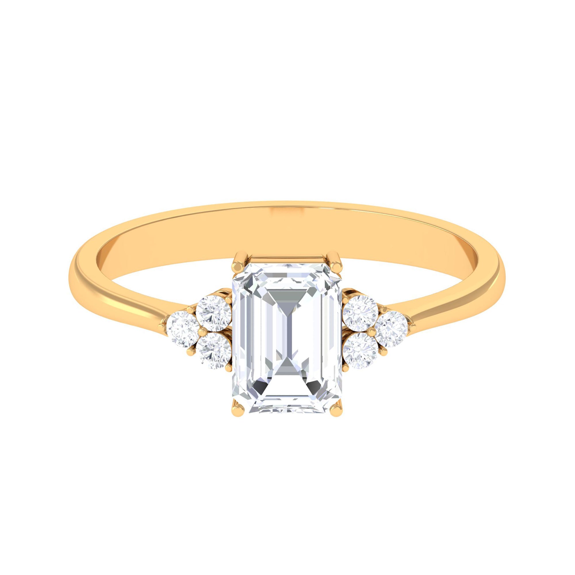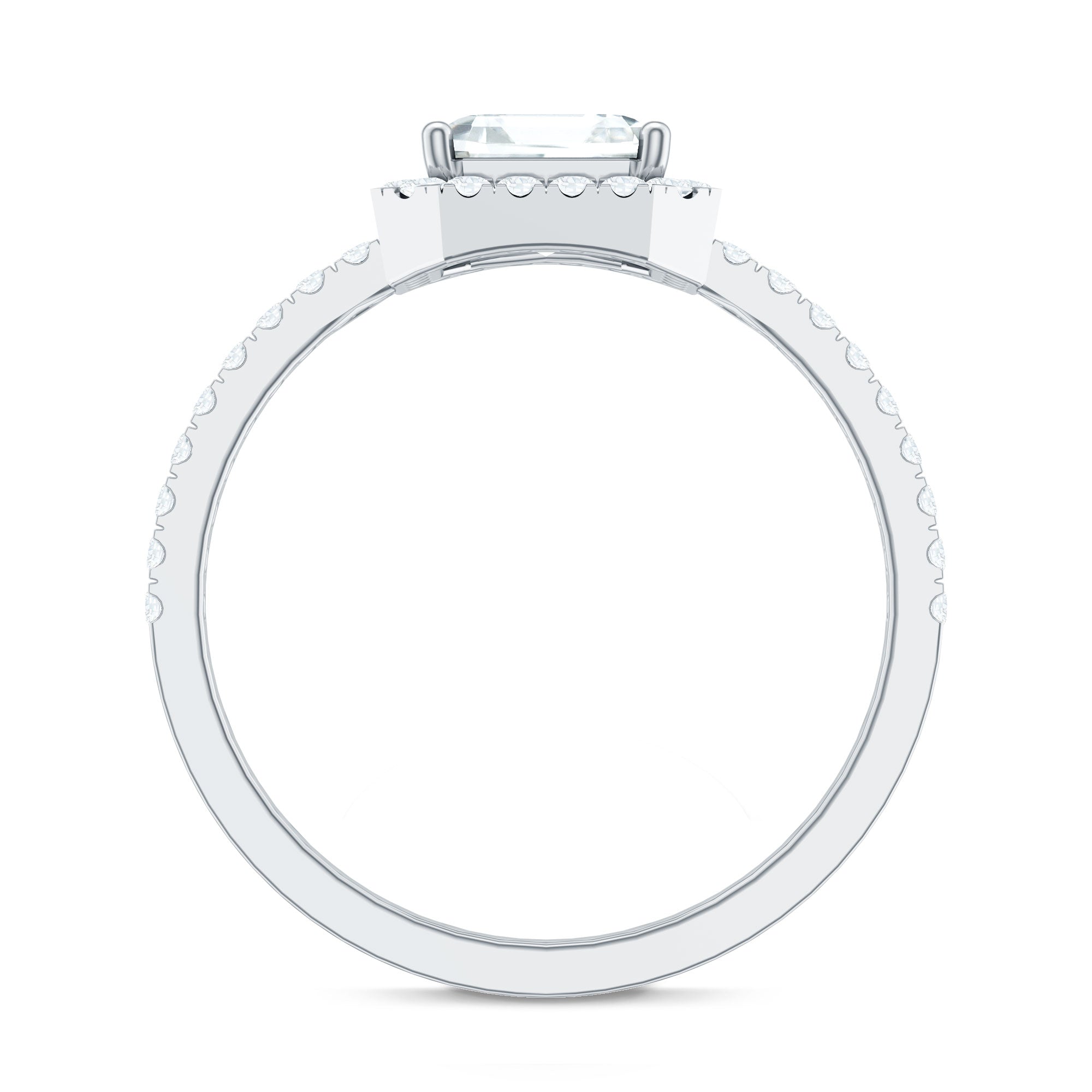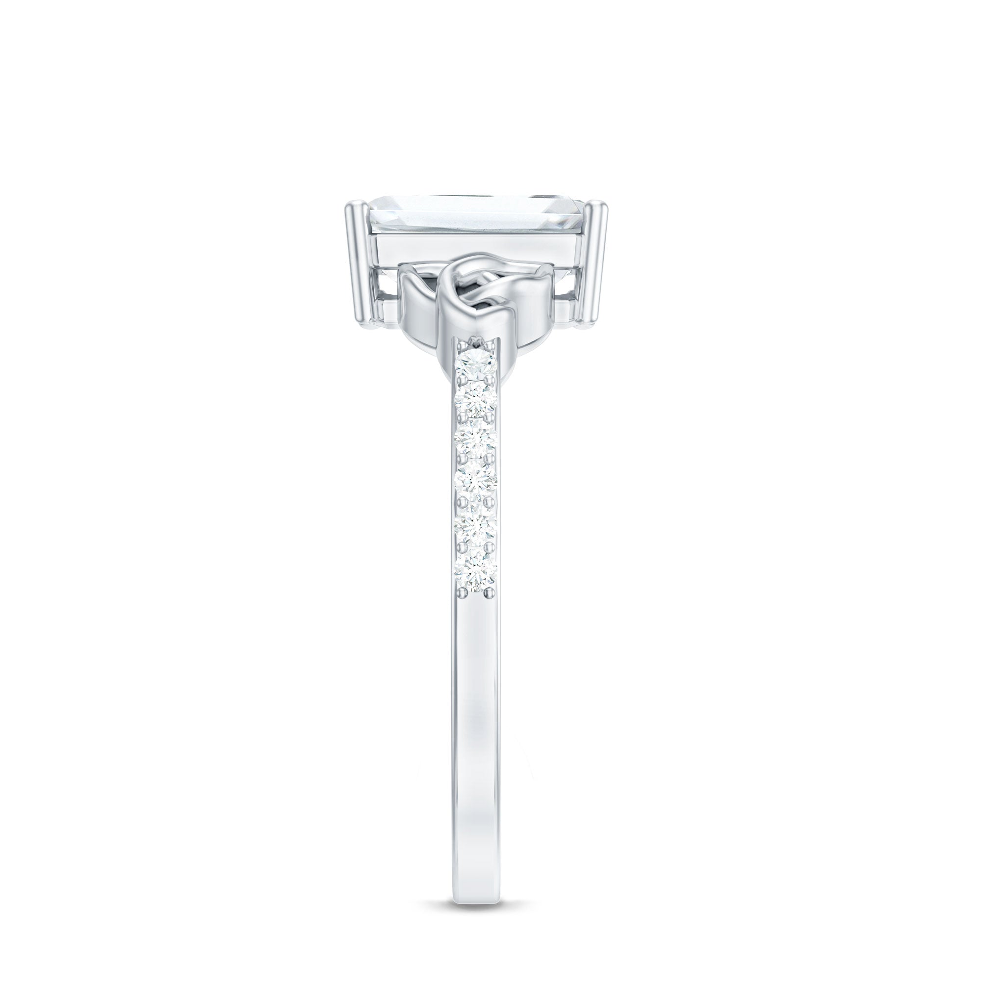 Unconventional and uniquely flashy, this ring style is encased with three stones of Cubic Zirconia arranged uniformly in a row. If you fancy more sparkles in your betrothal ring, a three stone ring is the way forward (since three stones means triple the sparkles). While a Round or Oval Cubic Zirconia Engagement Rings are the most classic options in this ring style, those adorned with Pear, Princess, Cushion, and Emerald Cut are also soaring in popularity. Behind its eye-striking aesthetics, it speaks to each couple uniquely since each of the three stones here sheds light on the couple’s past, present, and future respectively.