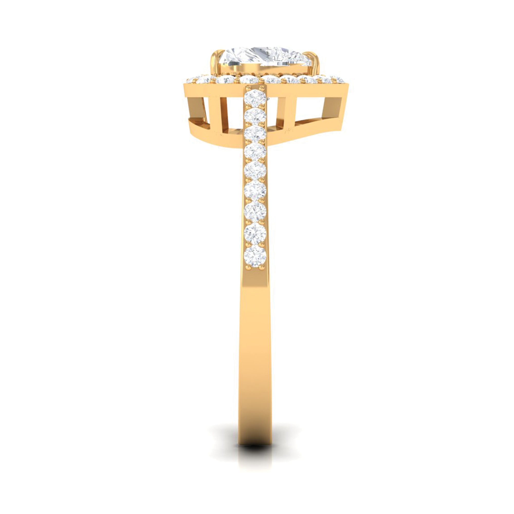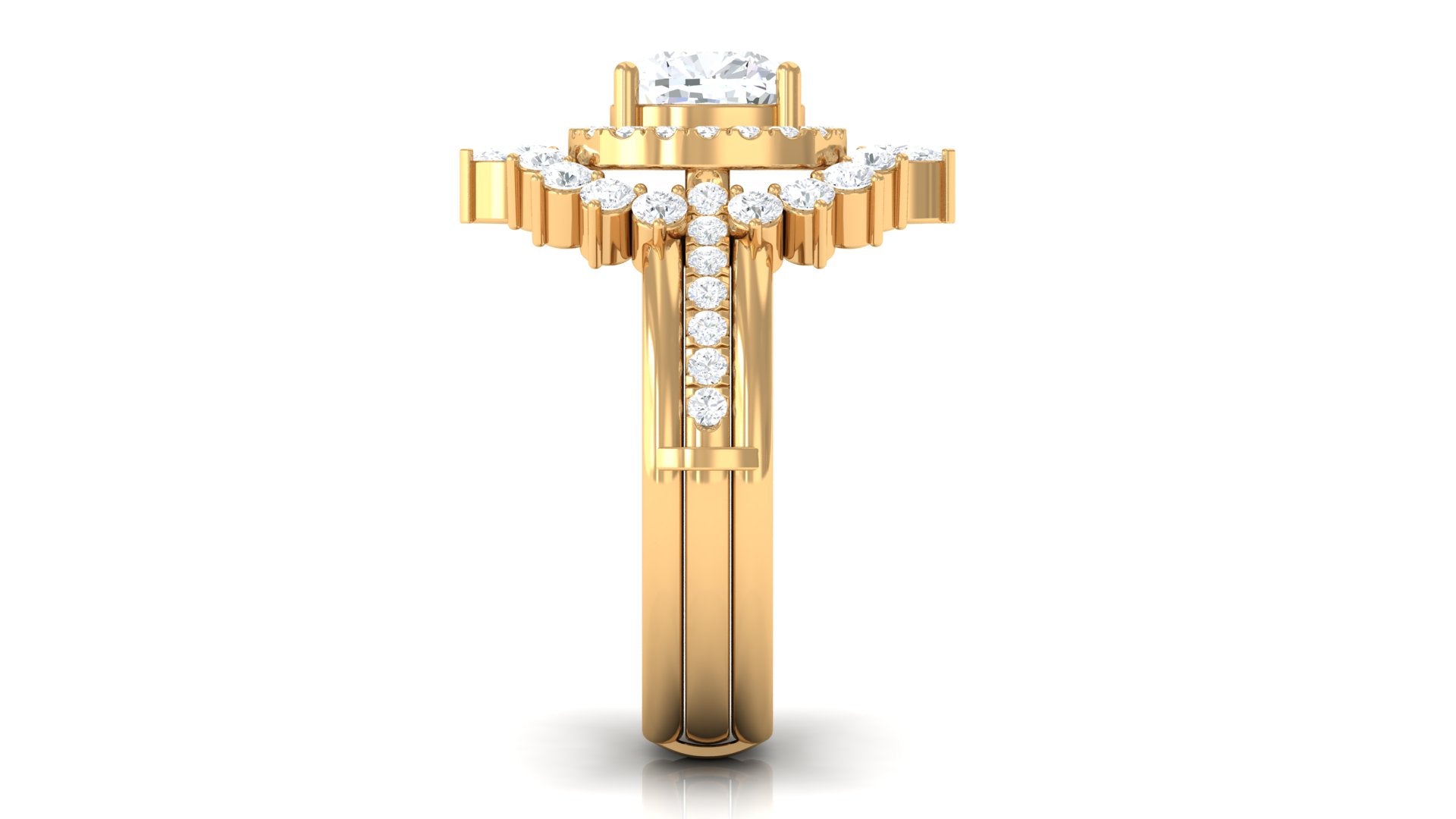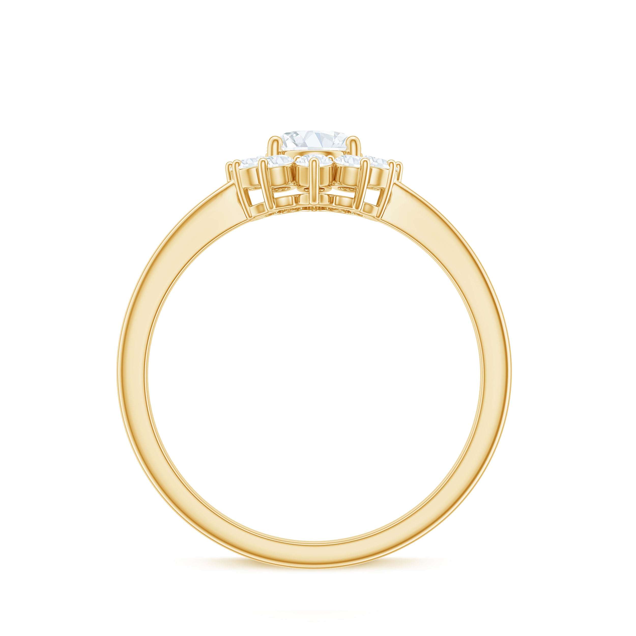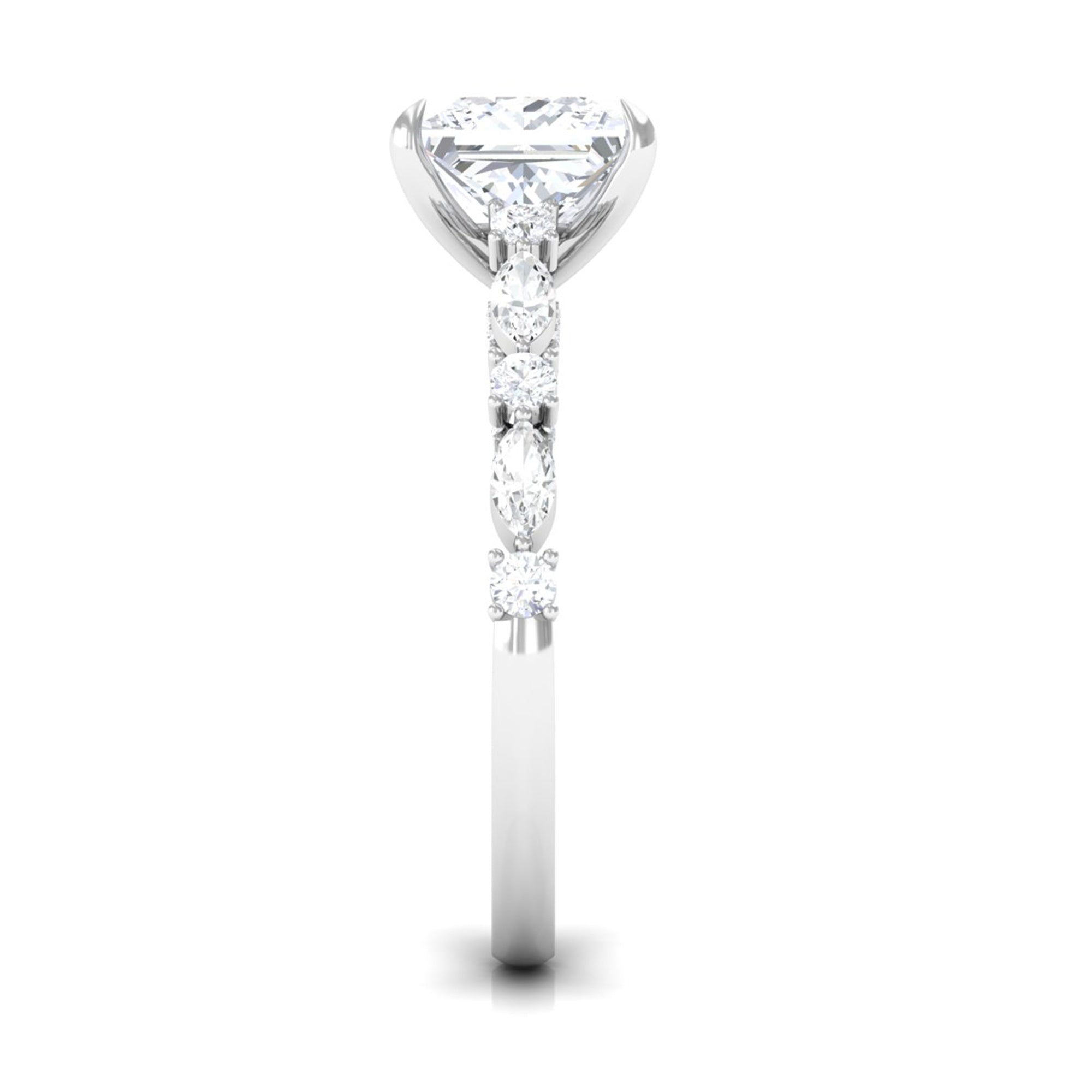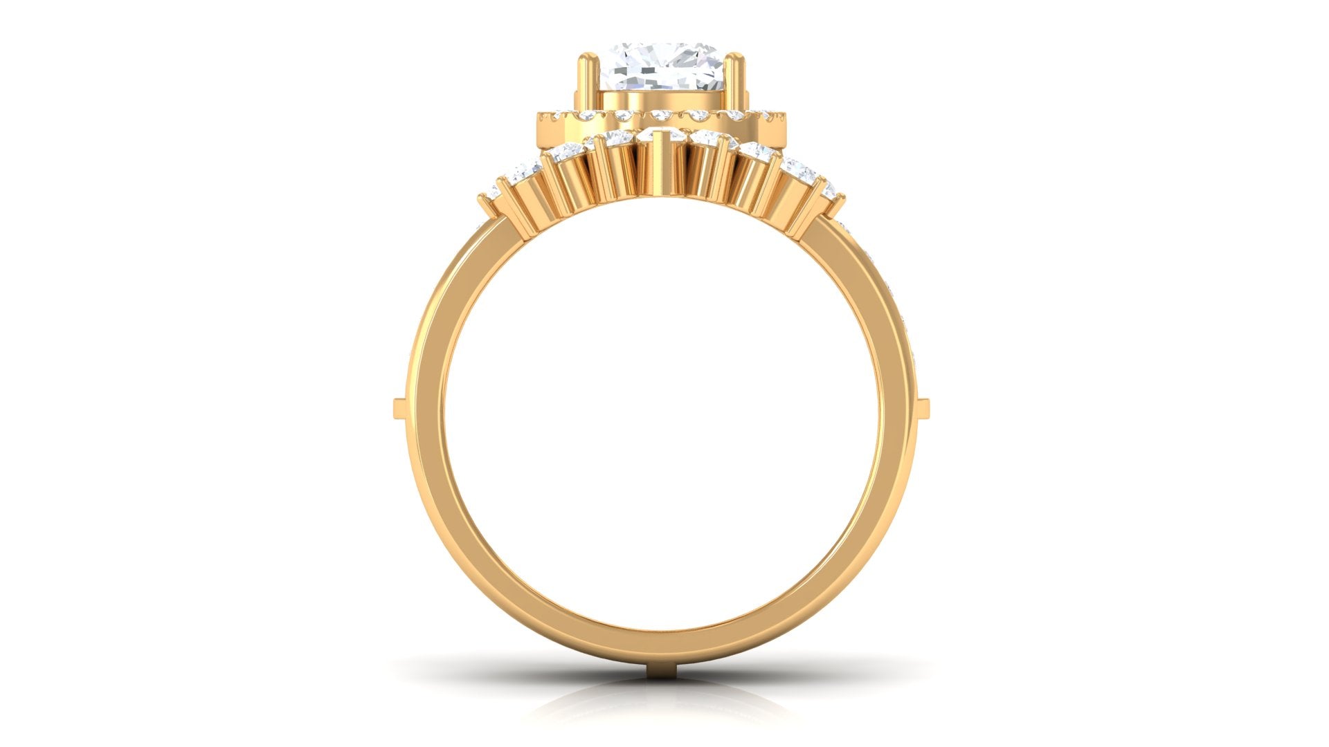 Unconventional and uniquely flashy, this ring style is encased with three stones of Cubic Zirconia arranged uniformly in a row. If you fancy more sparkles in your betrothal ring, a three stone ring is the way forward (since three stones means triple the sparkles). While a Round or Oval Cubic Zirconia Engagement Rings are the most classic options in this ring style, those adorned with Pear, Princess, Cushion, and Emerald Cut are also soaring in popularity. Behind its eye-striking aesthetics, it speaks to each couple uniquely since each of the three stones here sheds light on the couple’s past, present, and future respectively.