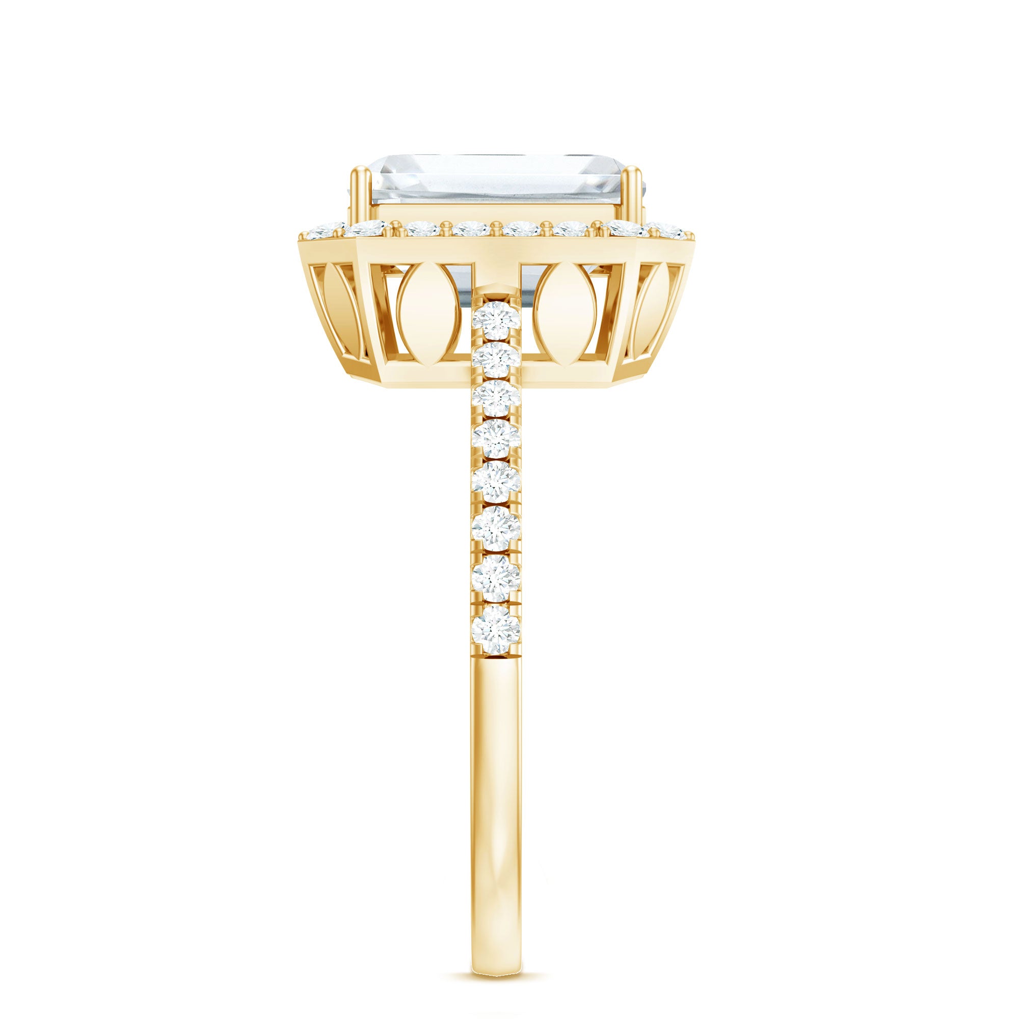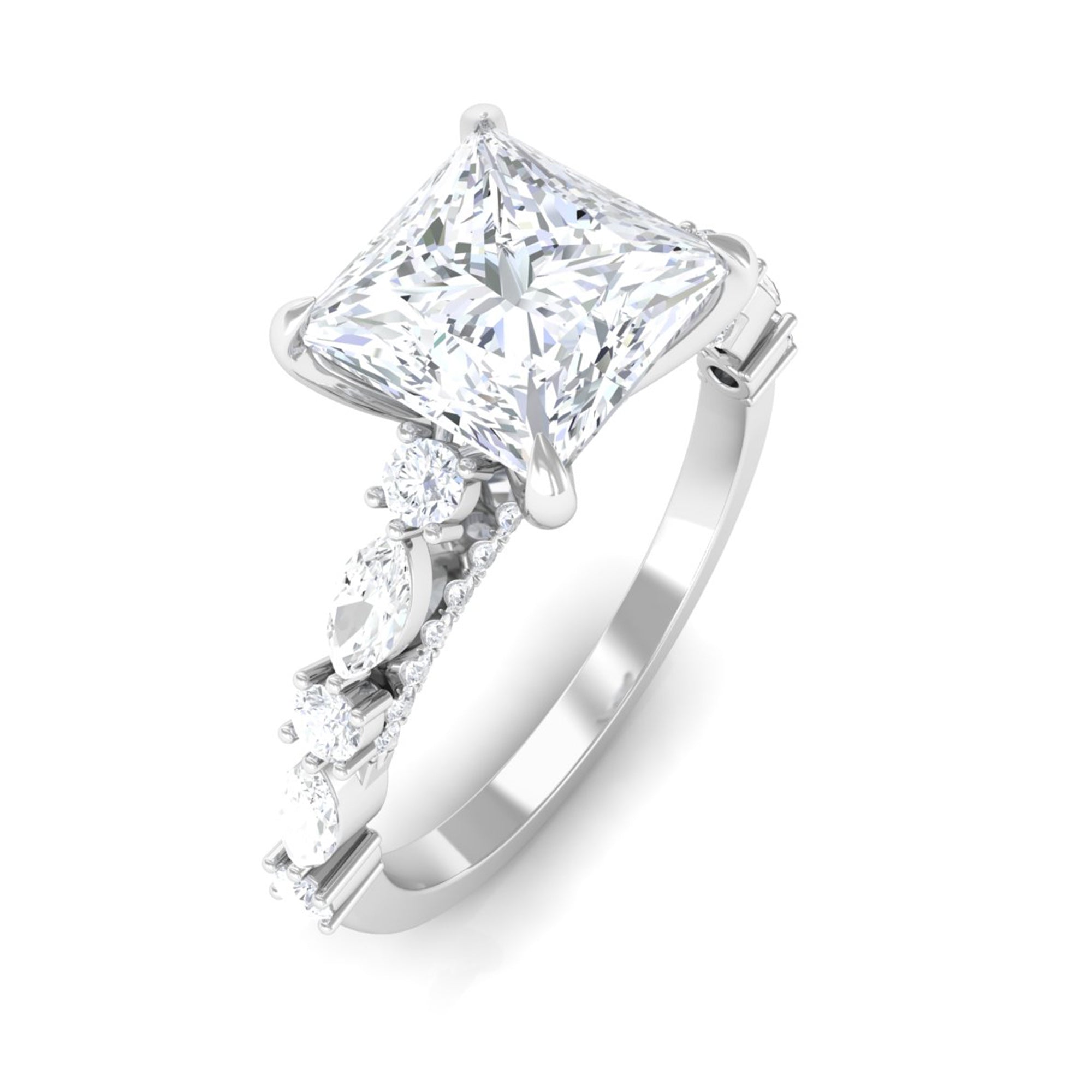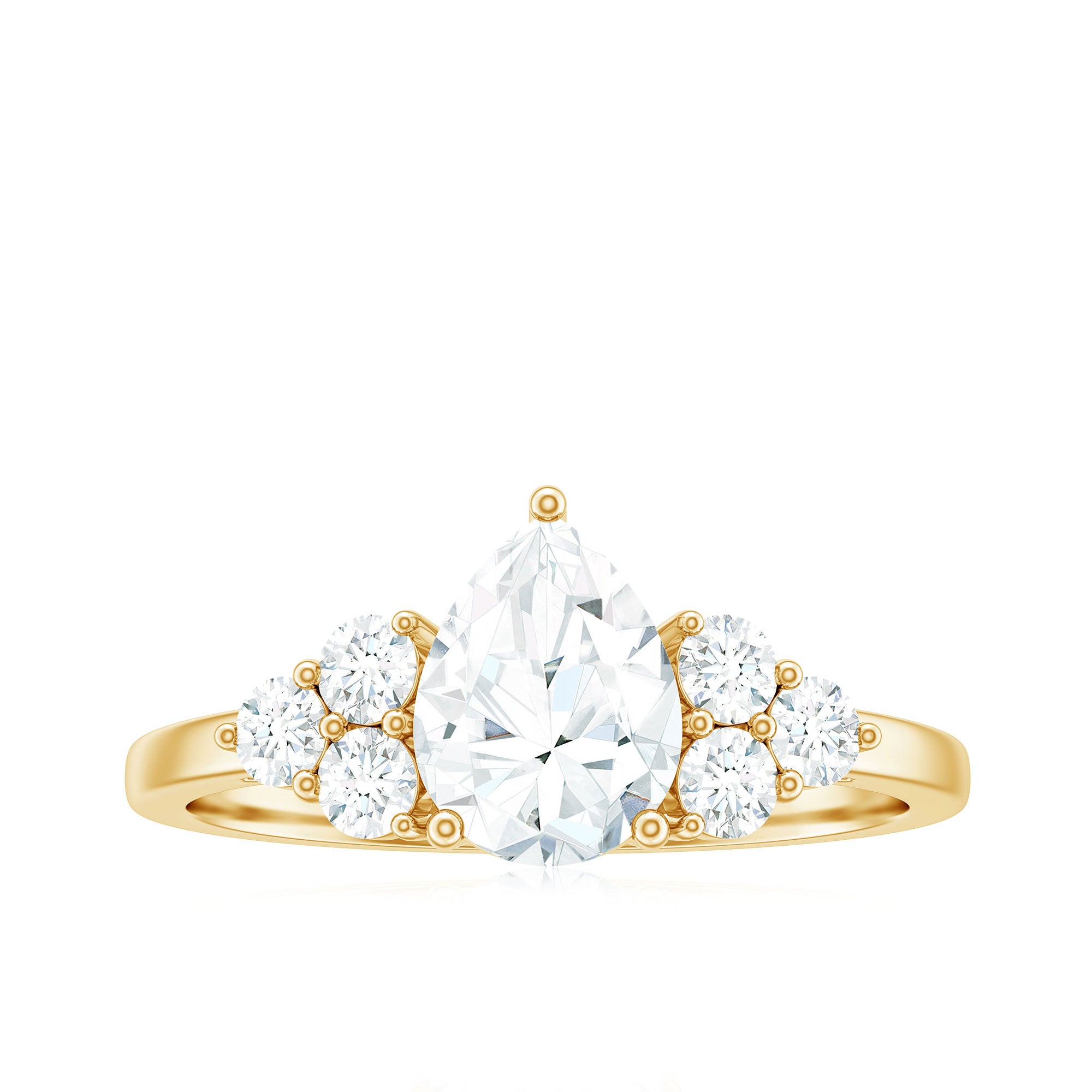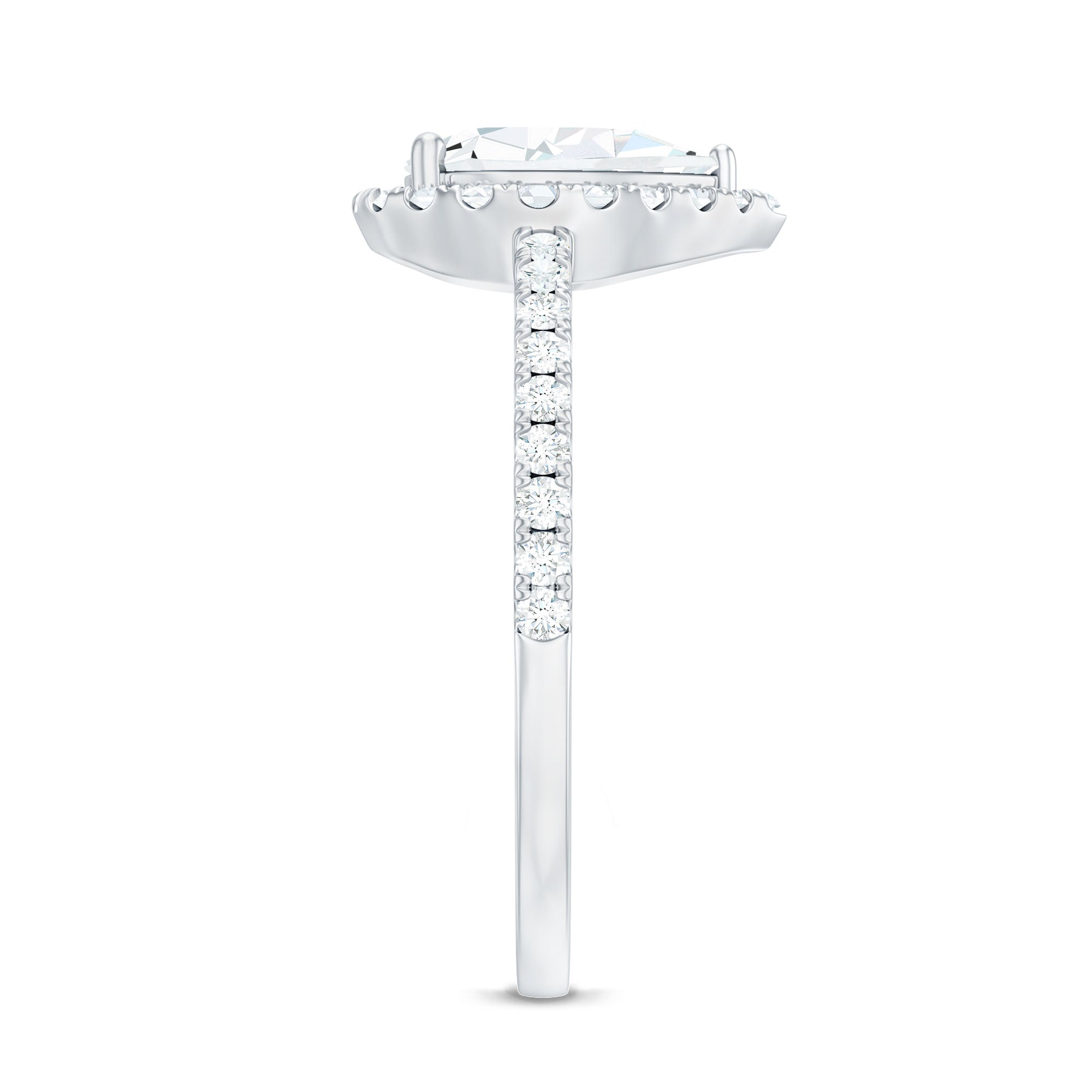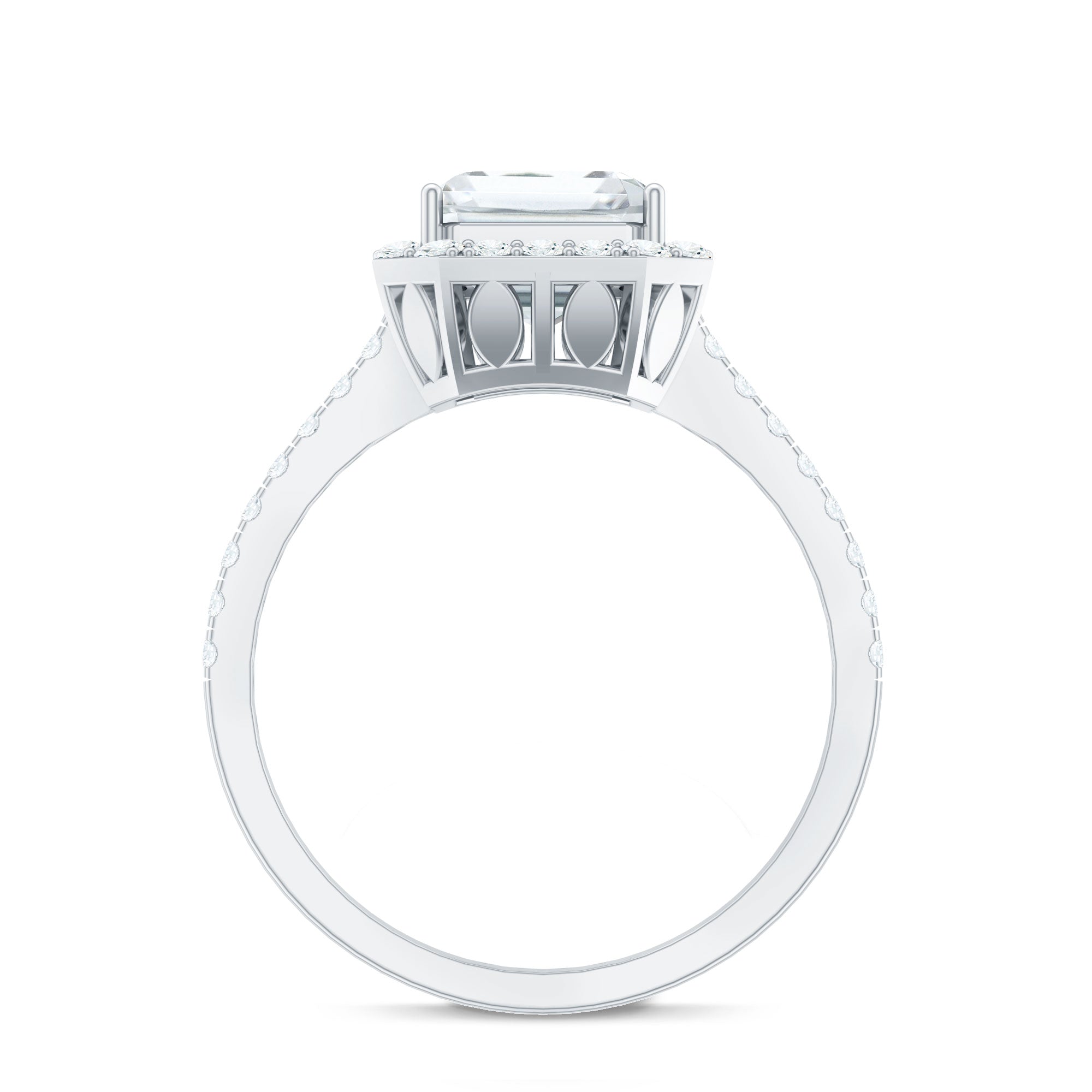Unconventional and uniquely flashy, this ring style is encased with three stones of Cubic Zirconia arranged uniformly in a row. If you fancy more sparkles in your betrothal ring, a three stone ring is the way forward (since three stones means triple the sparkles). While a Round or Oval Cubic Zirconia Engagement Rings are the most classic options in this ring style, those adorned with Pear, Princess, Cushion, and Emerald Cut are also soaring in popularity. Behind its eye-striking aesthetics, it speaks to each couple uniquely since each of the three stones here sheds light on the couple’s past, present, and future respectively.