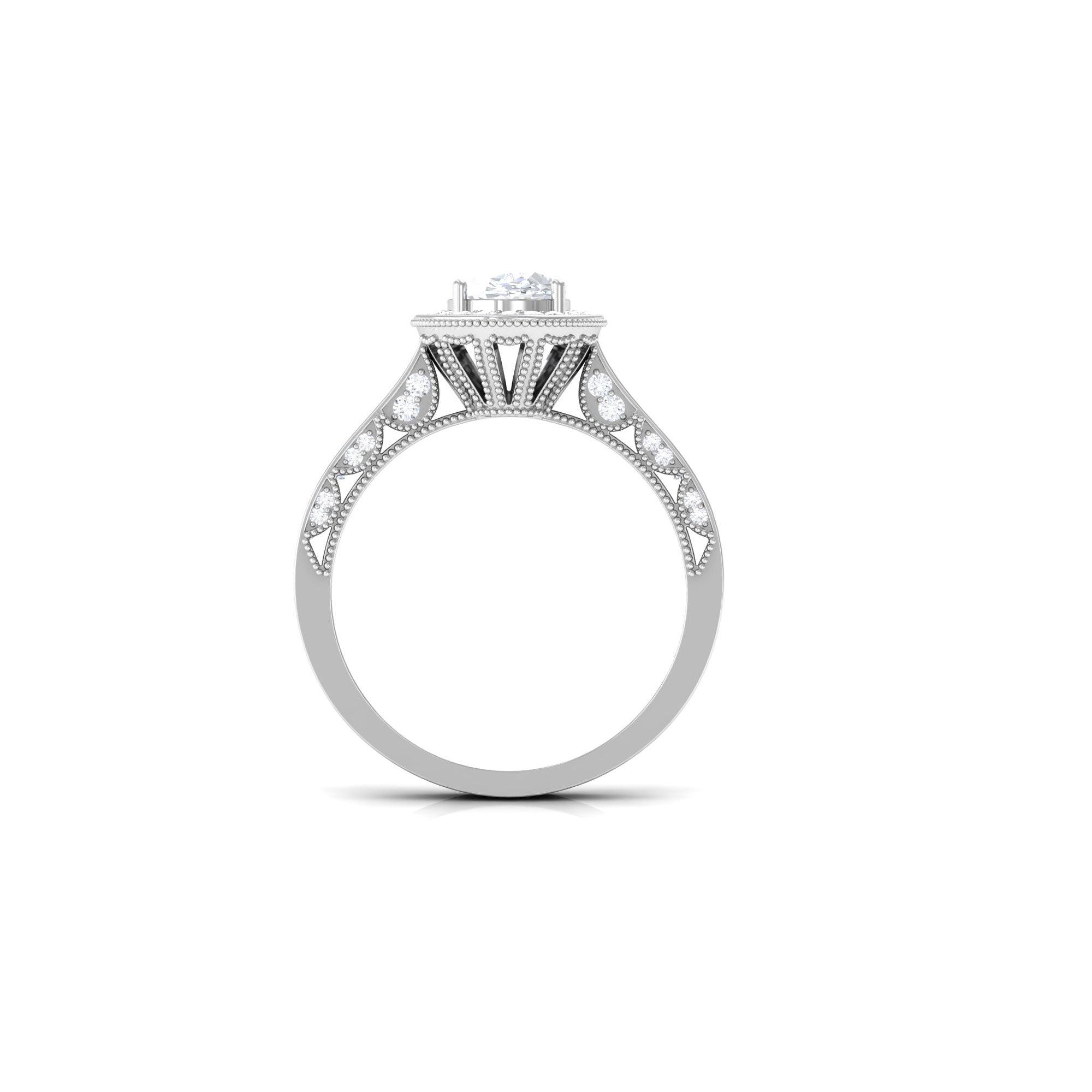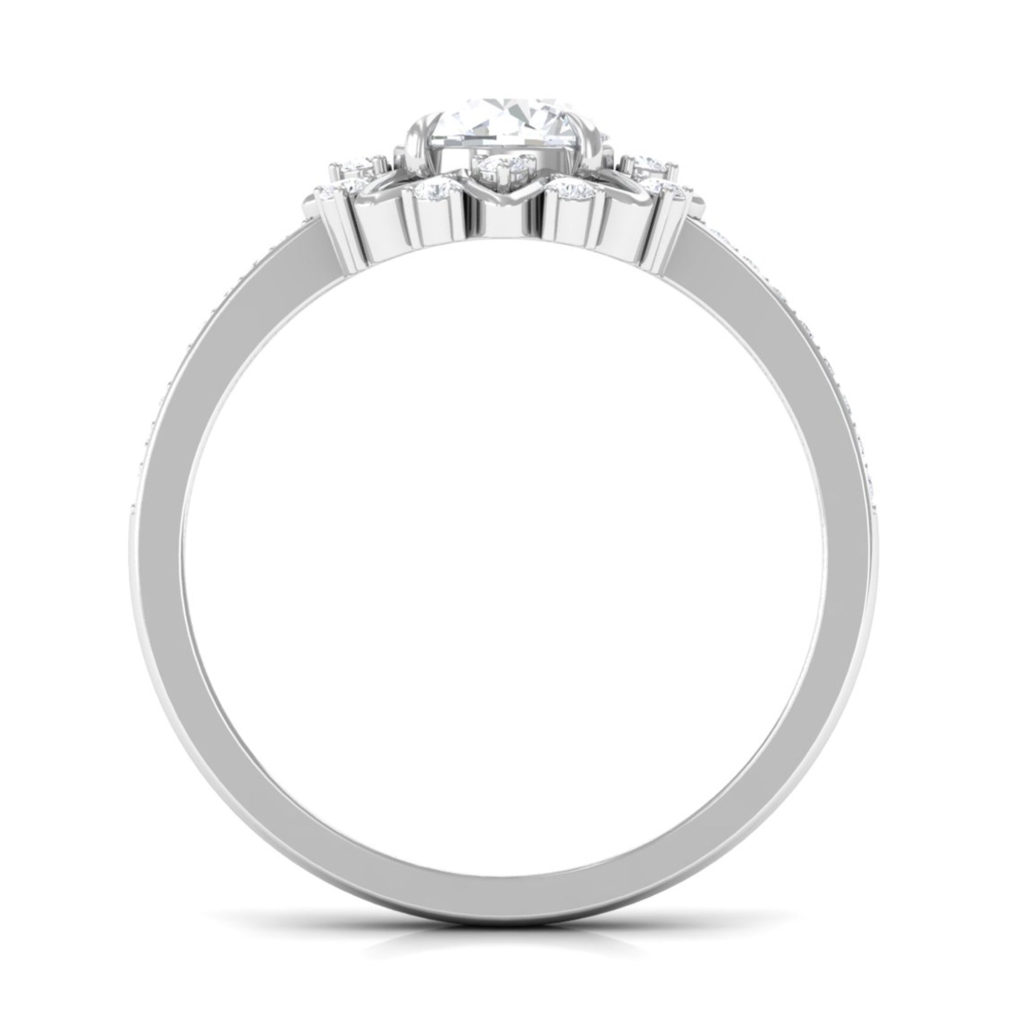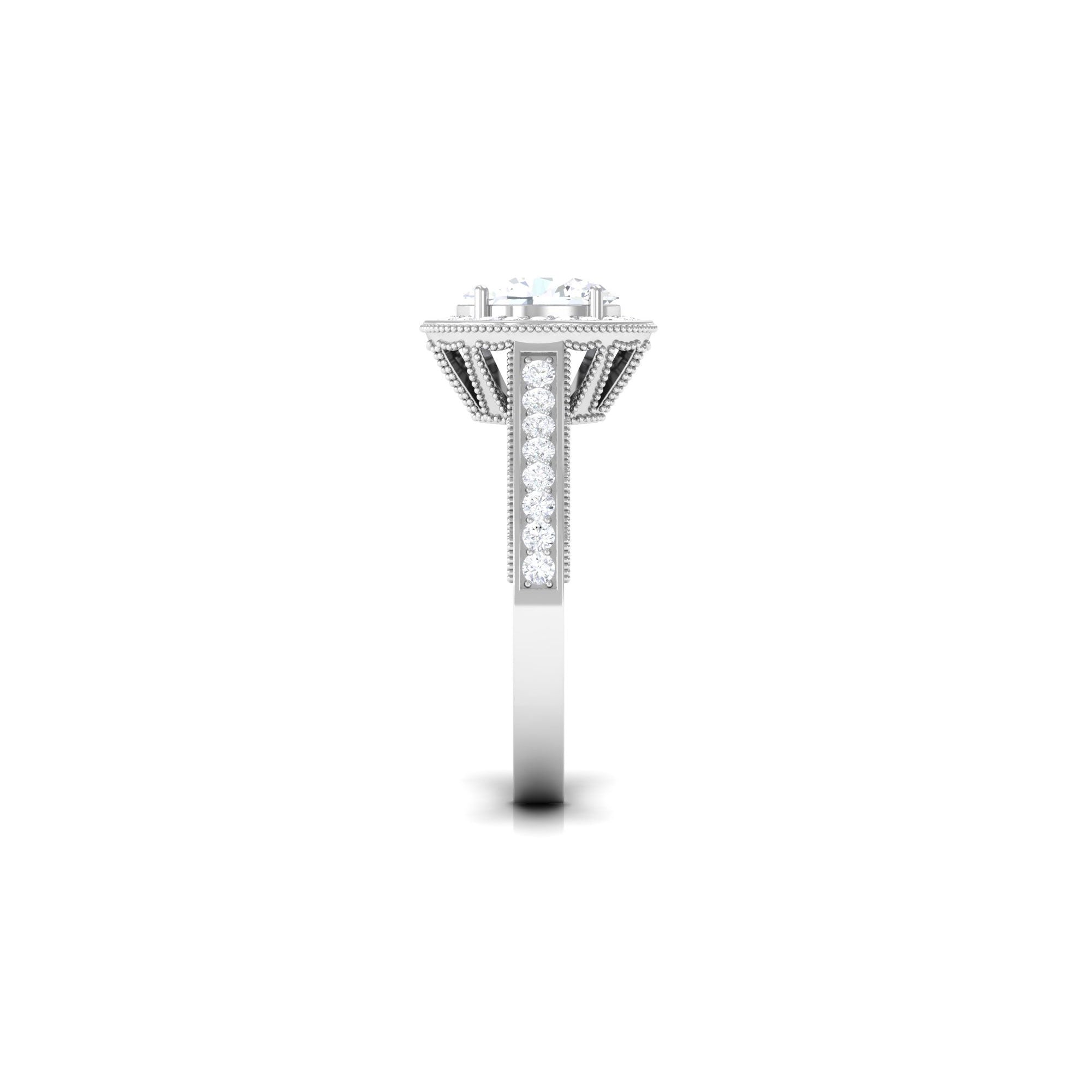 Standing out for its glitz and glam, a Halo encircles the Center Stone with a row of shimmering Cubic Zirconia. As an added advantage, the extra layer of sparkles here deceives the eye by making the center stone appear larger in size. So, if she is all about the bling, a Halo Style Cubic Zirconia Engagement Ring for Women seems like the perfect pick.
