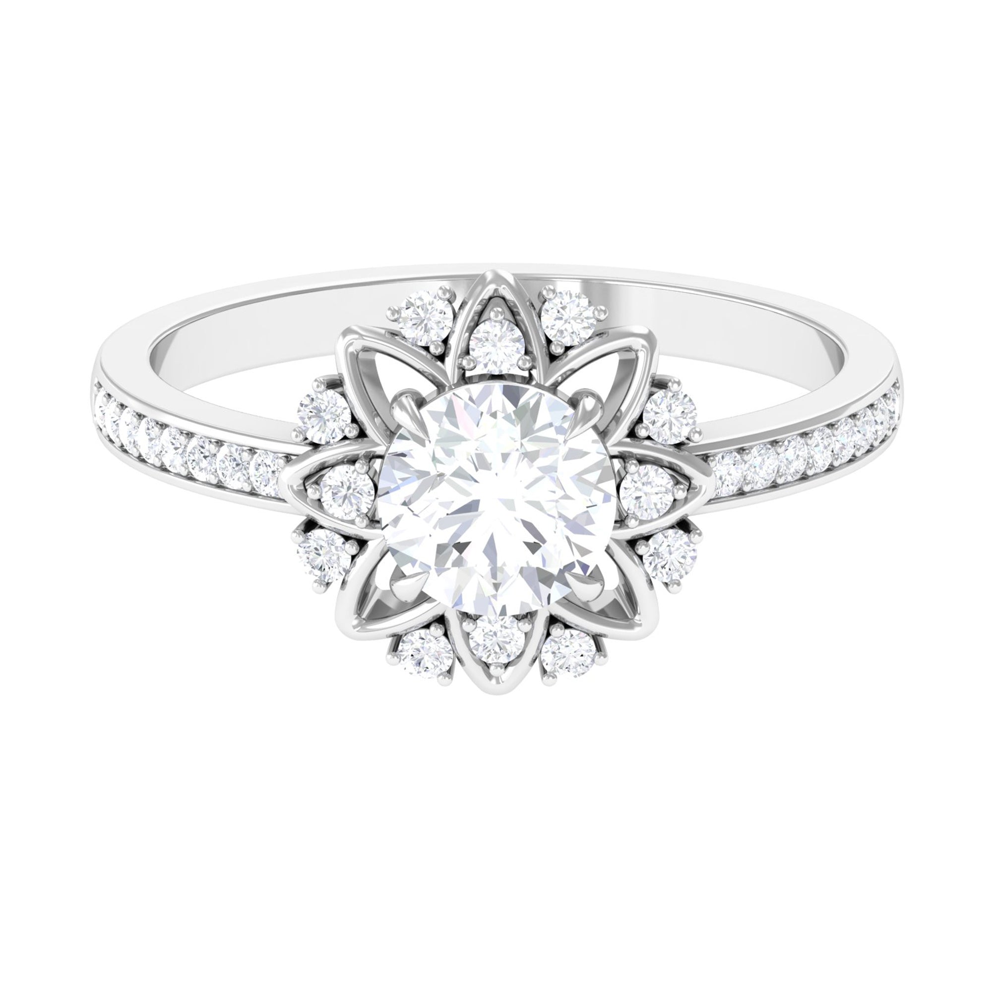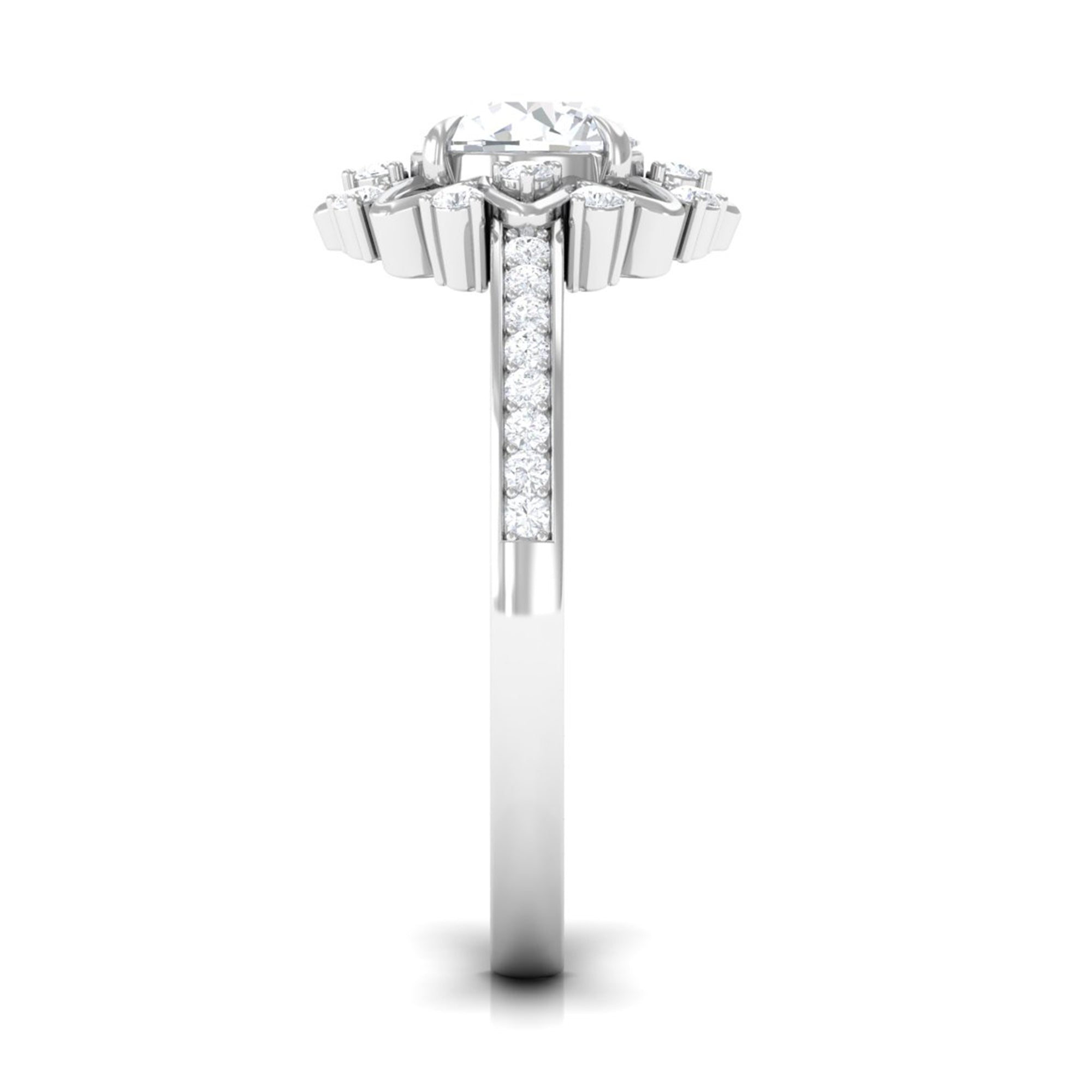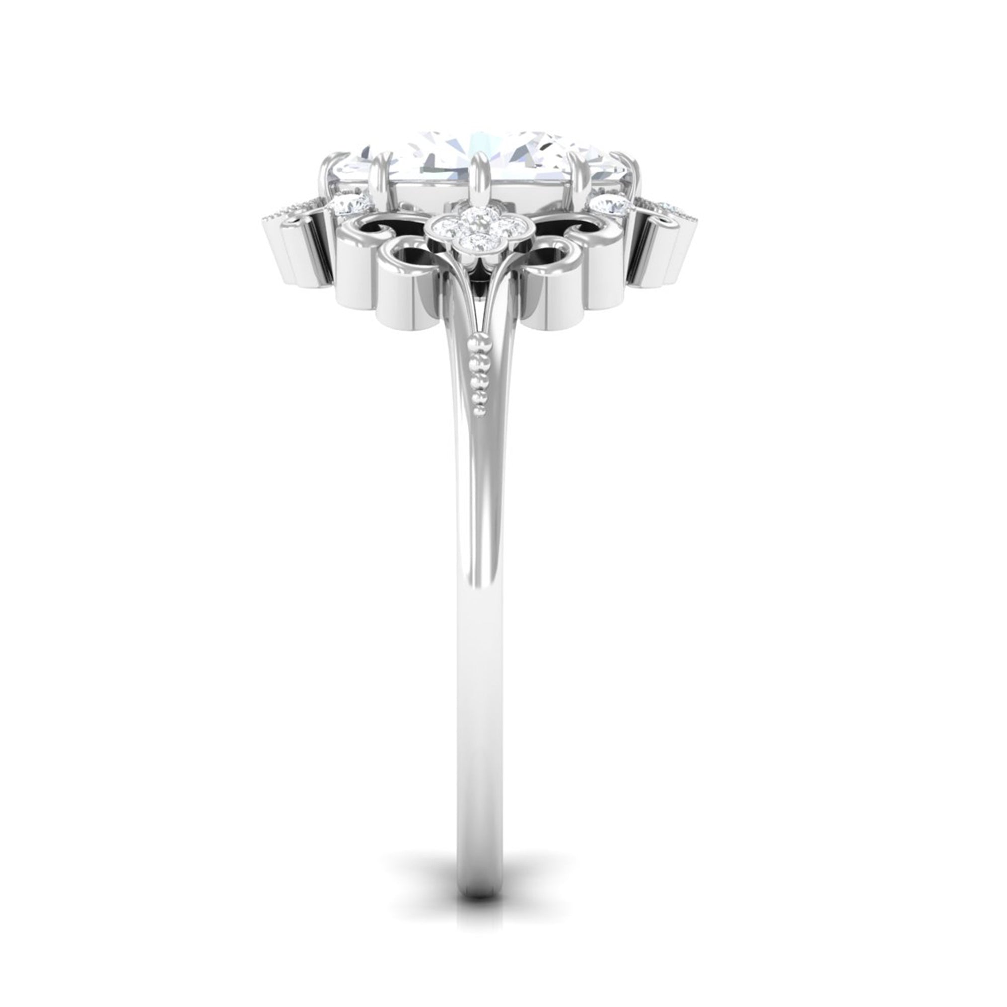Standing out for its glitz and glam, a Halo encircles the Center Stone with a row of shimmering Cubic Zirconia. As an added advantage, the extra layer of sparkles here deceives the eye by making the center stone appear larger in size. So, if she is all about the bling, a Halo Style Cubic Zirconia Engagement Ring for Women seems like the perfect pick.