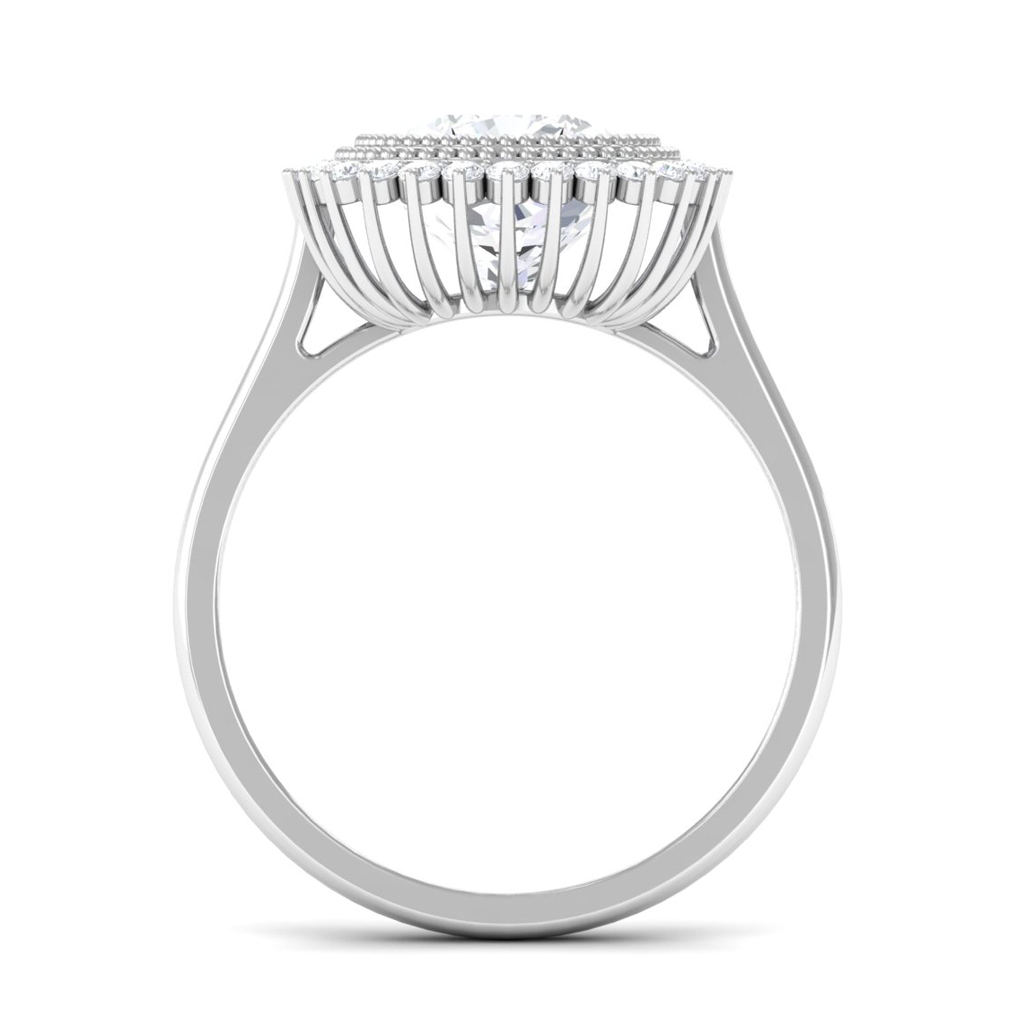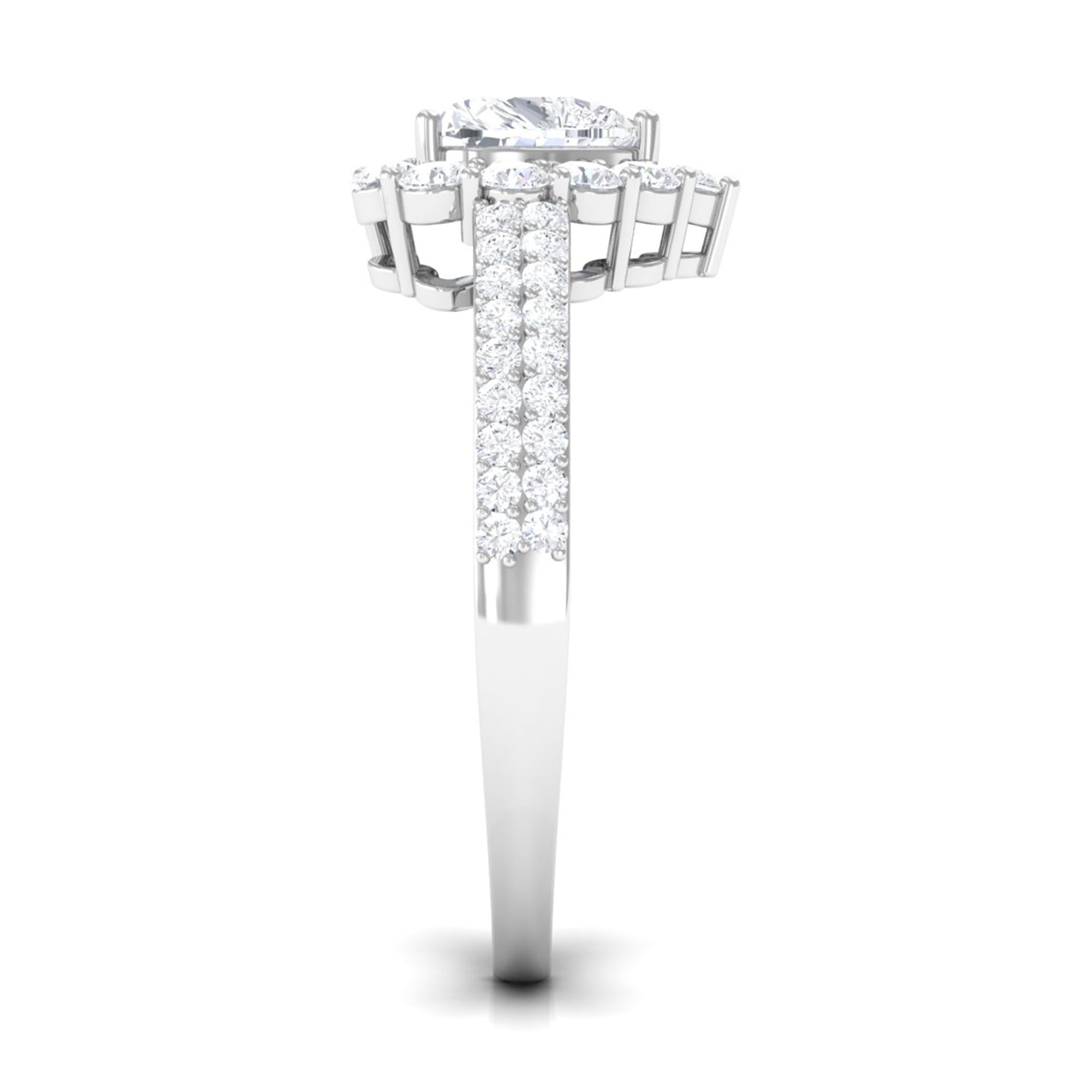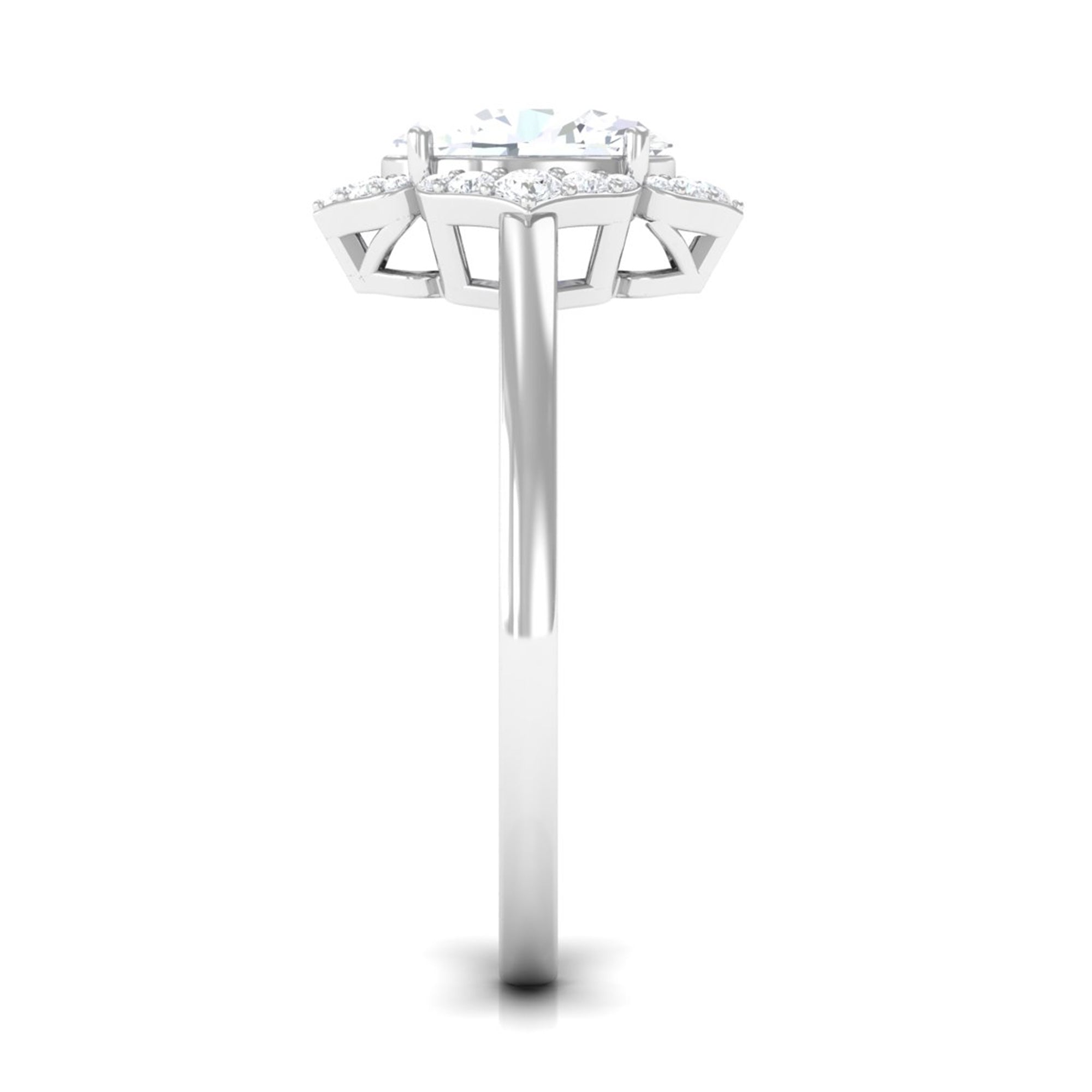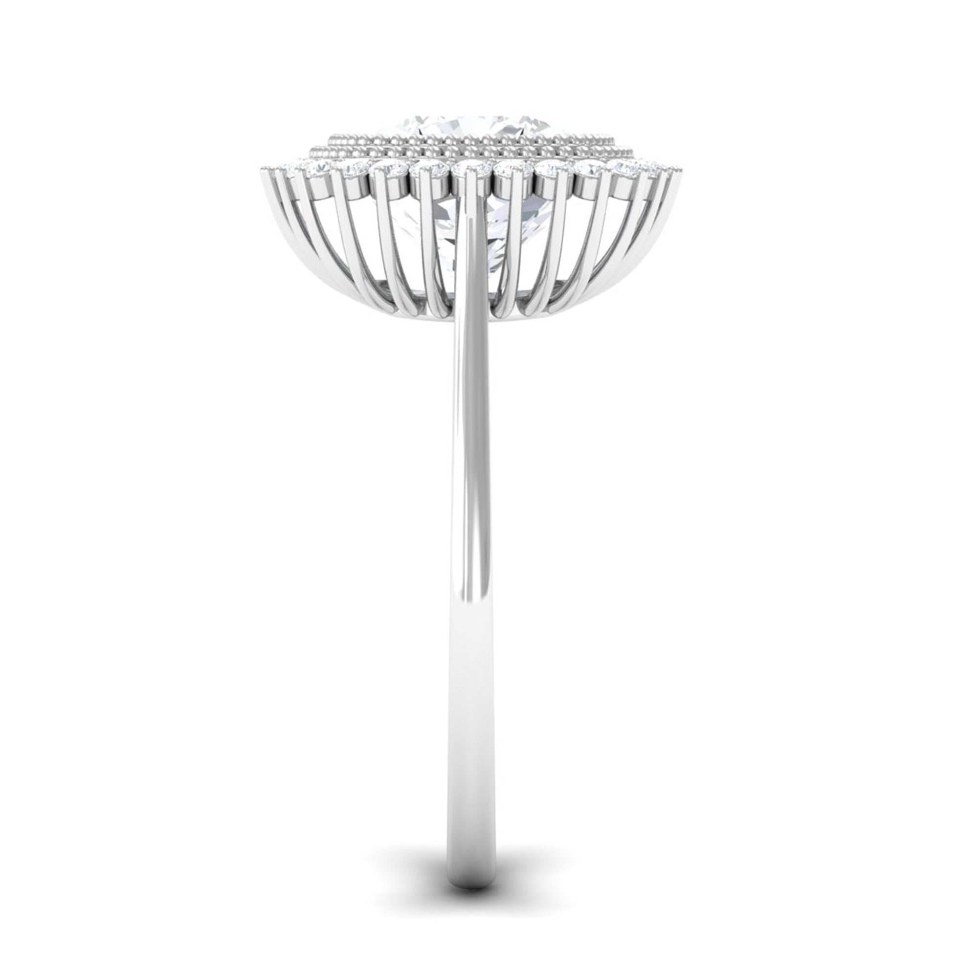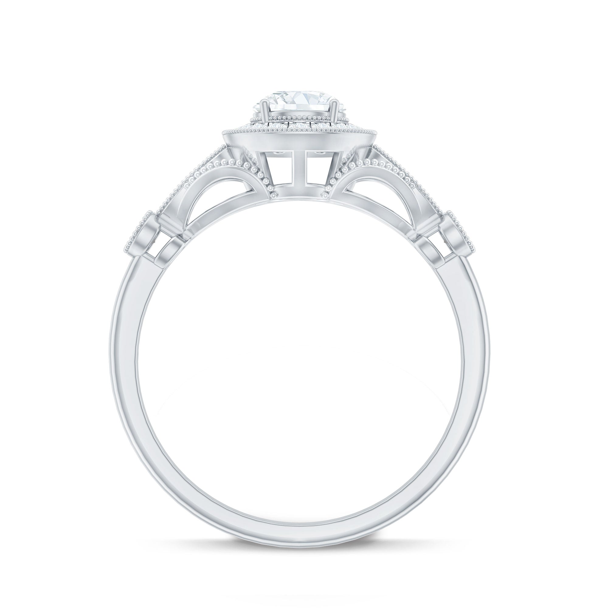 Standing out for its glitz and glam, a Halo encircles the Center Stone with a row of shimmering Cubic Zirconia. As an added advantage, the extra layer of sparkles here deceives the eye by making the center stone appear larger in size. So, if she is all about the bling, a Halo Style Cubic Zirconia Engagement Ring for Women seems like the perfect pick.