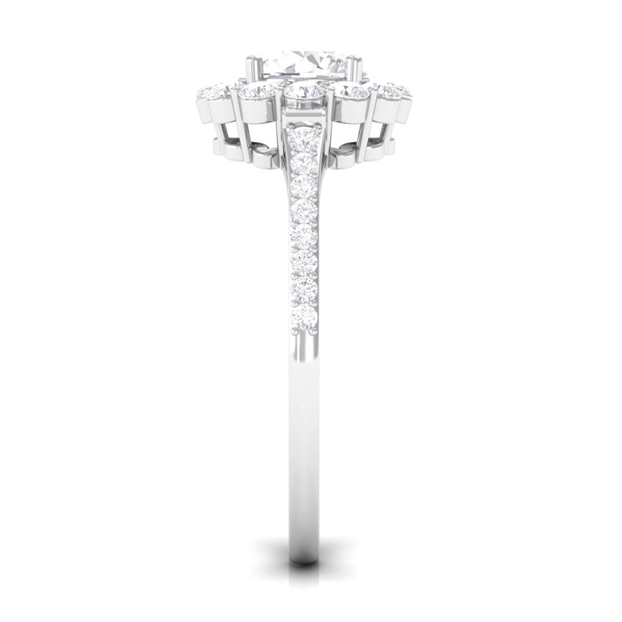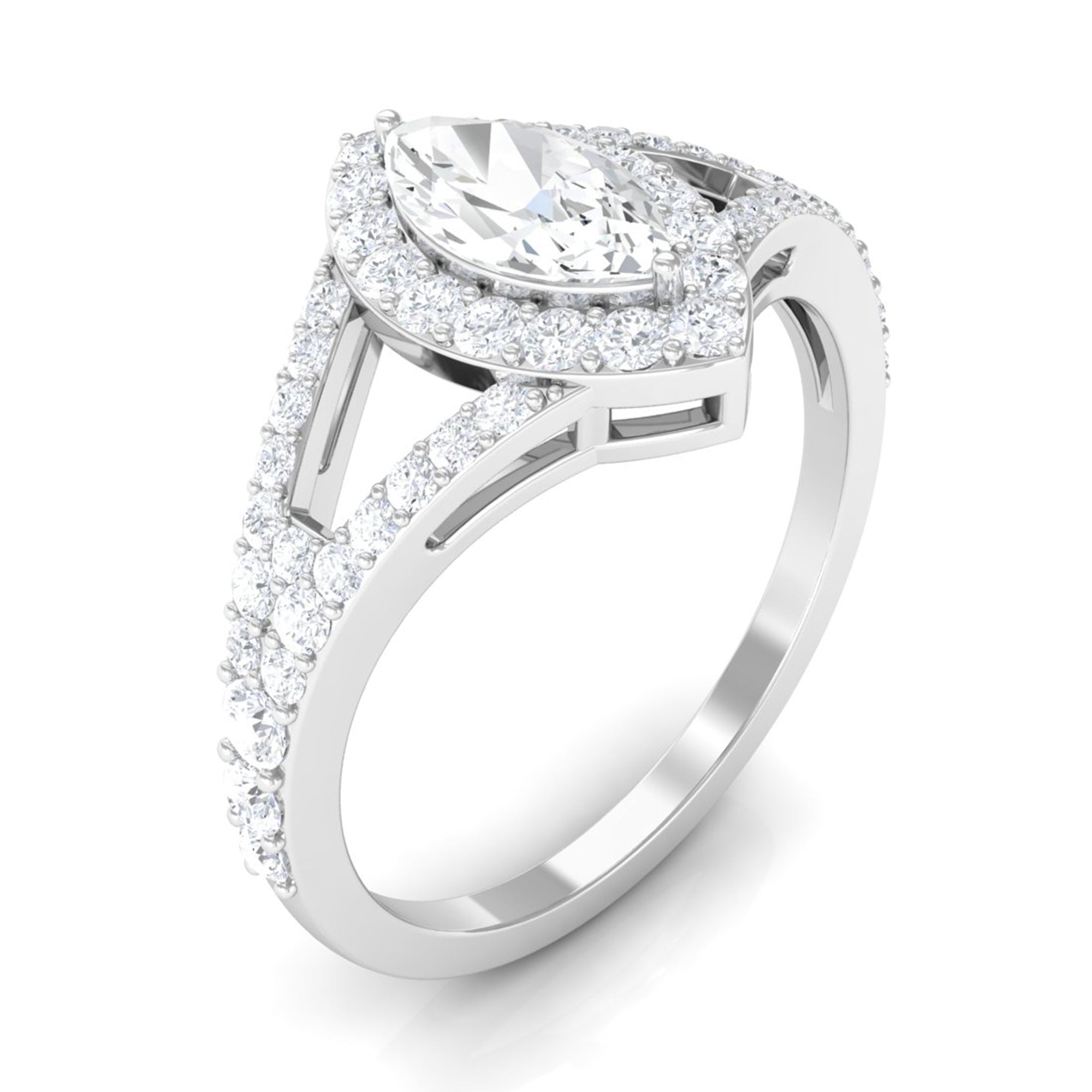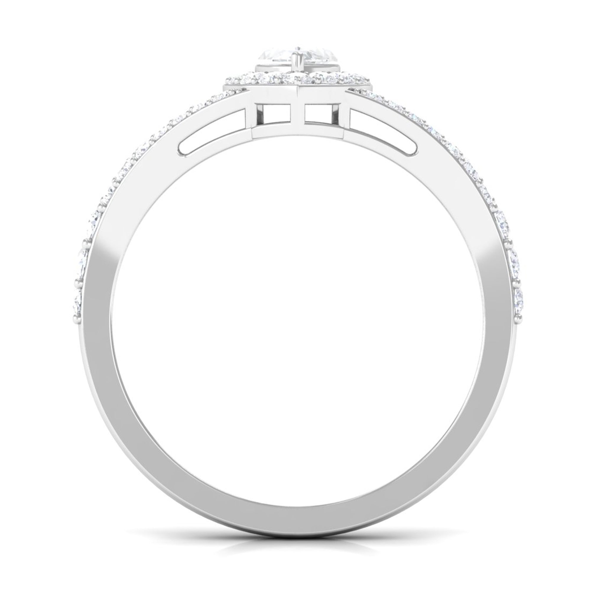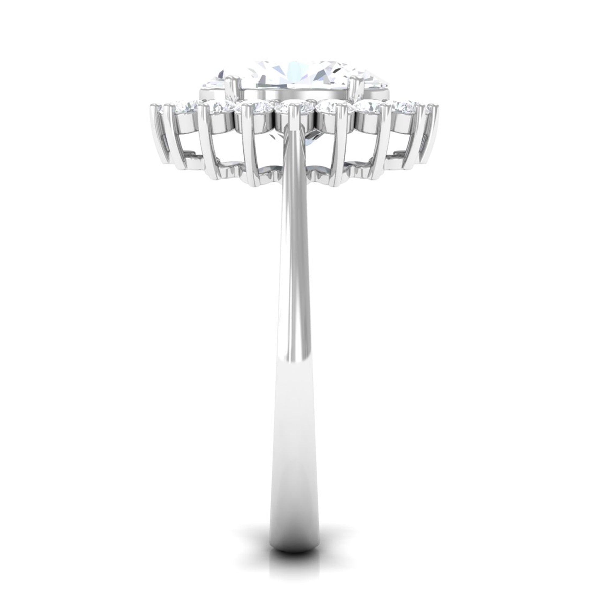 Standing out for its glitz and glam, a Halo encircles the Center Stone with a row of shimmering Cubic Zirconia. As an added advantage, the extra layer of sparkles here deceives the eye by making the center stone appear larger in size. So, if she is all about the bling, a Halo Style Cubic Zirconia Engagement Ring for Women seems like the perfect pick.