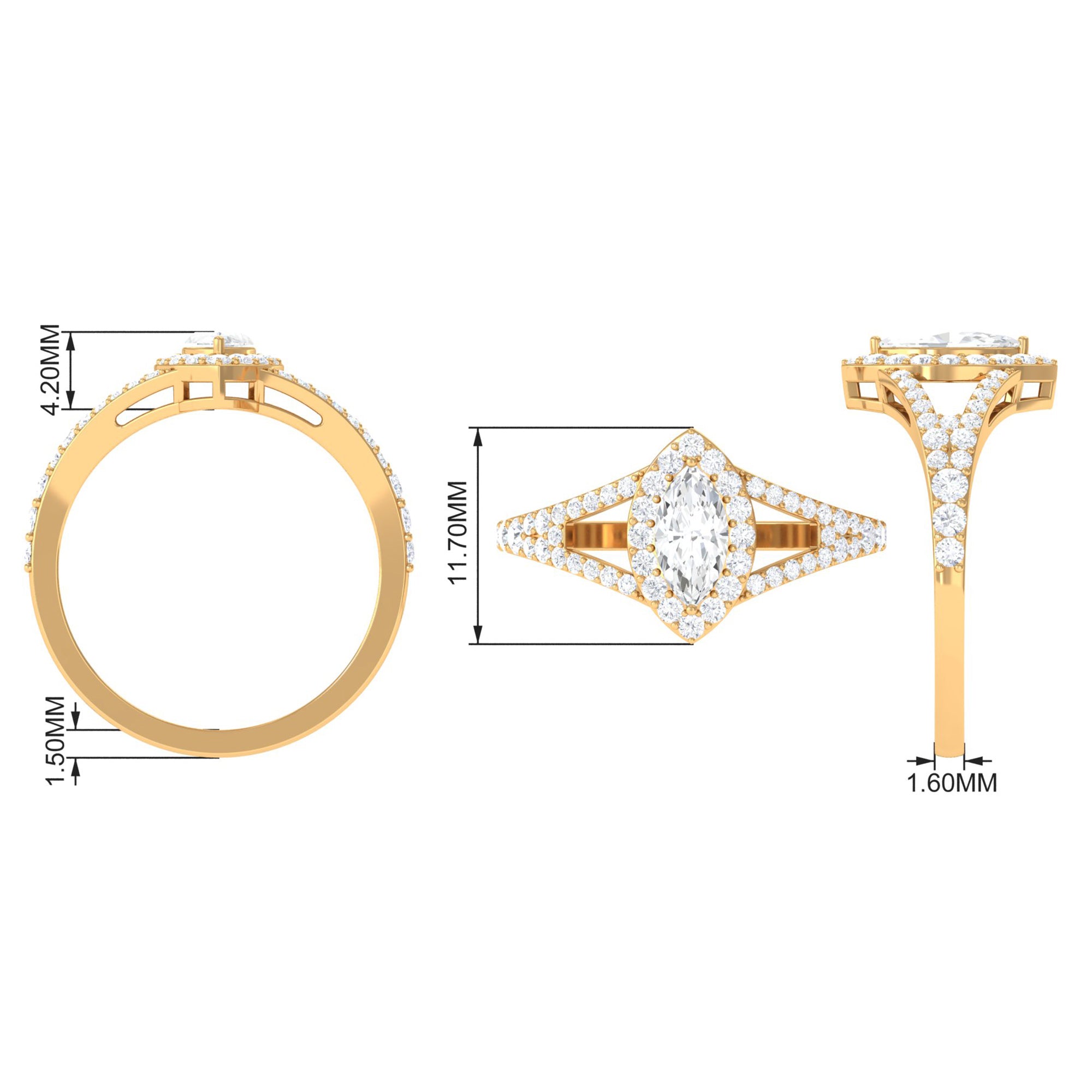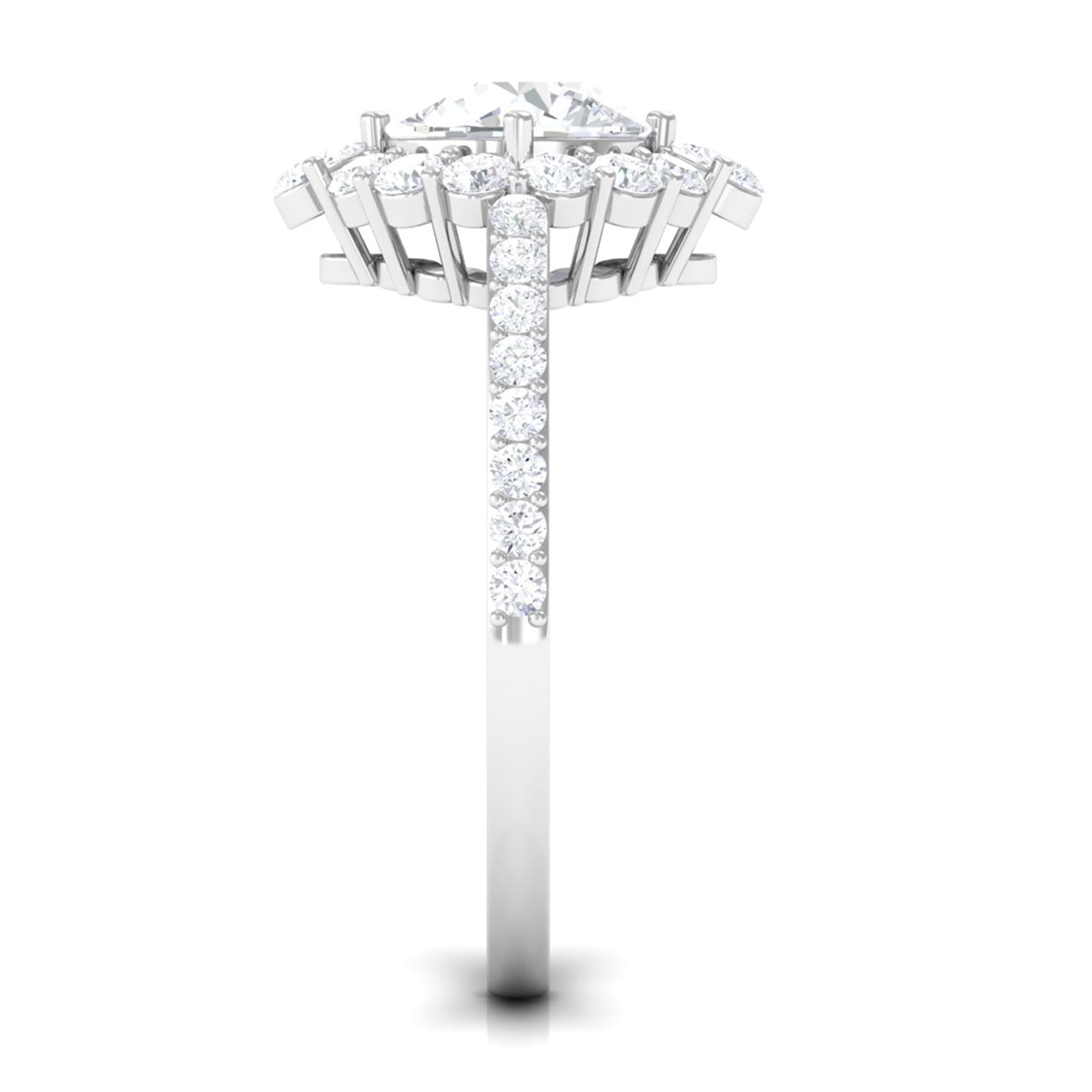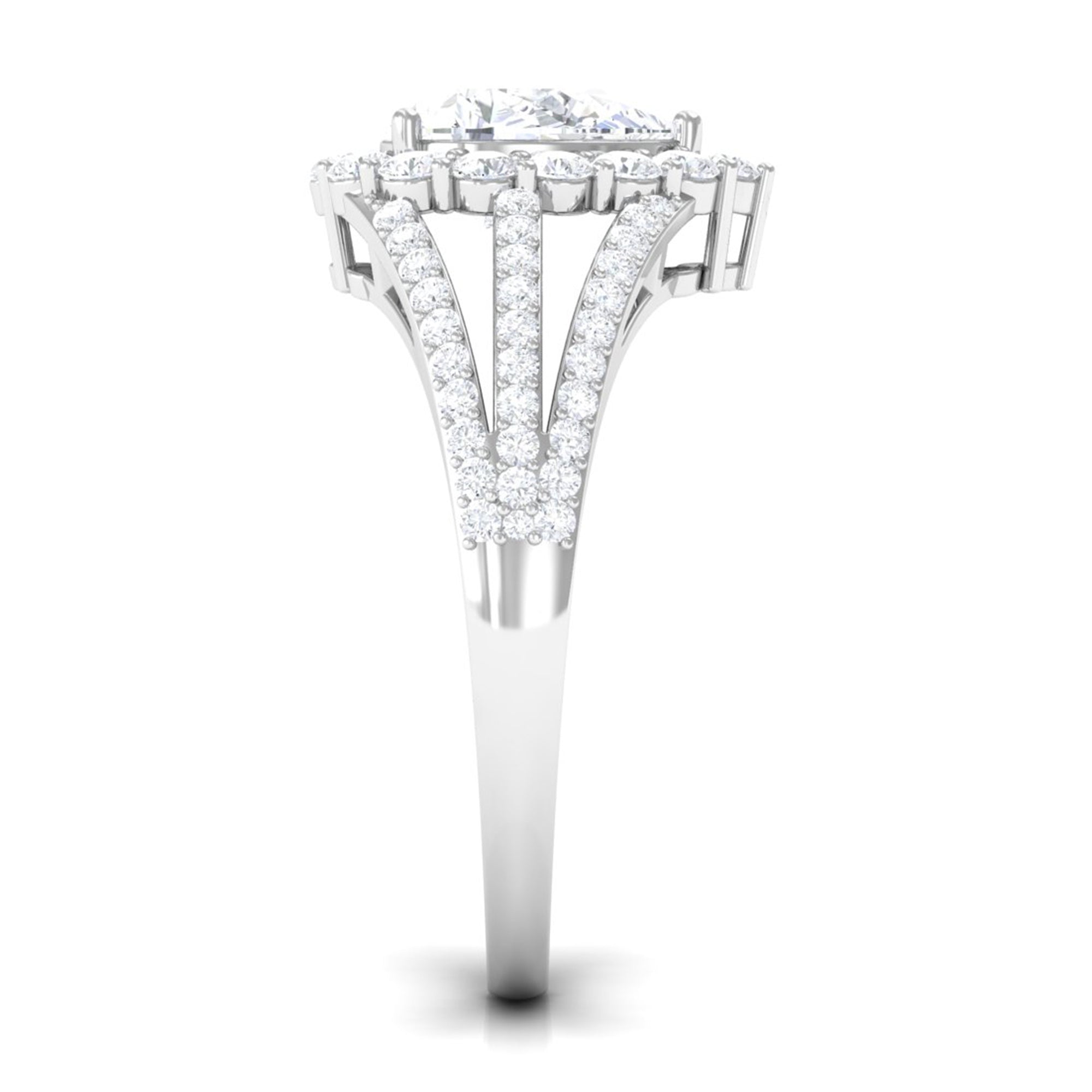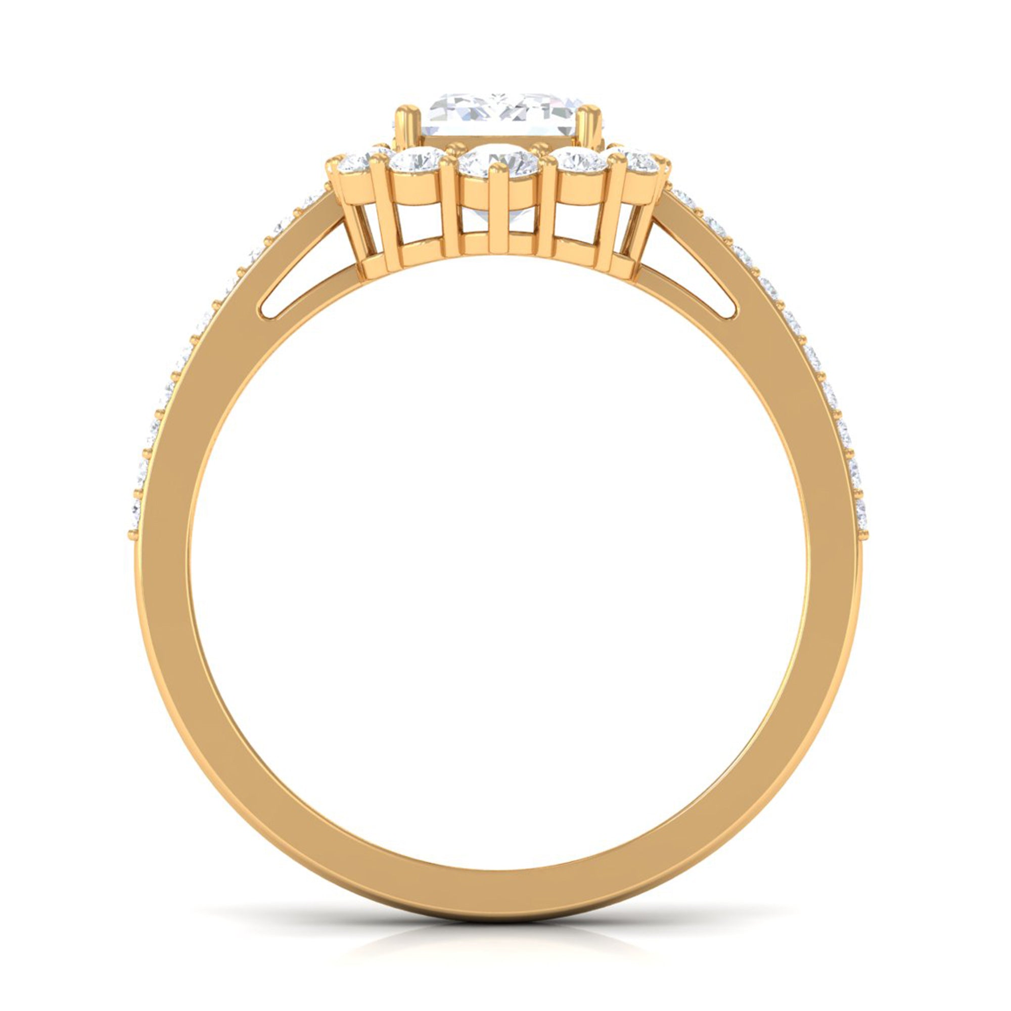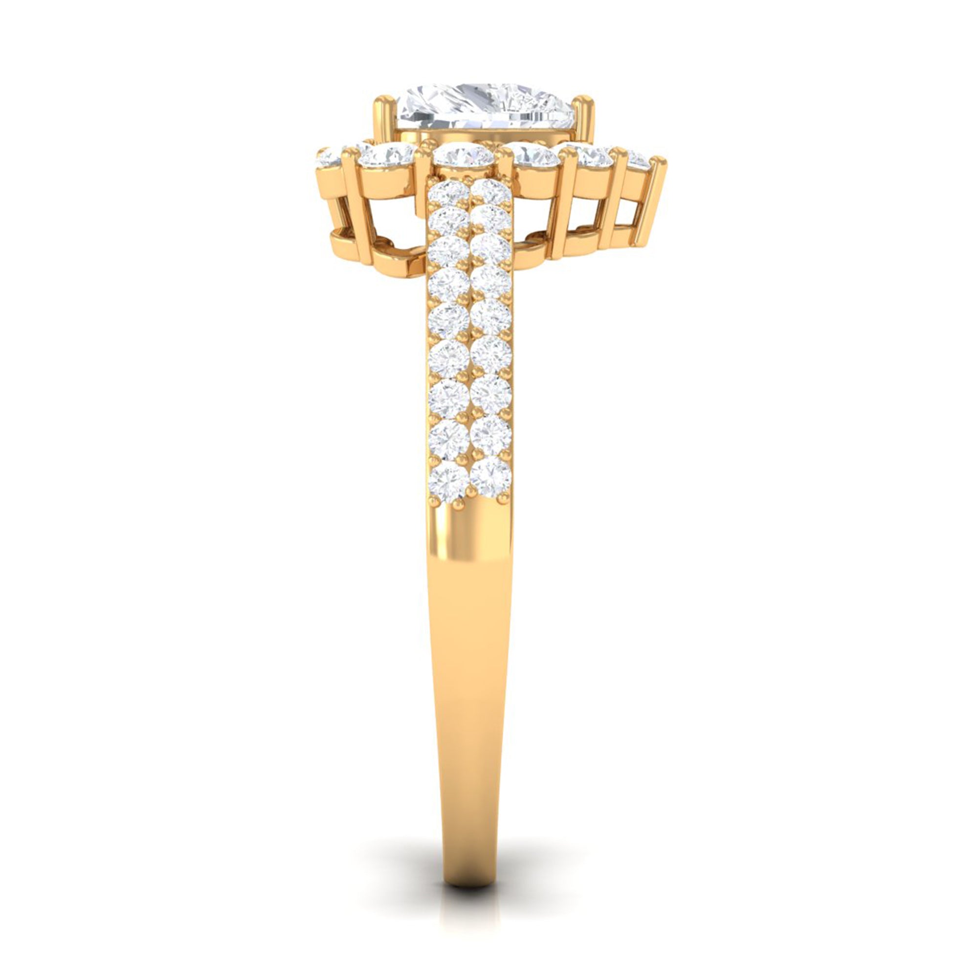 Standing out for its glitz and glam, a Halo encircles the Center Stone with a row of shimmering Cubic Zirconia. As an added advantage, the extra layer of sparkles here deceives the eye by making the center stone appear larger in size. So, if she is all about the bling, a Halo Style Cubic Zirconia Engagement Ring for Women seems like the perfect pick.