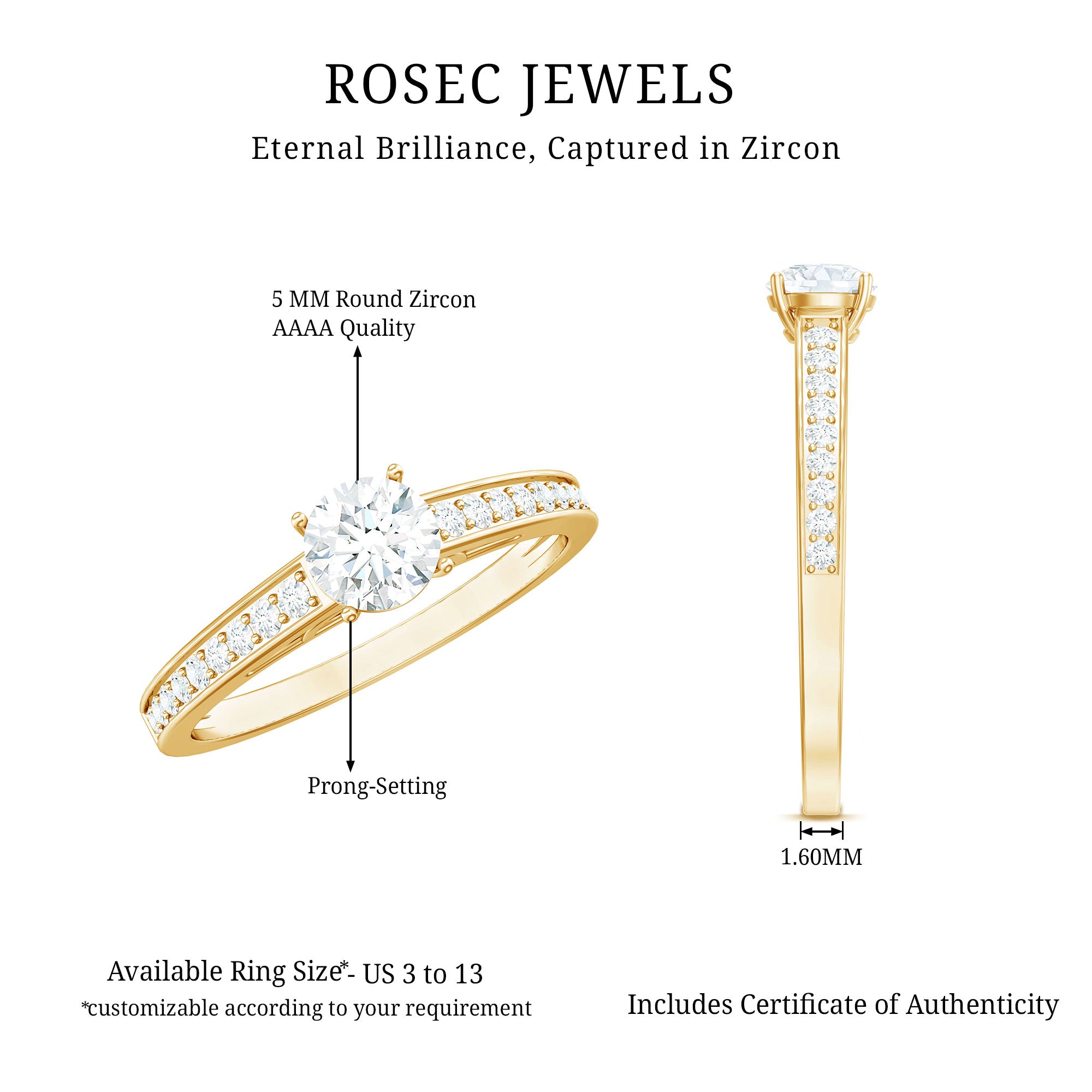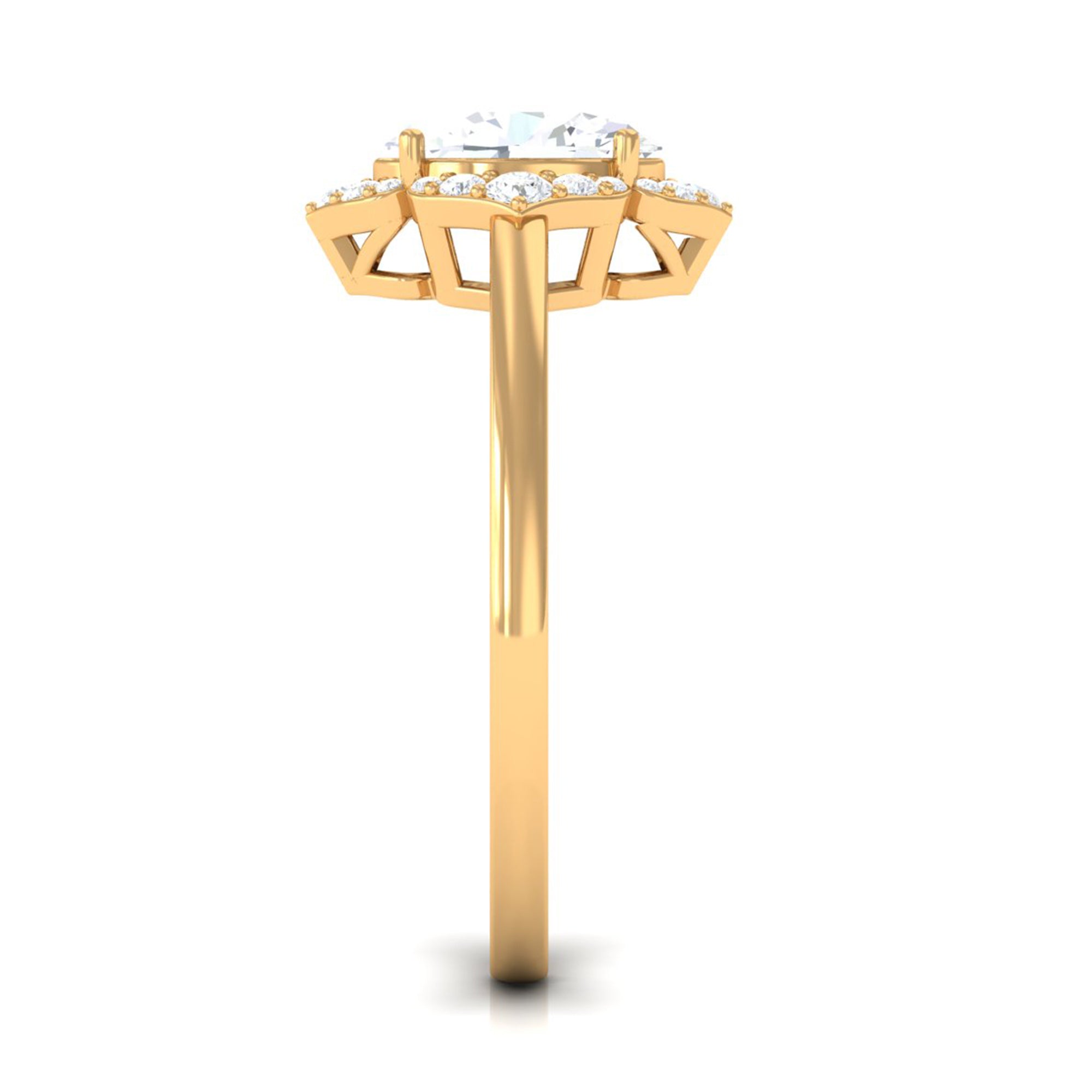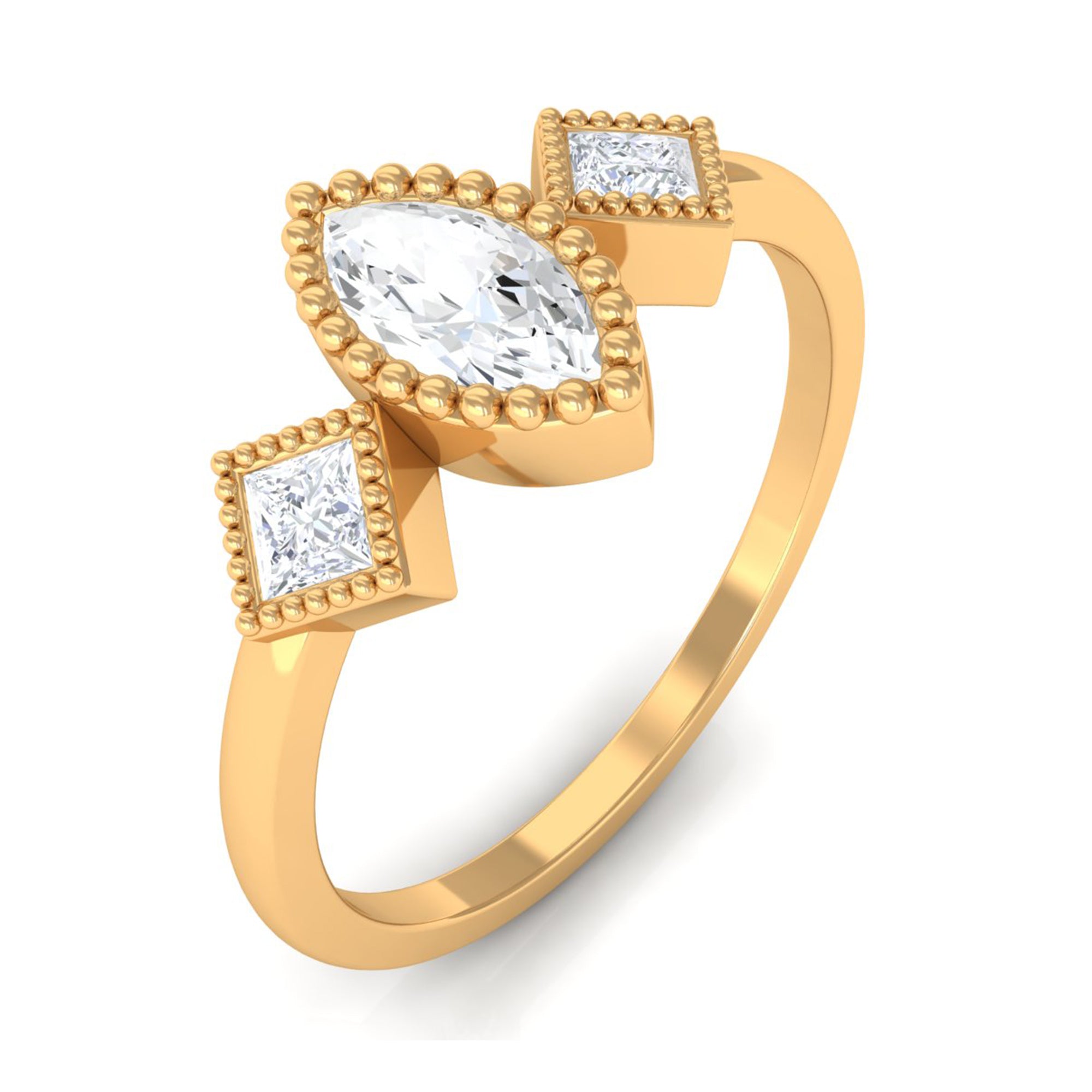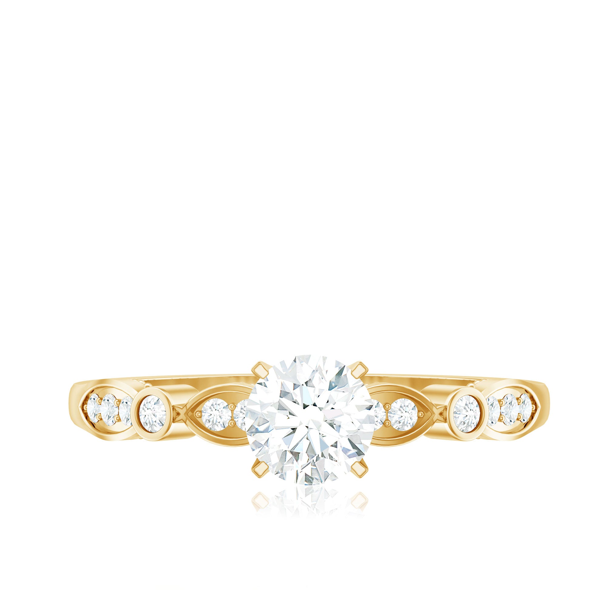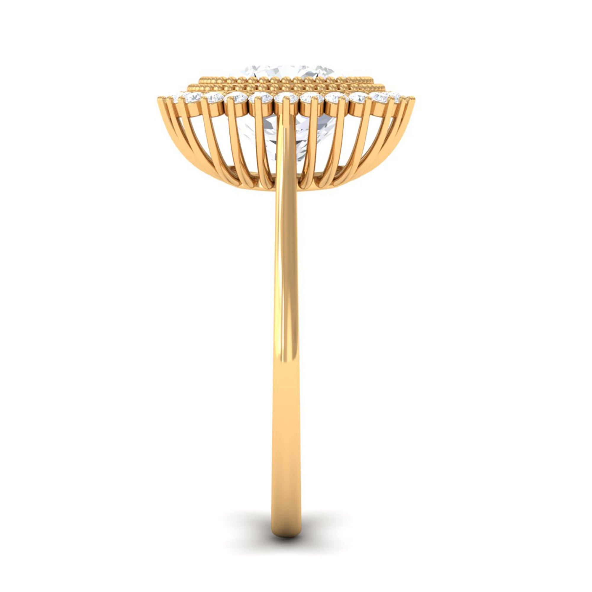 Just like the name suggests, this ring style draws inspiration from the old-world designs of Victorian, Edwardian, and Art Deco Eras that complement the sparkling center stone of CZ steal the limelight. You’re most likely to witness ornately crafted filigree and milgrain detailing, abstract geometrical patterns, retro floral motifs, and antique engravings. So, if you have been on the lookout for Gold Cubic Zirconia Engagement Rings that speak to your old school love, look no further!