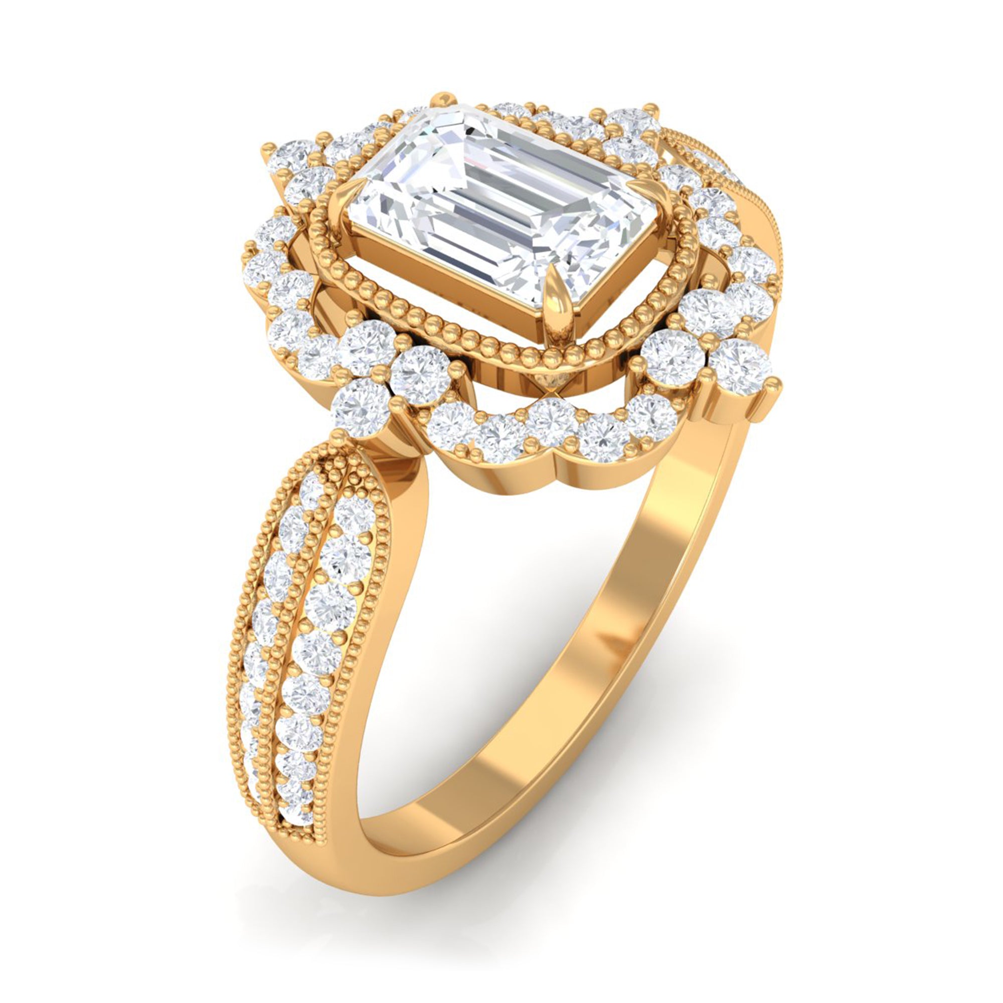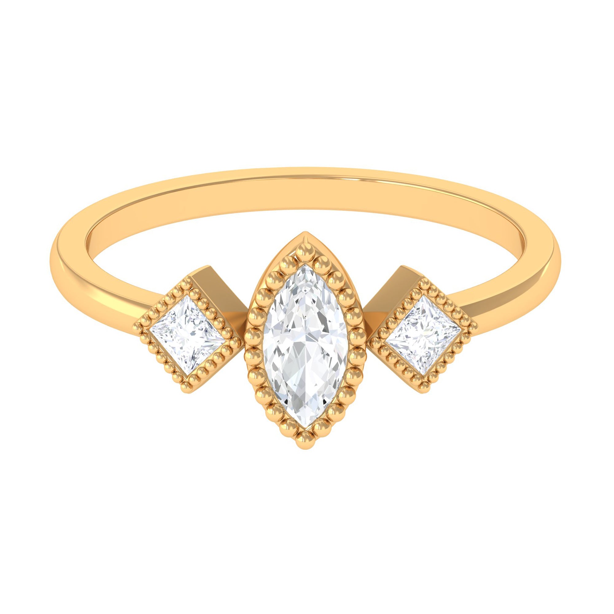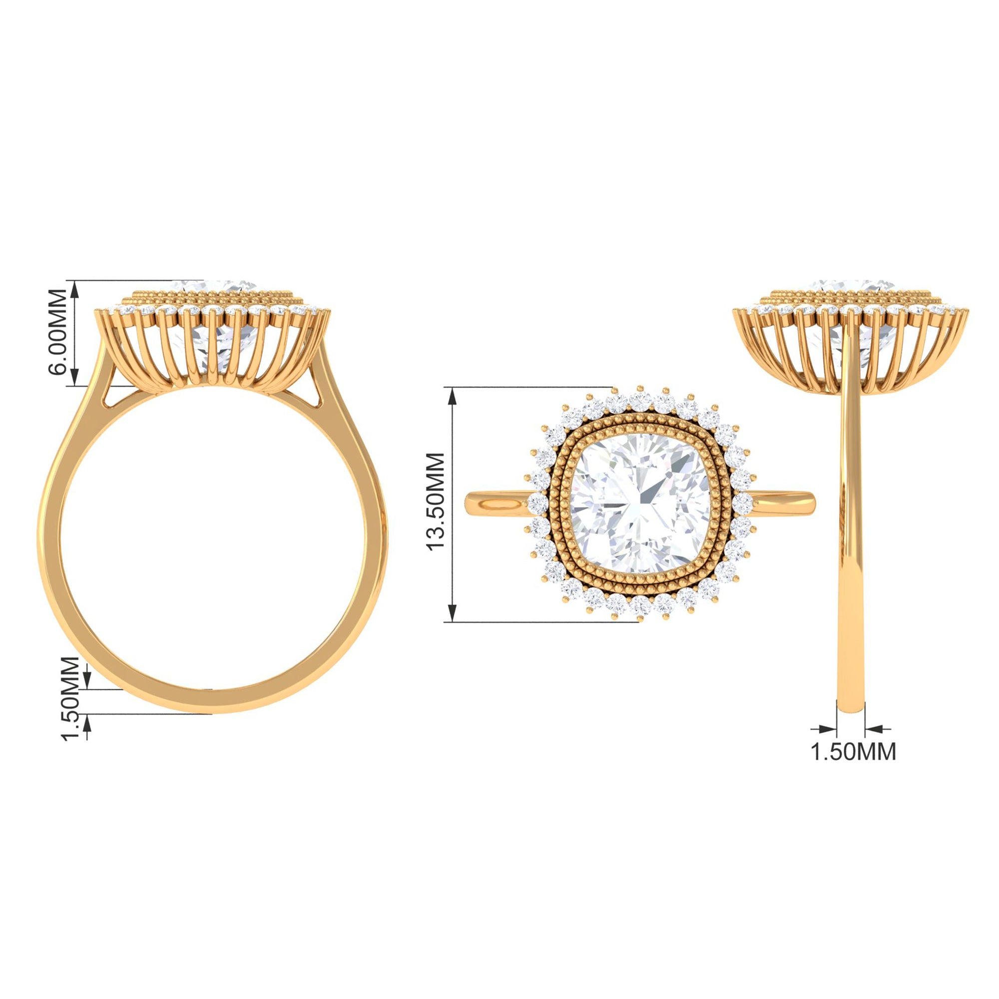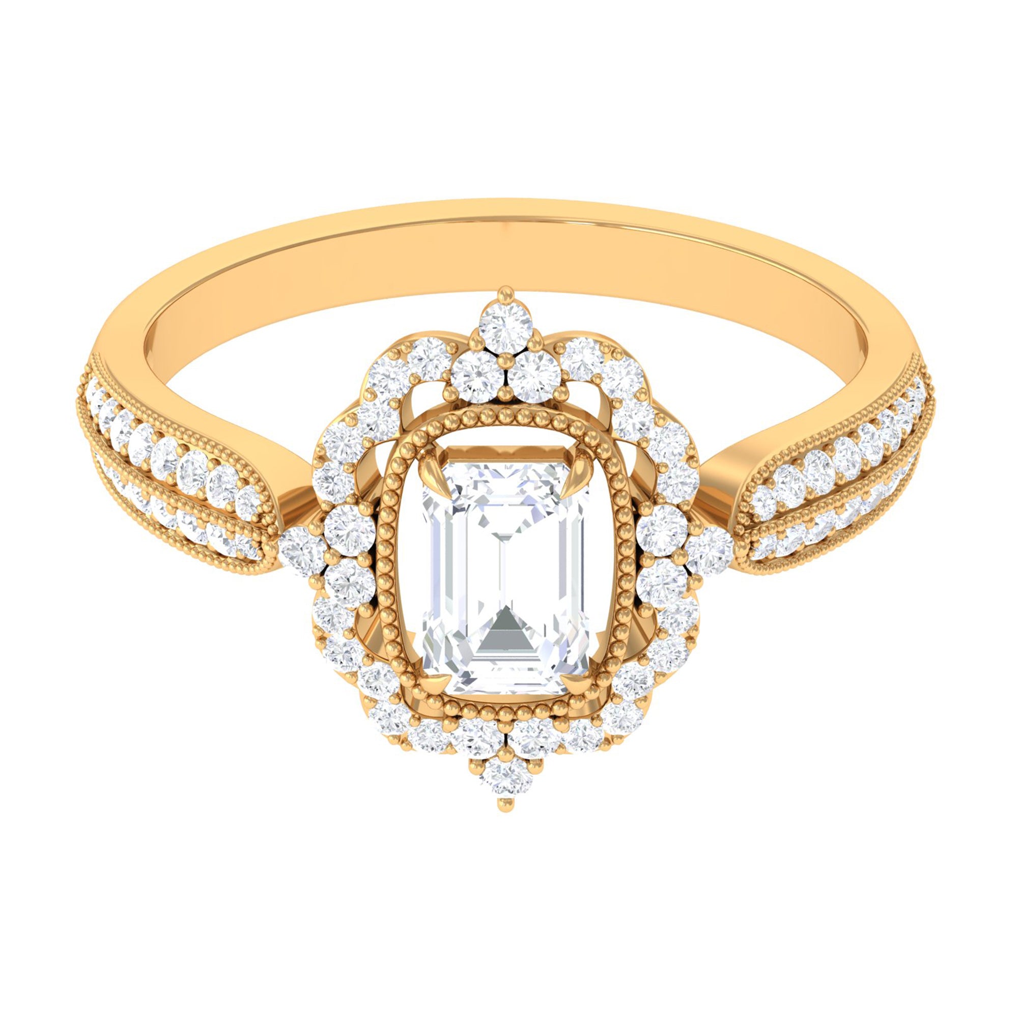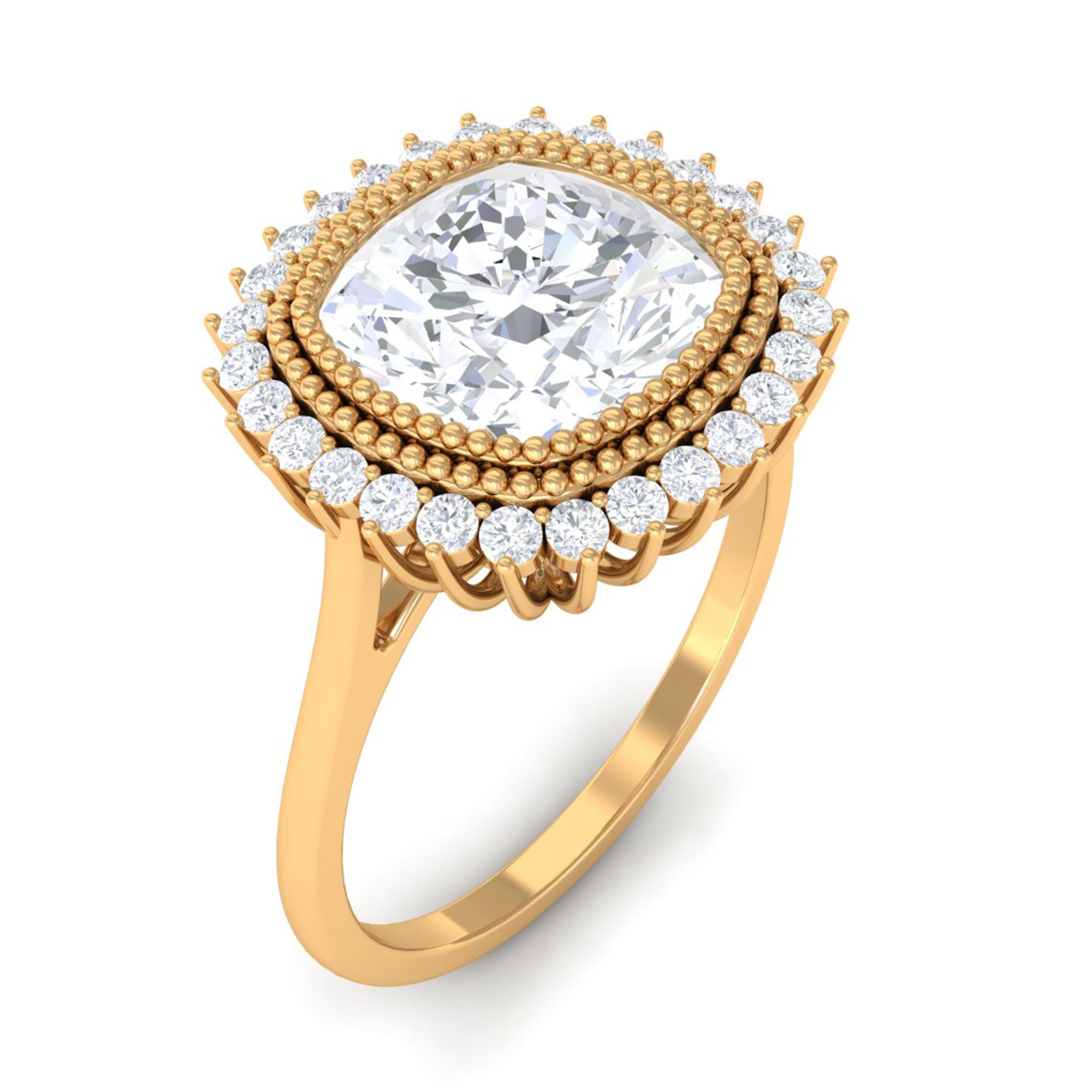 Just like the name suggests, this ring style draws inspiration from the old-world designs of Victorian, Edwardian, and Art Deco Eras that complement the sparkling center stone of CZ steal the limelight. You’re most likely to witness ornately crafted filigree and milgrain detailing, abstract geometrical patterns, retro floral motifs, and antique engravings. So, if you have been on the lookout for Gold Cubic Zirconia Engagement Rings that speak to your old school love, look no further!