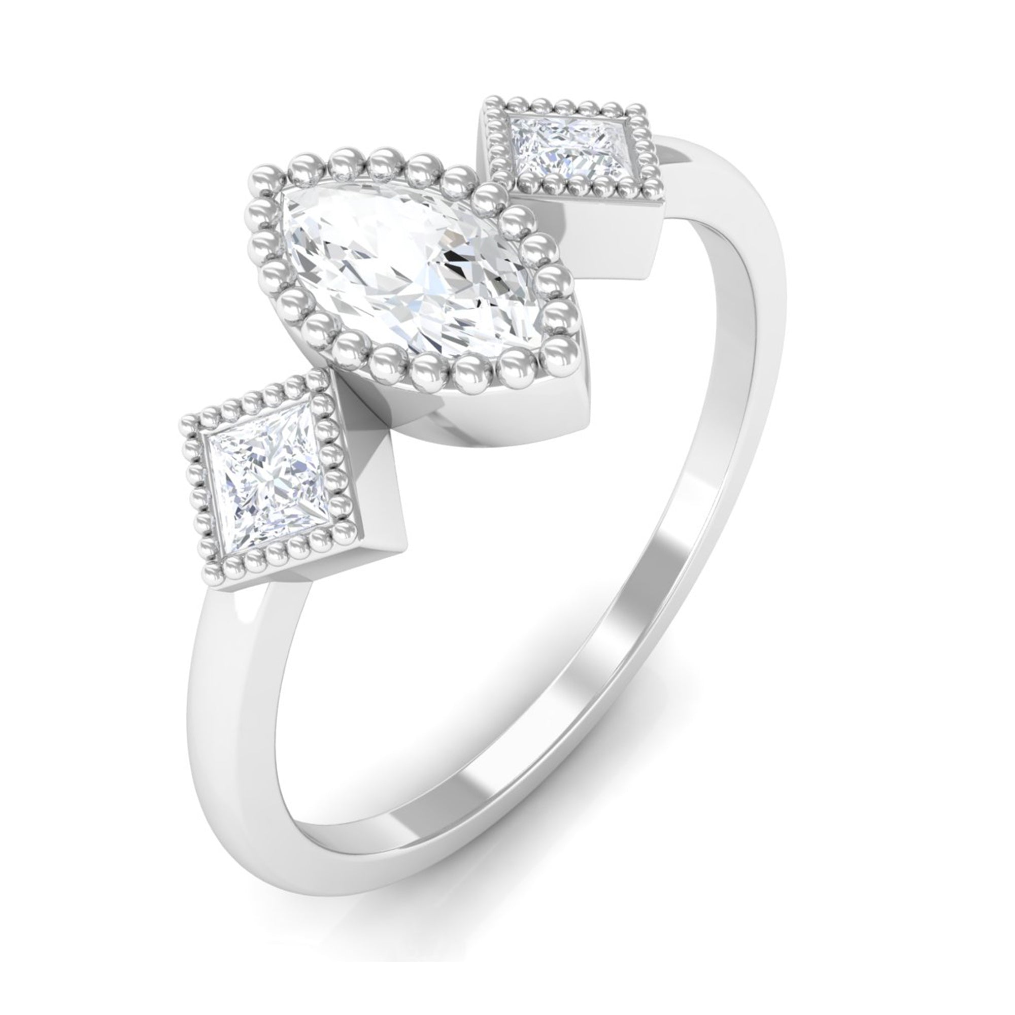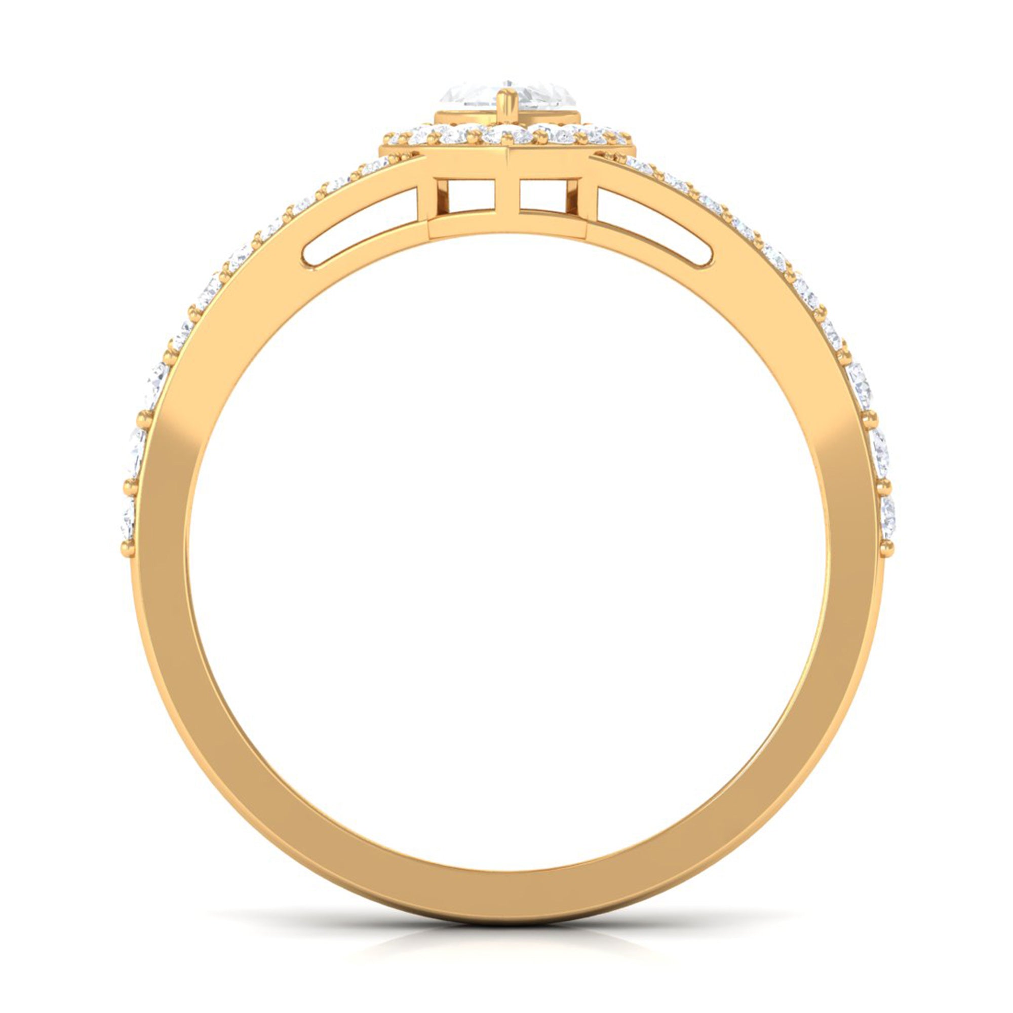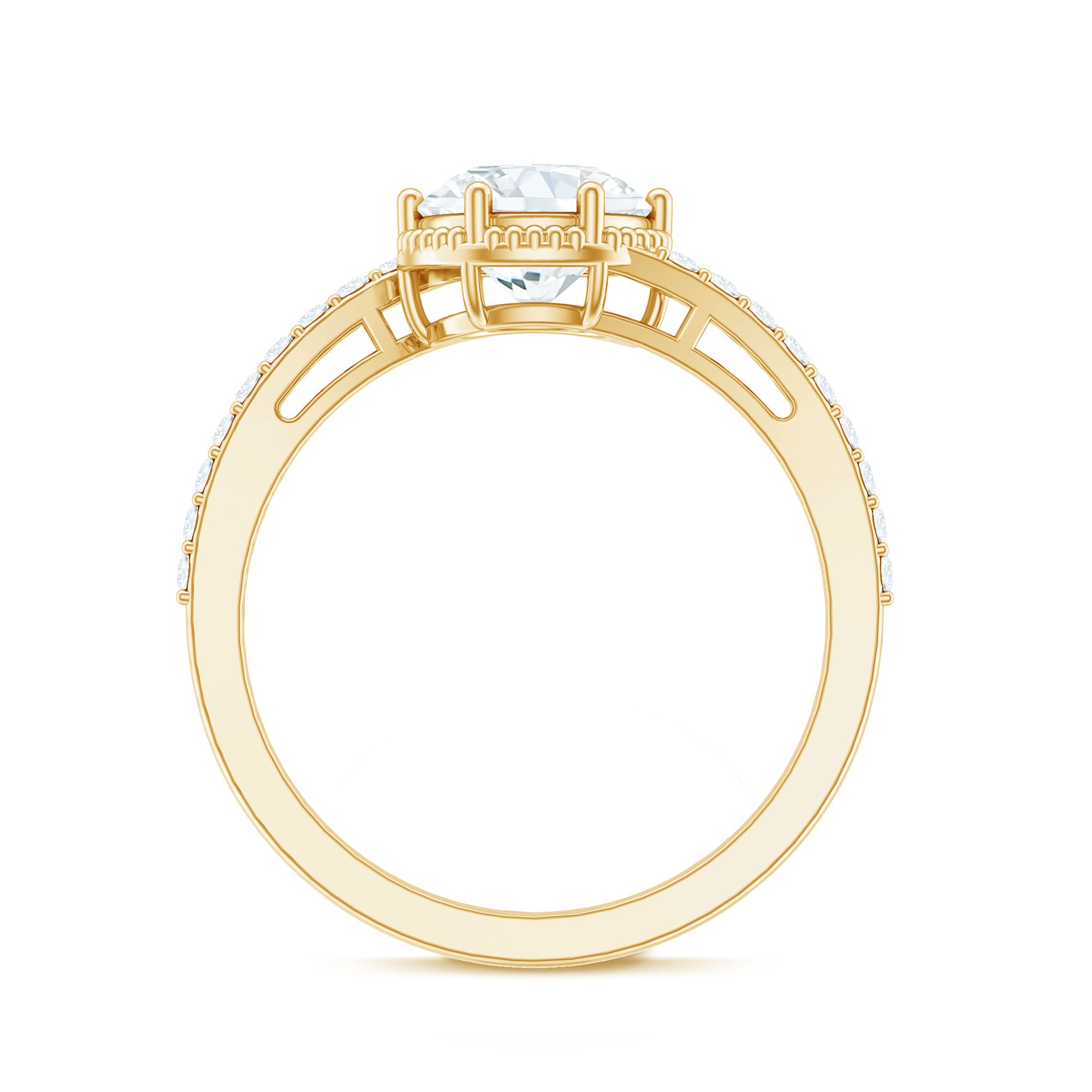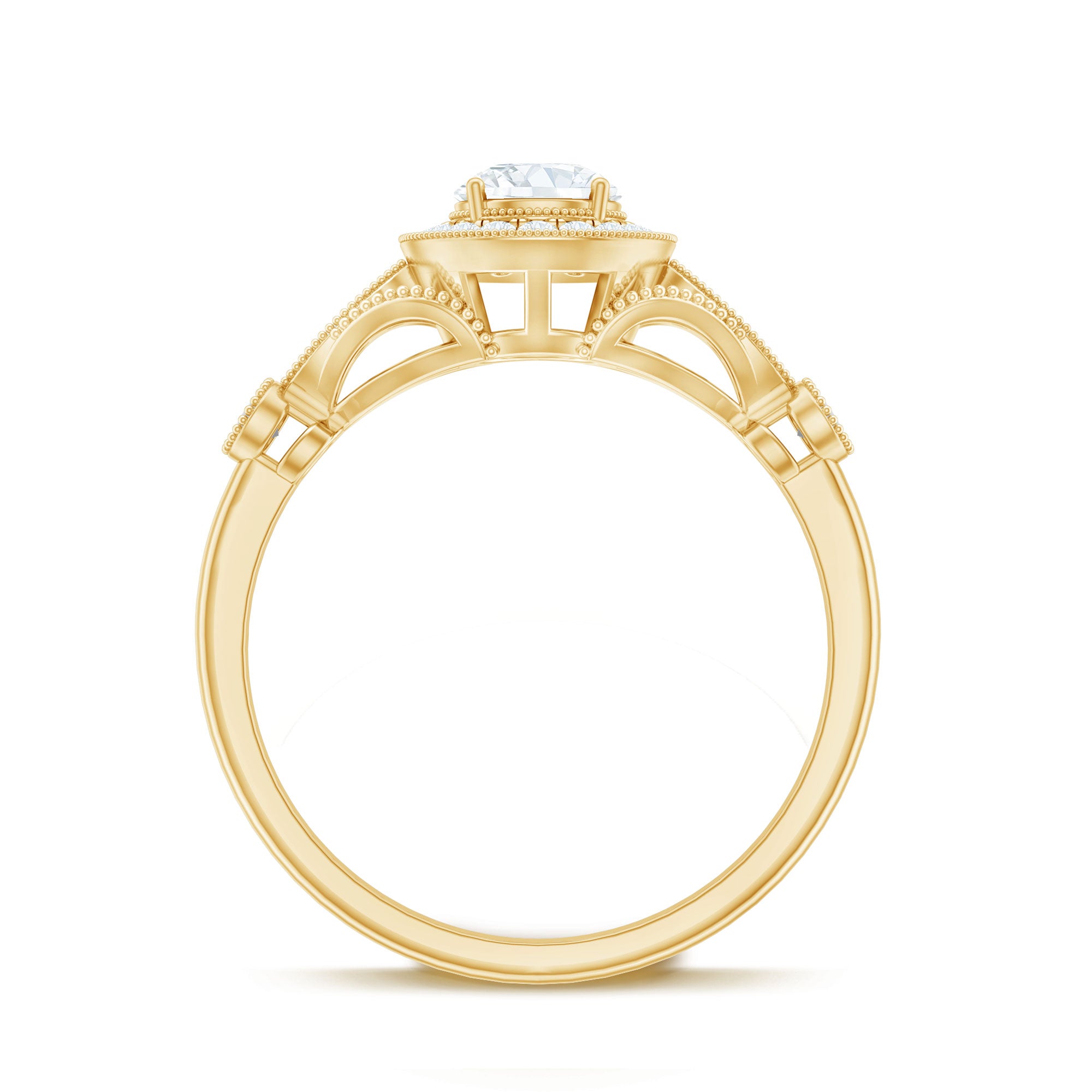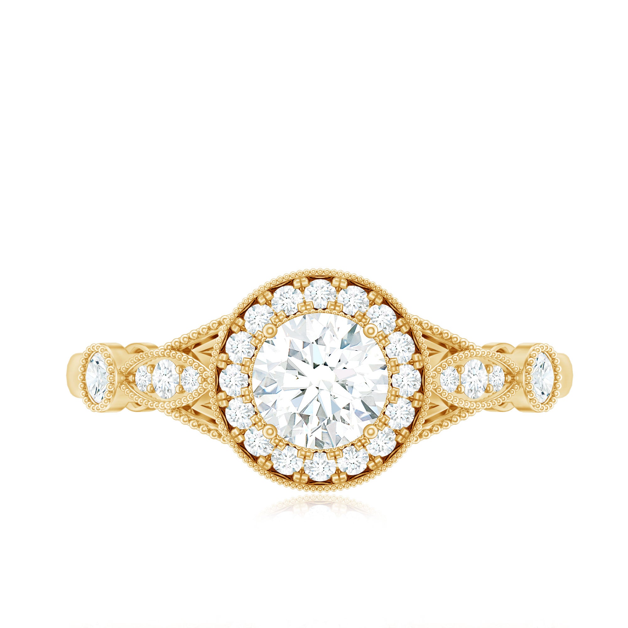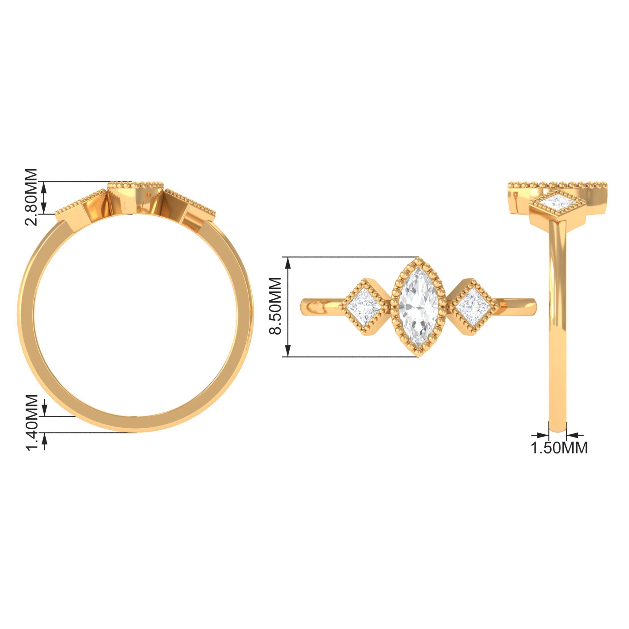Just like the name suggests, this ring style draws inspiration from the old-world designs of Victorian, Edwardian, and Art Deco Eras that complement the sparkling center stone of CZ steal the limelight. You’re most likely to witness ornately crafted filigree and milgrain detailing, abstract geometrical patterns, retro floral motifs, and antique engravings. So, if you have been on the lookout for Gold Cubic Zirconia Engagement Rings that speak to your old school love, look no further!