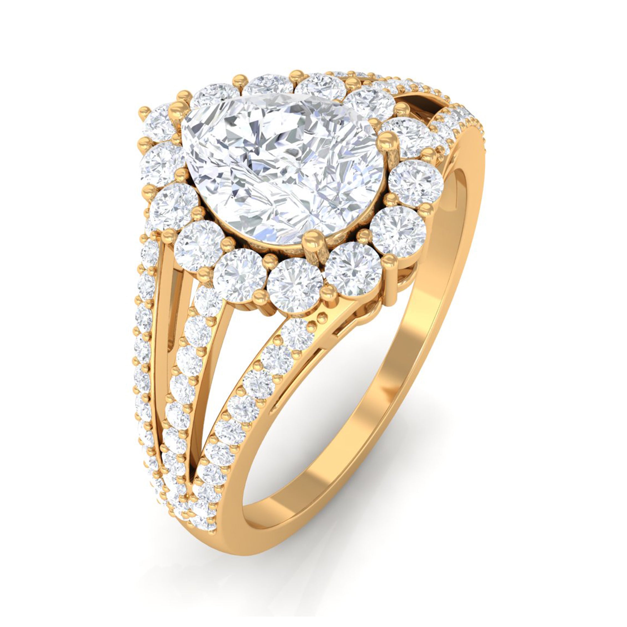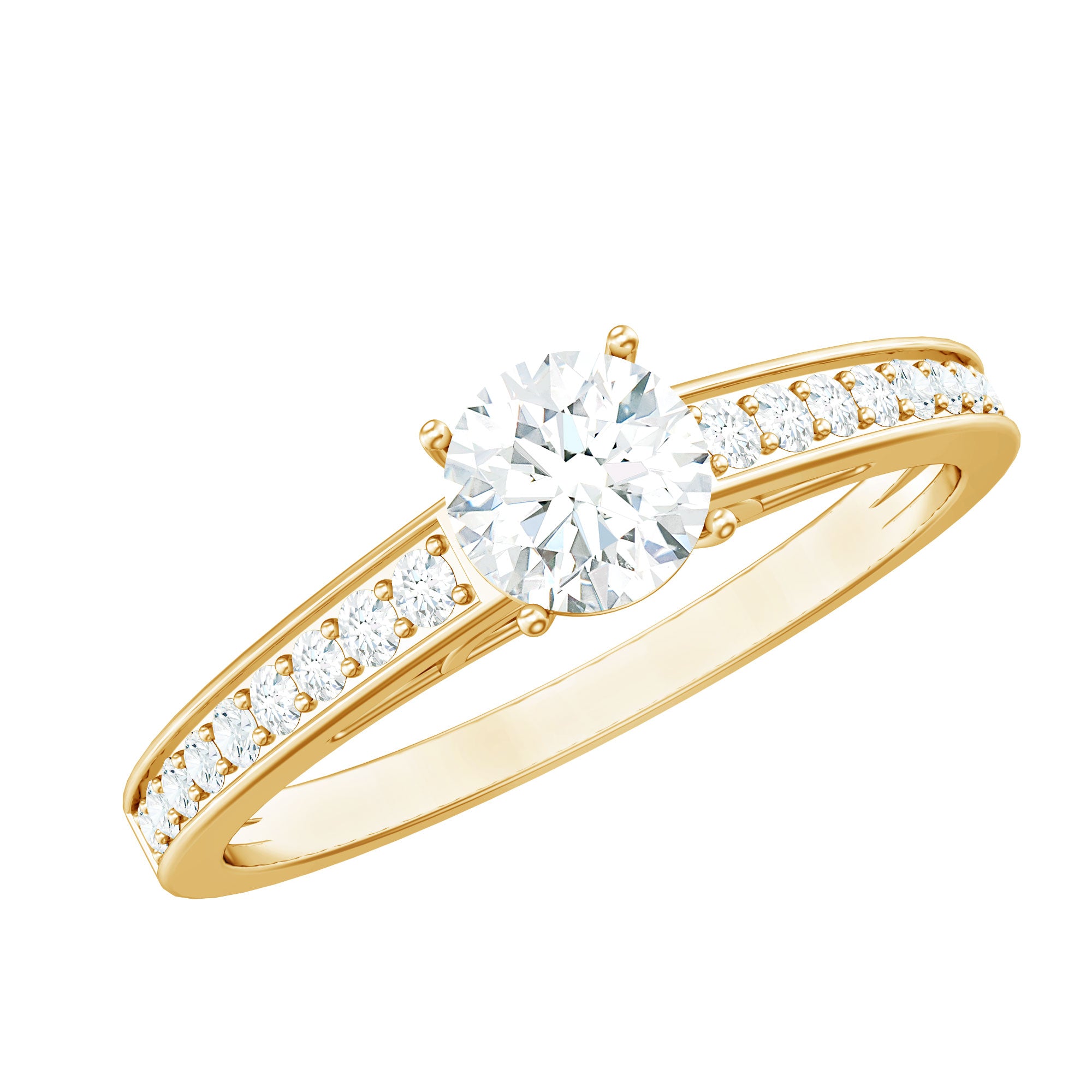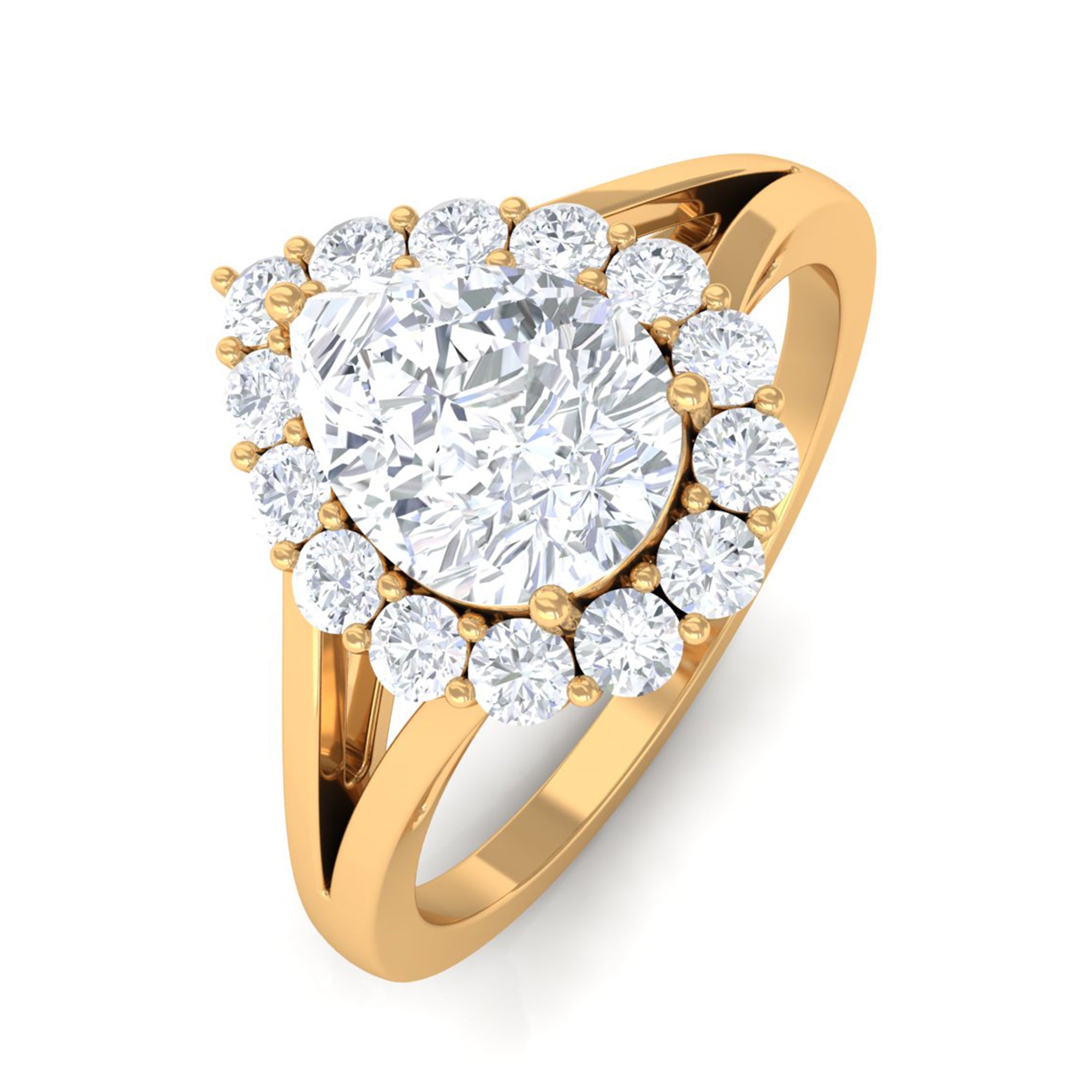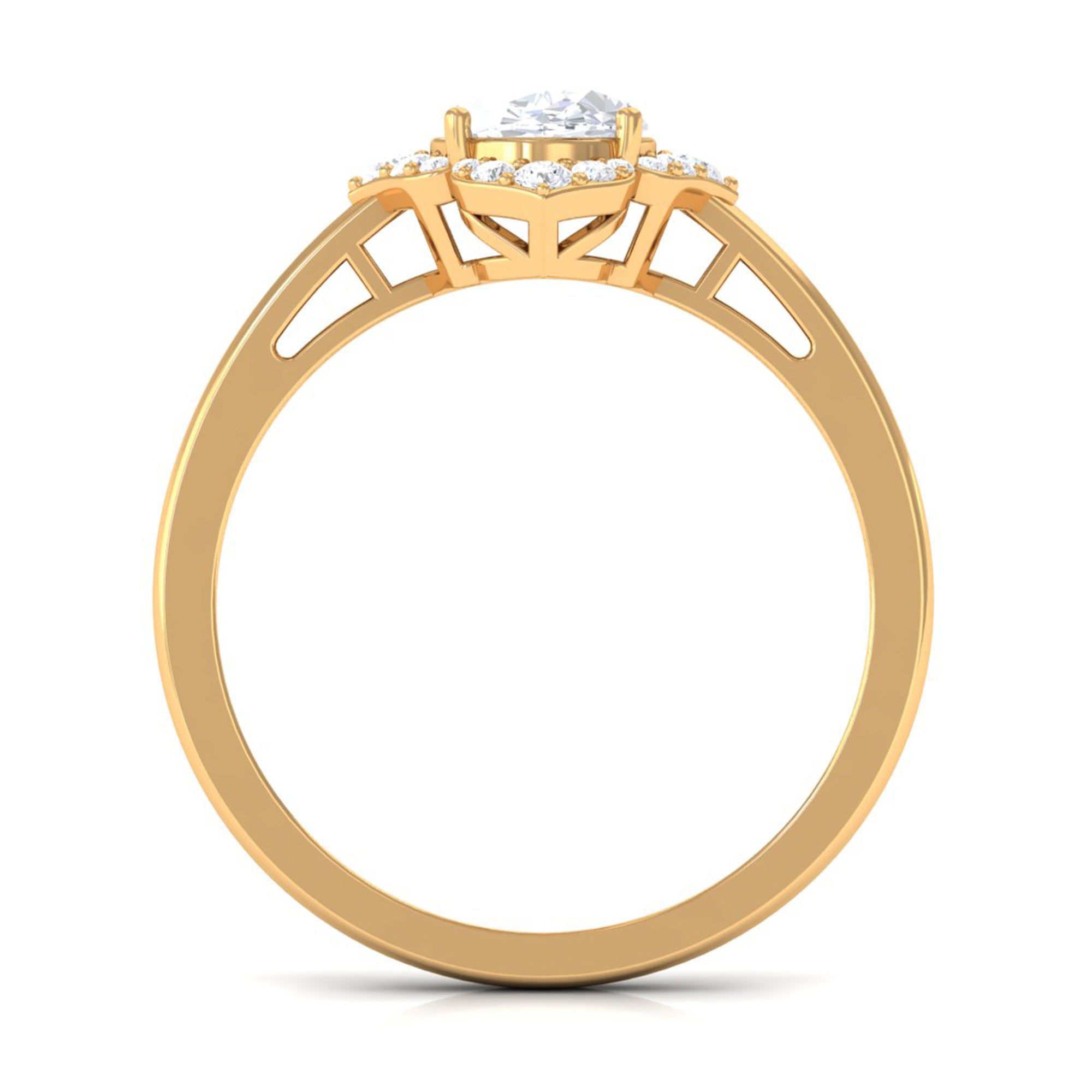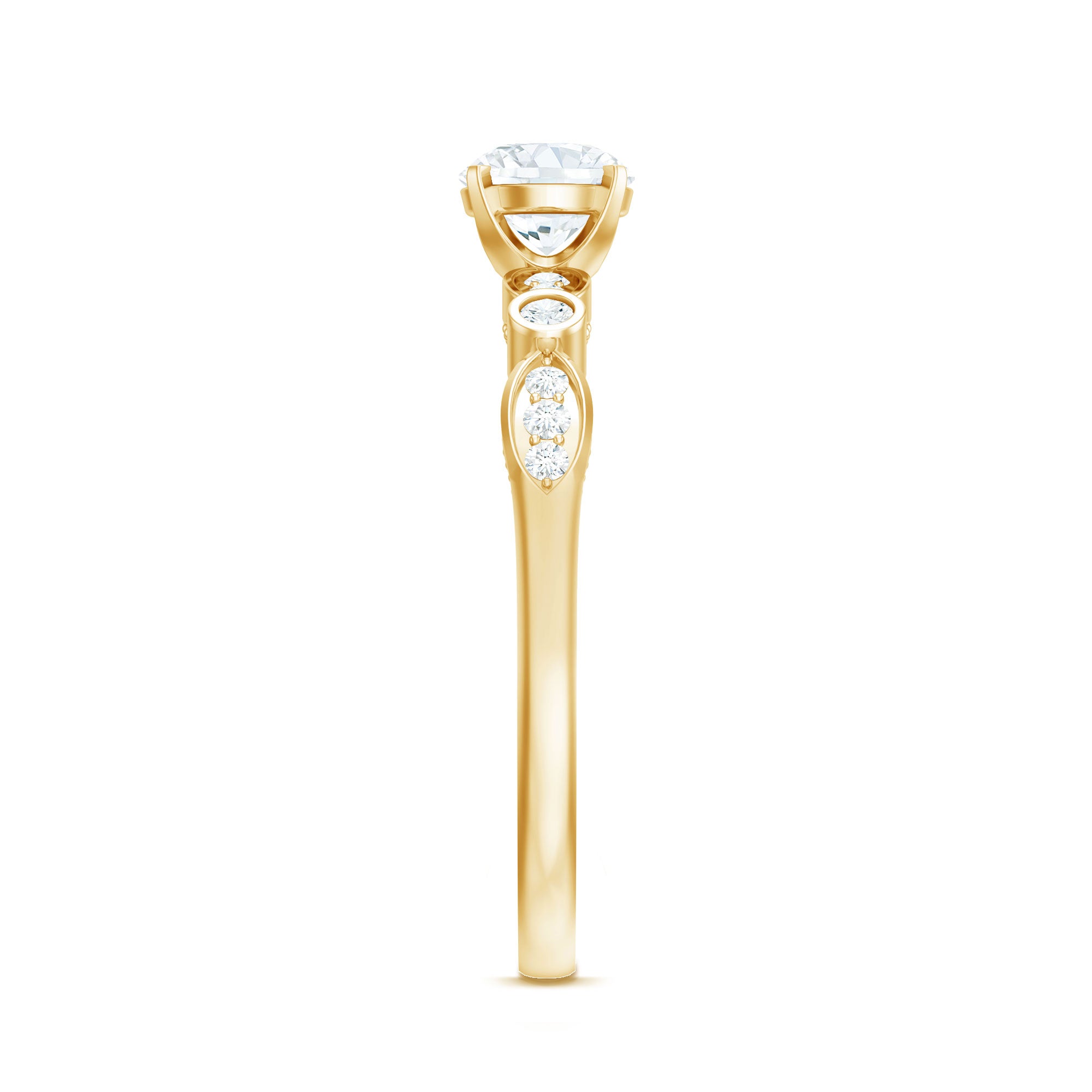 Just like the name suggests, this ring style draws inspiration from the old-world designs of Victorian, Edwardian, and Art Deco Eras that complement the sparkling center stone of CZ steal the limelight. You’re most likely to witness ornately crafted filigree and milgrain detailing, abstract geometrical patterns, retro floral motifs, and antique engravings. So, if you have been on the lookout for Gold Cubic Zirconia Engagement Rings that speak to your old school love, look no further!