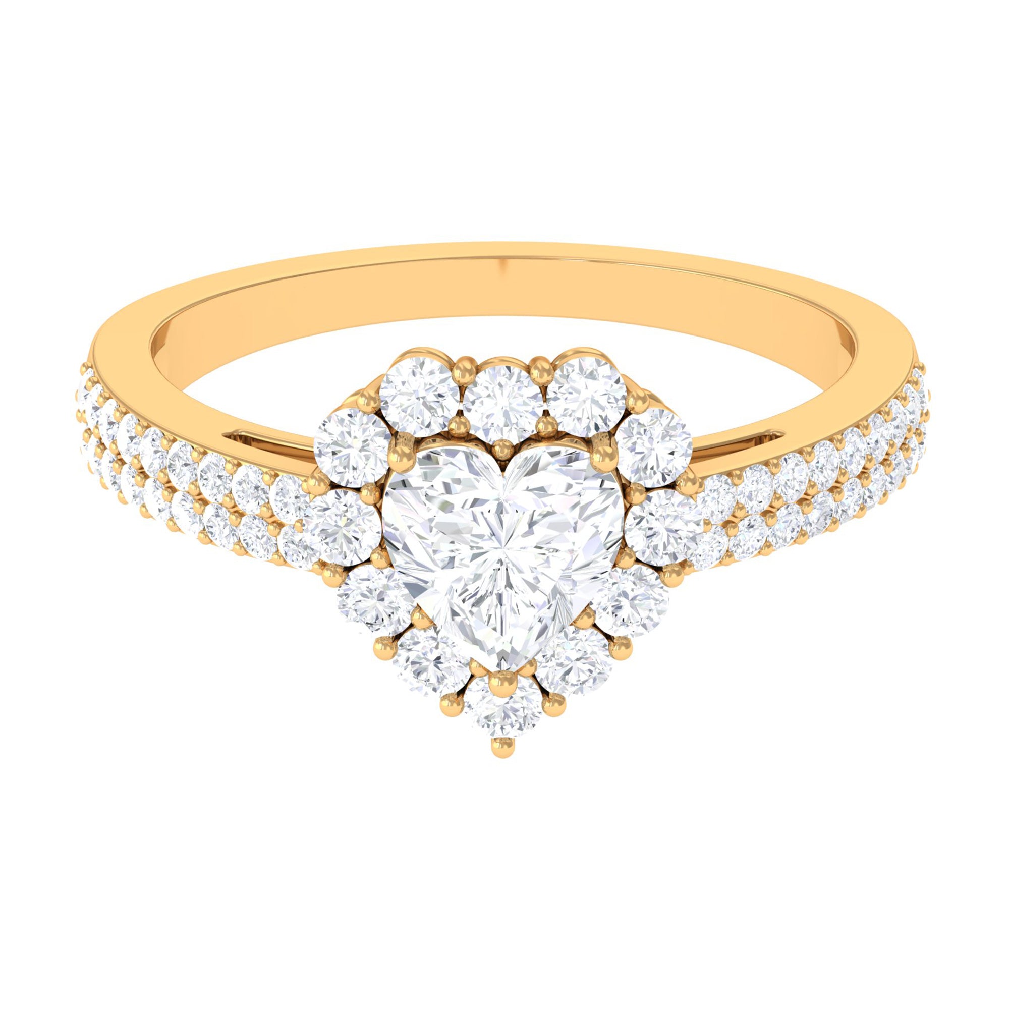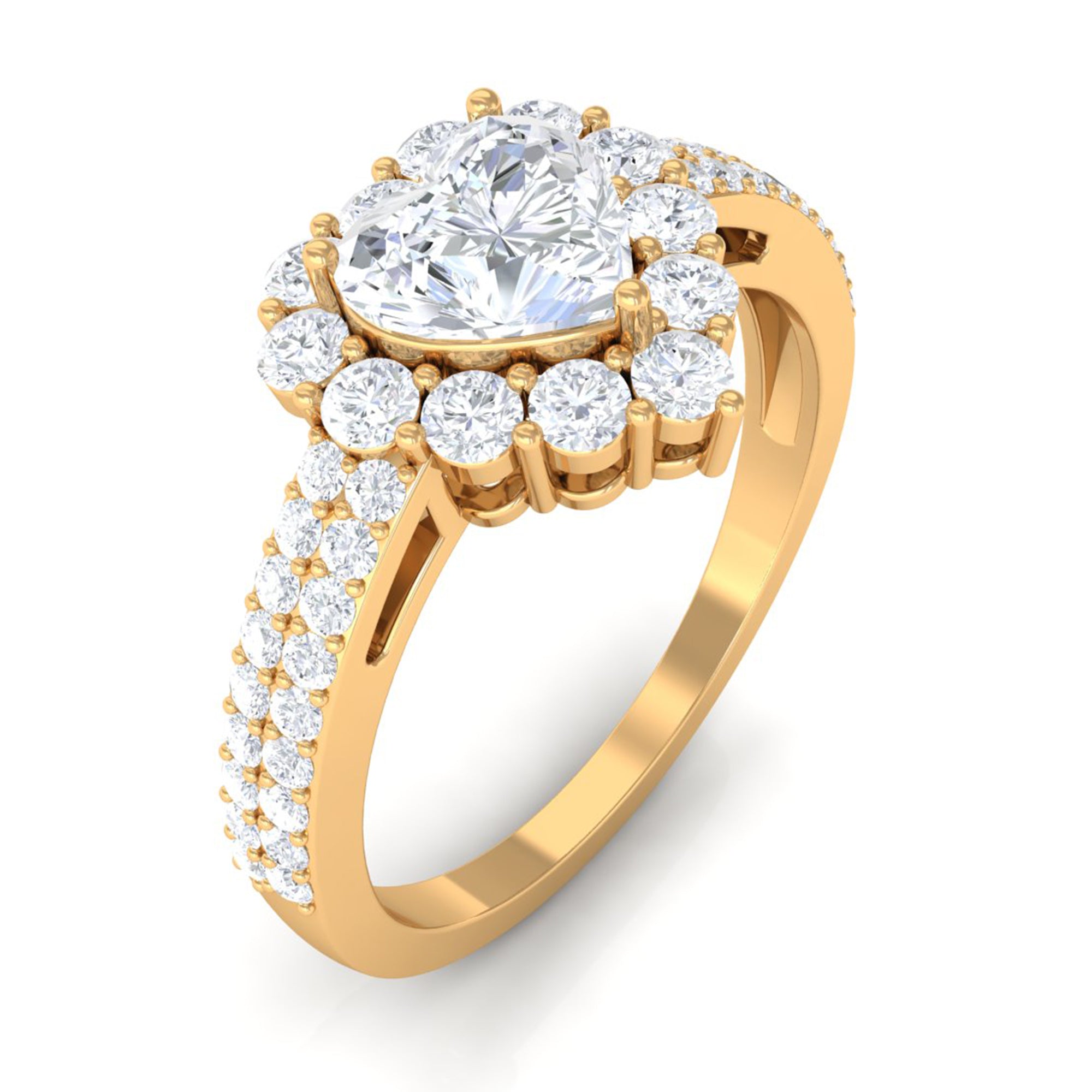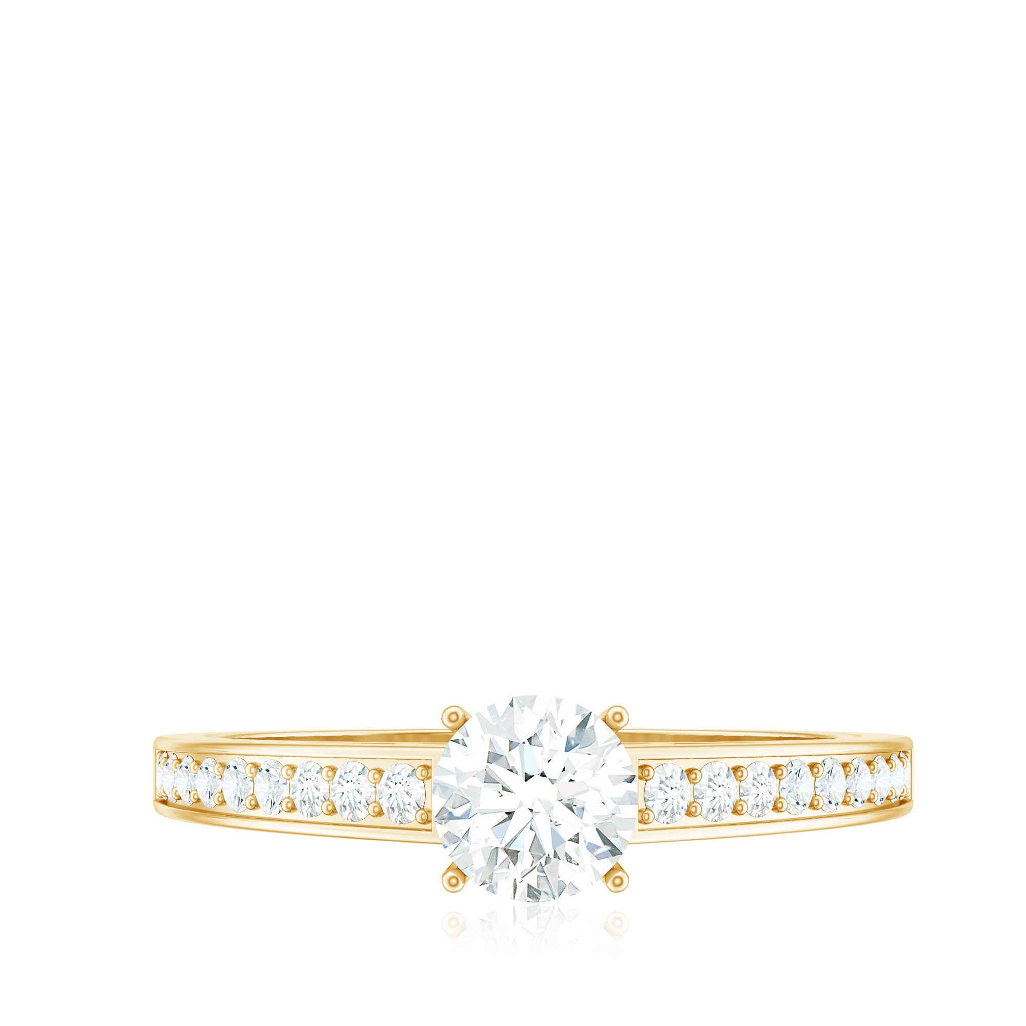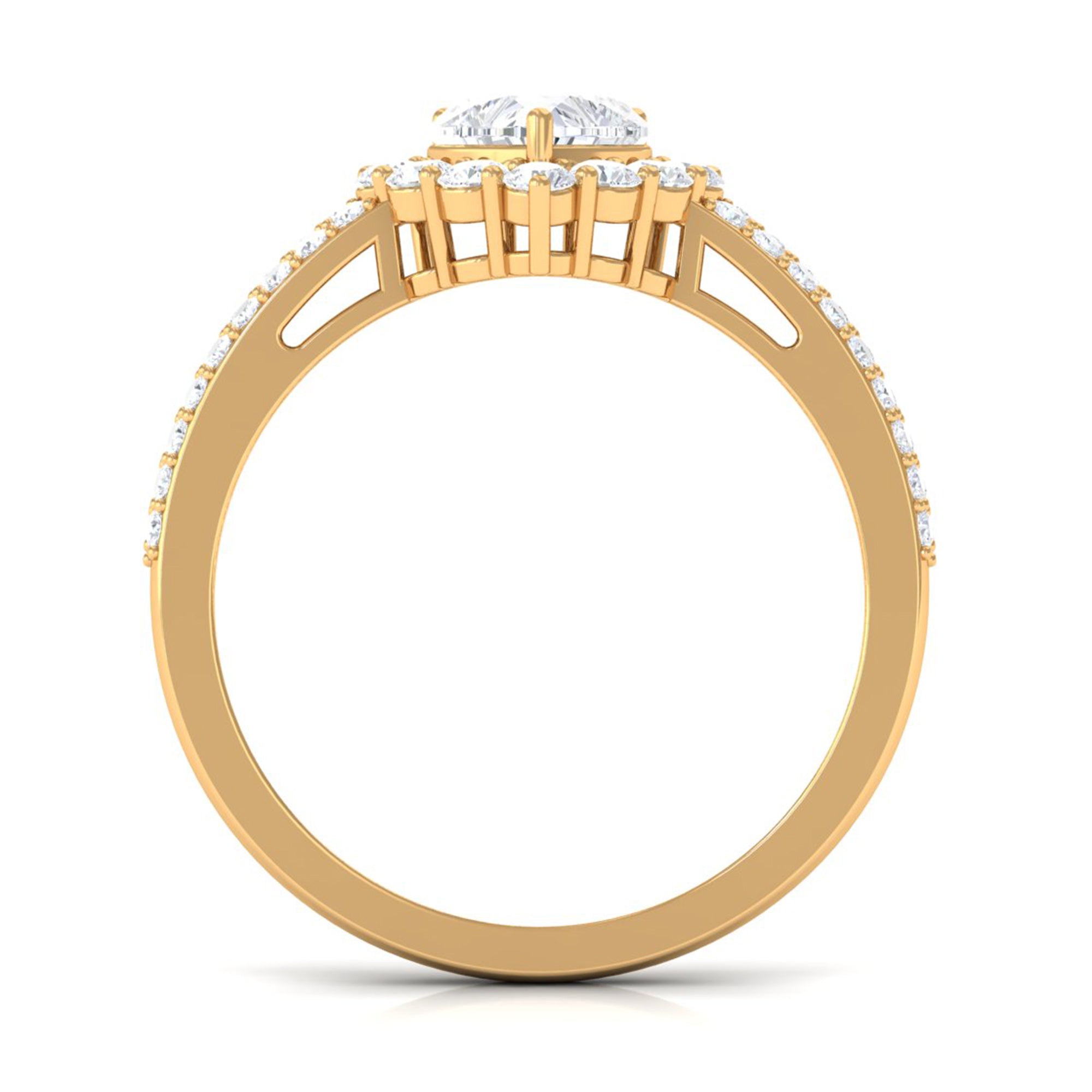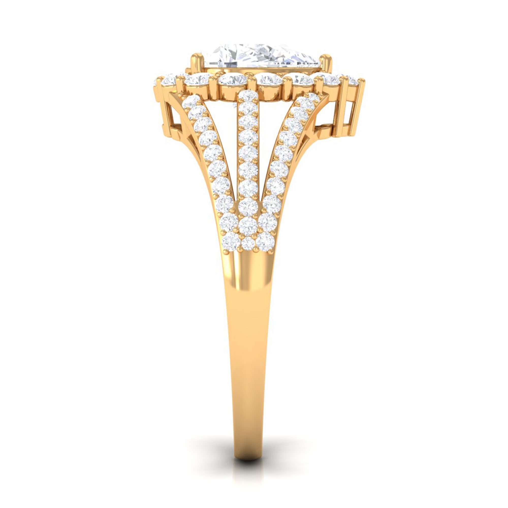 Just like the name suggests, this ring style draws inspiration from the old-world designs of Victorian, Edwardian, and Art Deco Eras that complement the sparkling center stone of CZ steal the limelight. You’re most likely to witness ornately crafted filigree and milgrain detailing, abstract geometrical patterns, retro floral motifs, and antique engravings. So, if you have been on the lookout for Gold Cubic Zirconia Engagement Rings that speak to your old school love, look no further!