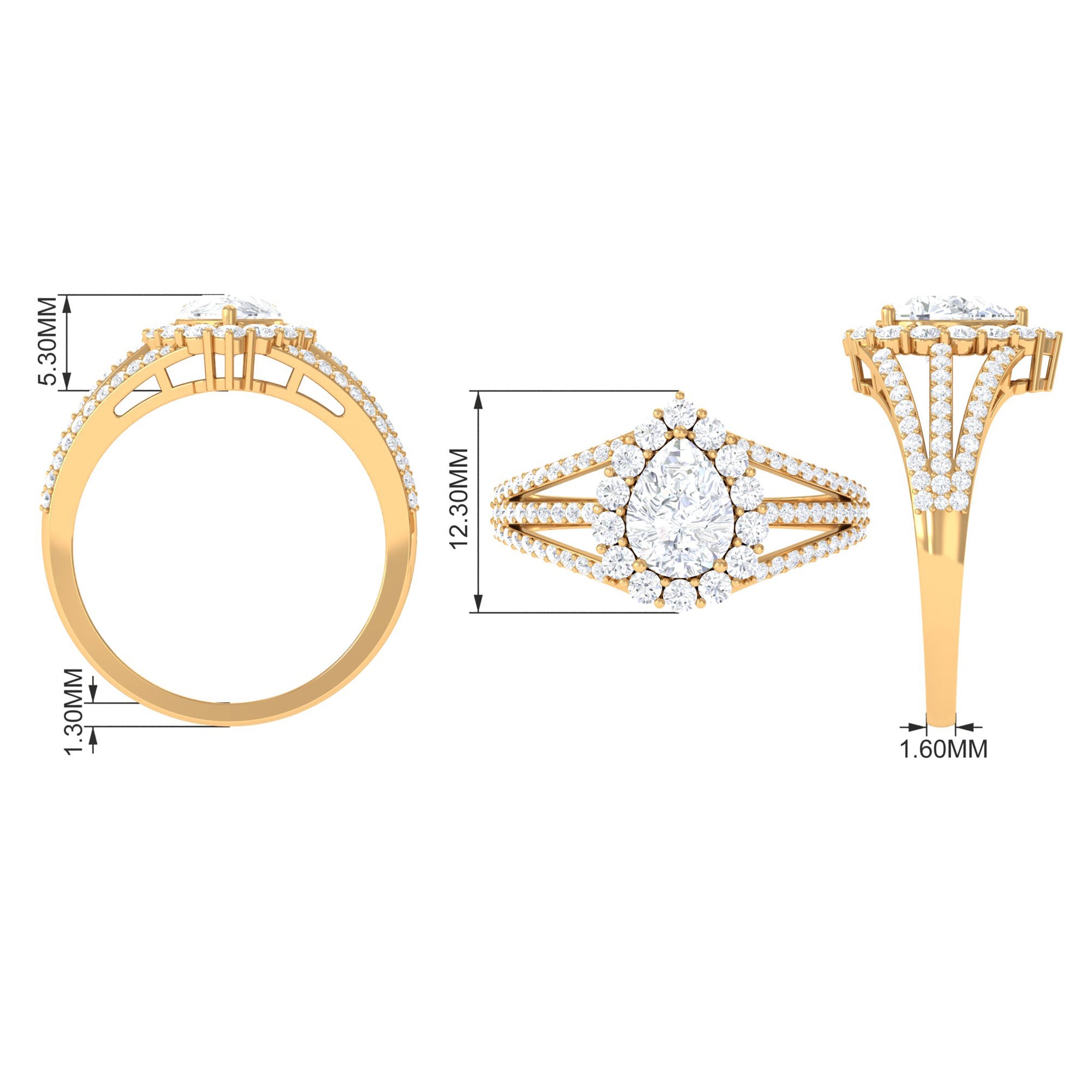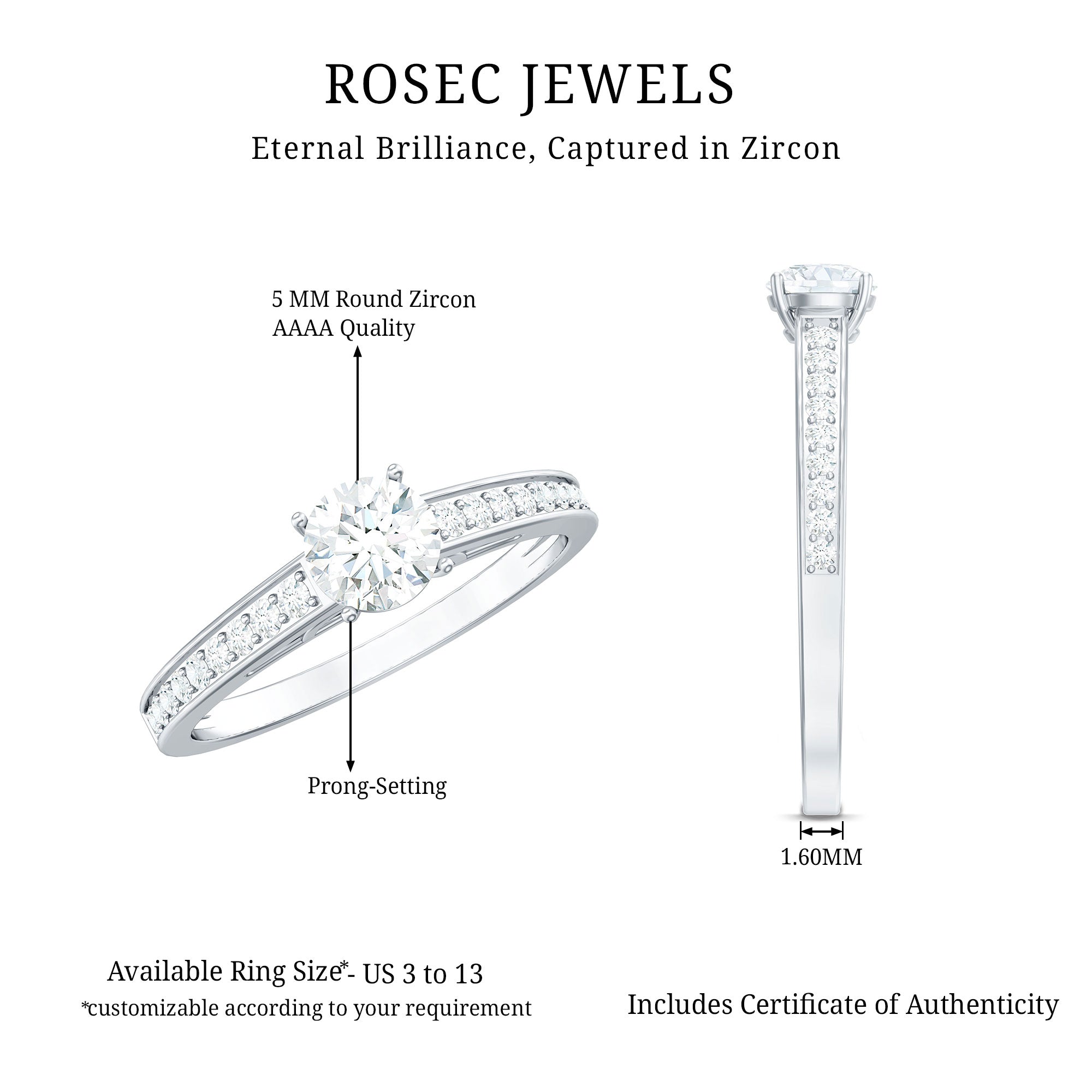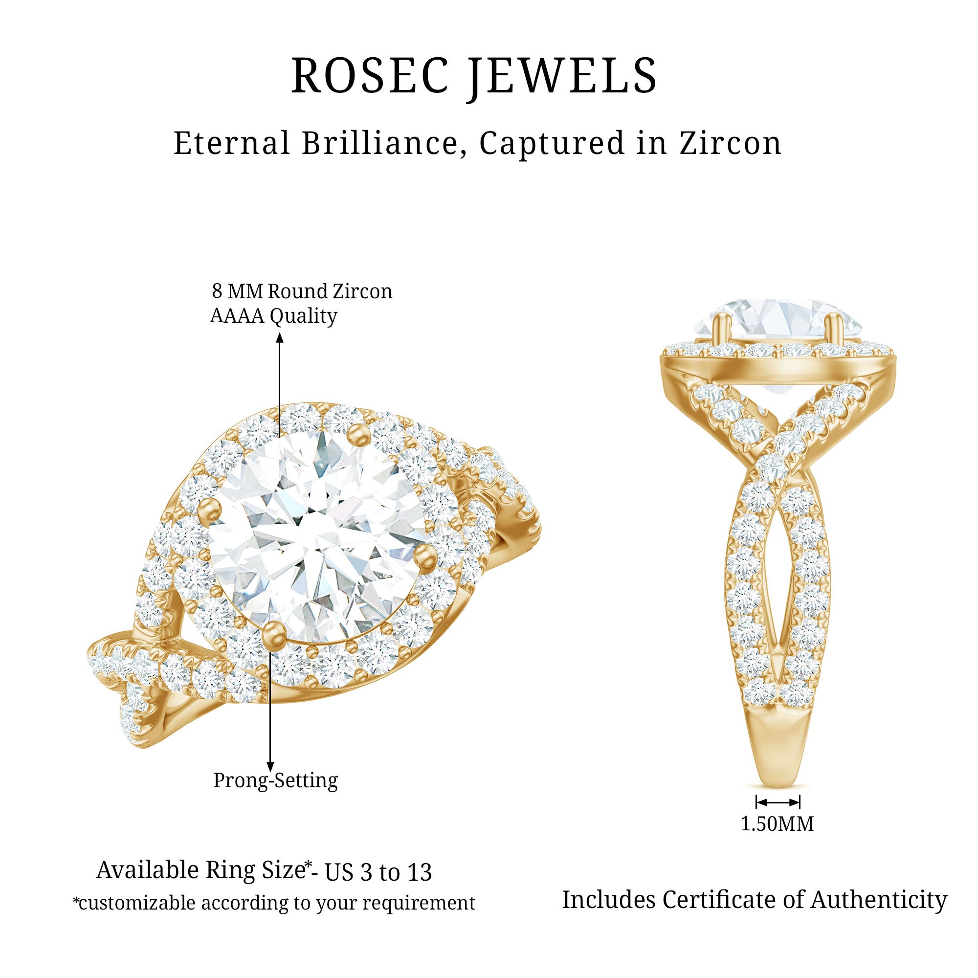 A Solitaire Ring is encased with the Single Centerpiece of Cubic Zirconia that takes all the center stage owing to its enormous size of 6 MM or more. Hailed as a timeless classic, a Solitaire Style Zirconia Engagement Ring is easily the go-to choice for all the conventional couples out there. Not just that, it pleases many aesthetics owing to the many shapes it is fashioned in. While a Round CZ Ring appeals owing to its understated and minimalist look, the one adorned with fanciers cuts like Pear, Marquise, or Princess speak to the trend-savvy bride-to-be(s). On the other hand, Asscher, Emerald, and Cushion Cut CZ Engagement Ring is meant to speak to those who fancy a vintage emblem of love.