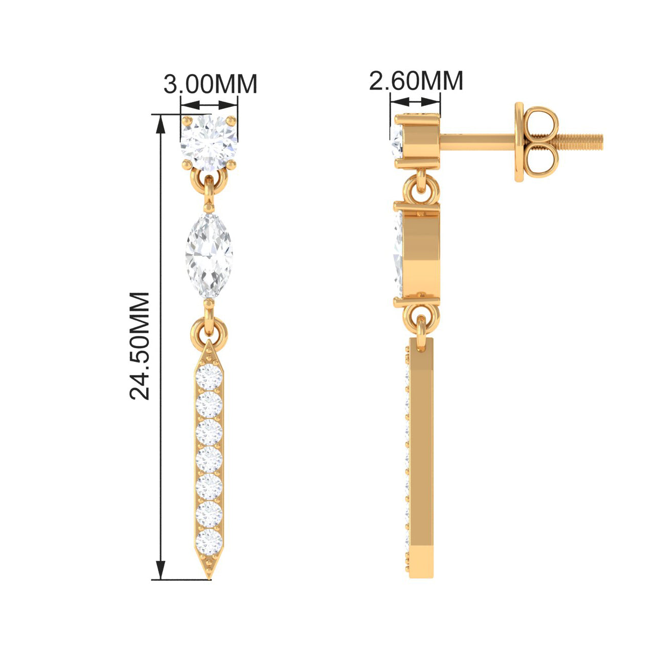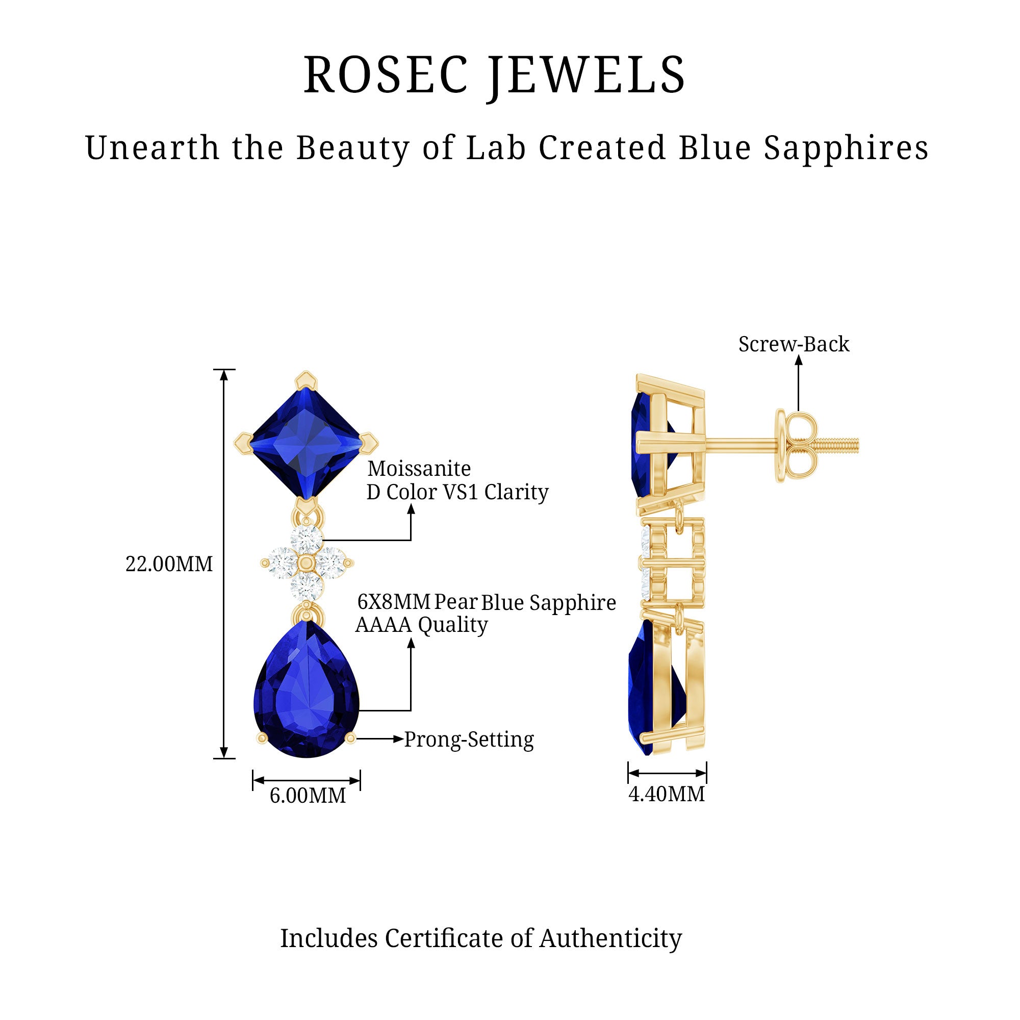 Metal Type: Rosec Jewels offers dangle earrings in Yellow and White Gold and in Sterling Silver, each offering unique characteristics.