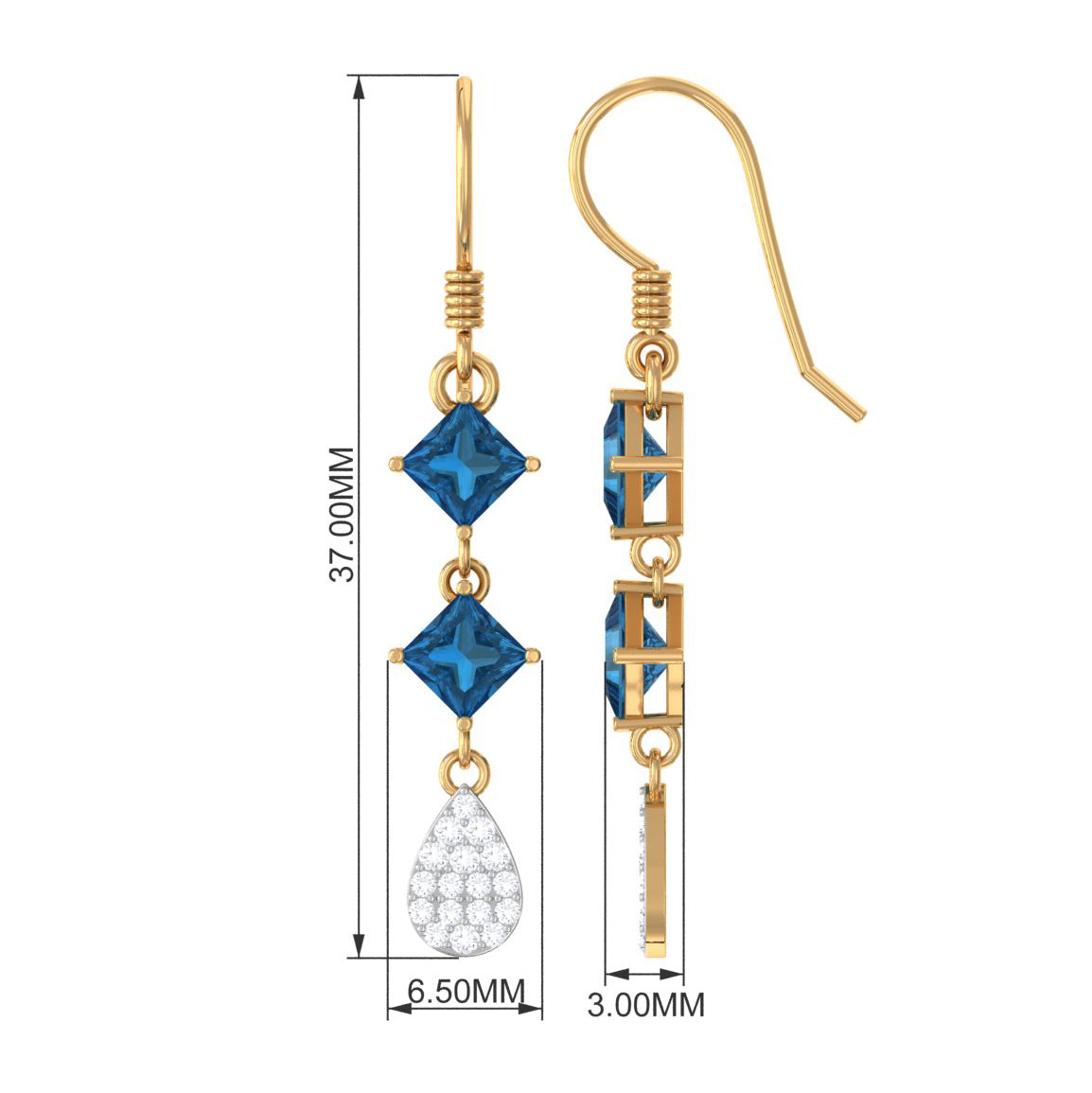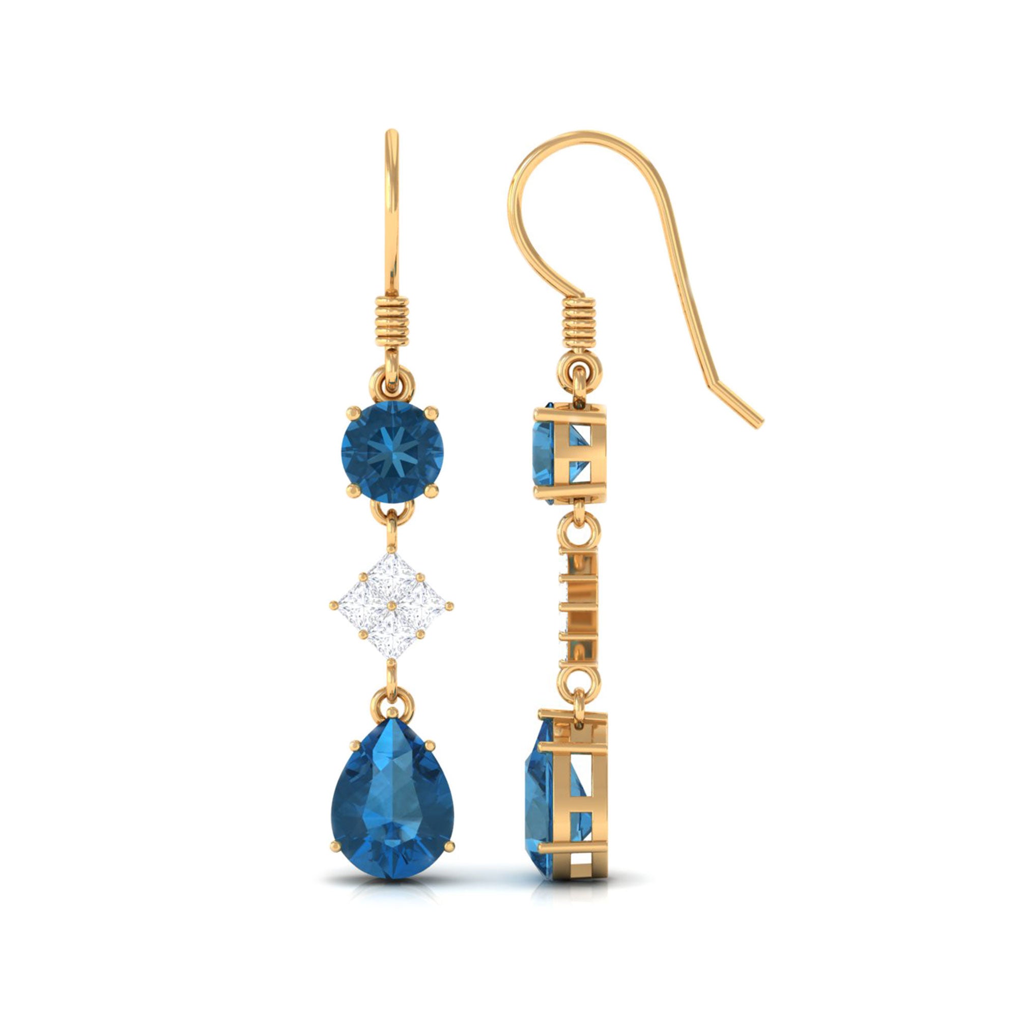 Setting of Gemstones and Diamonds: Dangle earrings showcase gemstones and diamonds in various settings. Prong settings offer security and visibility, pave settings create a brilliant surface, bezel settings add a sleek border, and channel settings provide a sophisticated, secure line. Each technique contributes to the overall beauty and durability of the earrings.