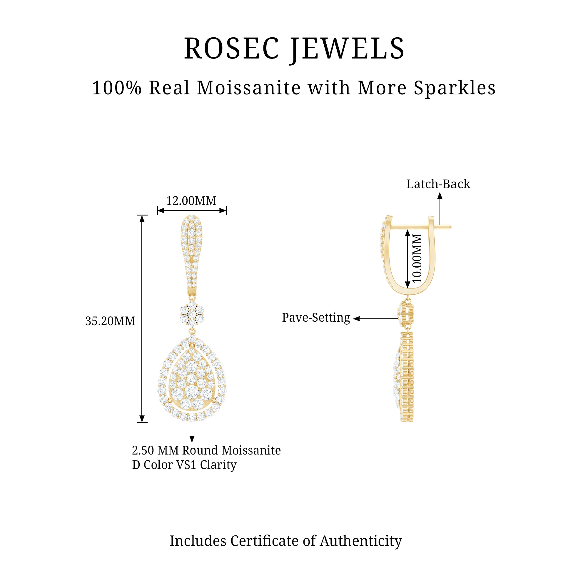 • Metal Type: Rosec Jewels offers dangle earrings in Yellow and White Gold and in Sterling Silver, each offering unique characteristics.