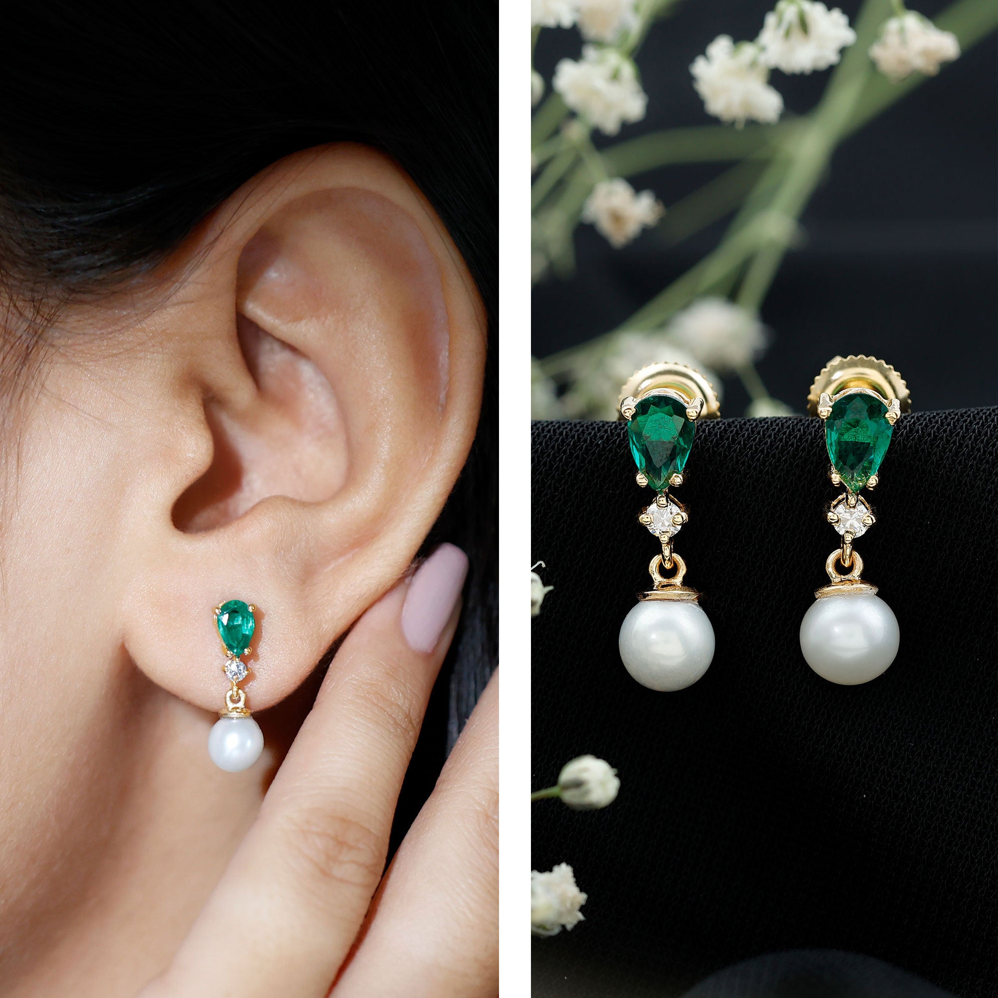 Both hang below the earlobe but the key difference is that while drop earrings don’t move as much, dangle earrings dangle or swing back and forth below the earlobe. That’s makes them differ in their appearances as well.