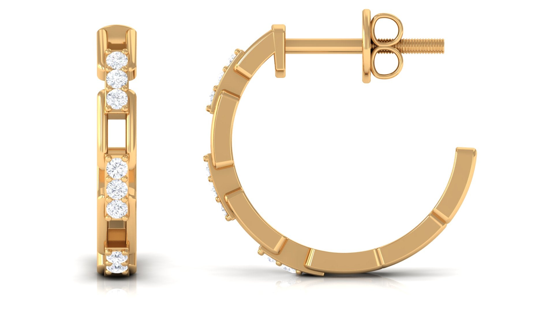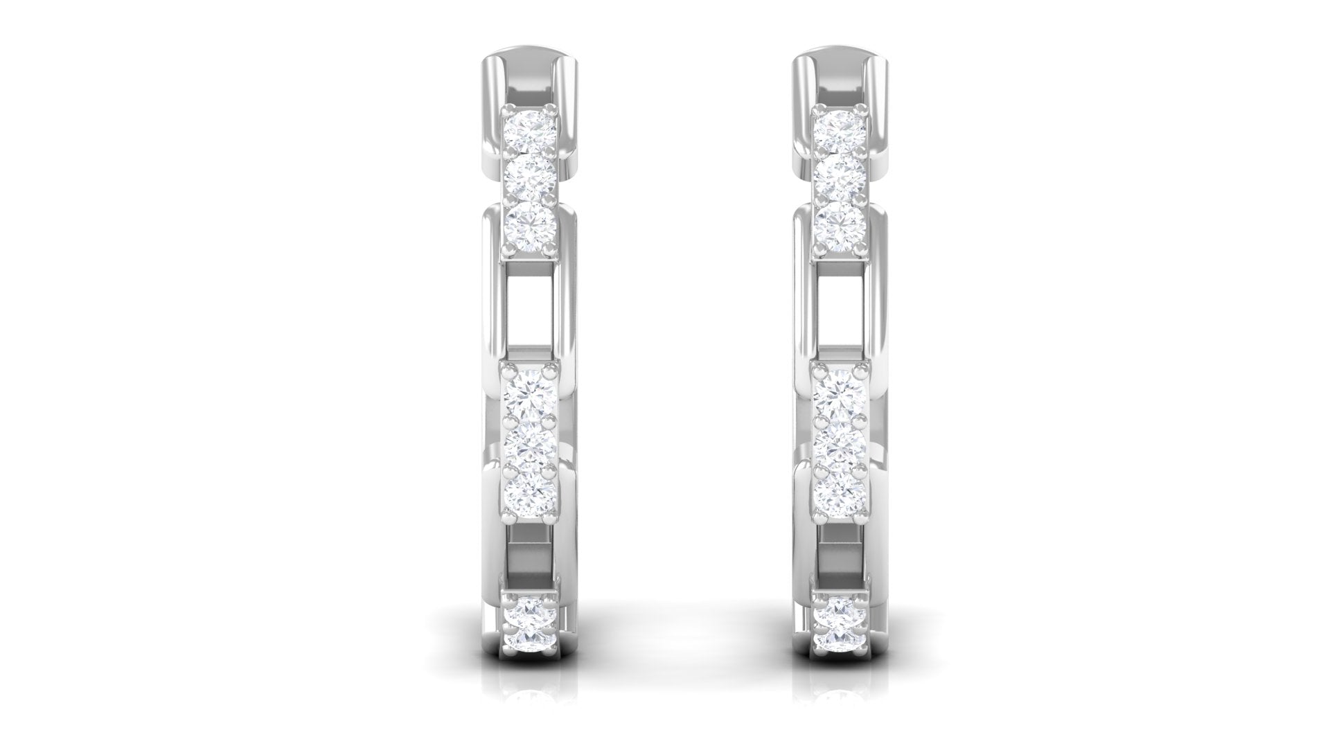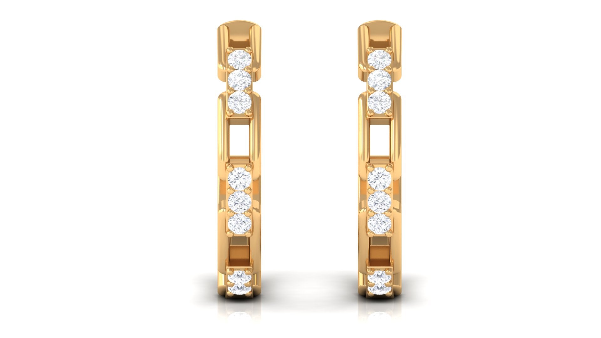 A forever fashion favorite, Diamond Hoop Earrings hang from the earlobe in a circular or semi-circular shape (creating a hoop). The center stone of Diamond lends their timeless appeal a sparkly touch. The best part? No matter what occasion you slip them on for, they make for a statement just as effortless. From the classic hoops to the ones adorned with eye-pleasing motifs such as floral, butterfly, evil eye, celestial or even religious symbols (Diamond Cross Earrings, for instance), you have a world of options before you.
