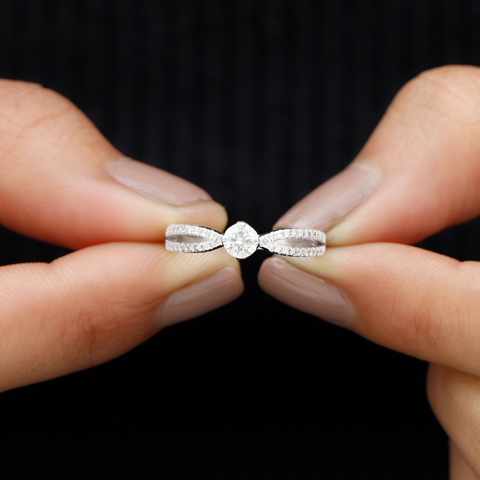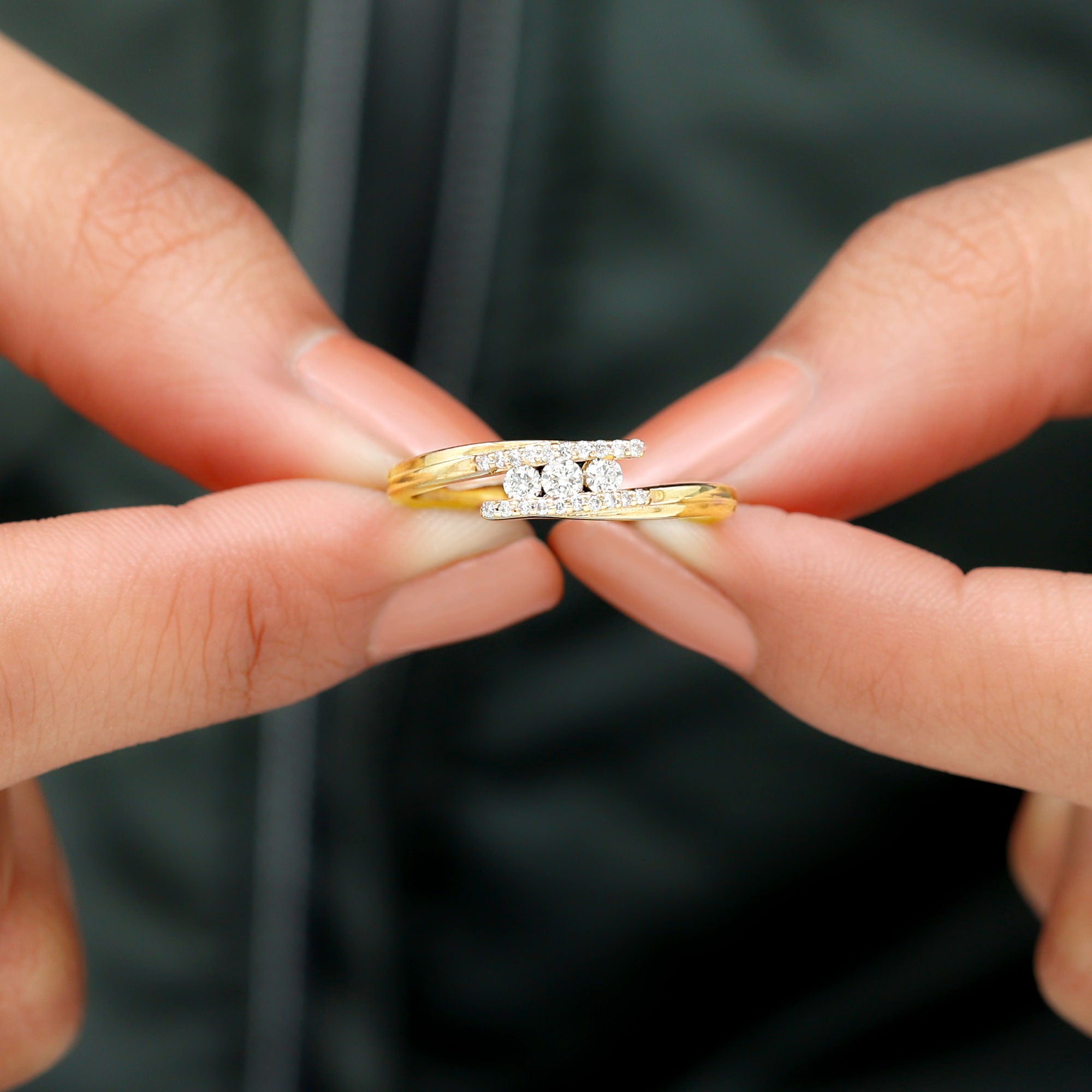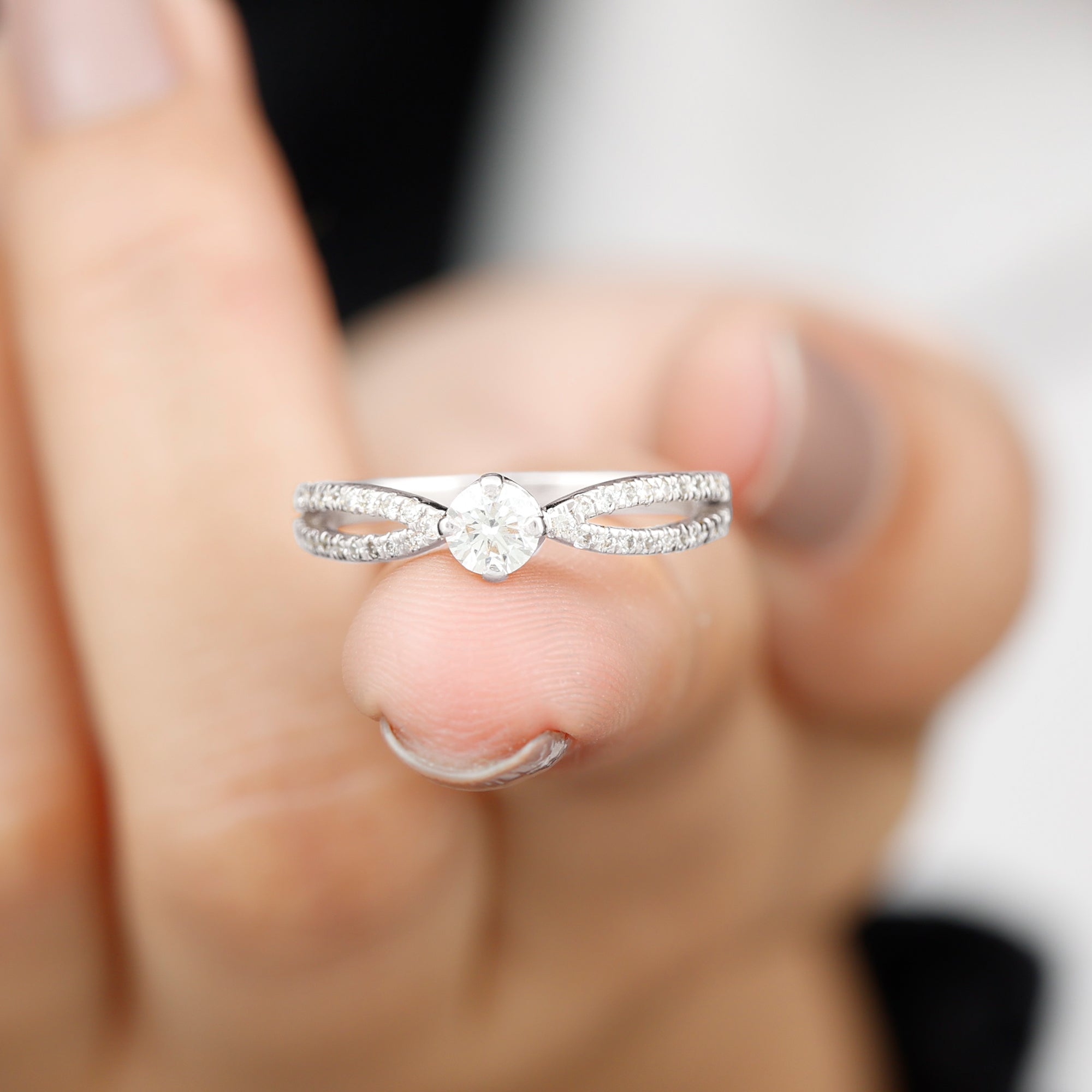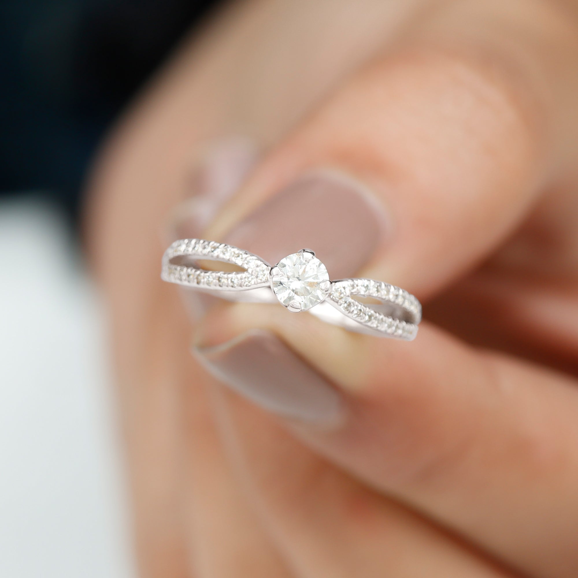 Rewarded as the most popular and classic ring style for conventional couples, a Solitaire Ring boasts the Centerpiece of a Diamond that stands all alone. Moreover, in this Single Diamond Engagement Ring, all the emphasis is put on the sparkle of the Center Diamond (owing to its enormous size of 6 MM or more). While it might appeal owing to its timeless aesthetic, this ring style will take you by surprise with the kind of versatility that it offers. For instance, while a Round Diamond Engagement Ring resonates with understated and classic senses of style, one mounted with fancier cuts like Pear, Princess, Marquise, etc., speaks to the trend-savvy bride-to-be(s). On the other hand, if you’re the kind of couple who likes to go grand when it comes to love expression, nothing better than an Asscher, Cushion, or Emerald Cut Diamond Ring.