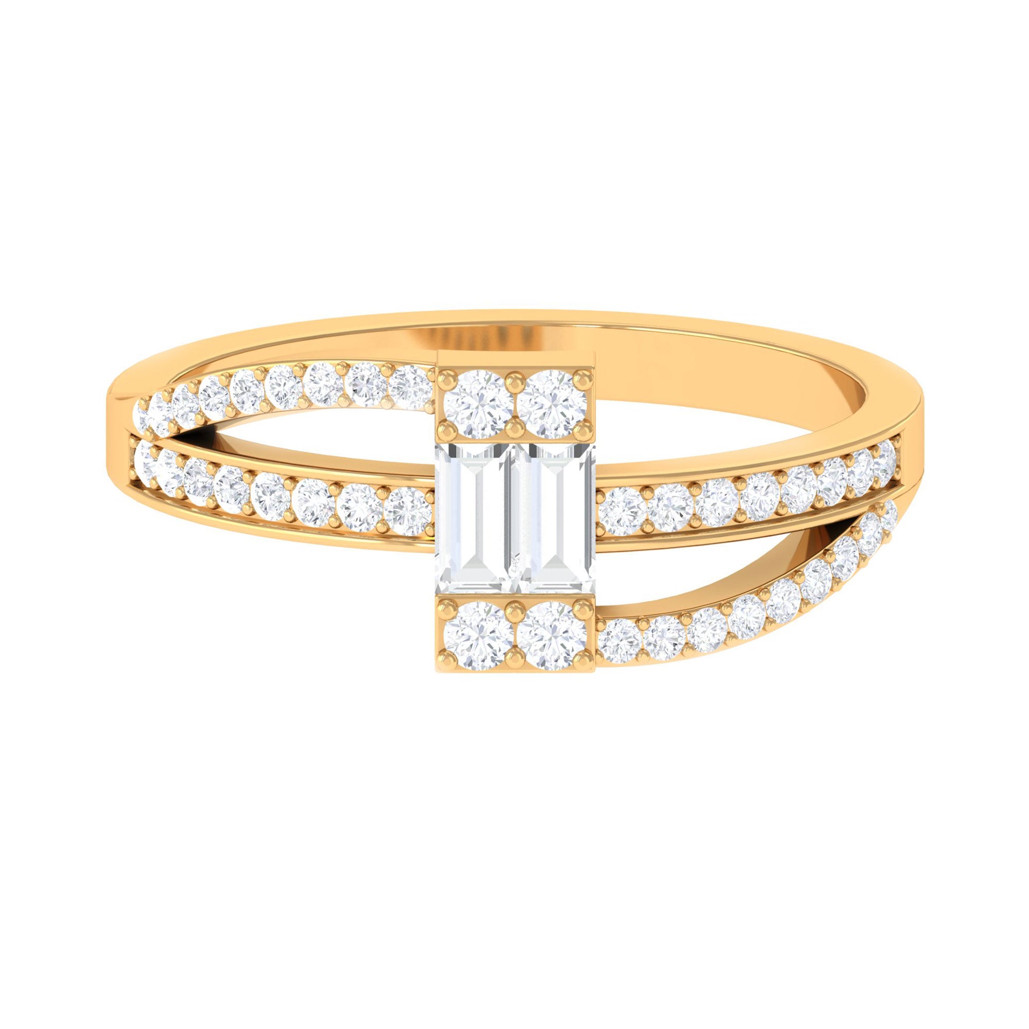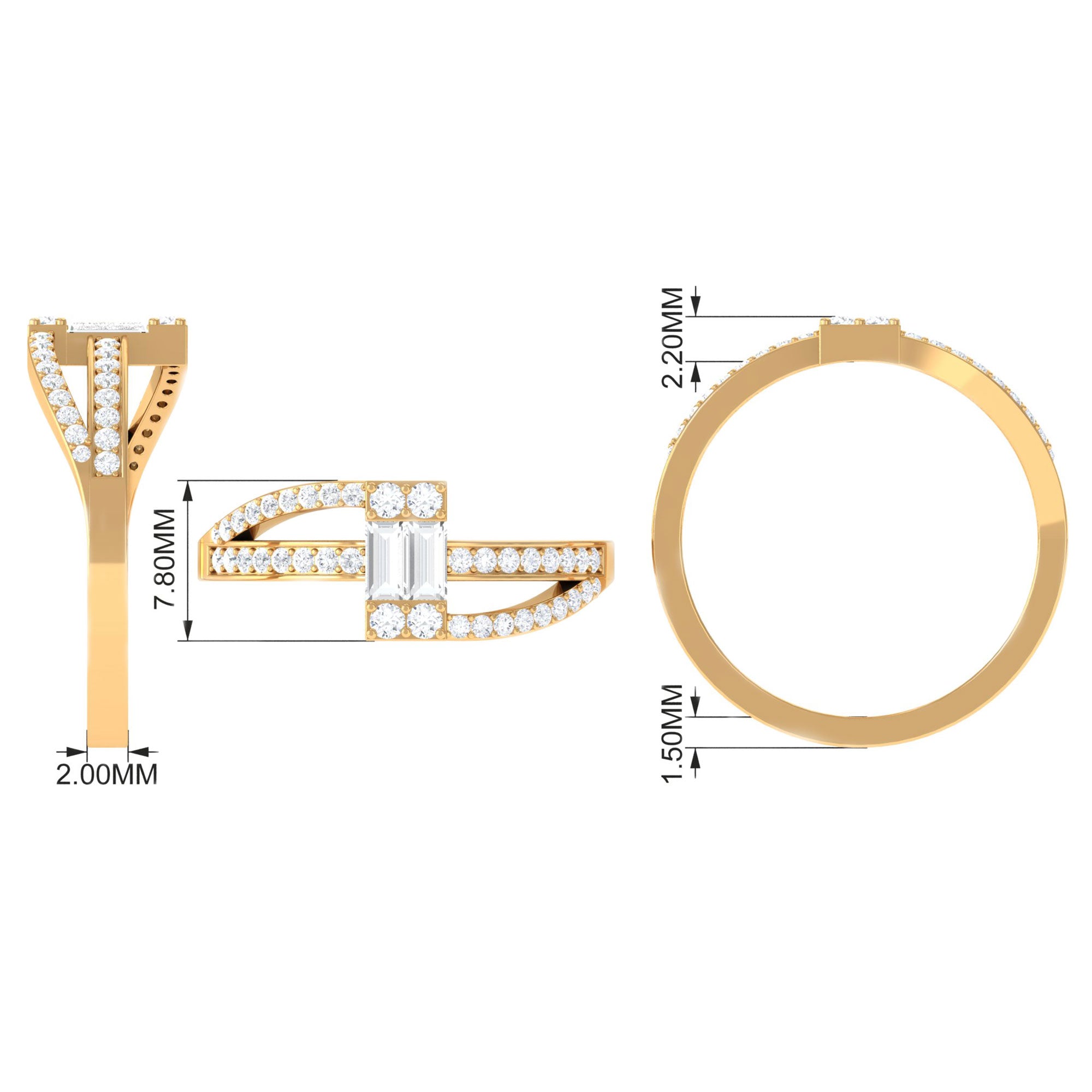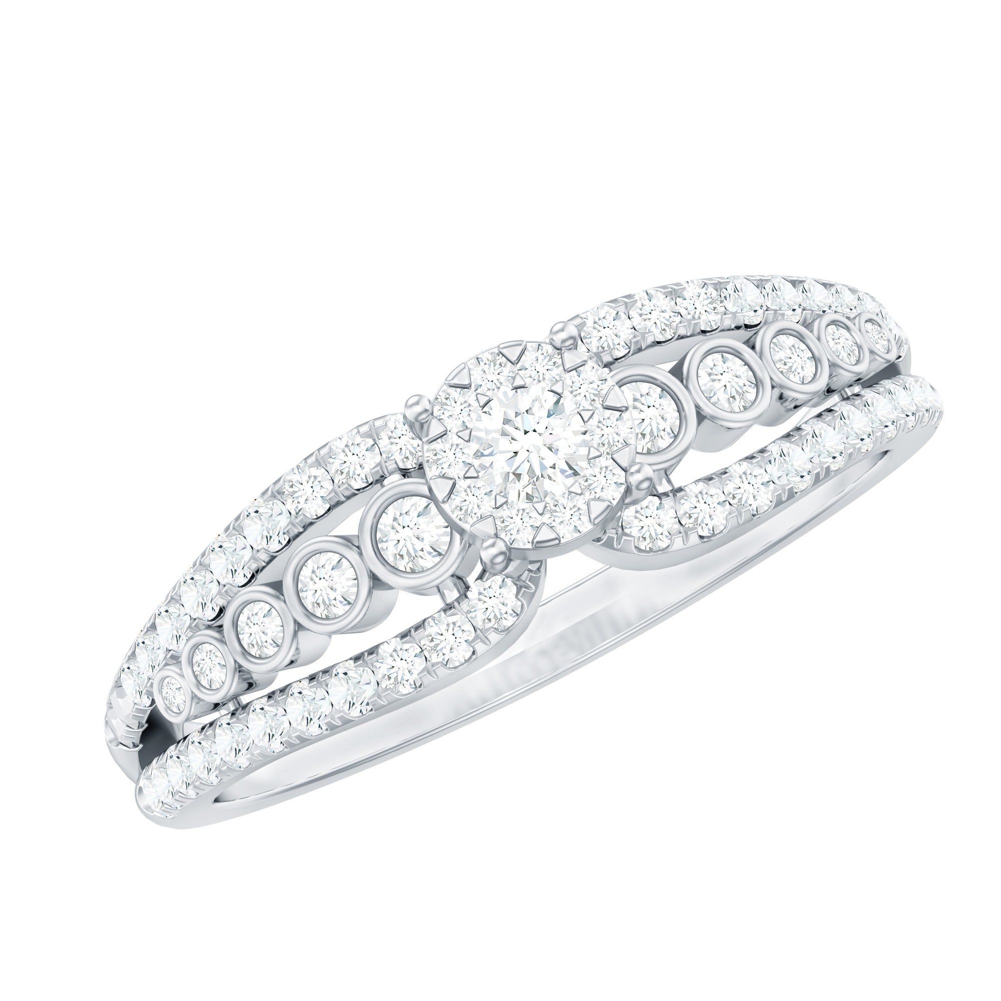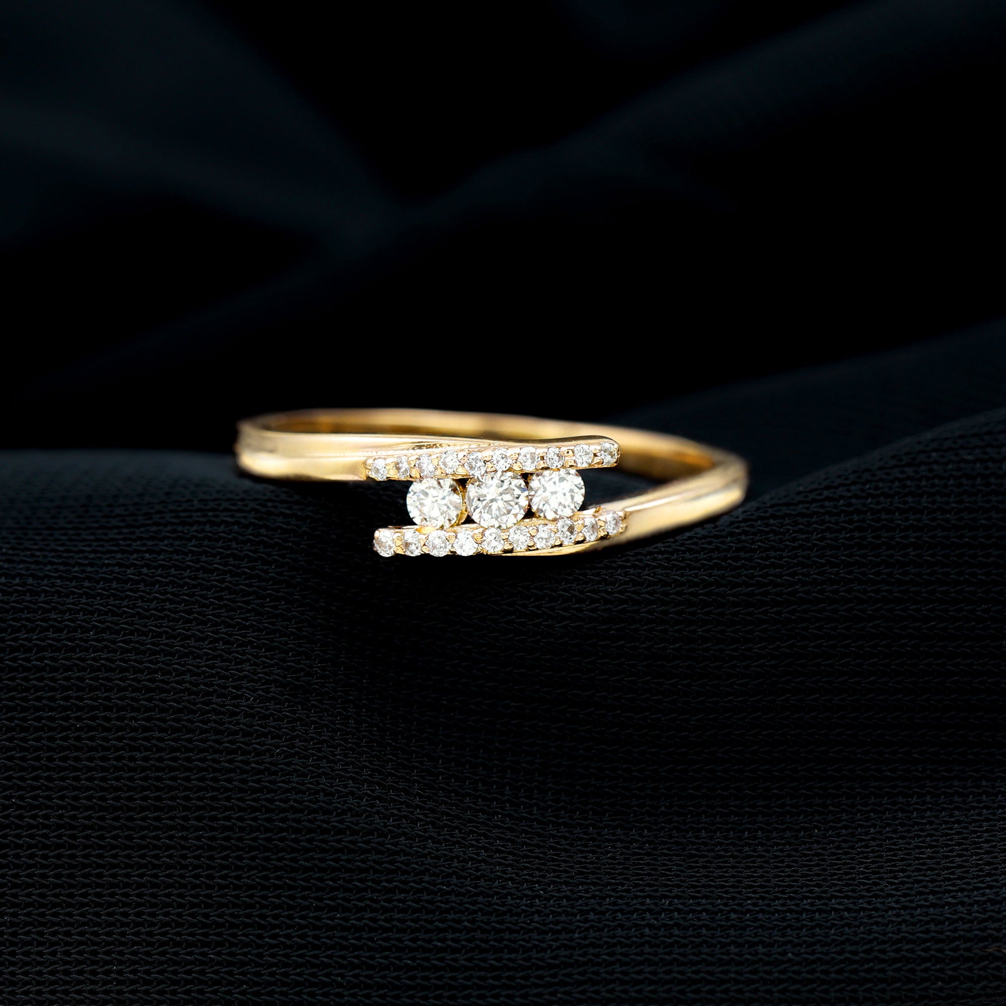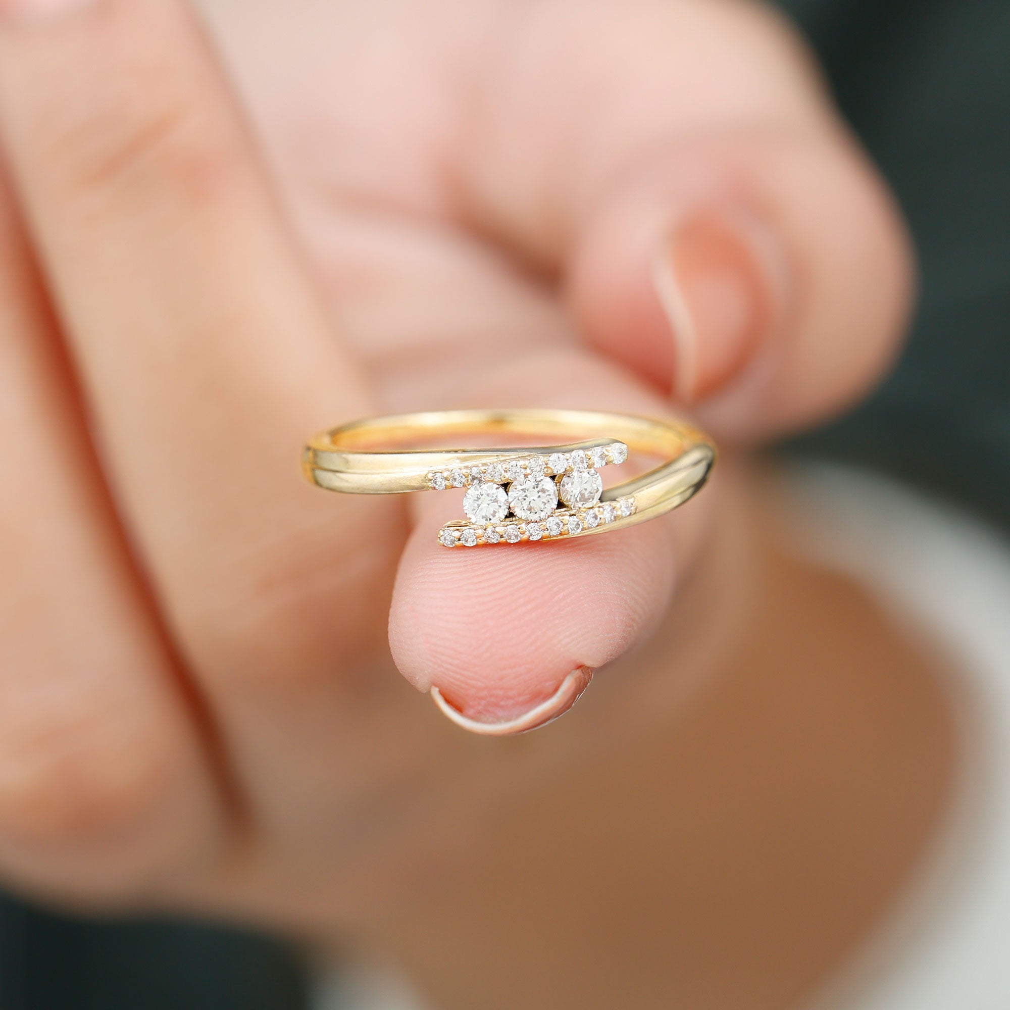 Rewarded as the most popular and classic ring style for conventional couples, a Solitaire Ring boasts the Centerpiece of a Diamond that stands all alone. Moreover, in this Single Diamond Engagement Ring, all the emphasis is put on the sparkle of the Center Diamond (owing to its enormous size of 6 MM or more). While it might appeal owing to its timeless aesthetic, this ring style will take you by surprise with the kind of versatility that it offers. For instance, while a Round Diamond Engagement Ring resonates with understated and classic senses of style, one mounted with fancier cuts like Pear, Princess, Marquise, etc., speaks to the trend-savvy bride-to-be(s). On the other hand, if you’re the kind of couple who likes to go grand when it comes to love expression, nothing better than an Asscher, Cushion, or Emerald Cut Diamond Ring.