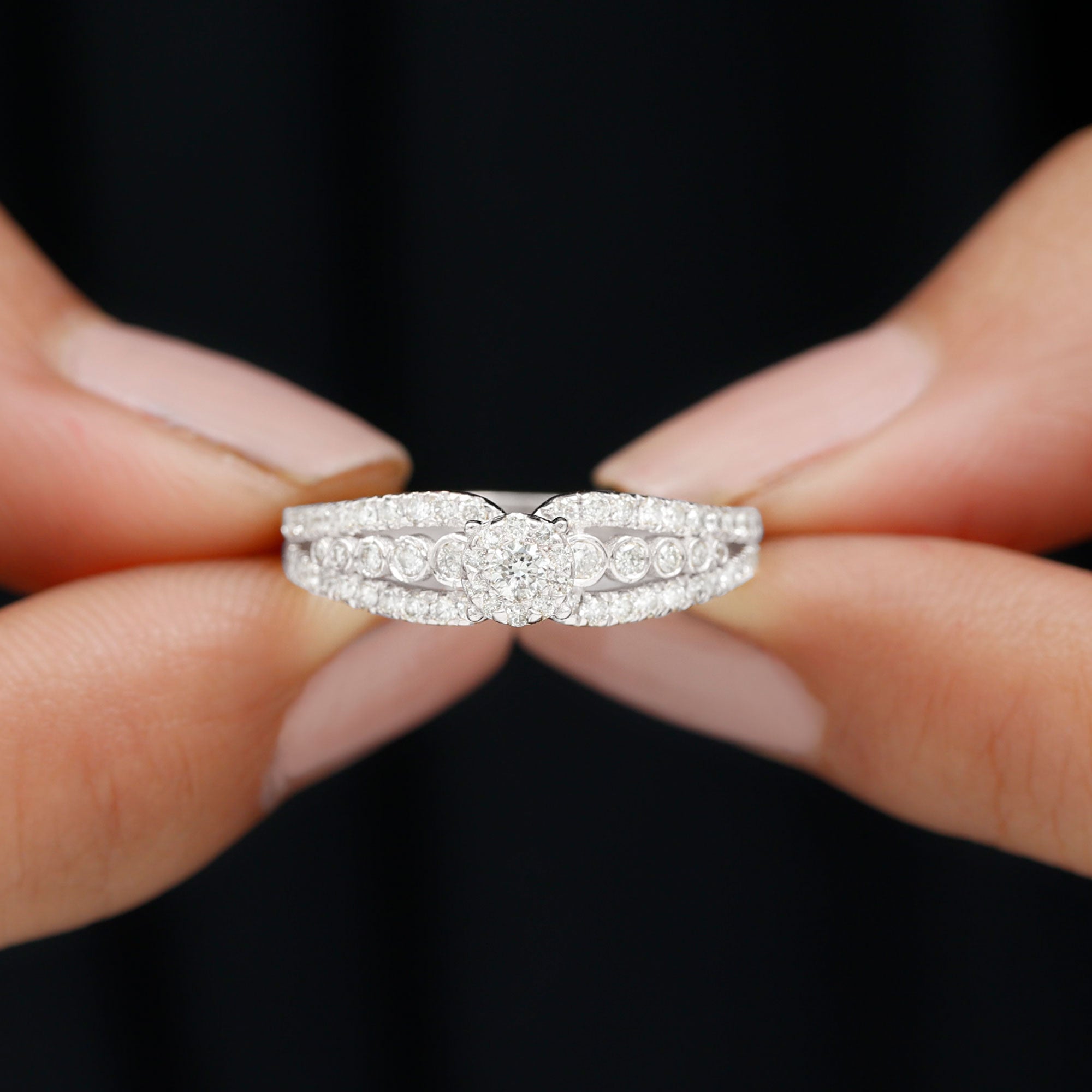 Dramatic, unique, and unconventional, this ring style features a close-knit group of Diamonds set together to catch the eye. A glance at a Diamond Cluster Engagement Ring is enough to tell that it is meant to appeal to the kind of bride who likes to stand out with her extravagant fashion choices. The best part about this ring style is the many options that you have. If you wish to lend a graceful visual appeal to your ring, you could go for a Floral Cluster Diamond Ring. However, if you simply fancy an eye-striking appeal in your ring, those adorned with round or oval Diamond Clusters in undefined patterns will work.