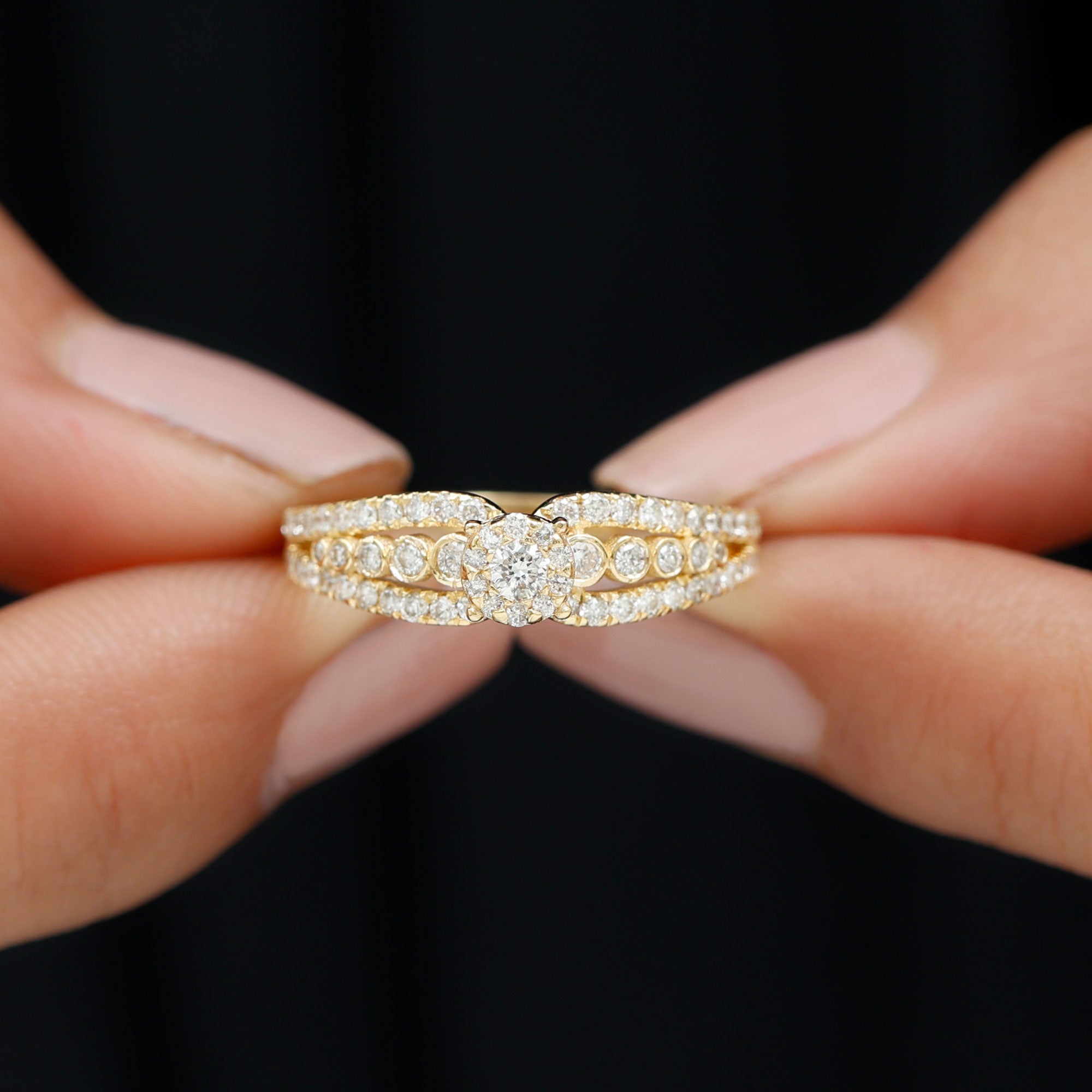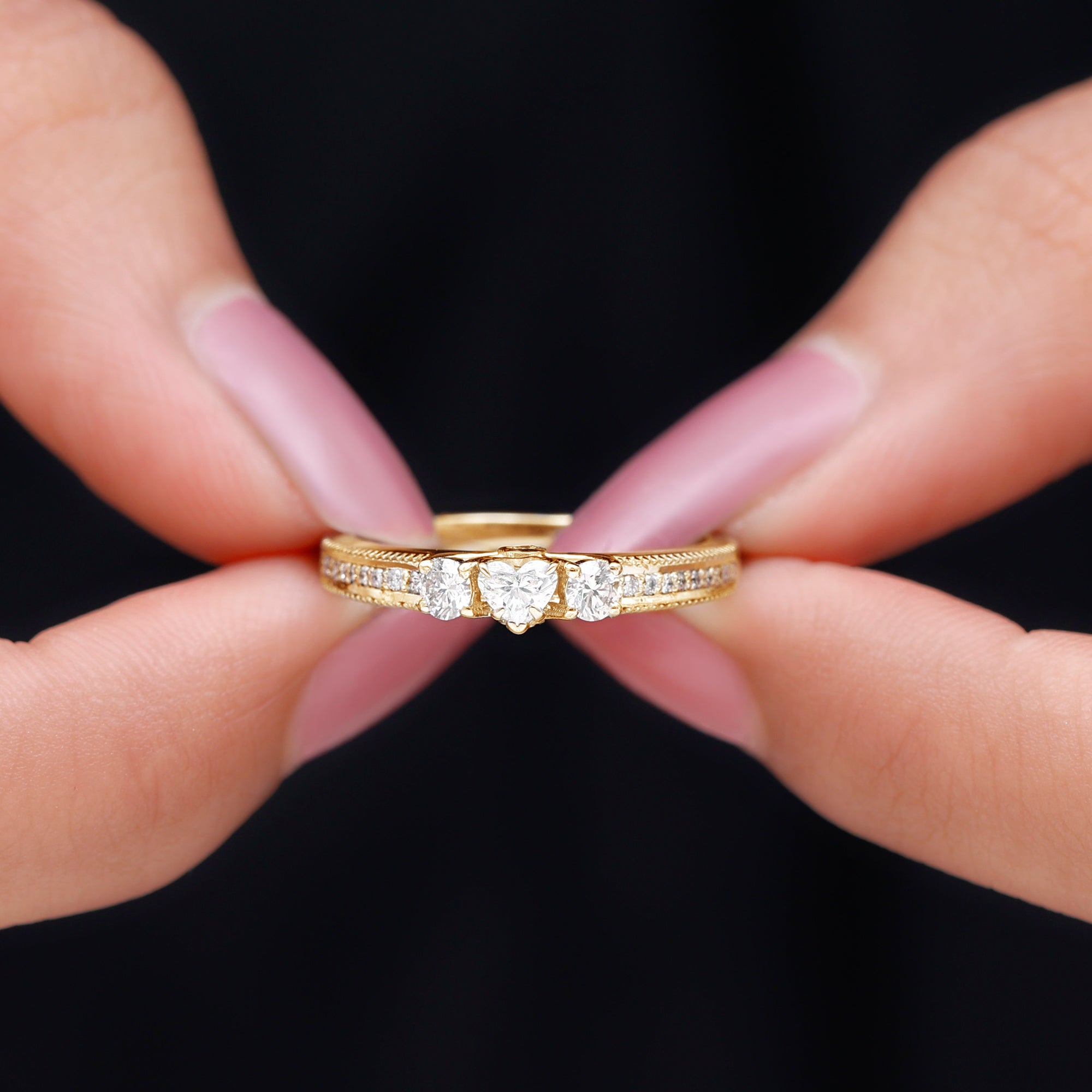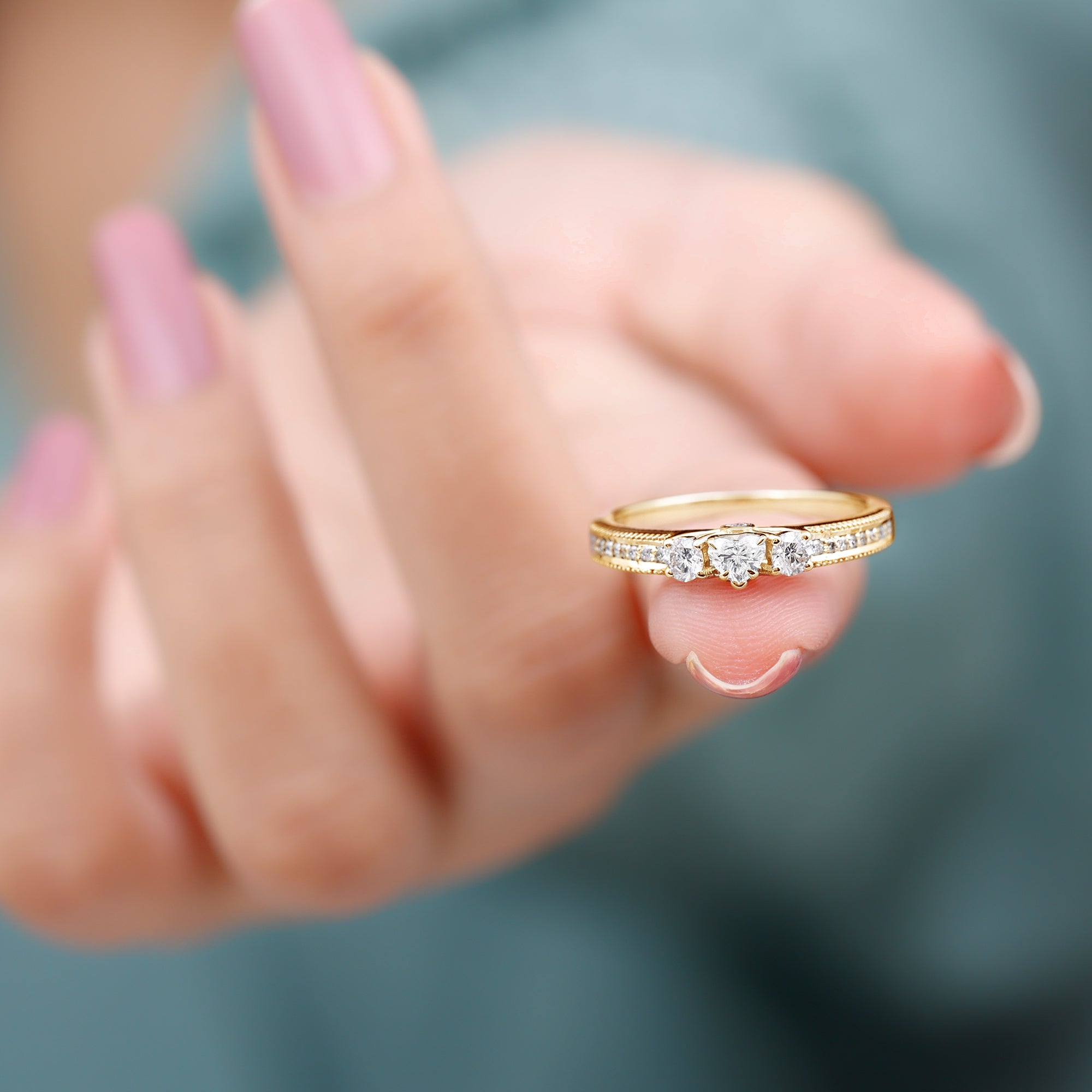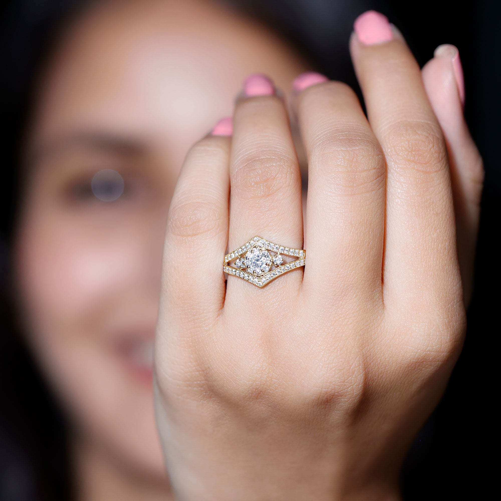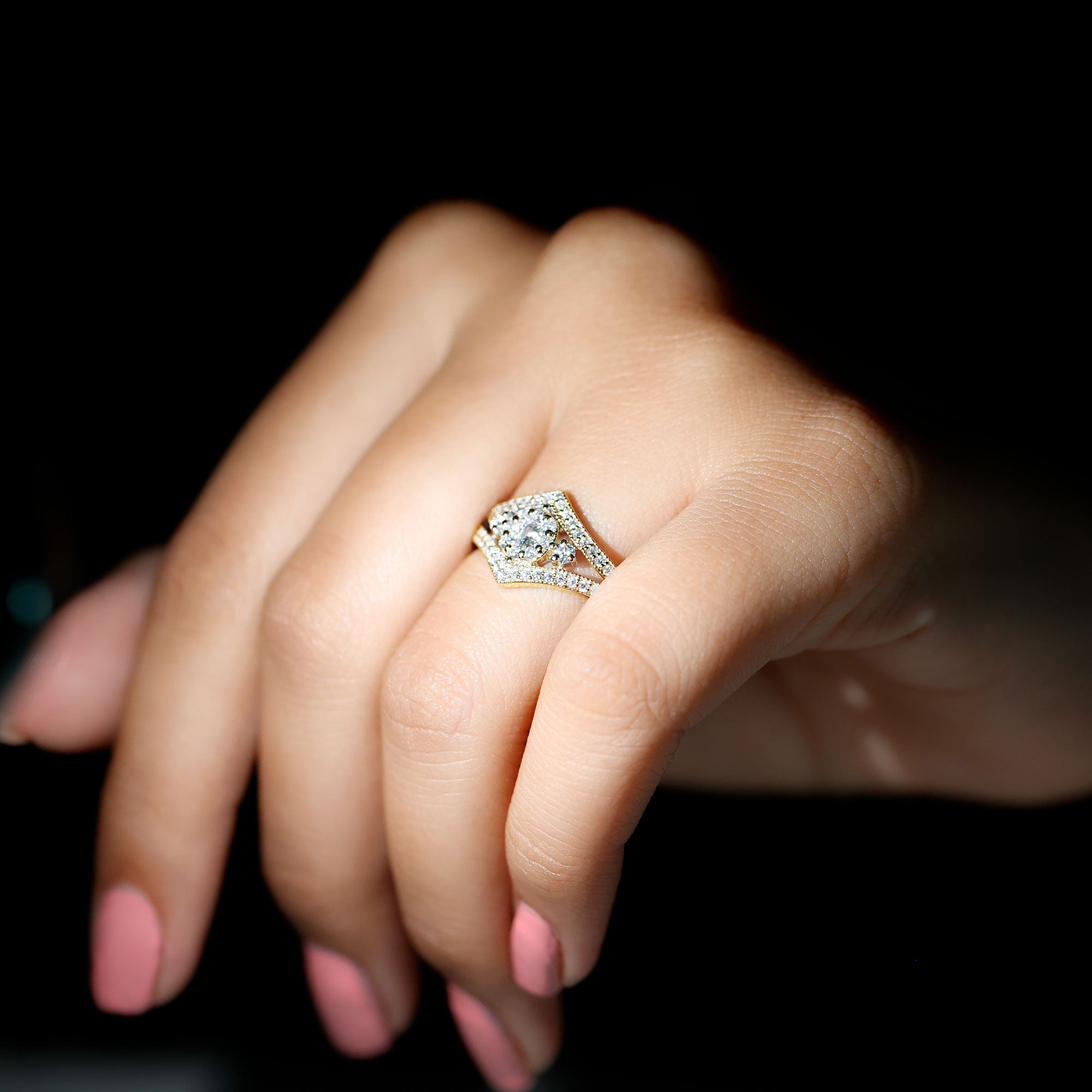 Just like the name suggests, this ring style features twin stones of Diamond that are set side by side. The contemporary aesthetic of this Two Diamond Engagement Ring is enough to tell that it appeals to the modern bride who fancies some extra bling (since twin stones mean double the sparkle). Moreover, you have a myriad of options before you owing to the many shapes it is fashioned with. While a Kyle-inspired Asscher and Pear Diamond Ring is the most iconic one in this collection, you could go for the one adorned with Round Cut if you wish to stick to the classics. On the other hand, for those seeking something romantic, there is nothing quite like a Heart Shaped Diamond Engagement Ring mounted in a two-stone setup. No matter what shape you go for, each ring in this collection unique commemorates your betrothal since the twin stones are traditionally meant to celebrate the union of two souls as one.
