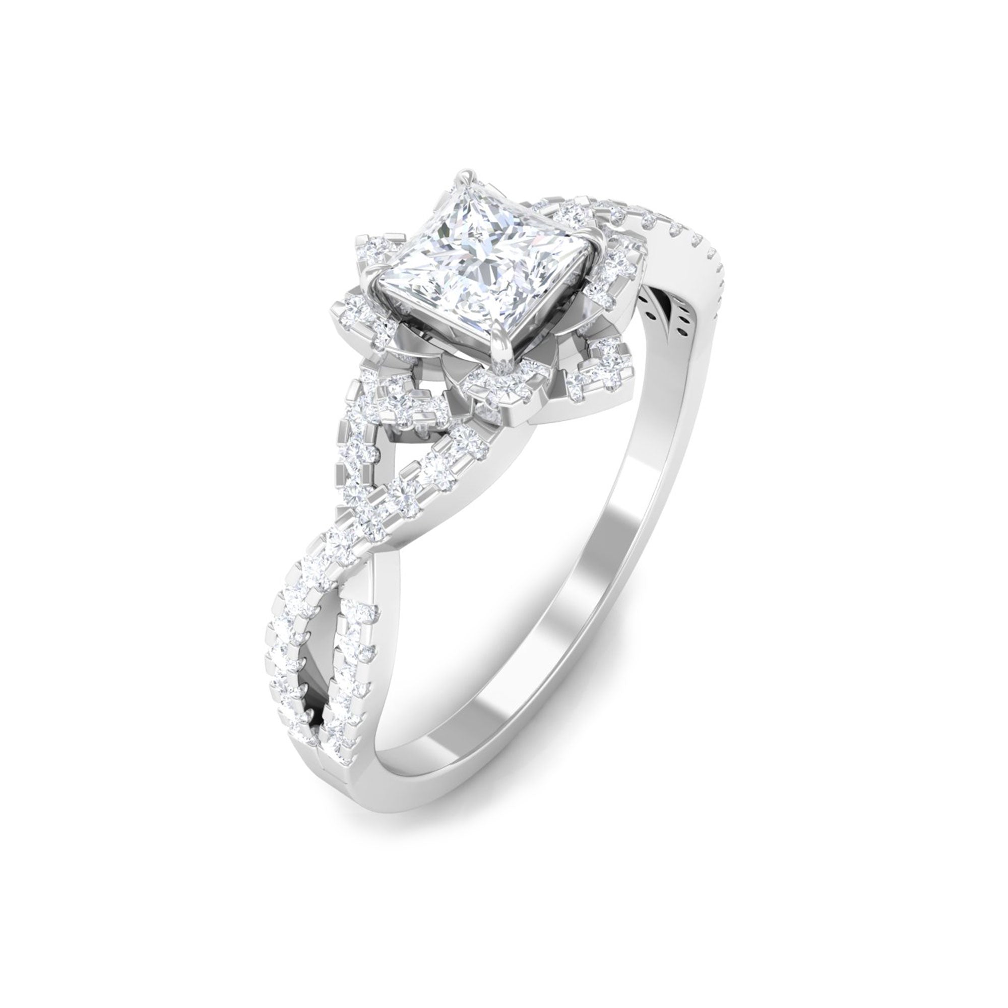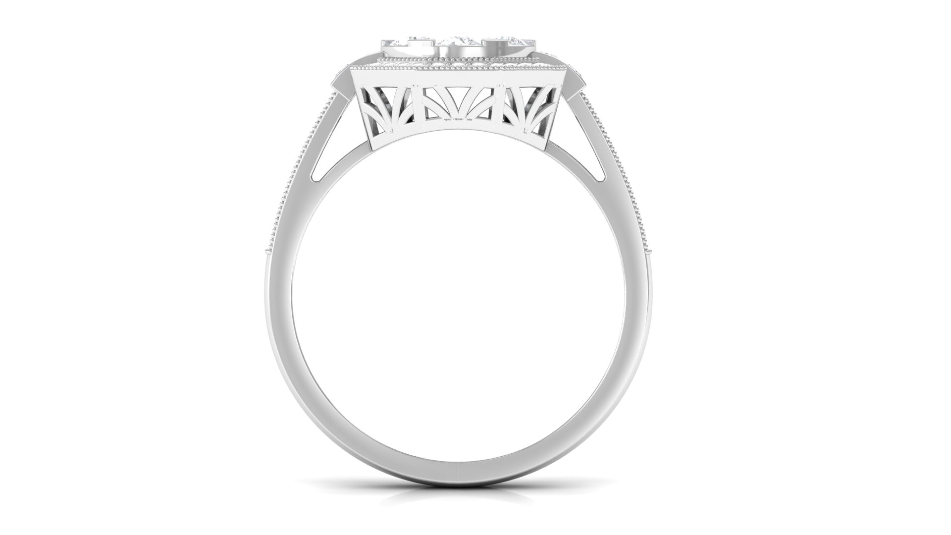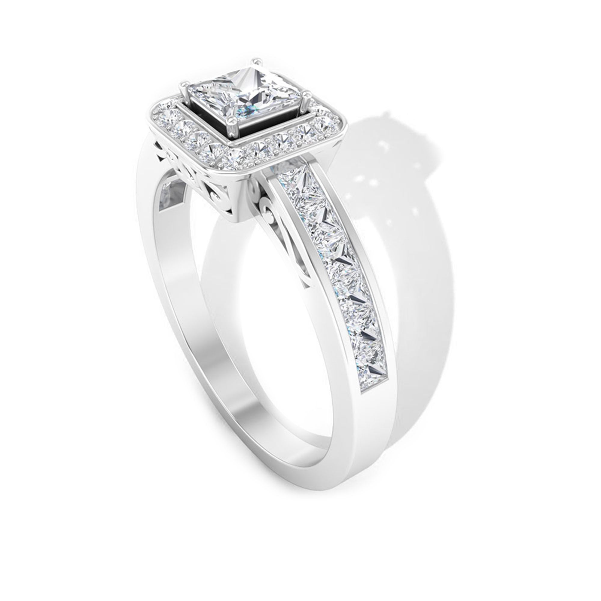 In the simplest terms, a Princess Cut is nothing but a square cut with pointed corners and brilliant-style facet pattern. Interestingly, it is shaped like an inverted pyramid with two to four chevron patterns. Besides that, a Princess Cut Diamond Engagement Ring boasts as many as 76 facets that exude a unique, sparkling effect when viewed from different angles.