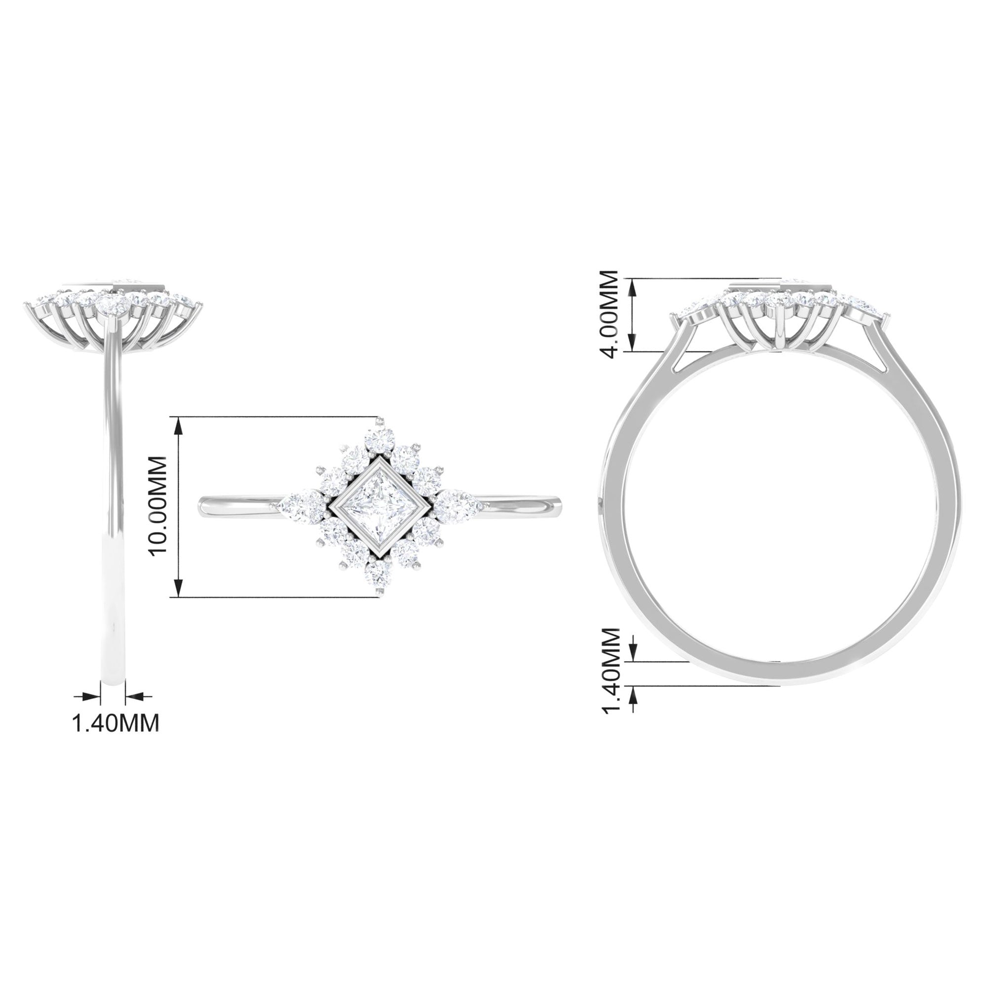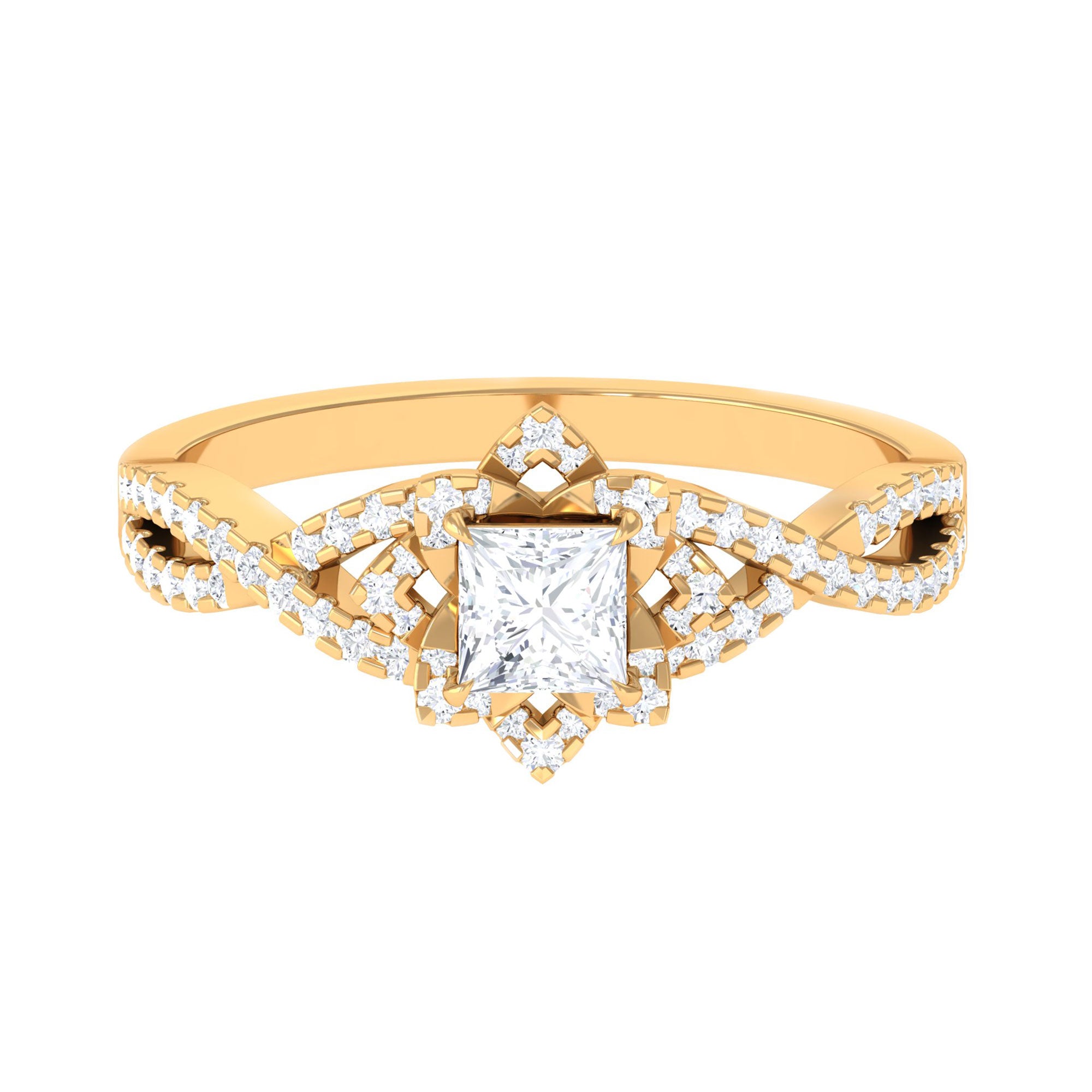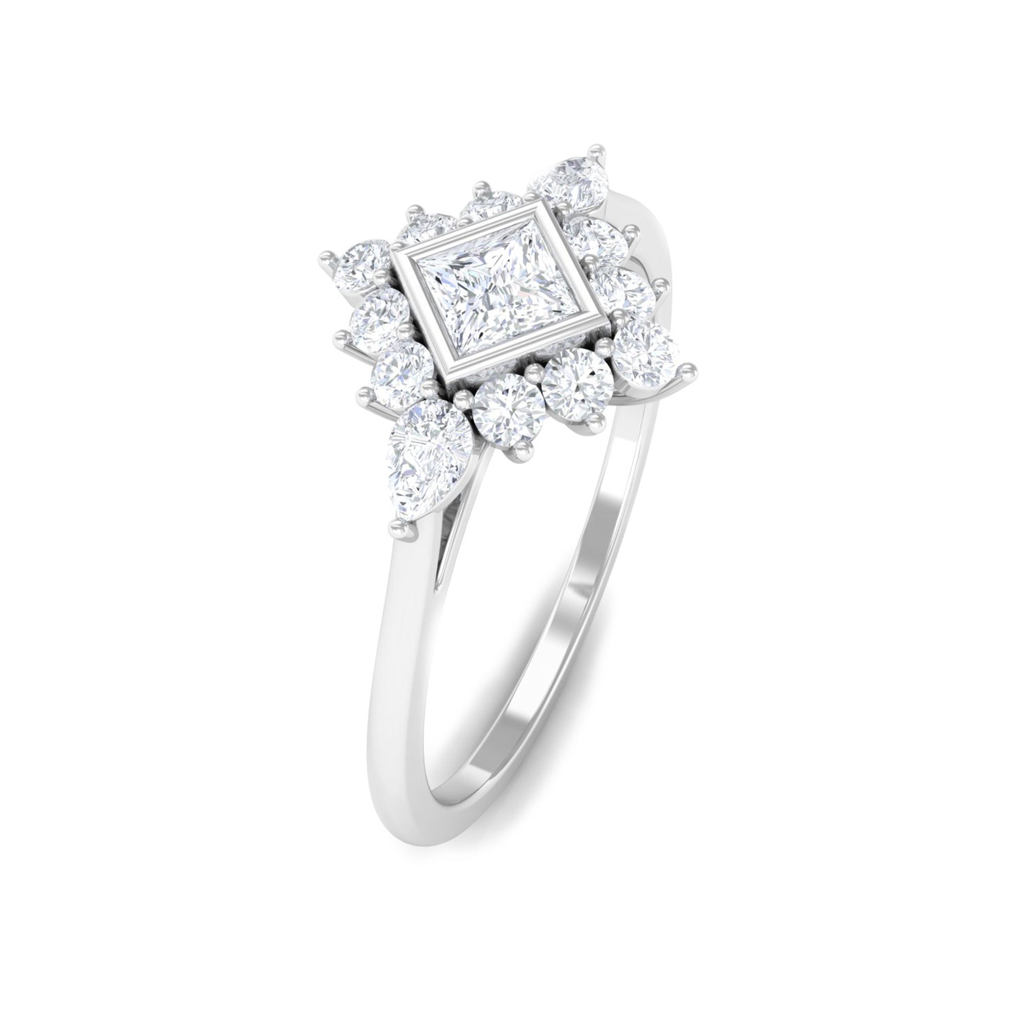 In the simplest terms, a Princess Cut is nothing but a square cut with pointed corners and brilliant-style facet pattern. Interestingly, it is shaped like an inverted pyramid with two to four chevron patterns. Besides that, a Princess Cut Diamond Engagement Ring boasts as many as 76 facets that exude a unique, sparkling effect when viewed from different angles.