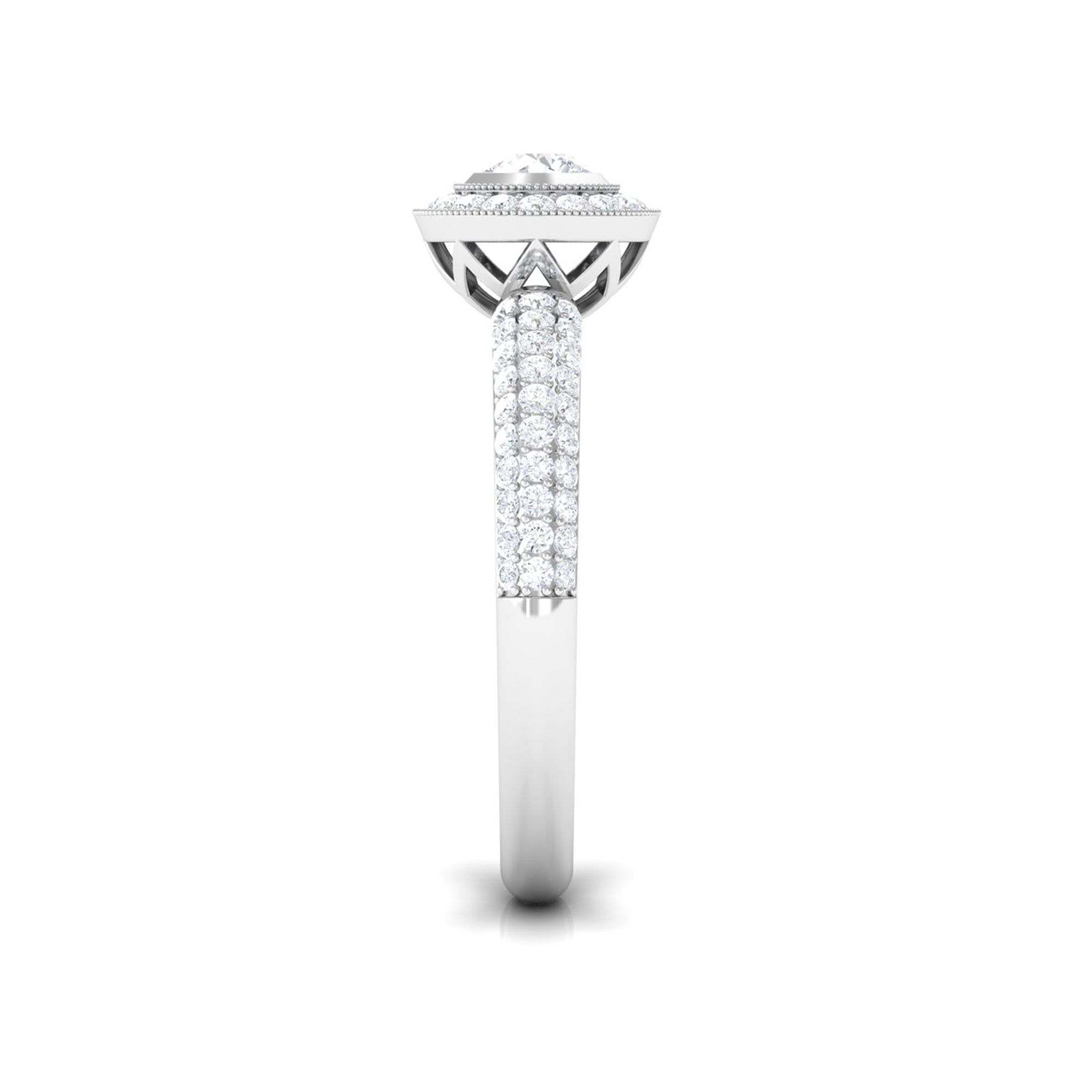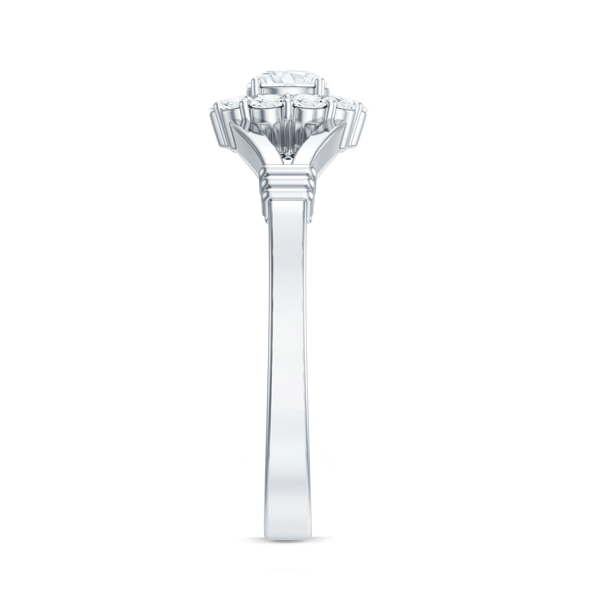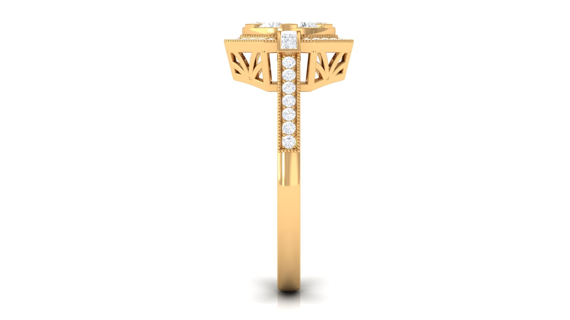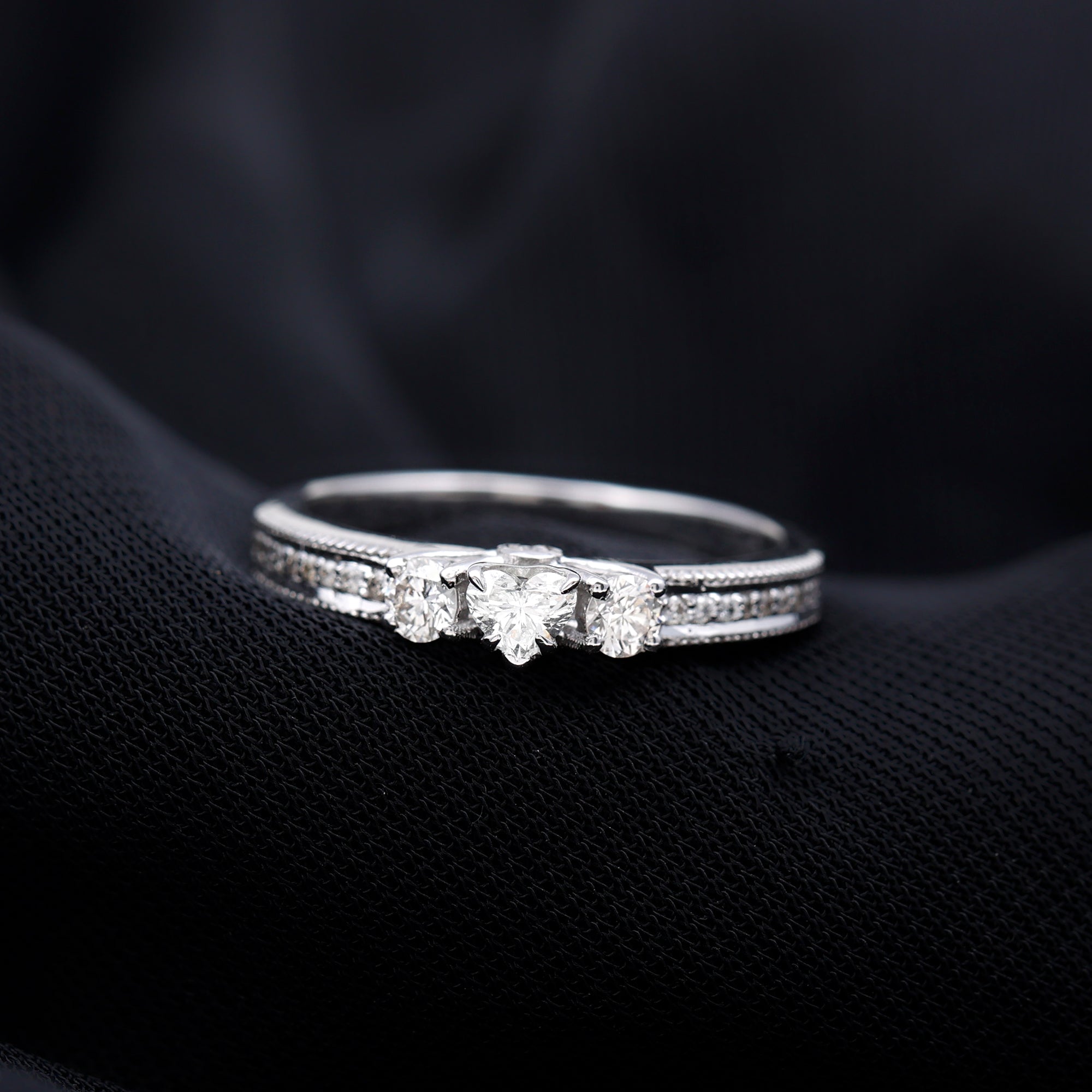 The ultimate expression of love, a Heart Diamond Engagement Ring appeals with its trendy, feminine, and romantic aesthetic. Most preferred in a solitaire, halo, and pave style, this shape is characterized by 56 and 58 facets and (interestingly) a pointy end that boasts a French tip (which greatly helps it exude more brilliance).