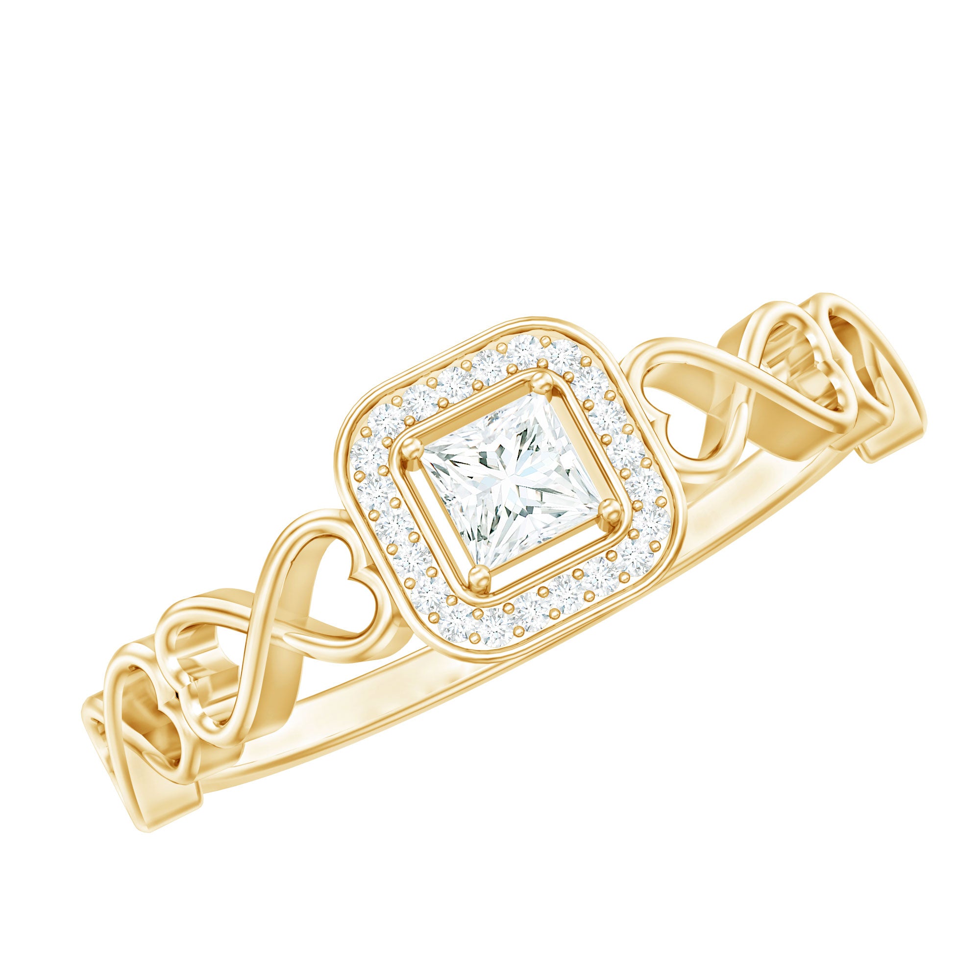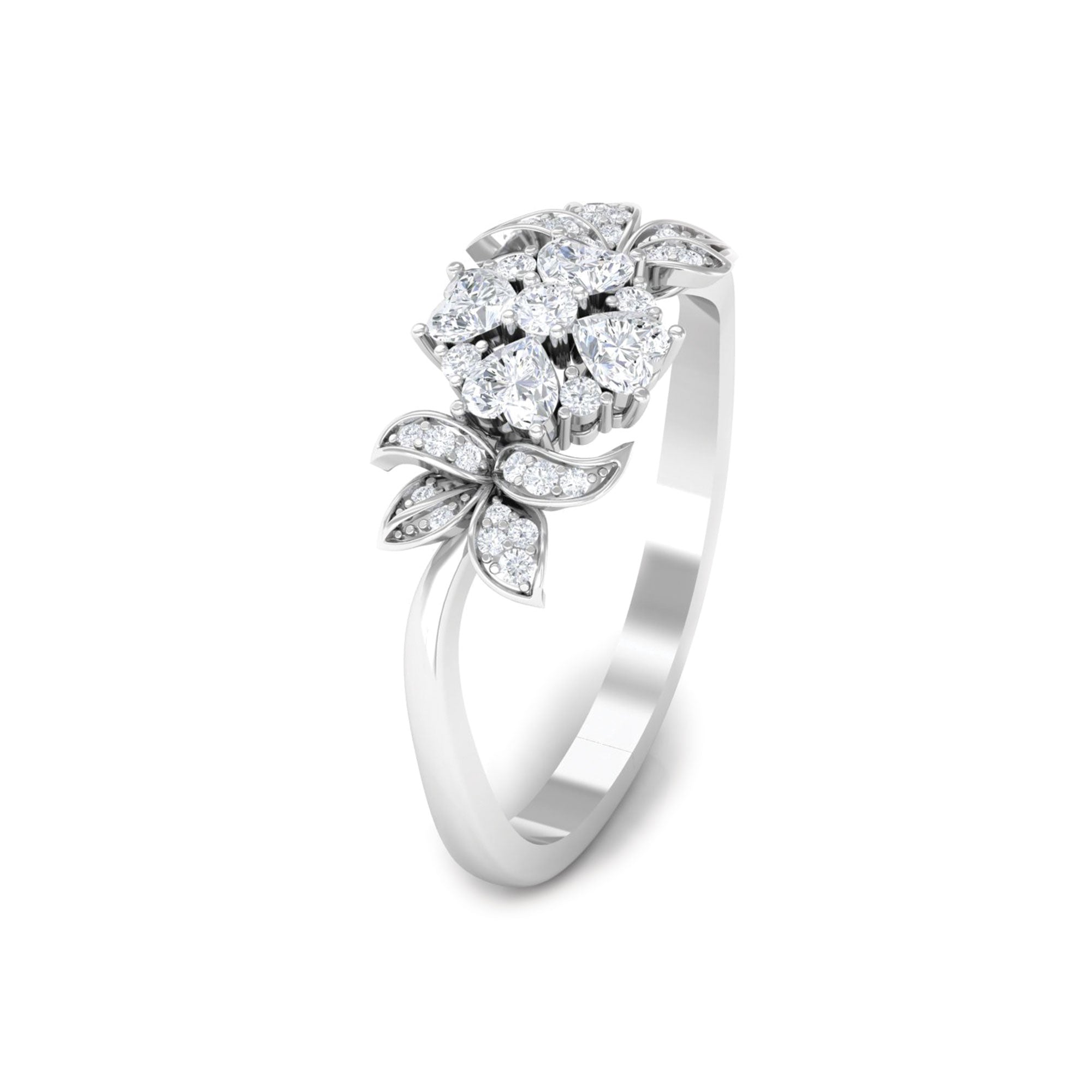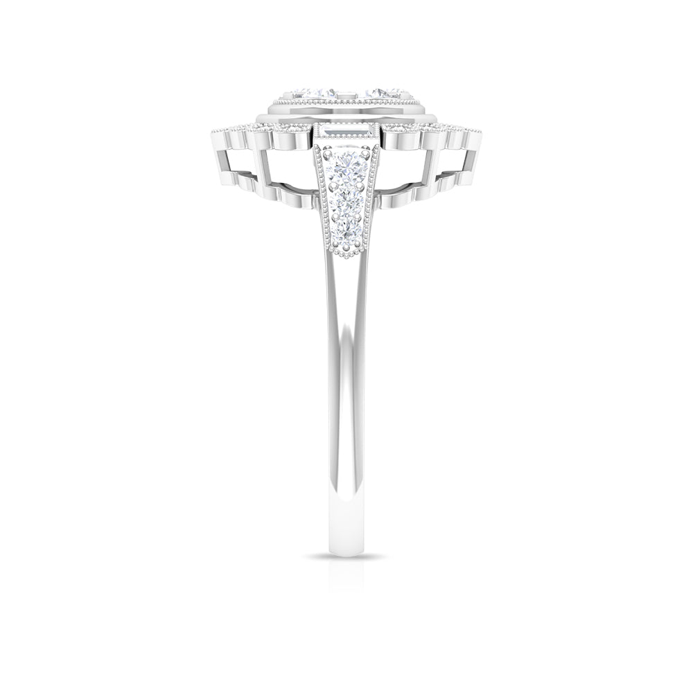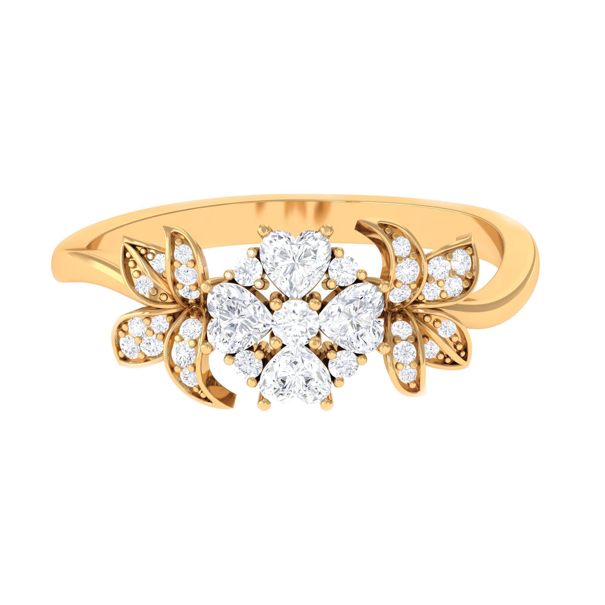 The ultimate expression of love, a Heart Diamond Engagement Ring appeals with its trendy, feminine, and romantic aesthetic. Most preferred in a solitaire, halo, and pave style, this shape is characterized by 56 and 58 facets and (interestingly) a pointy end that boasts a French tip (which greatly helps it exude more brilliance).