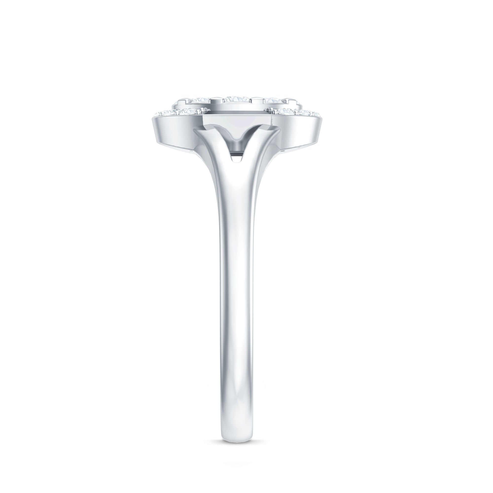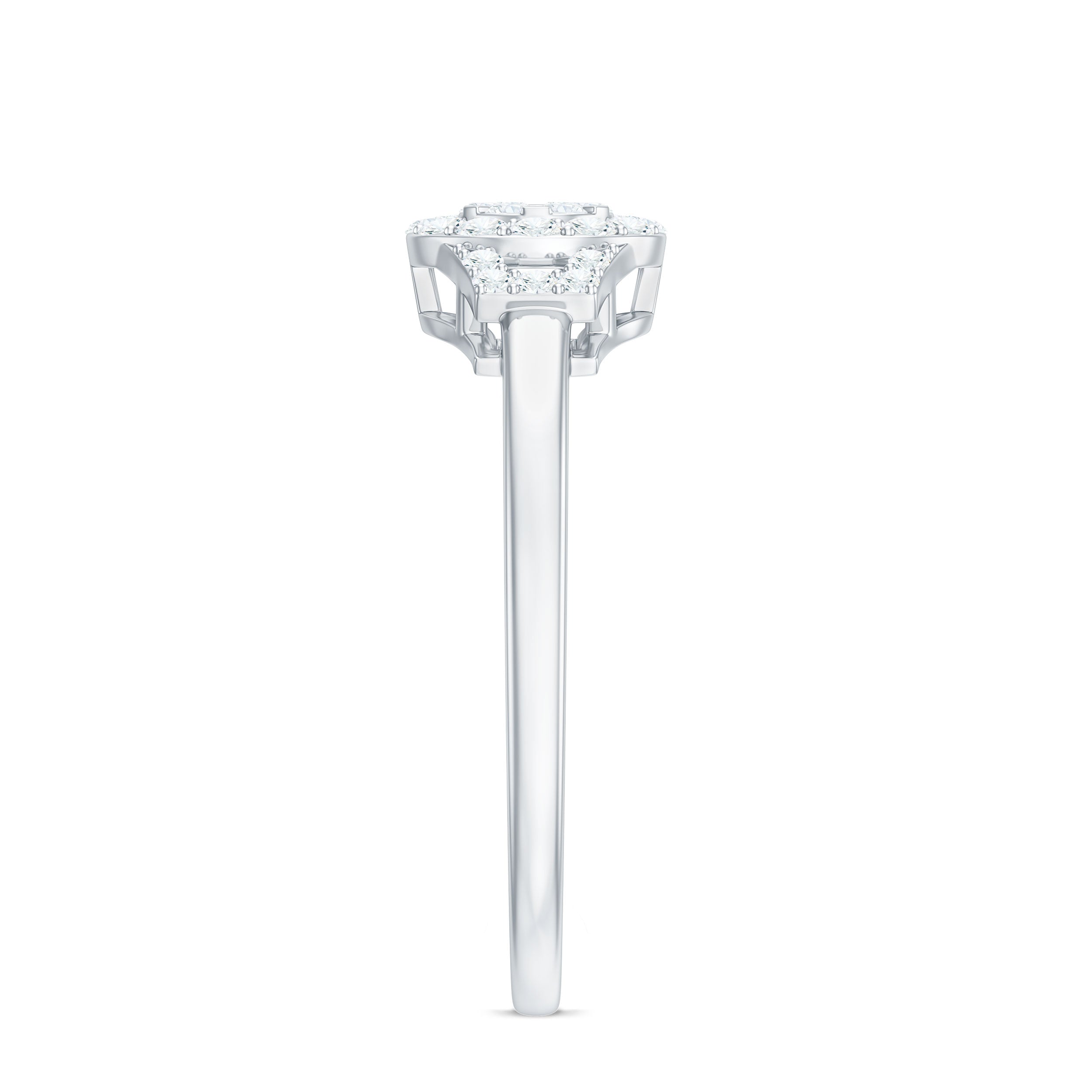 Reminiscent of the shape of a boat, smile, and football, a Marquise Cut is characterized by a curved body and pointed ends. Thanks to its long and tapered shape, a Marquise Diamond Engagement Ring makes for a flattering choice for those looking for larger-sized rings. Moreover, it boasts a total number of 58 facets that are strategically placed to maximize the sparkle.