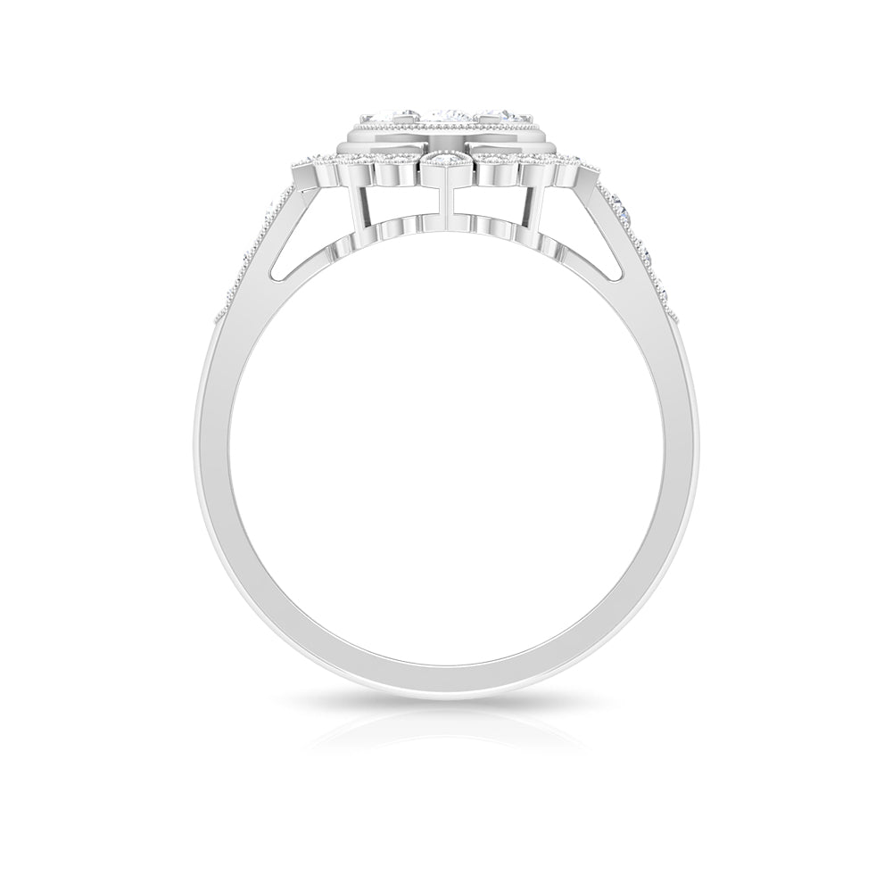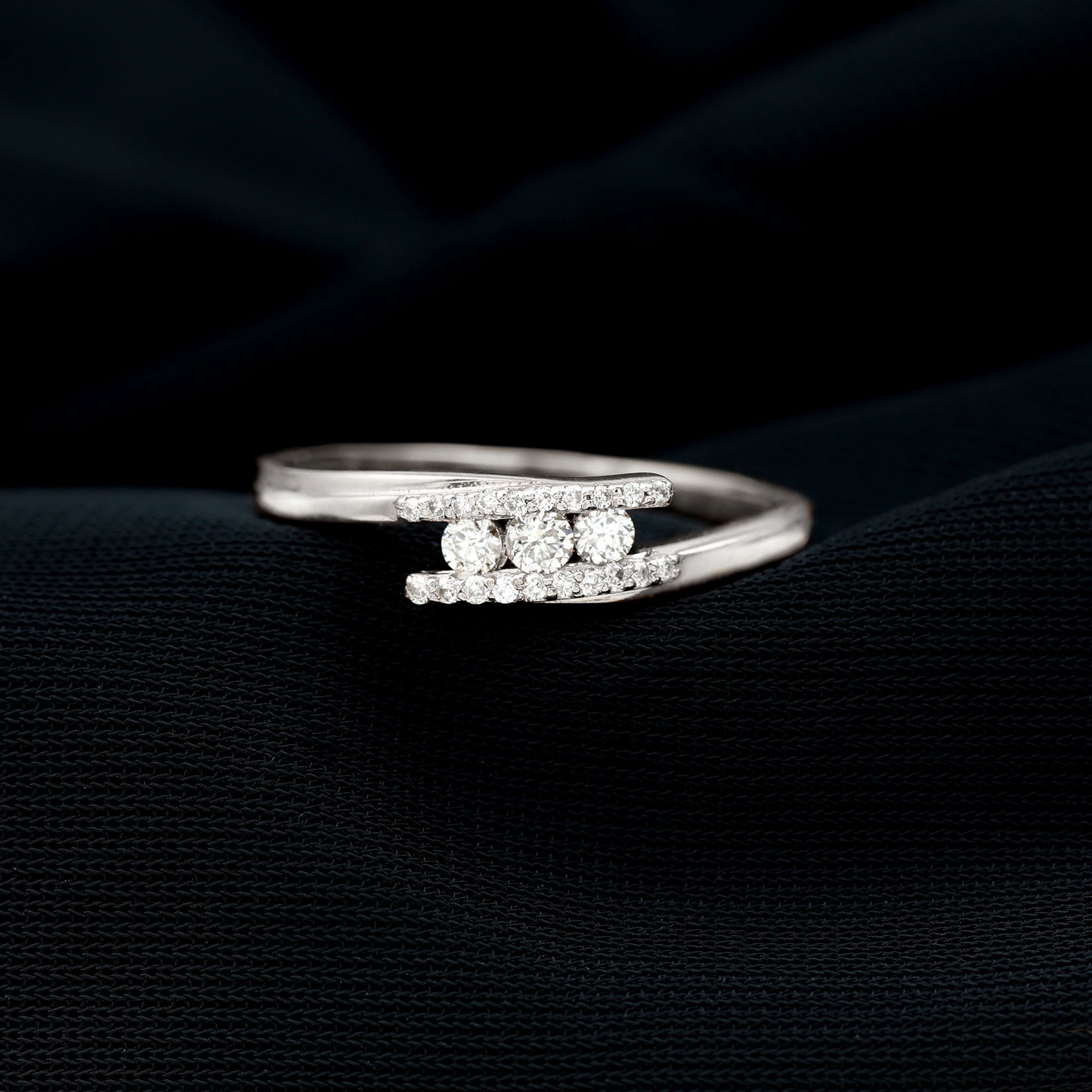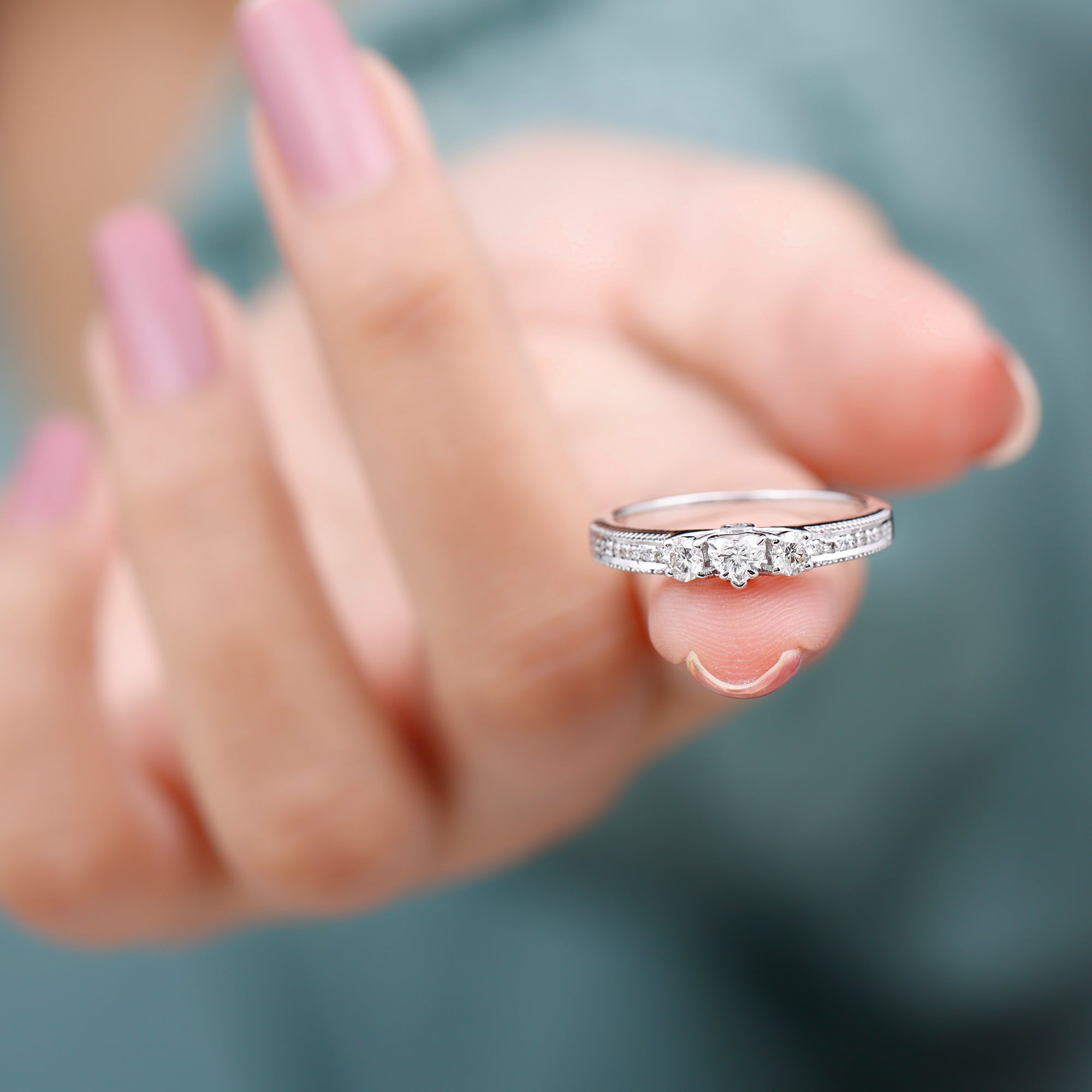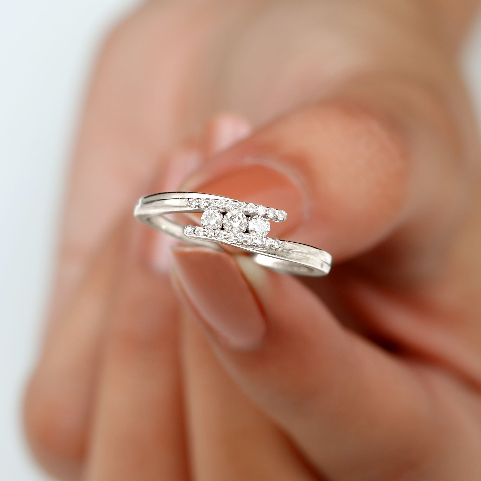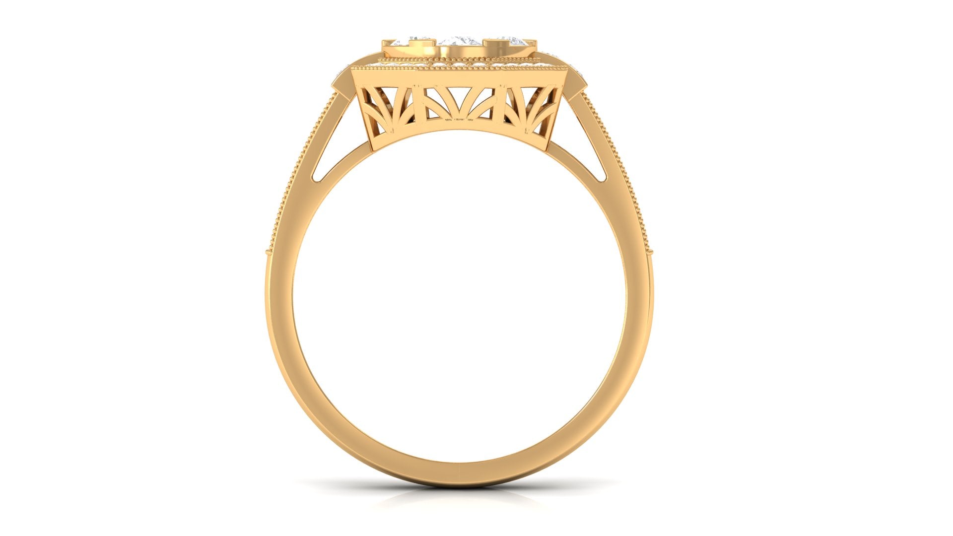 Flashy, flamboyant, and fashion-forward, this ring style incorporates three (identical-looking) stones of Diamond nestled together in a row. If you wish to go beyond the ordinary for a more contemporary and needless to mention, sparkly ring style (since more Diamonds mean more sparkles), a 3 Diamond Engagement Ring is your way forward. Interestingly, if you fancy a vibrant and color-contrasting appeal, you could even go for a Sapphire or Ruby and Diamond Engagement Ring mounted in a three-stone setup. Besides that, what makes this ring style stand out is that it speaks to every couple uniquely. That’s because each of the three stones of the Diamond here represents the couple’s past, present, and future respectively.
