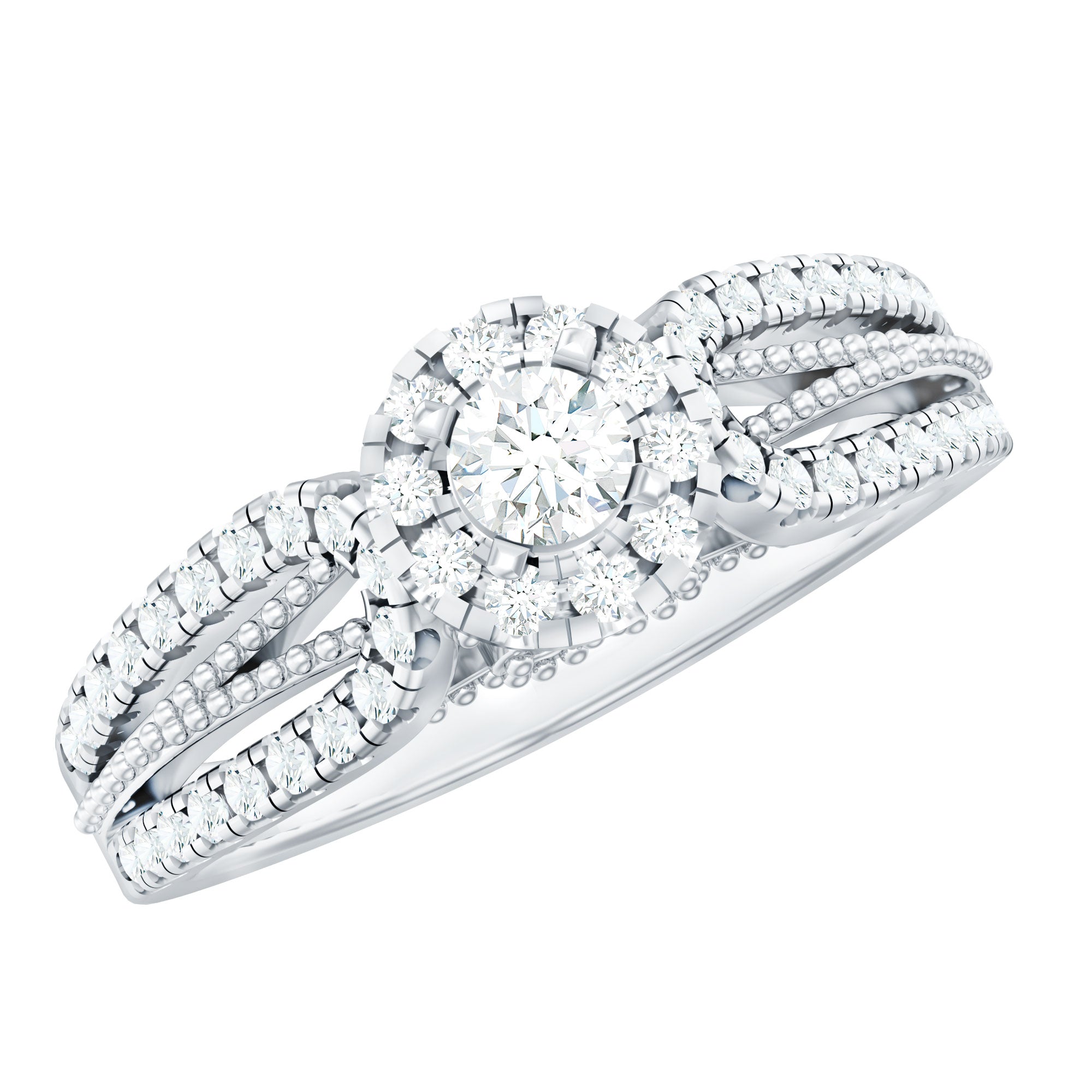 Meant for the sparkle-loving bride-to-be(s), this ring style features the encircling of petite stones of Diamond all around its Centerpiece. Apart from lending more personality and visual appeal to your Diamond, the Halo makes it appear slightly larger (without costing the extra bucks, of course). So if you're all about the bling, a Halo-style Diamond Engagement Ring for Women seems like the perfect choice for you.