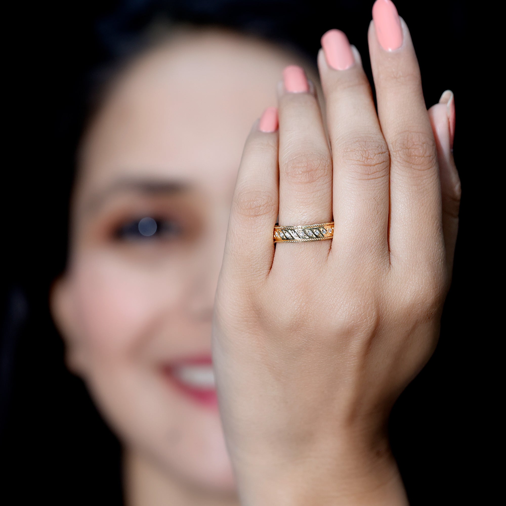 The process of crafting diamond rings for women by our experts takes into account the quality factors, that are the 4 C’s of Diamonds, diamond shapes and metal quality. In addition to quality assurance, we also aim at ensuring fair practices in trading at every step of our business operation. Thus we strictly employ the use of conflict free diamonds to craft a range of diamond solitaire rings, diamond vintage rings and more such diamond engagement ring styles.