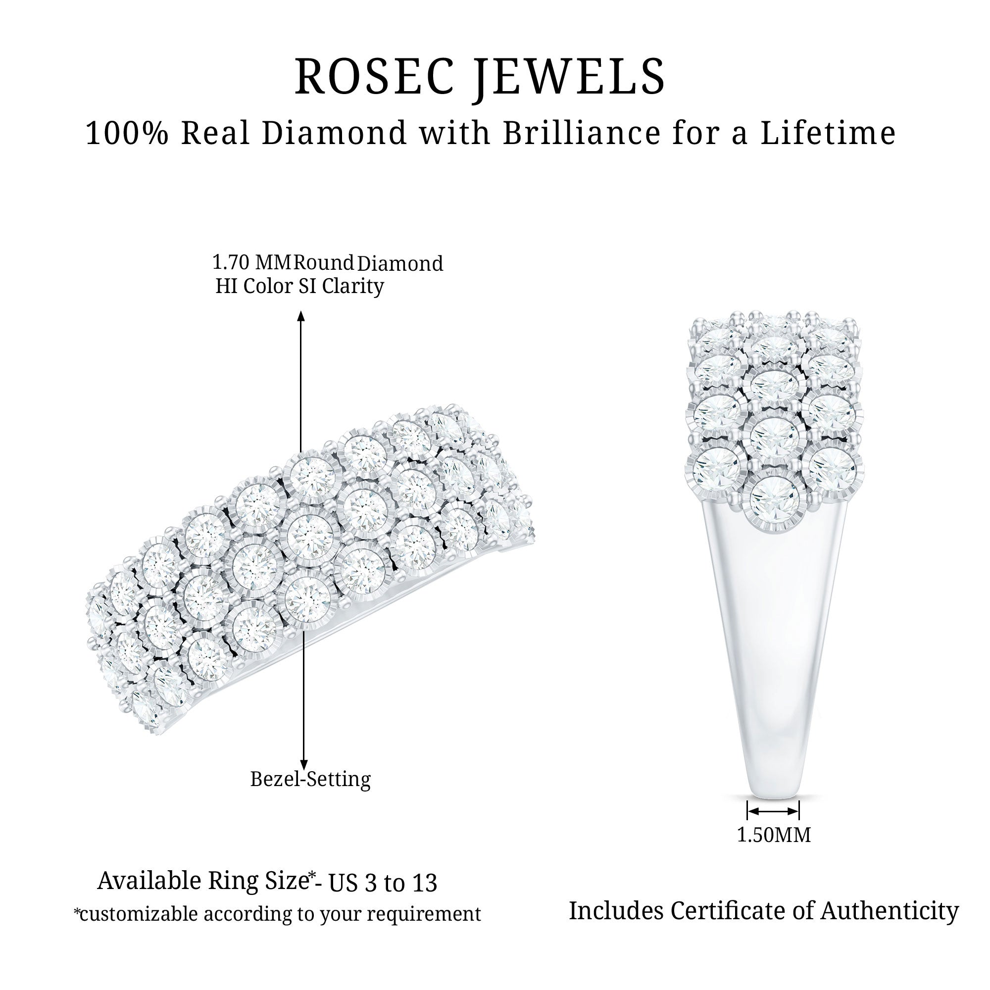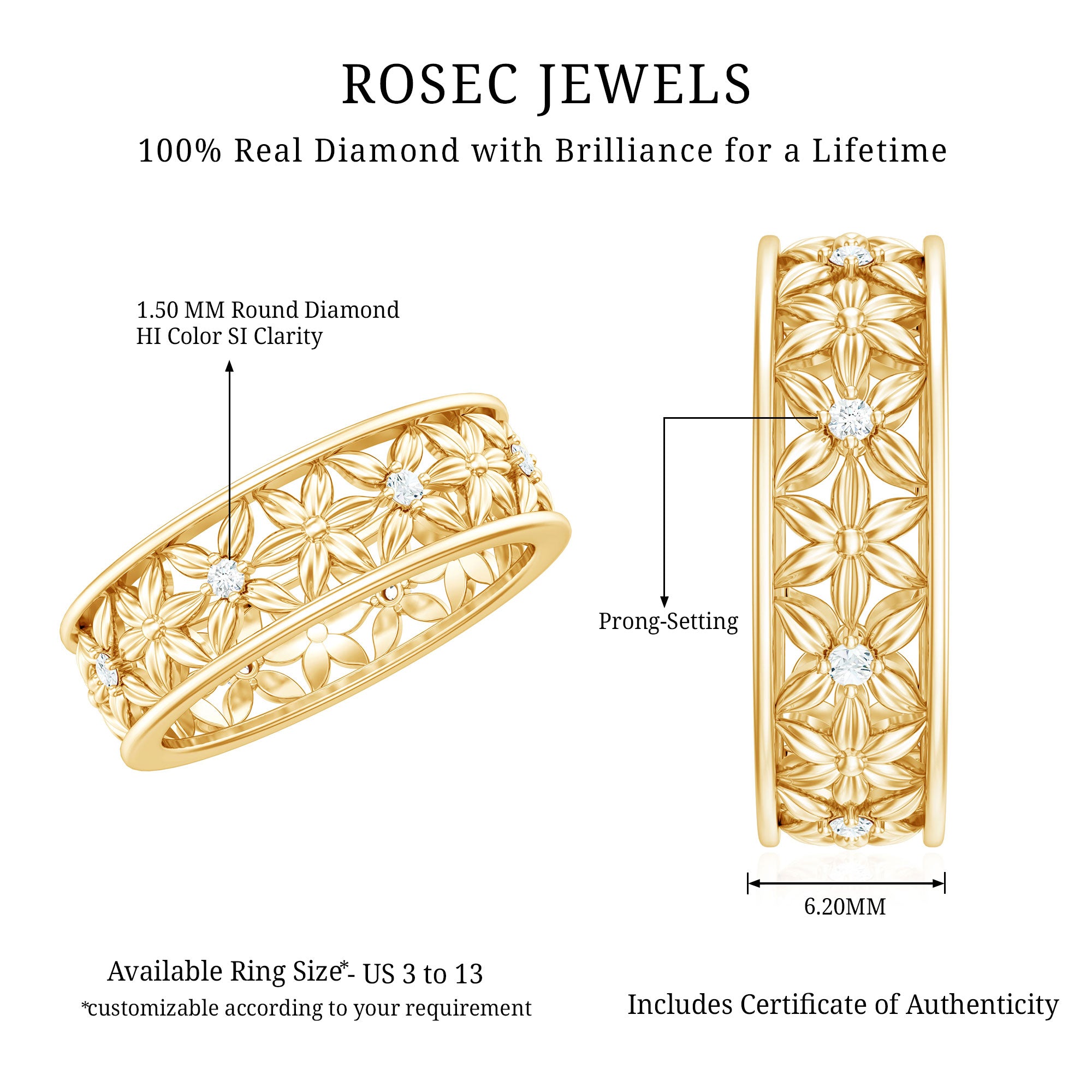 While setting out to buy diamond rings, you can look for the SGL certification to ensure the authenticity of diamond rings by Rosec Jewels.