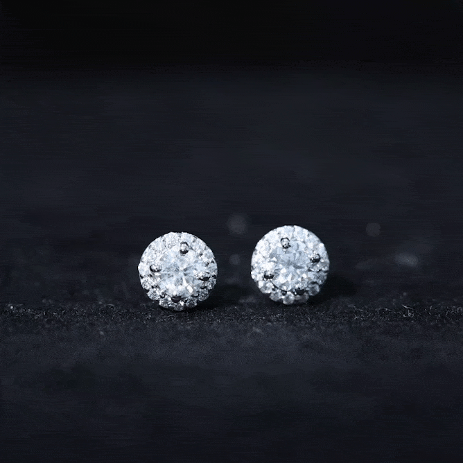 Halo Studs: Those who love extra sparkle, would definitely admire this design, which features a halo of small shining or colored gemstones, surrounding the center stone. Single, double or triple halo, not only increases the brilliance, but also offers added protection to the main gemstone.