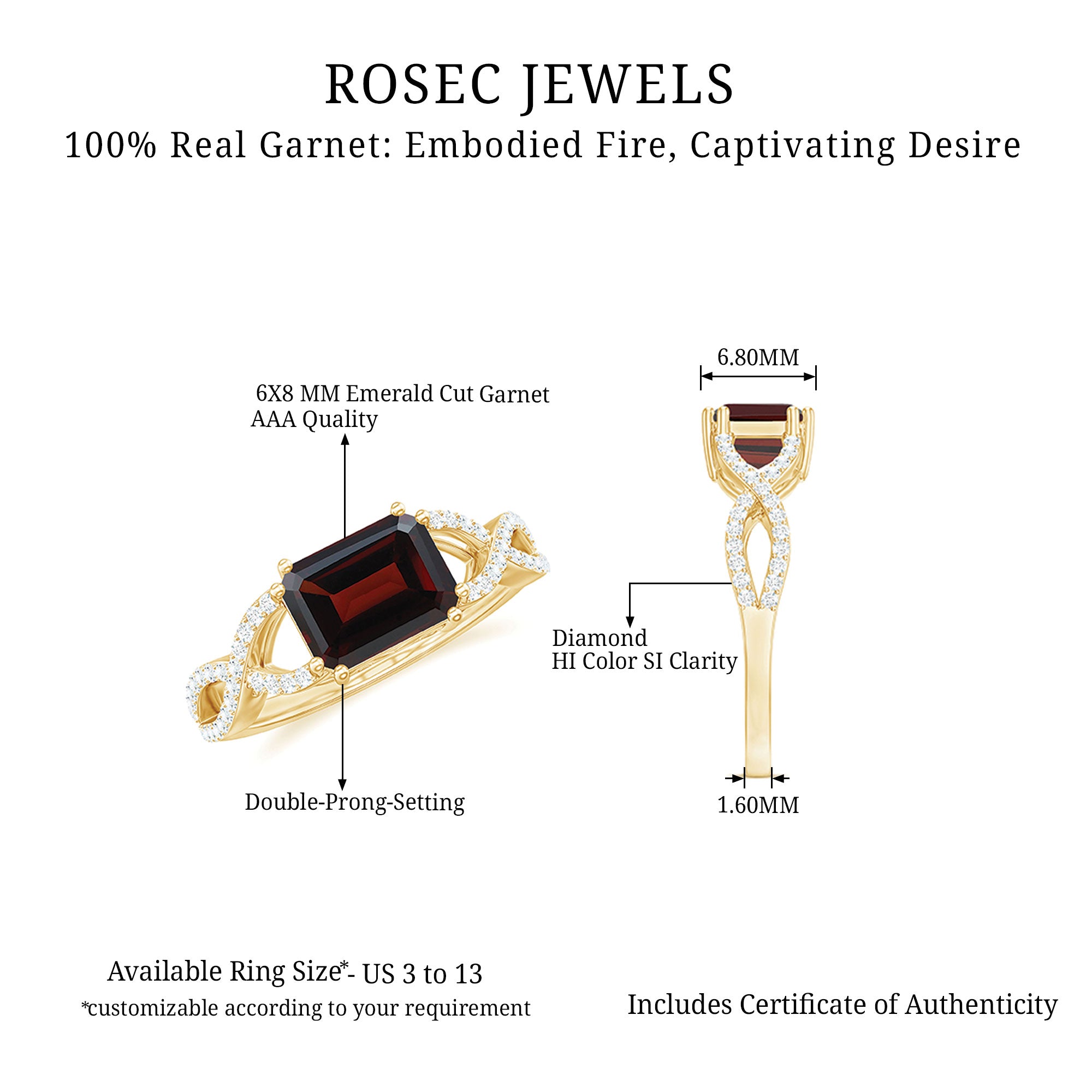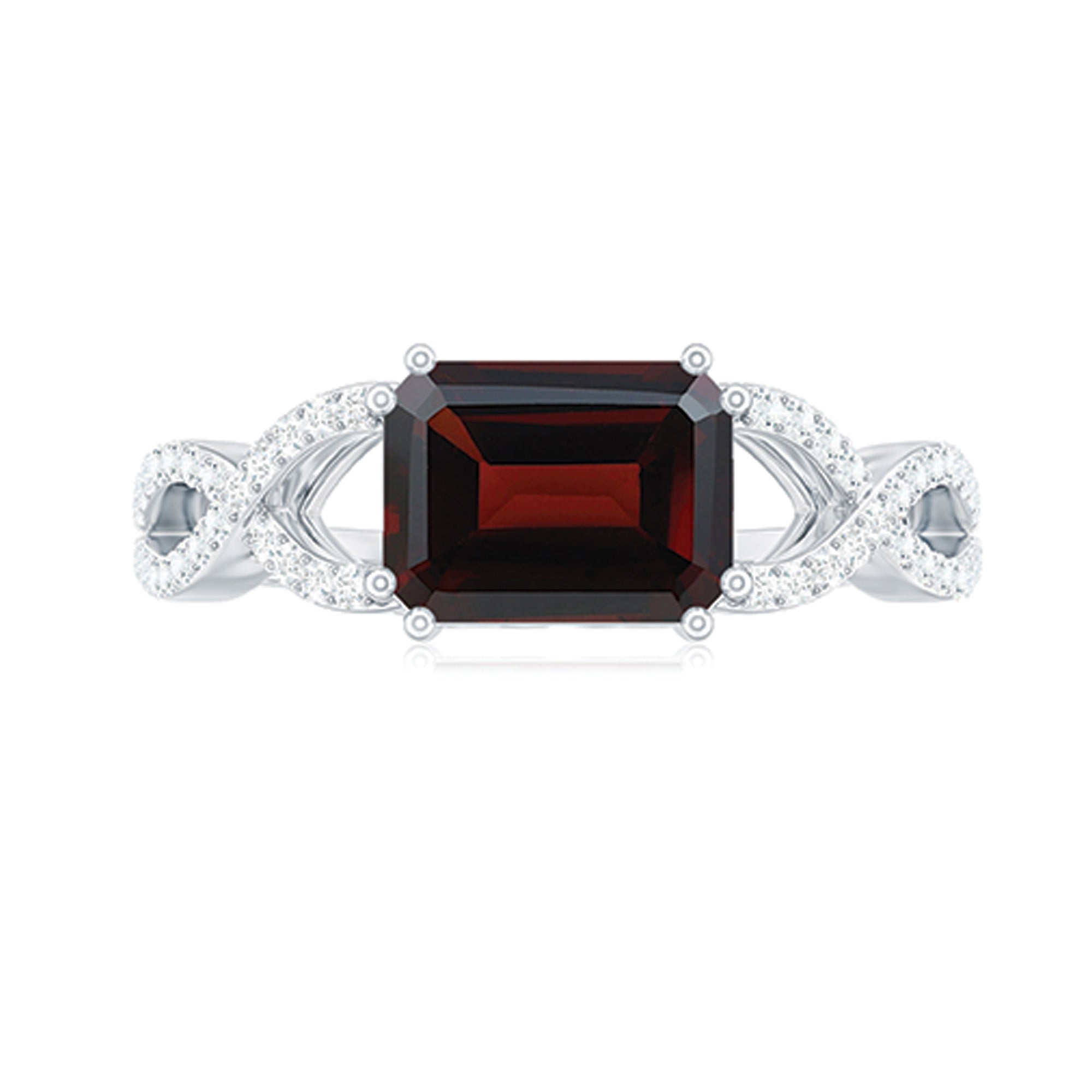 East west Setting: East west setting is just the opposite of traditional North south orientation of the gemstone. This horizontal placement of the stone transforms its look and appeal completely in any type of emerald cut engagement ring.