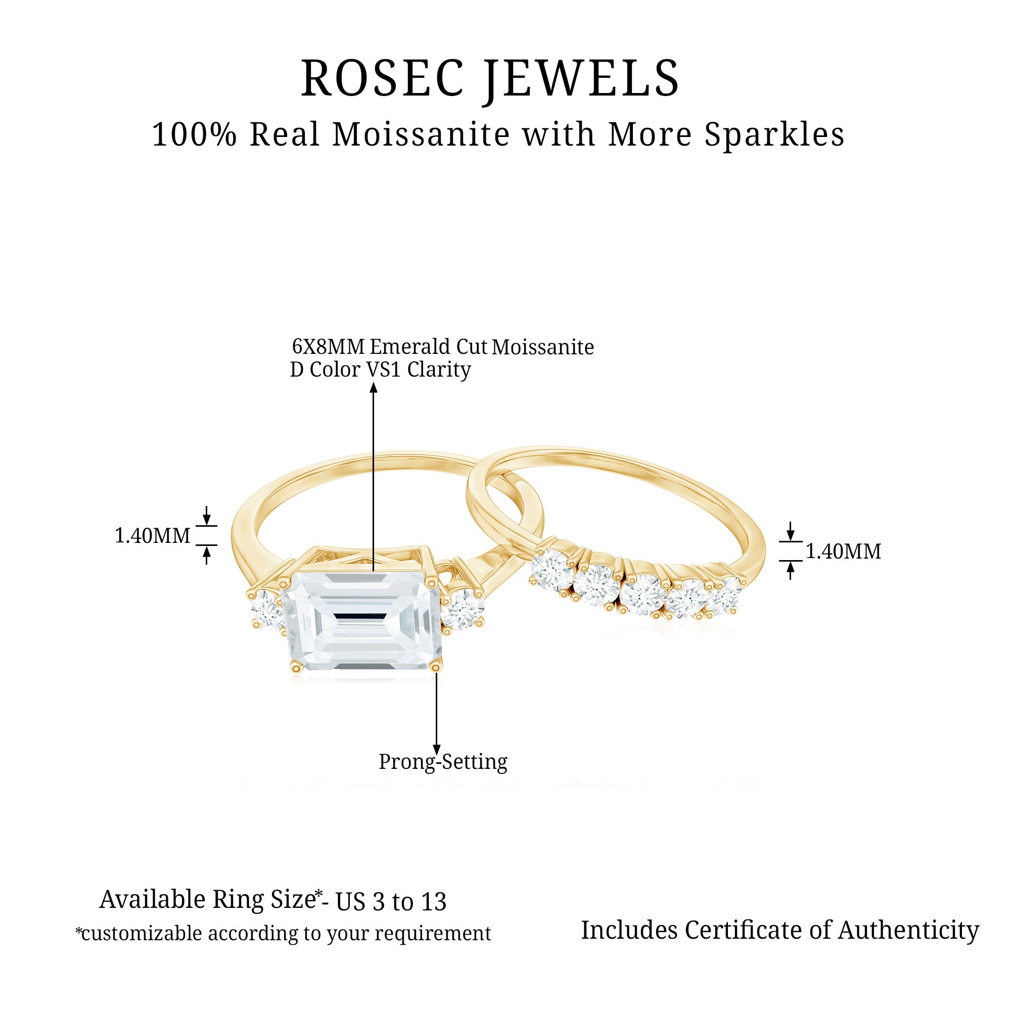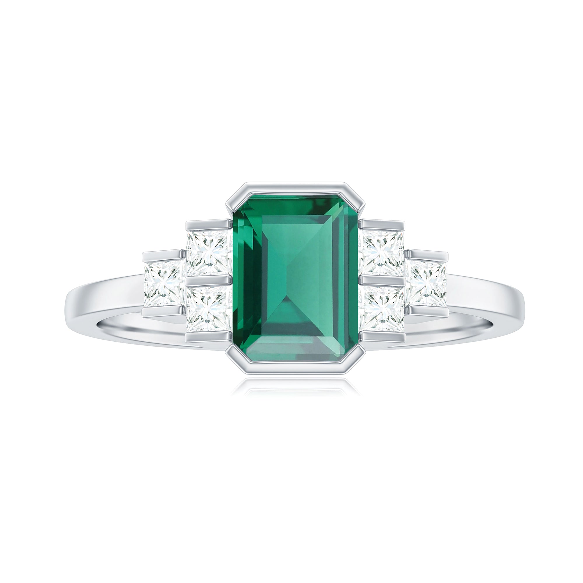 Three Stone Setting: Three emerald cut gemstones of similar or different sizes are placed for a stunning and sparkling appeal. A three stone emerald cut ring is not only strikingly beautiful, but deeply meaningful too.