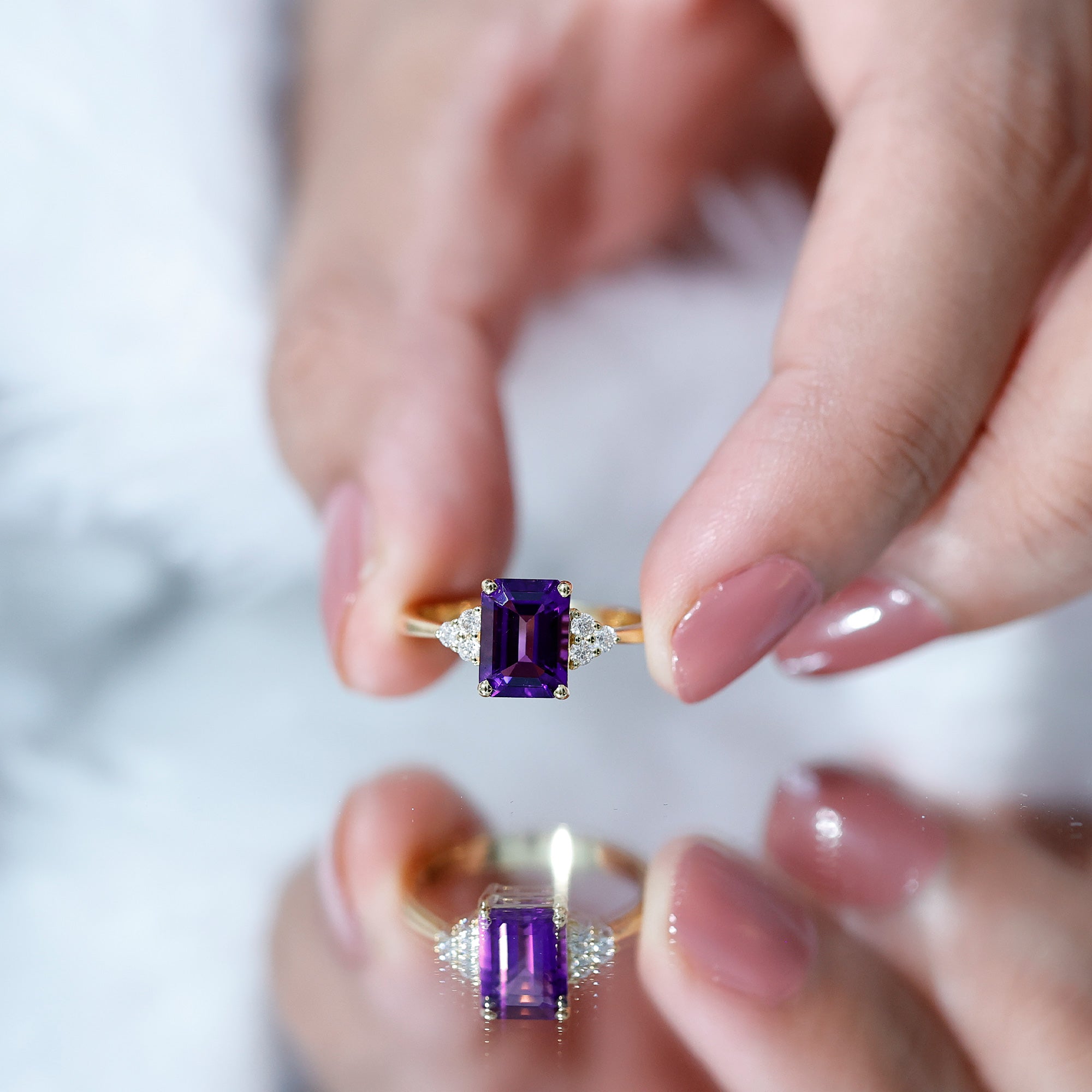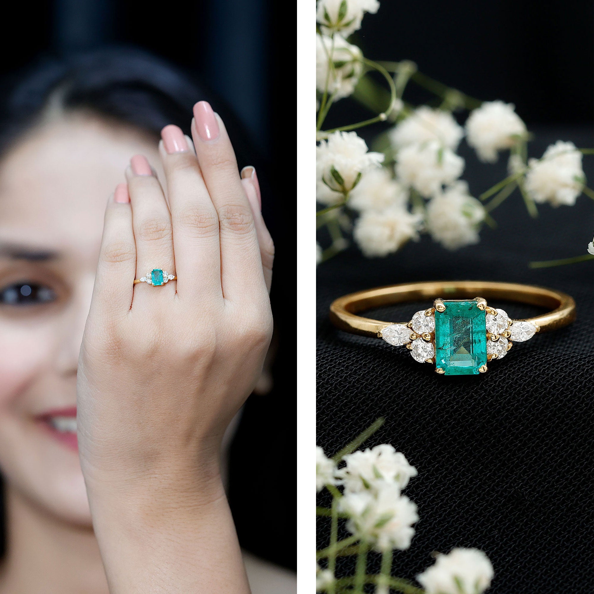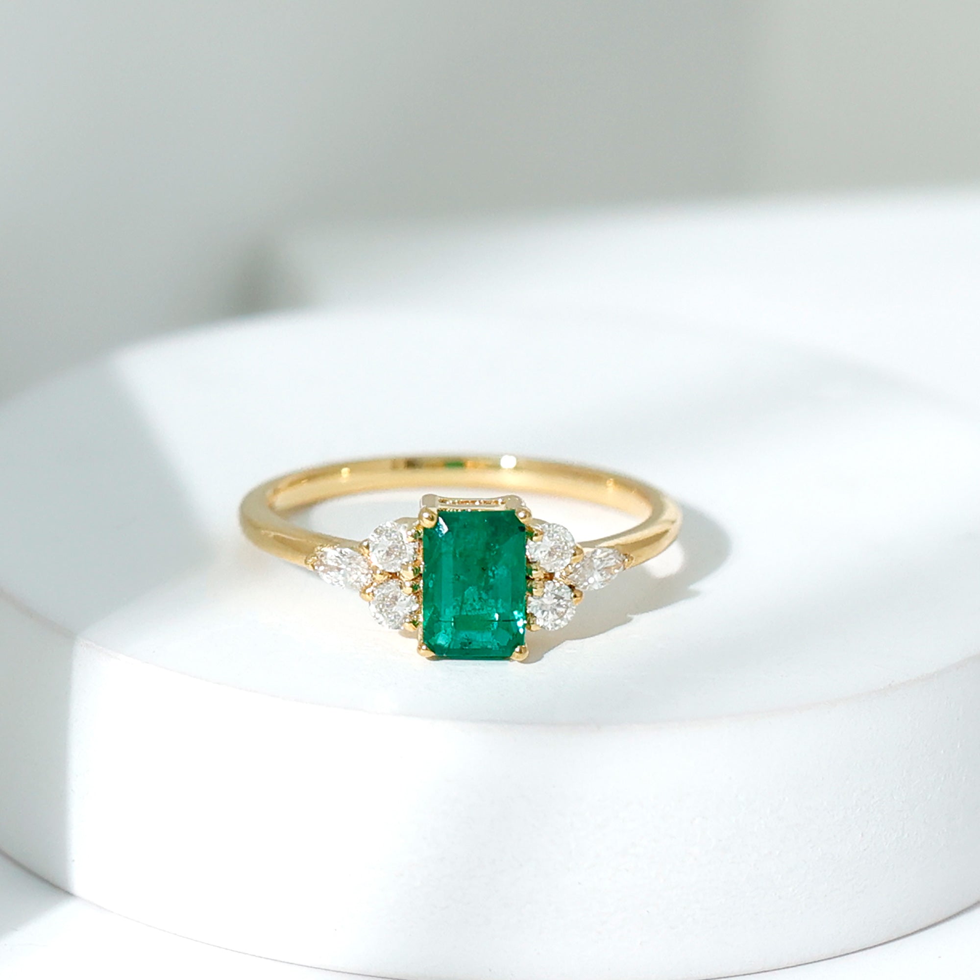 A Bright and Luxurious Choice: Vivid color of any gemstone is highlighted best in emerald cut as it emphasises on its clarity, depth, and elegance. A stunning visual effect created in emerald cut gemstone, makes the gemstone appear larger and more radiant. Overall beauty of the ring is enhanced by an emerald cut.