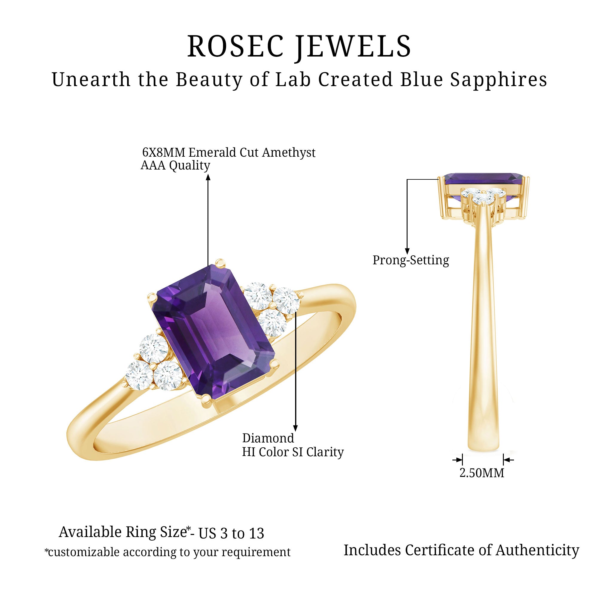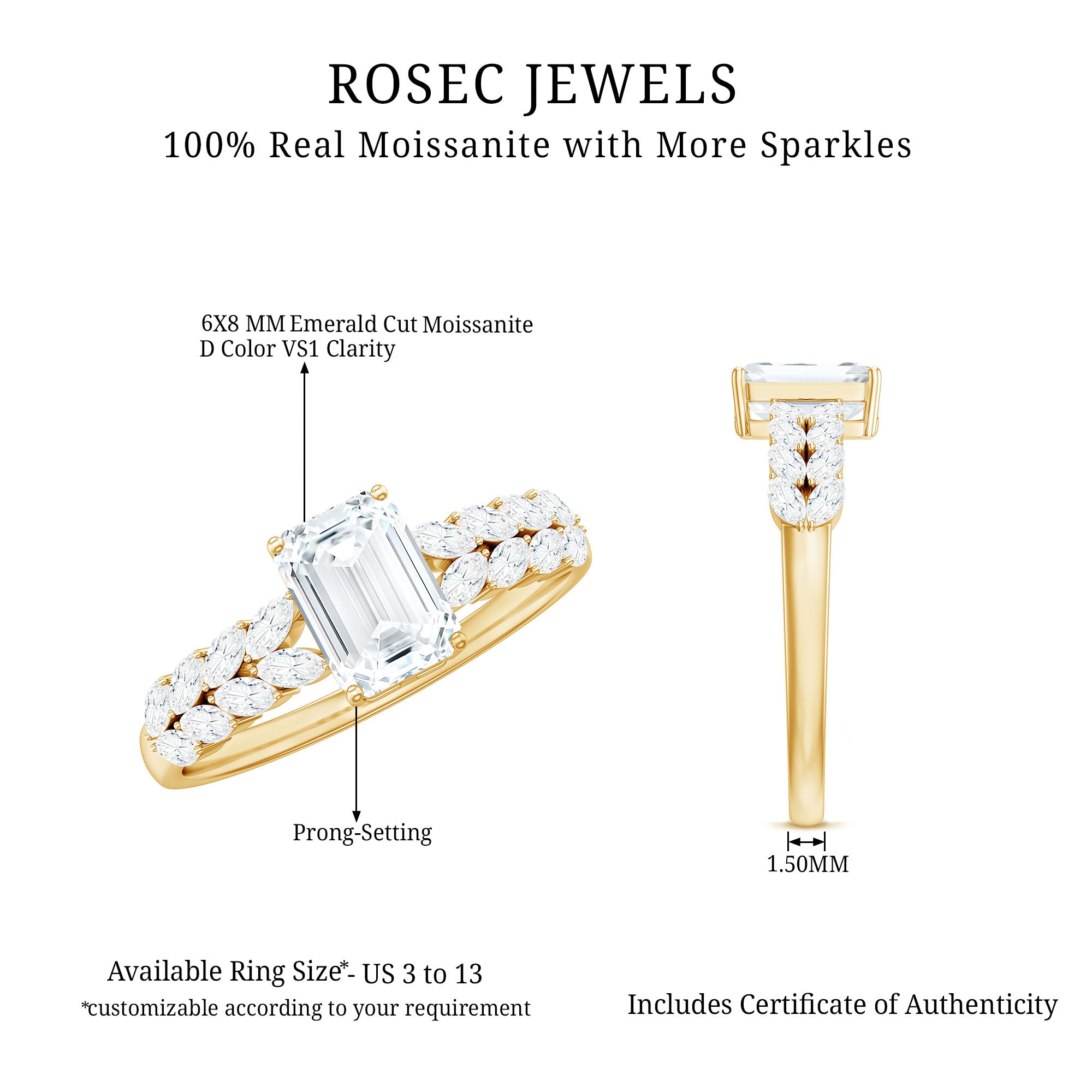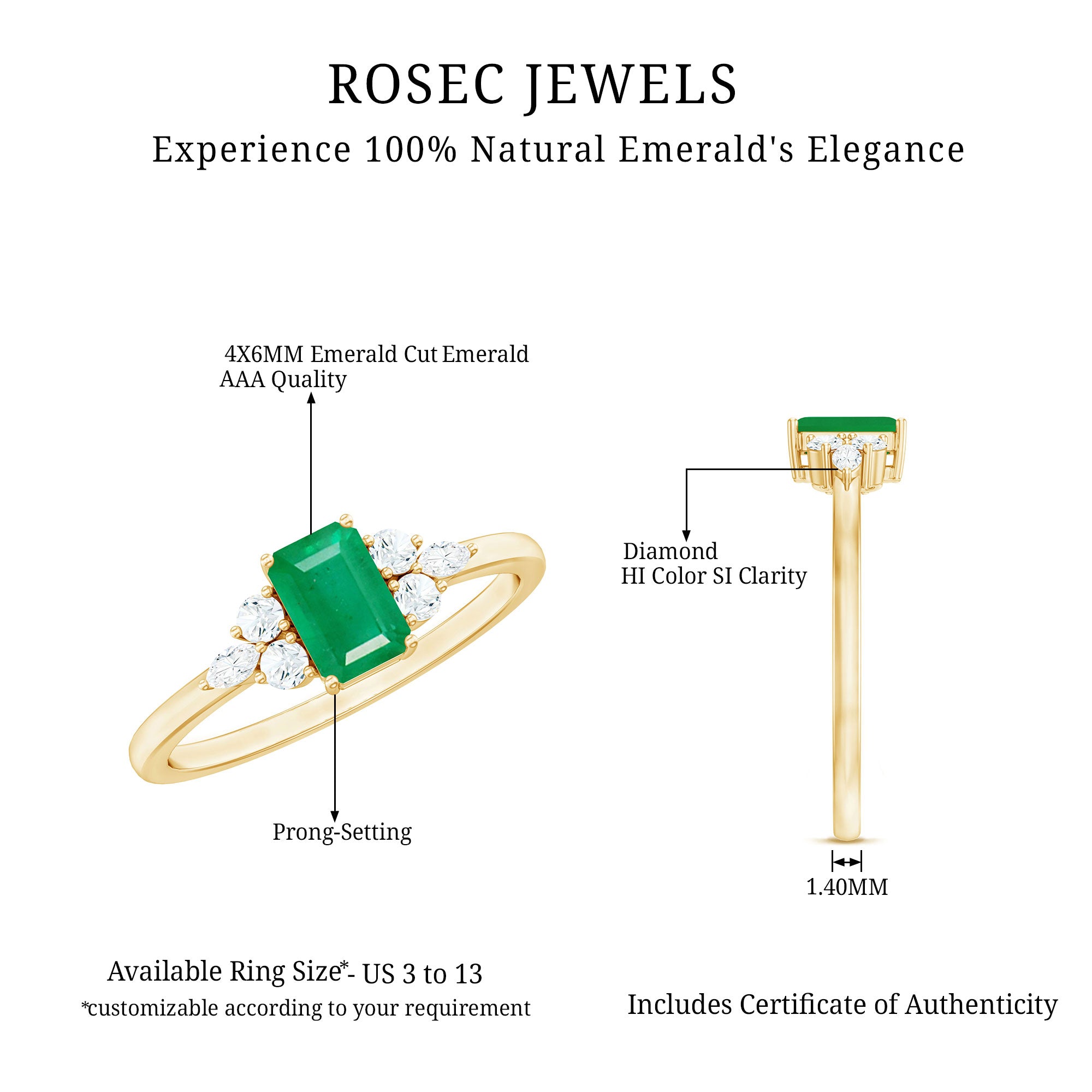 A Bright and Luxurious Choice: Vivid color of any gemstone is highlighted best in emerald cut as it emphasises on its clarity, depth, and elegance. A stunning visual effect created in emerald cut gemstone, makes the gemstone appear larger and more radiant. Overall beauty of the ring is enhanced by an emerald cut.