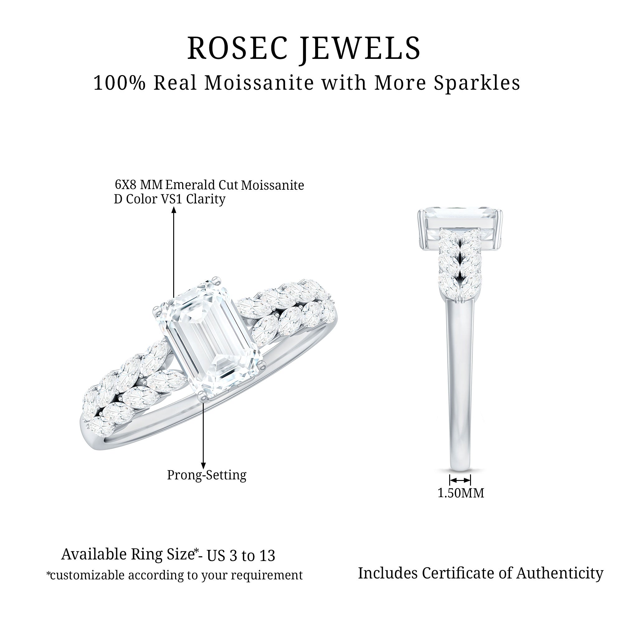 Bigger Size: Elongated shape of the emerald cut gives the engagement ring a larger appearance on the finger. Bold yet elegant choice is the first thought that comes to mind when we think of these rings. Without investing much in the jewel piece, we get the illusion of a bigger engagement ring. 2ct emerald cut gemstone engagement rings are usually the preferred choice for big occasions.