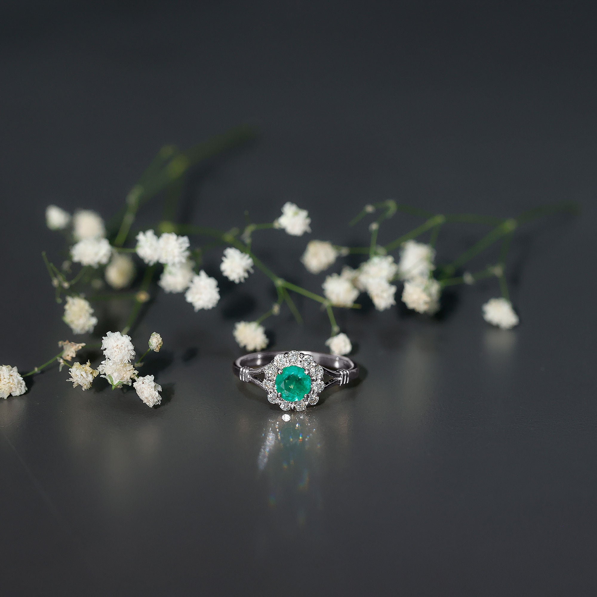 • Emerald Halo Engagement Rings: - Halo-style rings add a layer of shine and glamour to the overall appearance of the ring. These rings highlight the emerald gemstone a bit bigger due to the halo design.