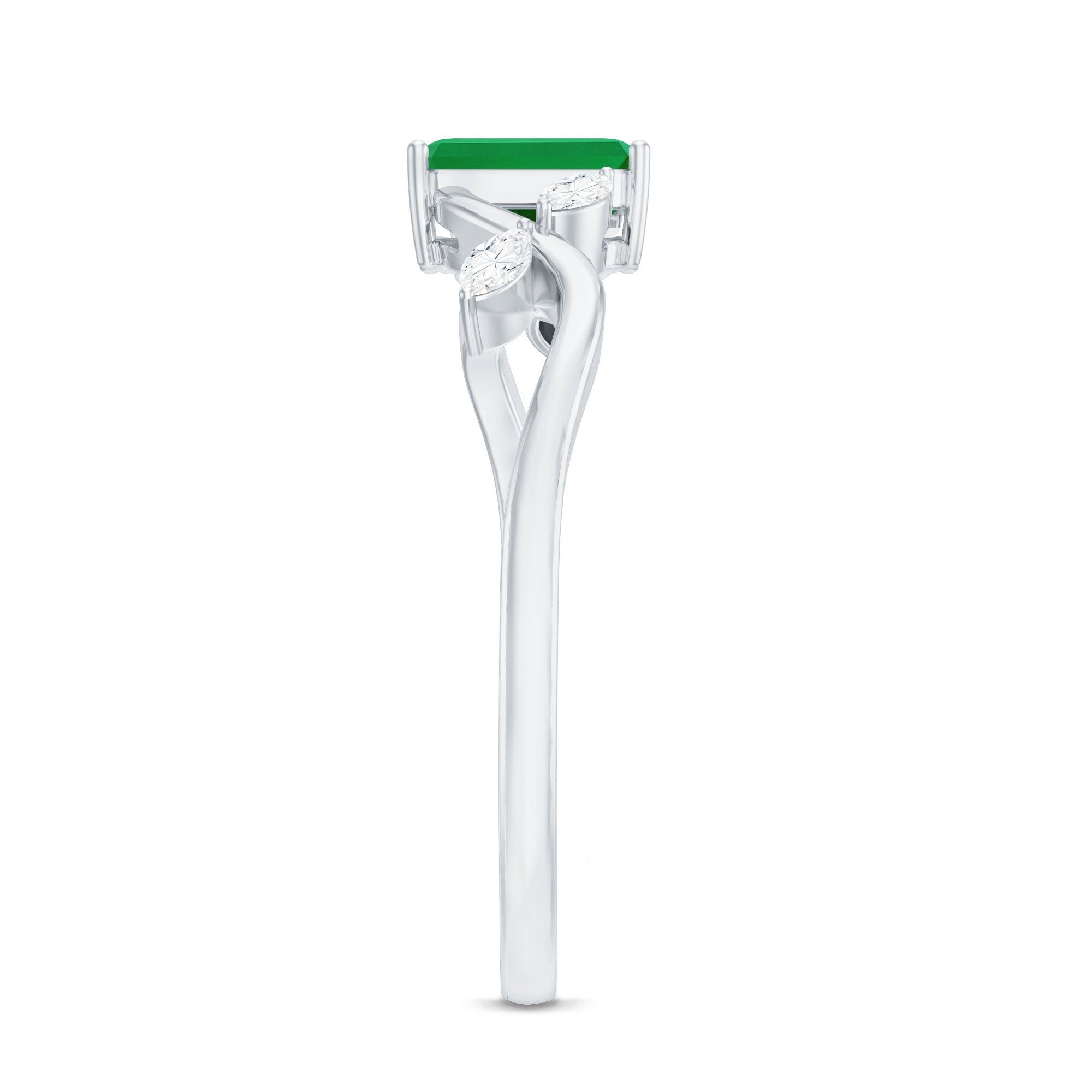 Elegant elongation with a flattering silhouette that enhances the emerald’s depth of color.