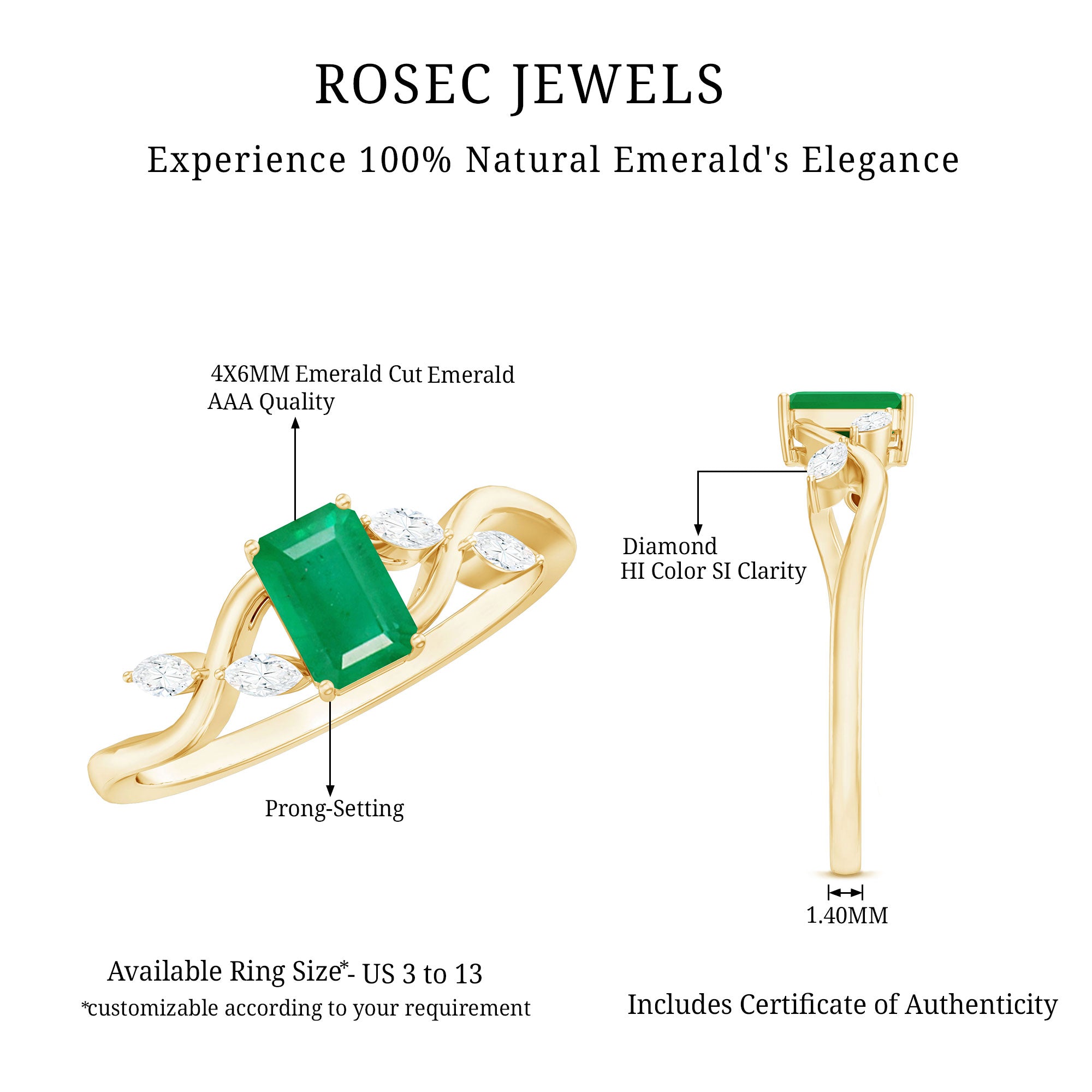 Most emerald engagement rings can be resized depending on the design and setting. It is recommended to confirm resizing options before purchase for the best fit.
