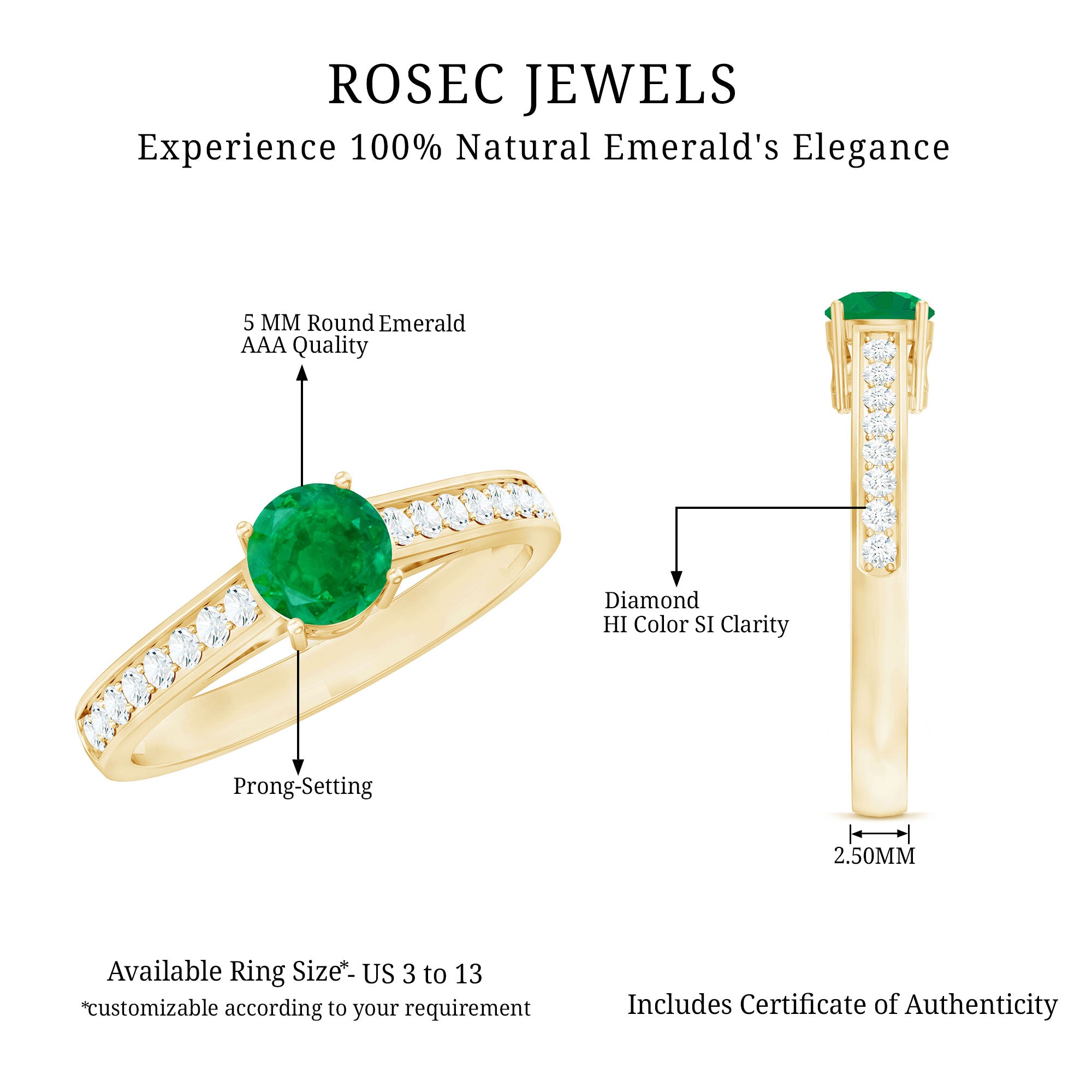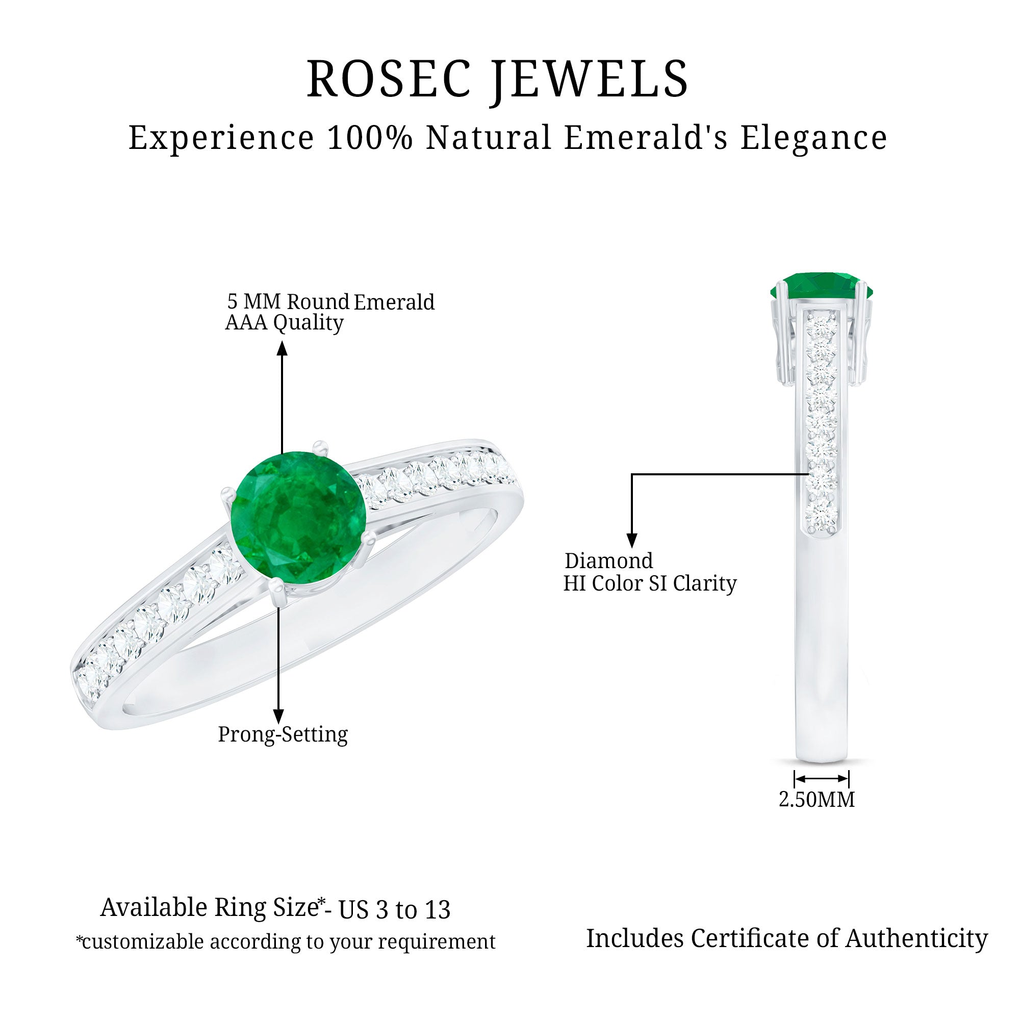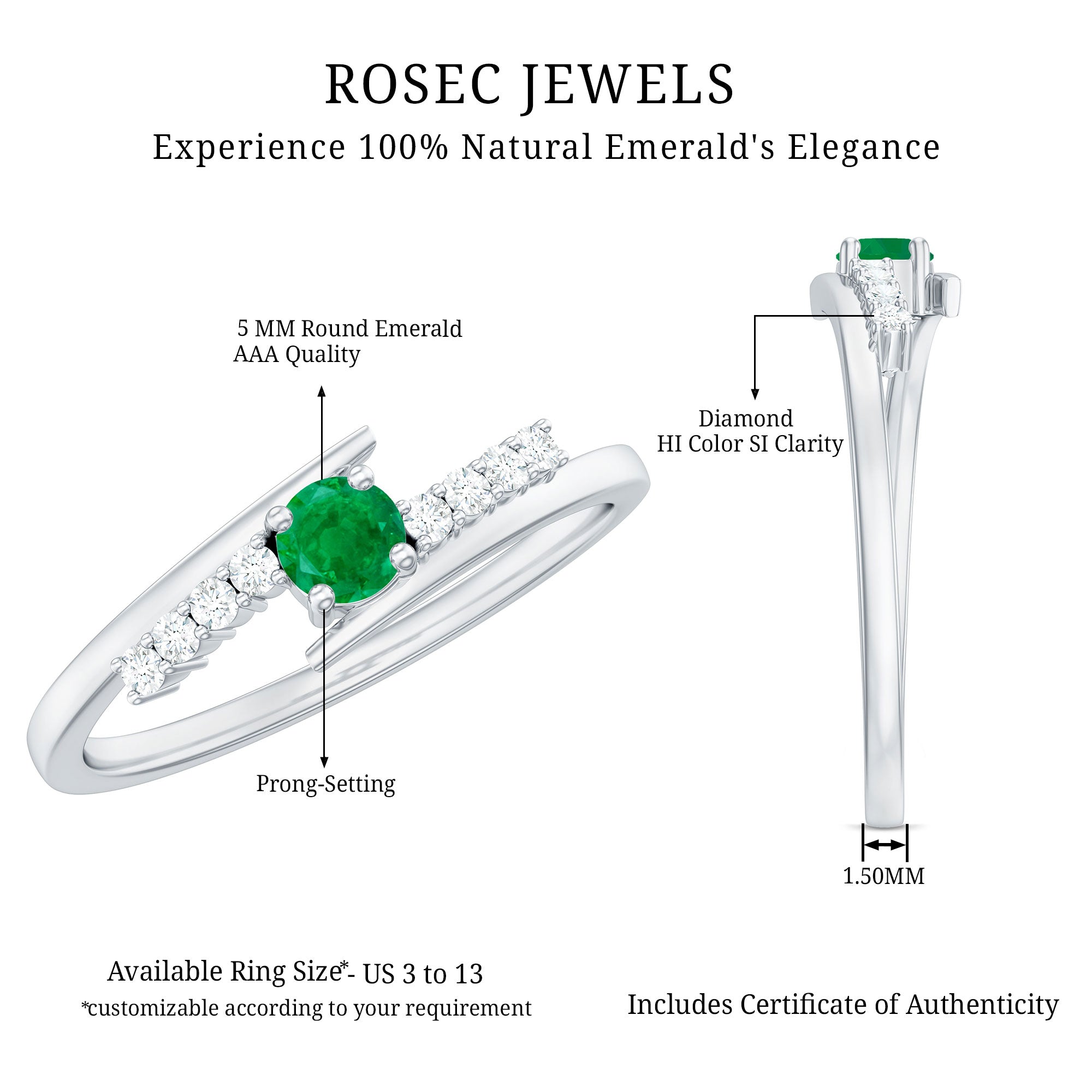 Rosec Jewels uses Genuine Emeralds in Rings