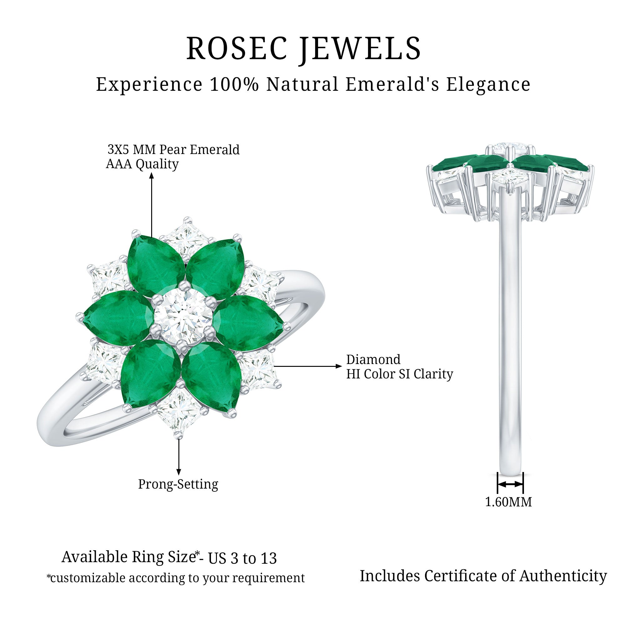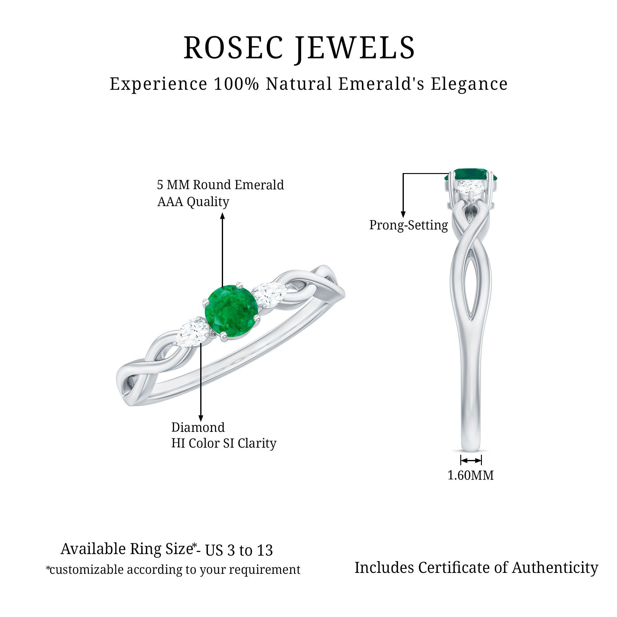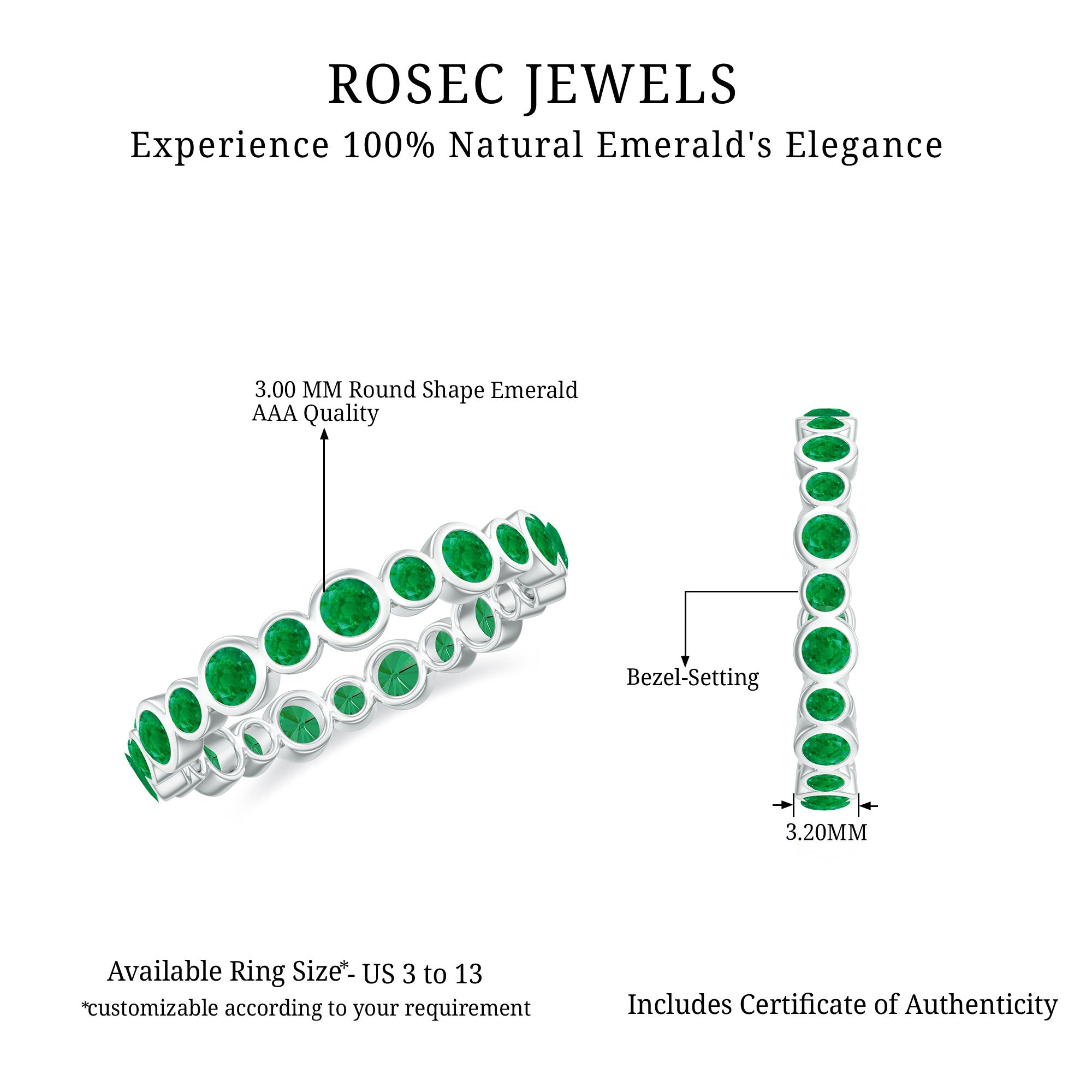Rosec Jewels uses Genuine Emeralds in Rings
