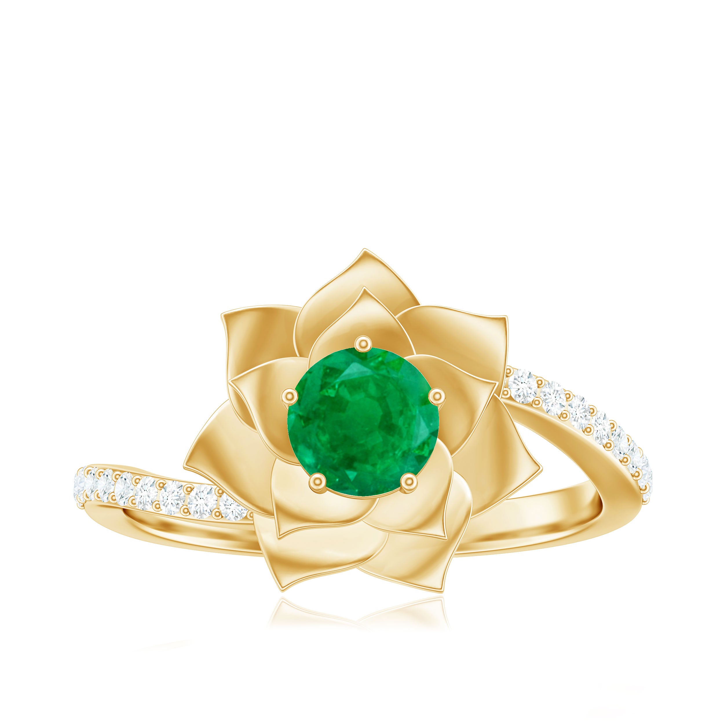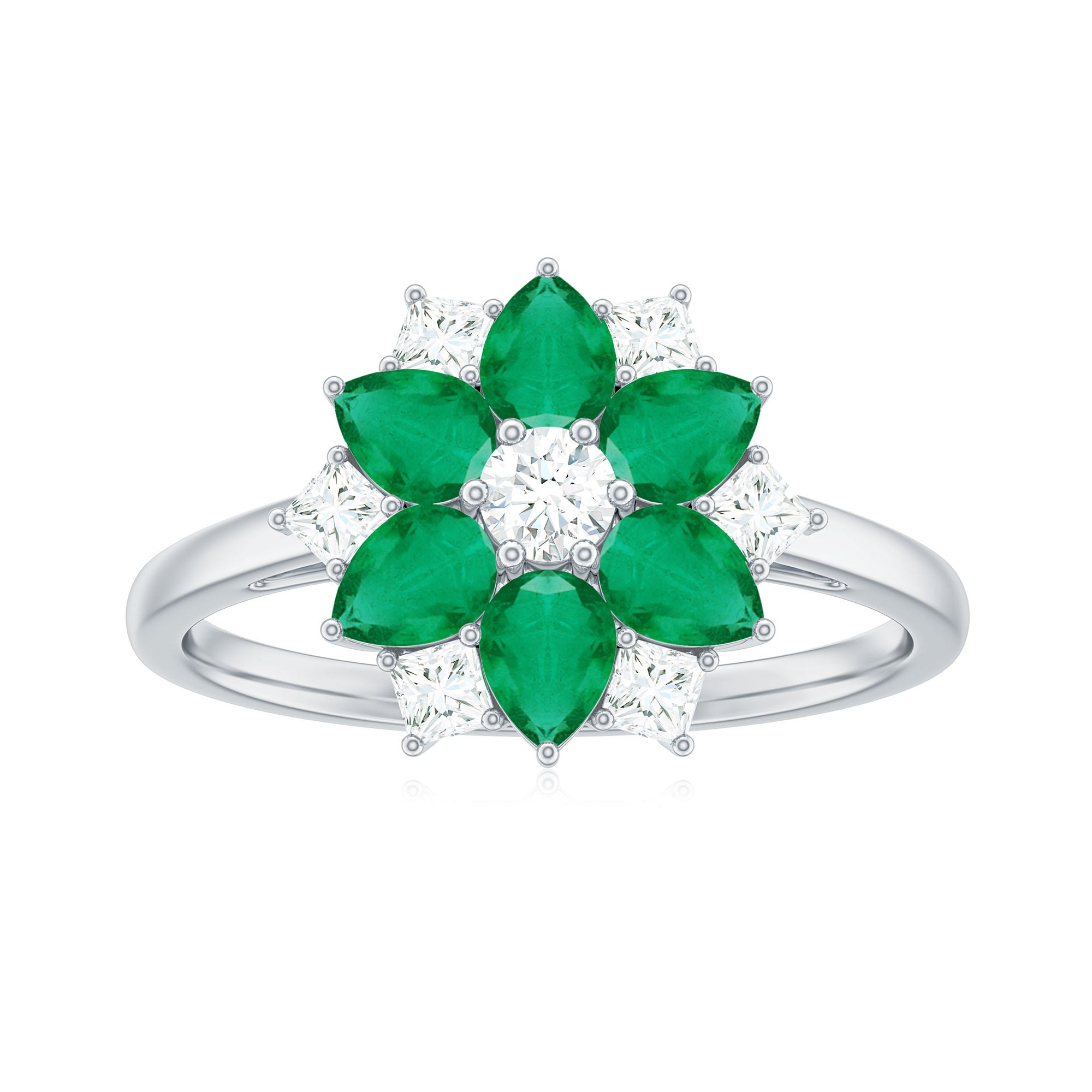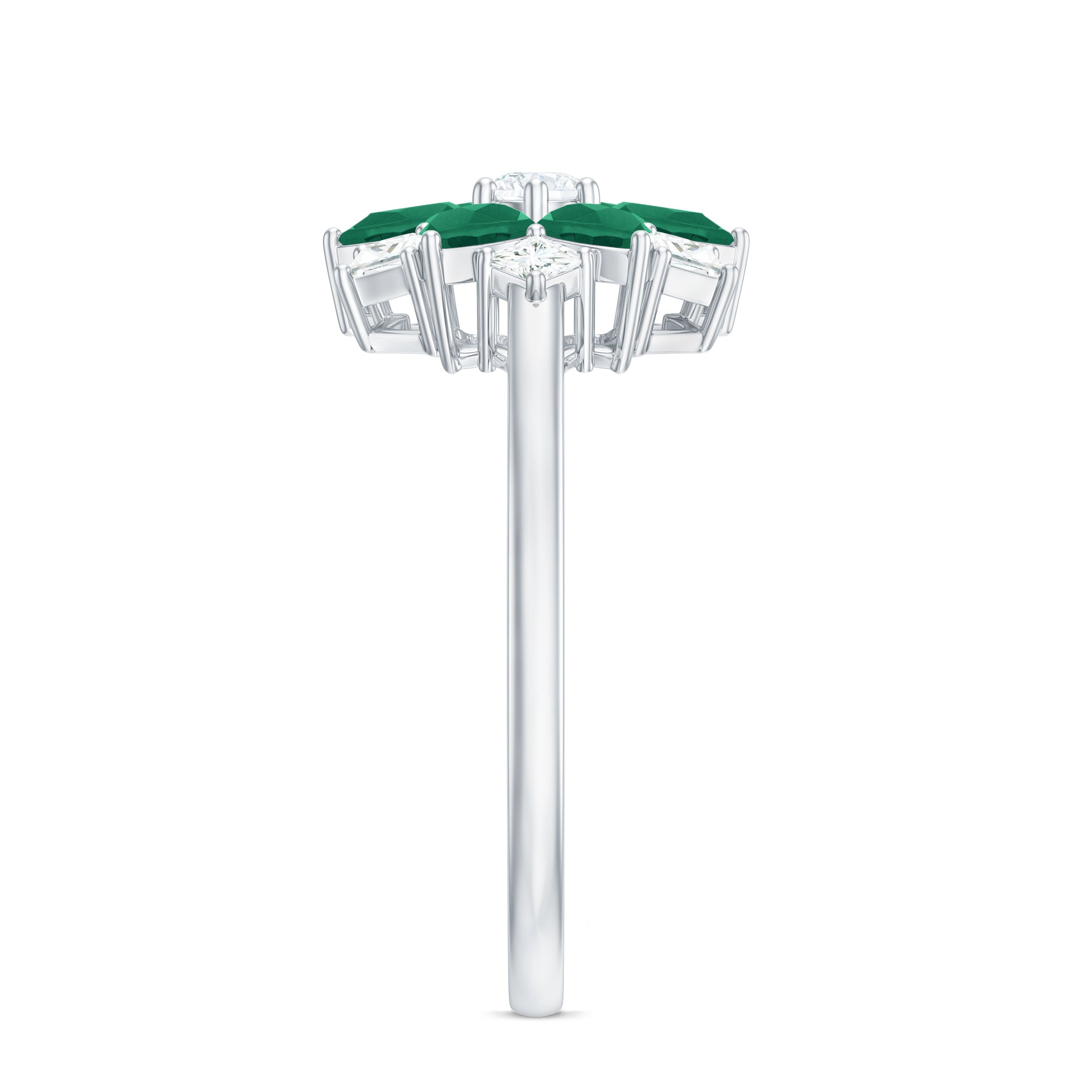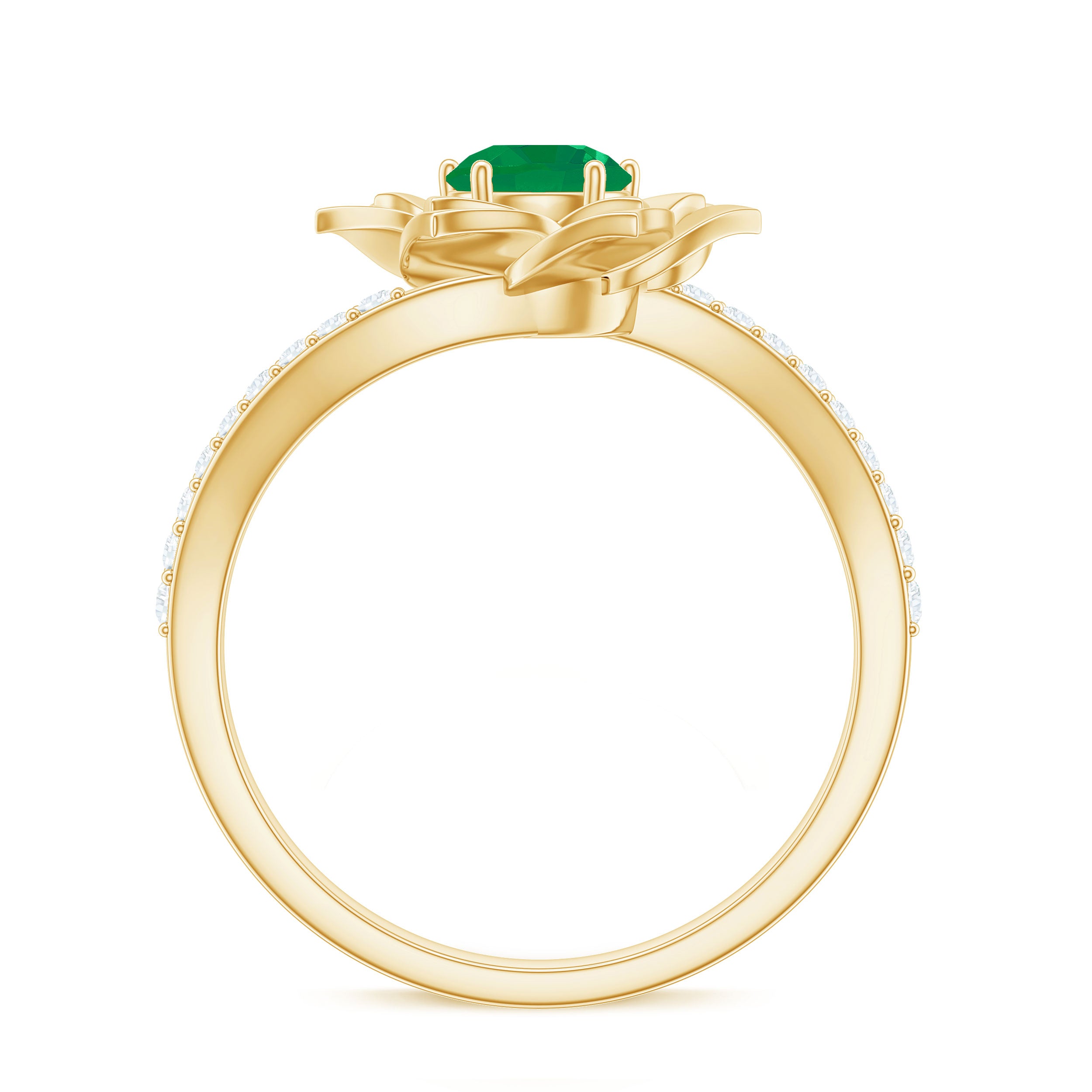 • Emerald Nature Inspired Rings: - Commonly feature designs inspired by the natural world, showcasing evocative flowers and leaves. The sleek design of a flower emerald ring features a green emerald that reflects the rich colors found in earth's nature. A symbol of renewal, growth, and harmony, our exquisite nature-inspired rings ensure beauty and timeless allure. The nature-themed emerald leaf ring is a fashionable option for nature and jewelry lovers.