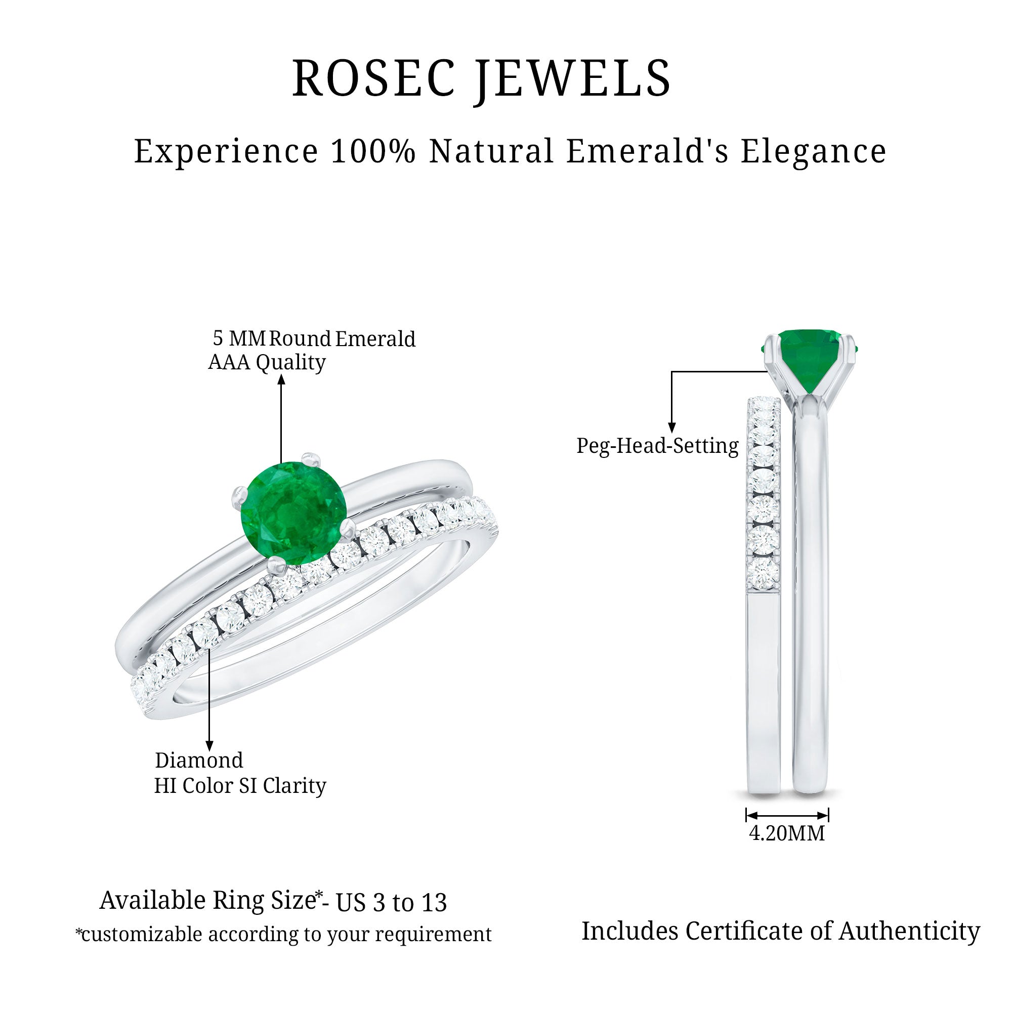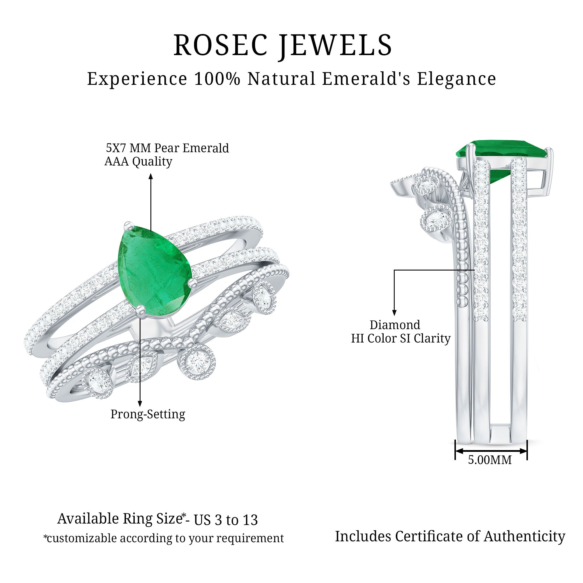 Rosec Jewels uses Genuine Emeralds in Rings