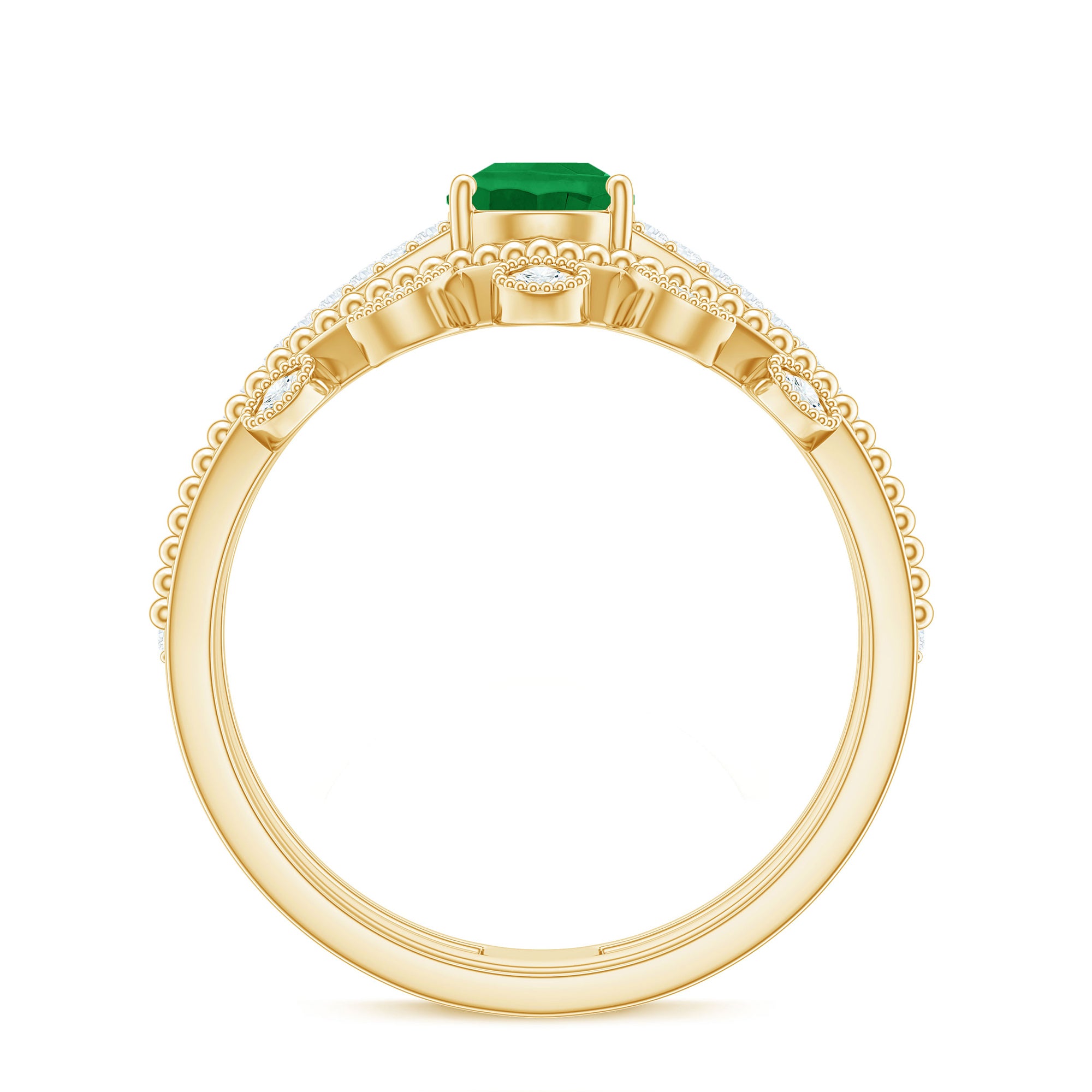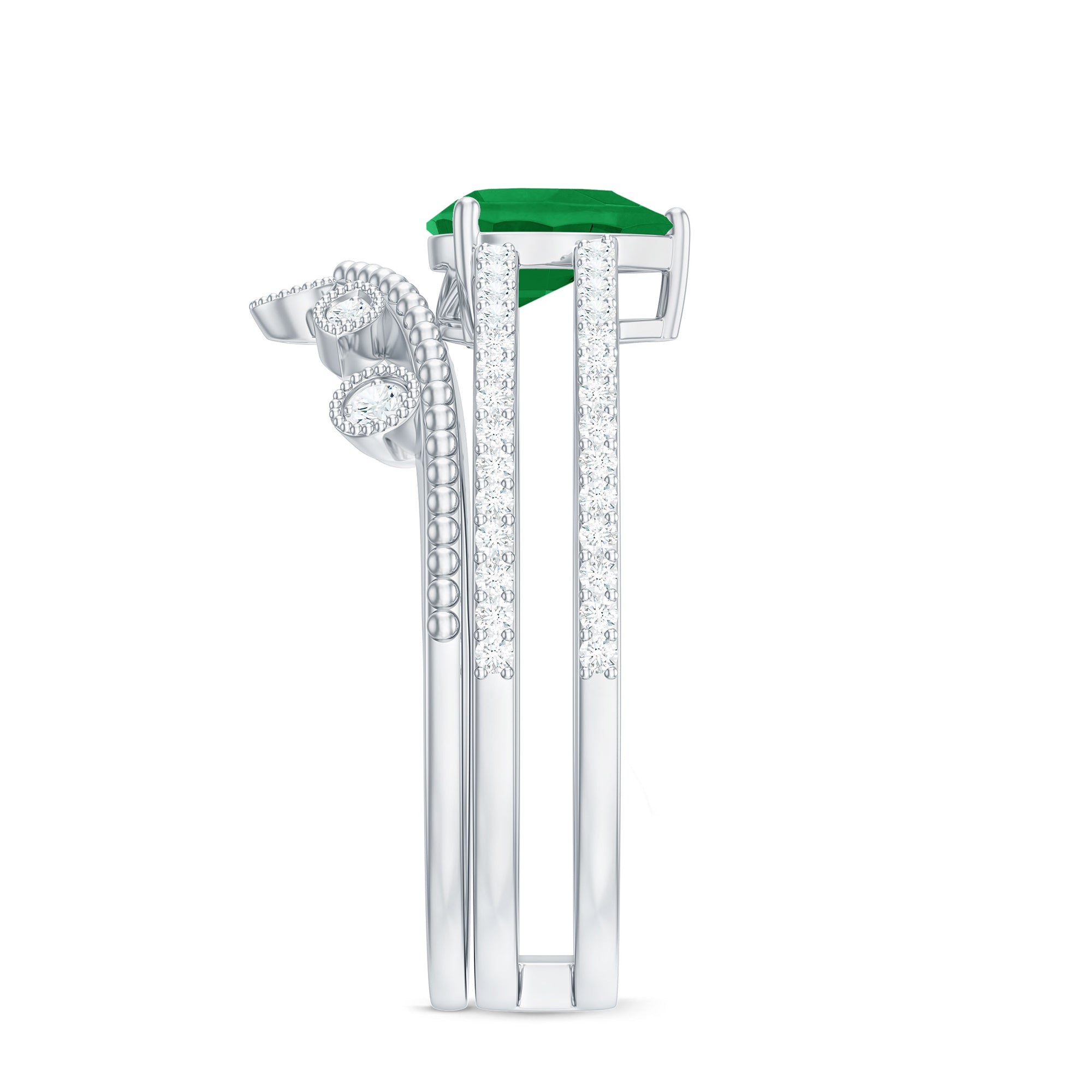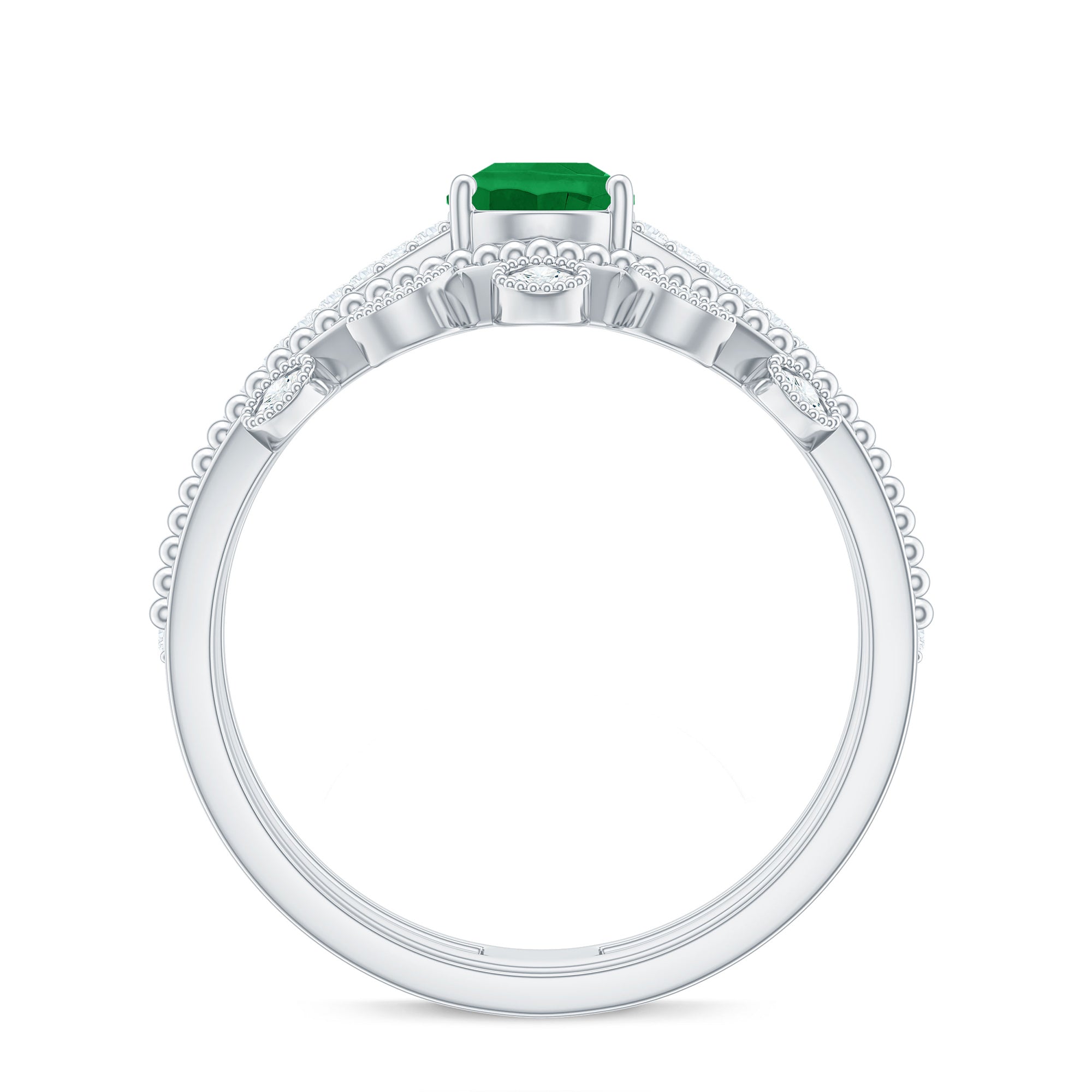 Emeralds have a Mohs hardness rating of 7.5 to 8. Making it an incredibly durable choice. Choose a ring setting that offers overall protection to the emerald gemstone.